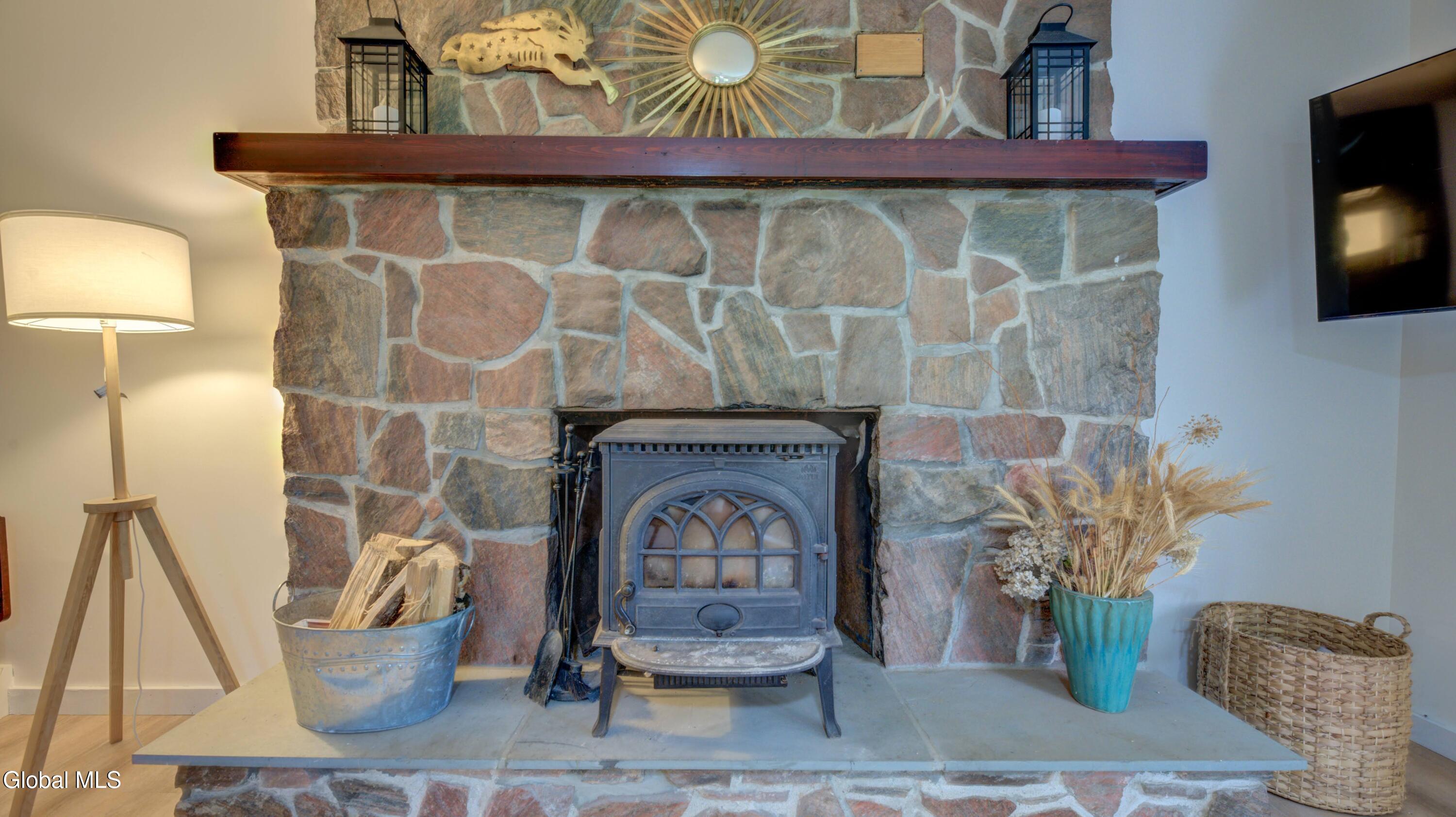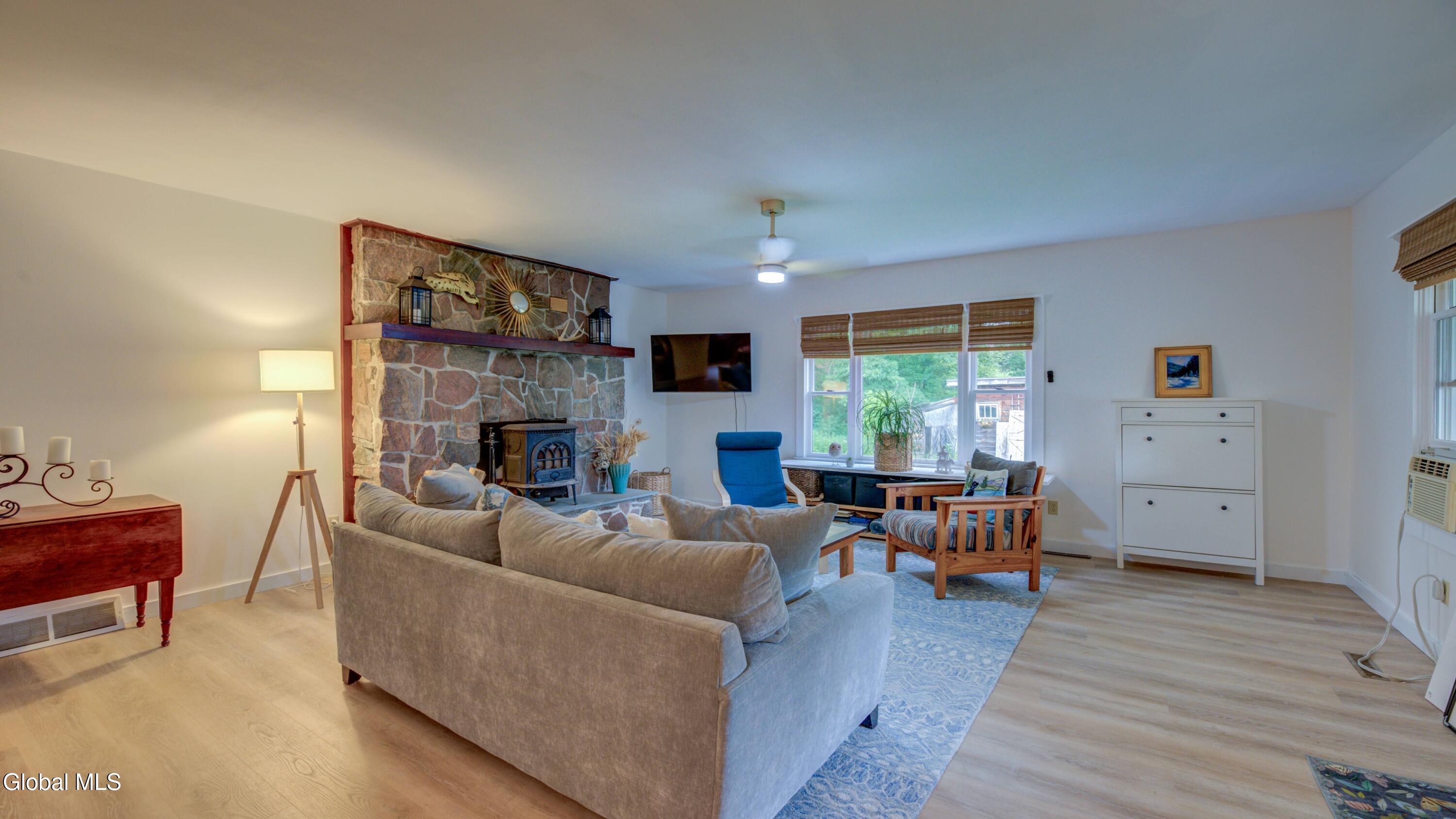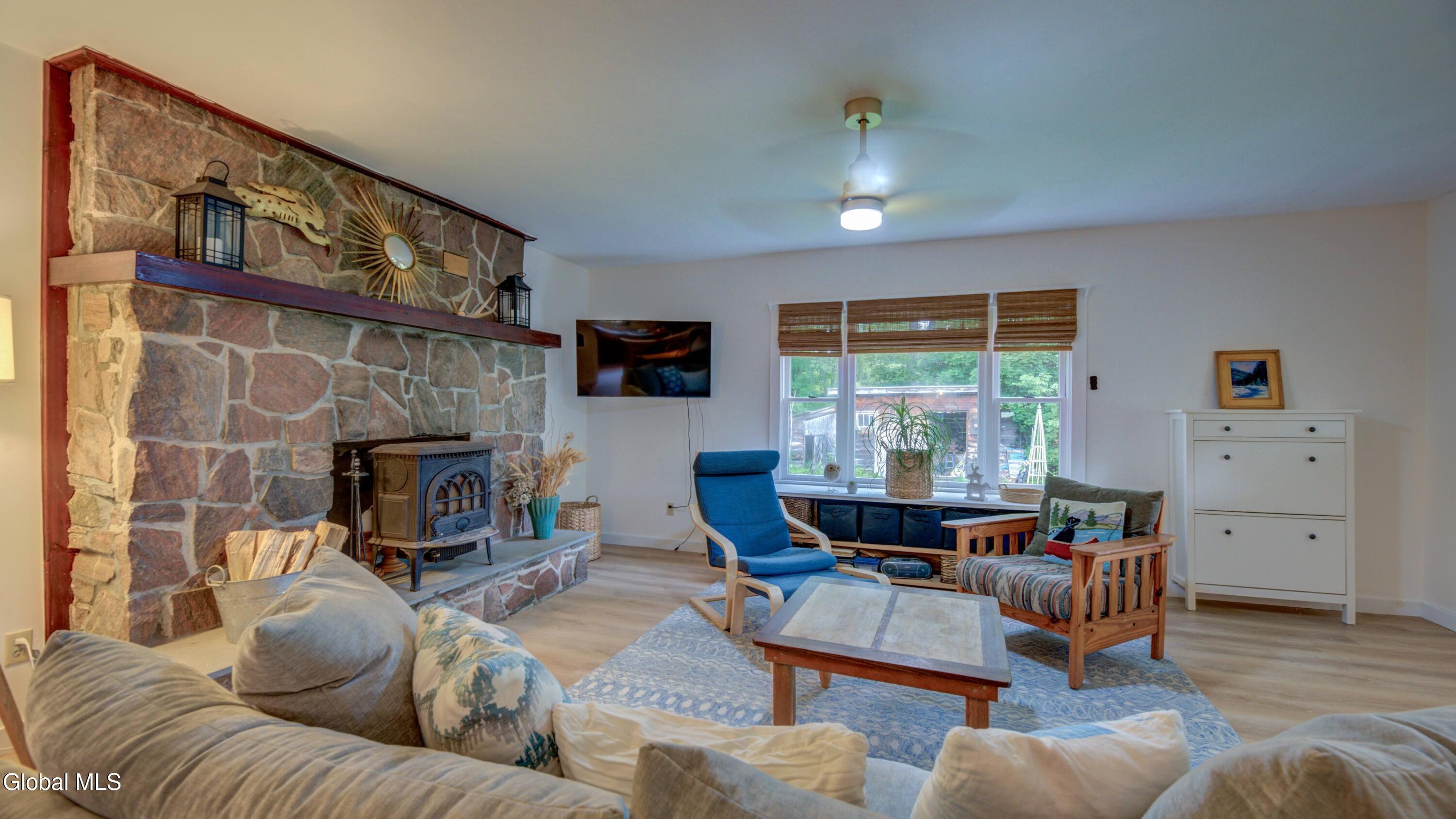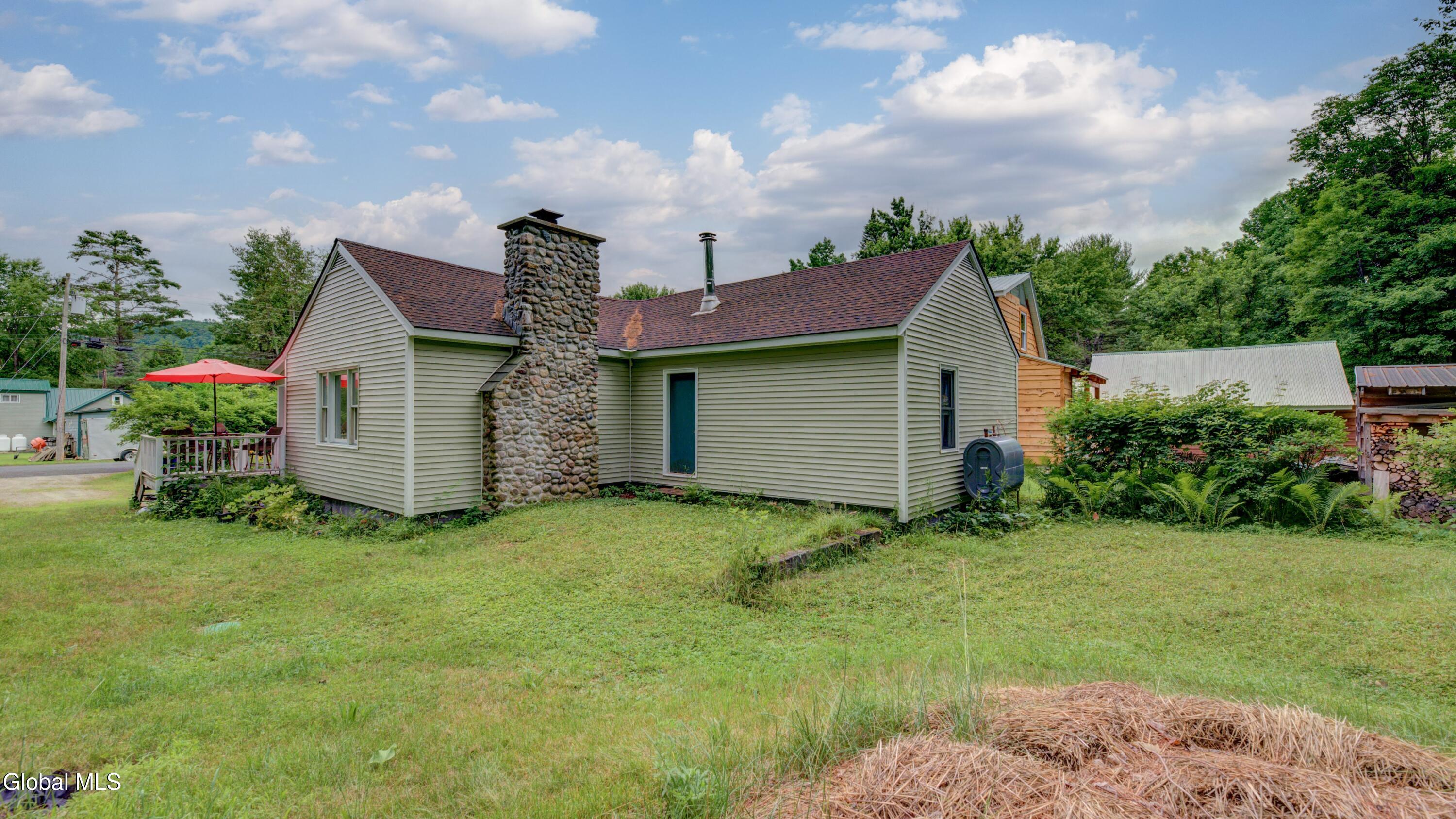 BACK ON MARKET DUE TO BUYER FINANCING ISSUES This well maintained 3 bed, 1 bath home with deeded access to Lake Algonquin is nestled in the scenic Adirondack town of Wells, NY. This property is just steps away from year-round recreational opportunities. During summer take an easy walk to the public sandy beach. In winter months, enjoy Oak Mountain (15 min), Gore Mountain (30 min) or access hundreds of miles of groomed snowmobile trails. Inside, find an inviting great room with a stone fireplace and Jotul wood stove. The kitchen has wood cabinetry and new appliances. New vinyl plank flooring ties the rooms together. The bathroom is renovated and is bursting with spa like style and contains a new washer & dryer. The two out buildings have underground electric & can be used for storage or a workshop. Portable generator will convey.