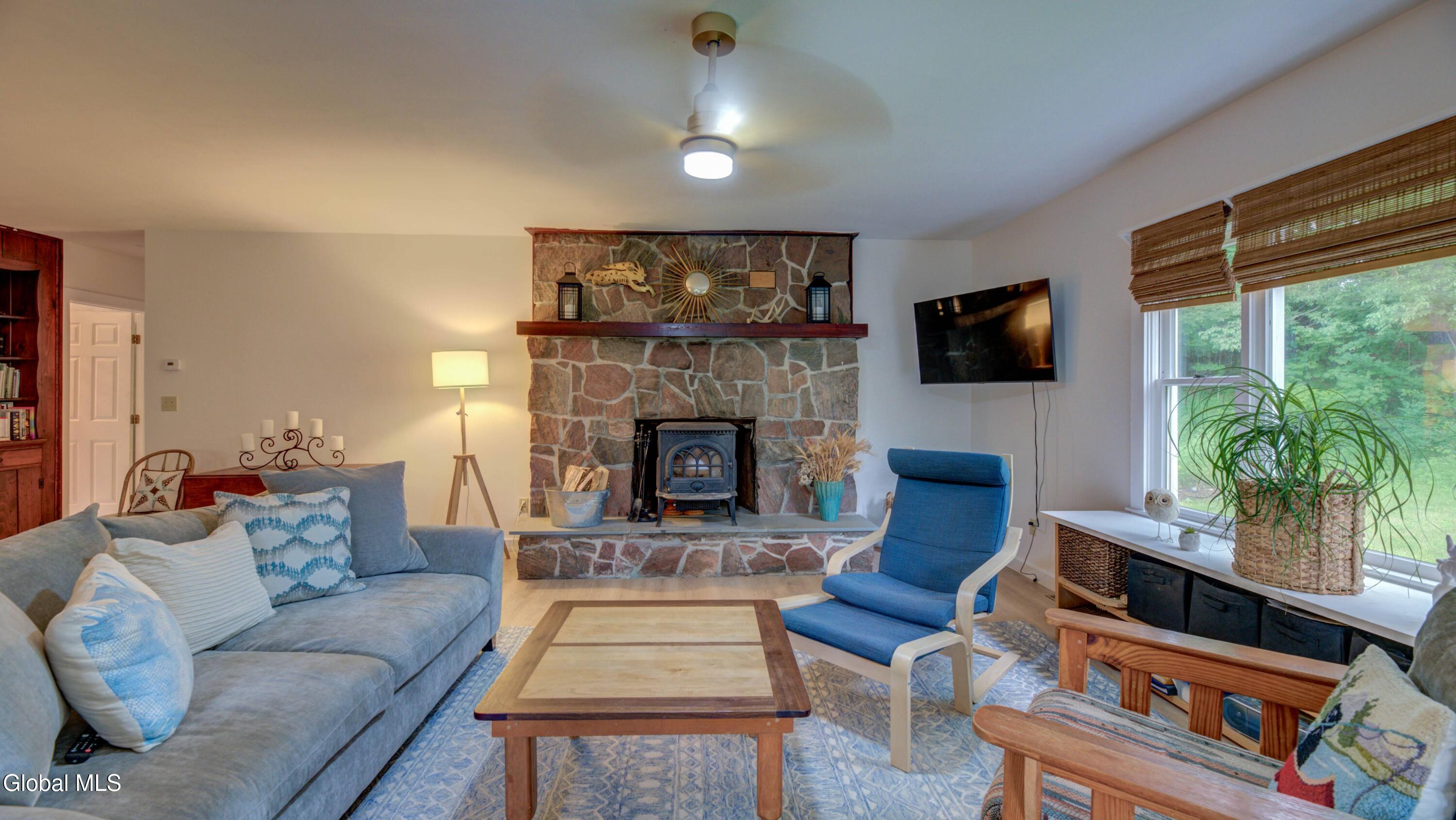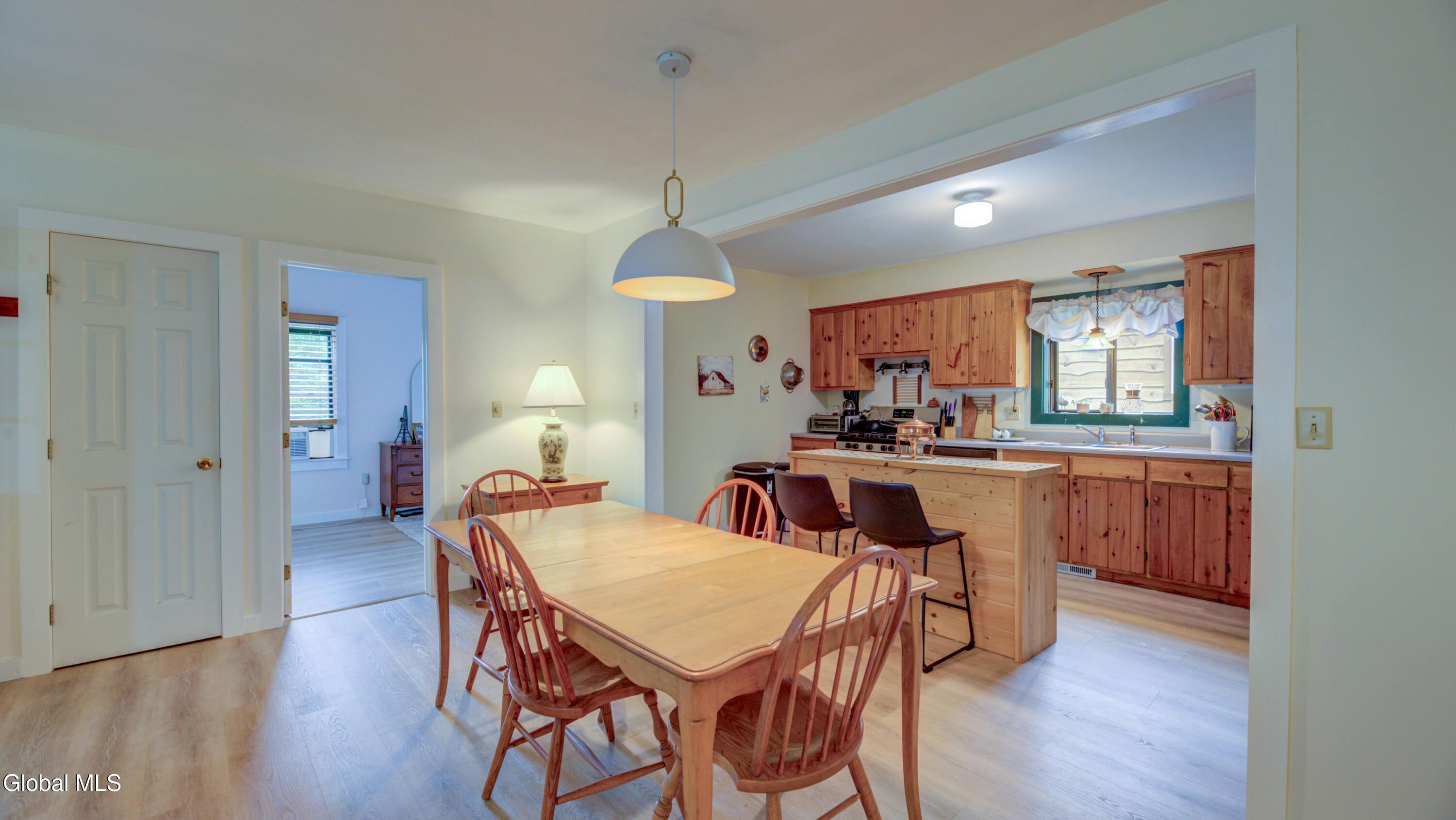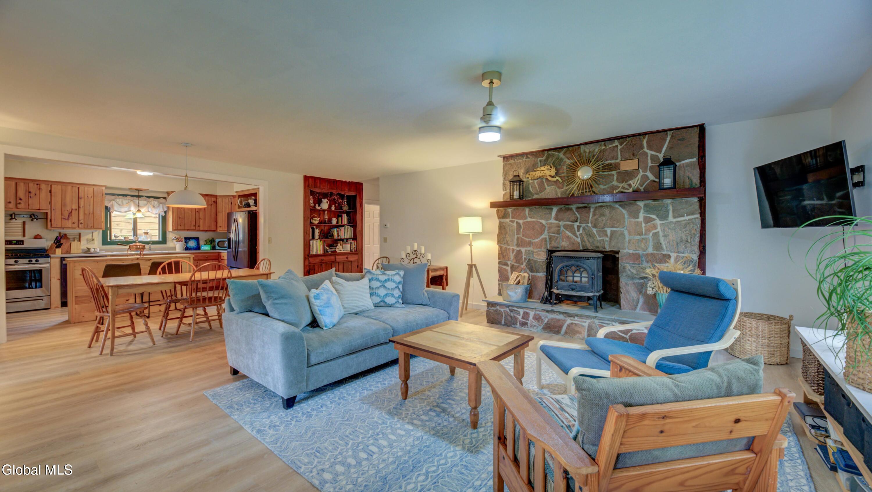 BACK ON MARKET DUE TO BUYER FINANCING ISSUES This well maintained 3 bed, 1 bath home with deeded access to Lake Algonquin is nestled in the scenic Adirondack town of Wells, NY. This property is just steps away from year-round recreational opportunities. During summer take an easy walk to the public sandy beach. In winter months, enjoy Oak Mountain (15 min), Gore Mountain (30 min) or access hundreds of miles of groomed snowmobile trails. Inside, find an inviting great room with a stone fireplace and Jotul wood stove. The kitchen has wood cabinetry and new appliances. New vinyl plank flooring ties the rooms together. The bathroom is renovated and is bursting with spa like style and contains a new washer & dryer. The two out buildings have underground electric & can be used for storage or a workshop. Portable generator will convey.