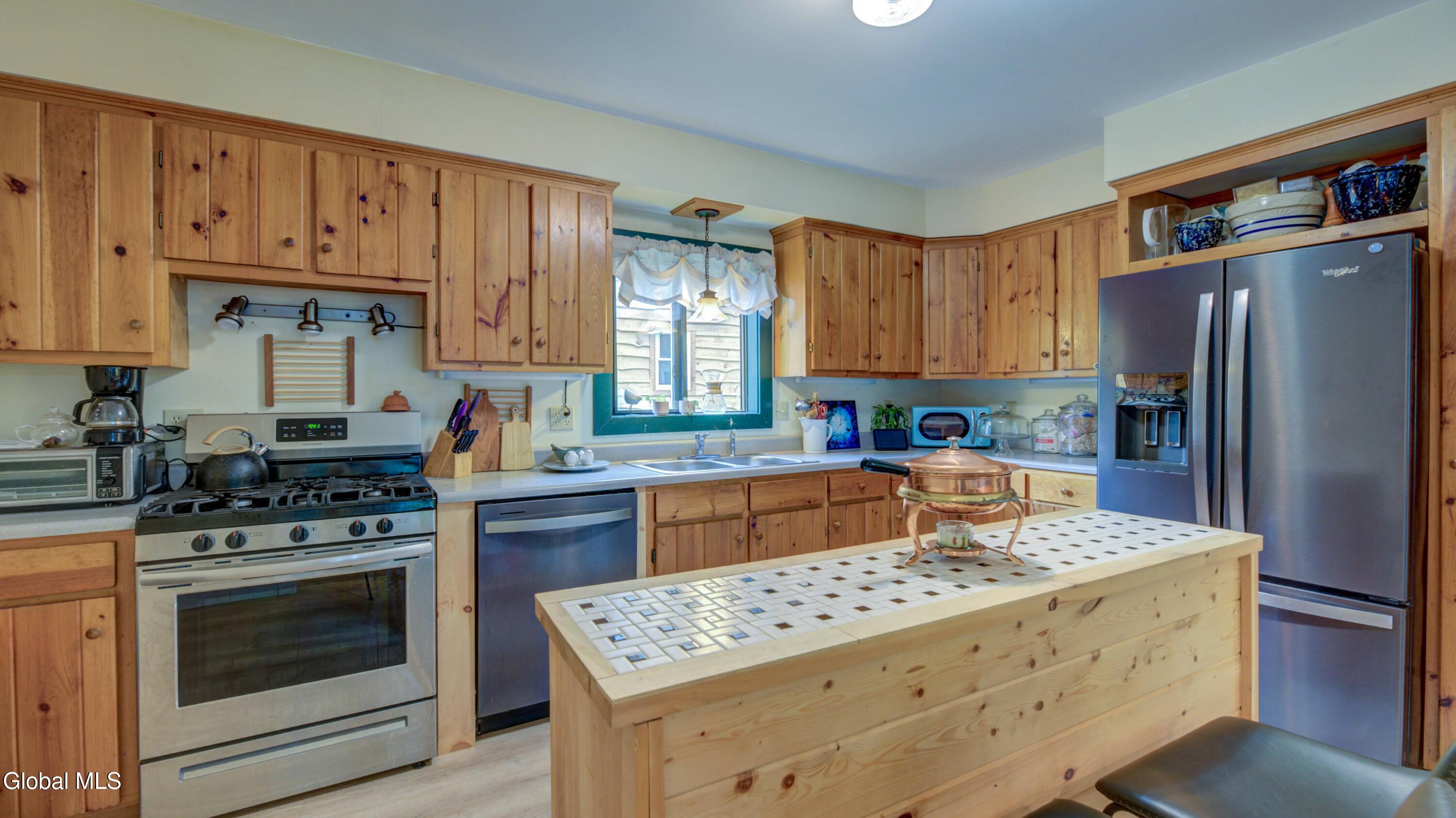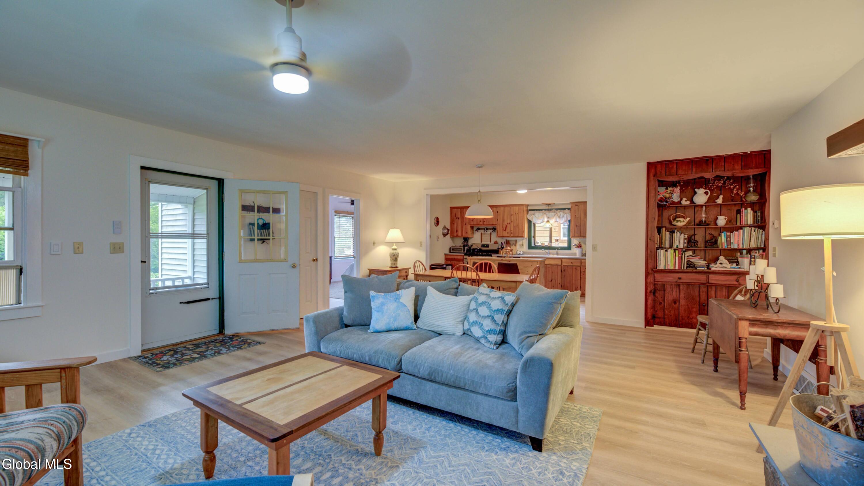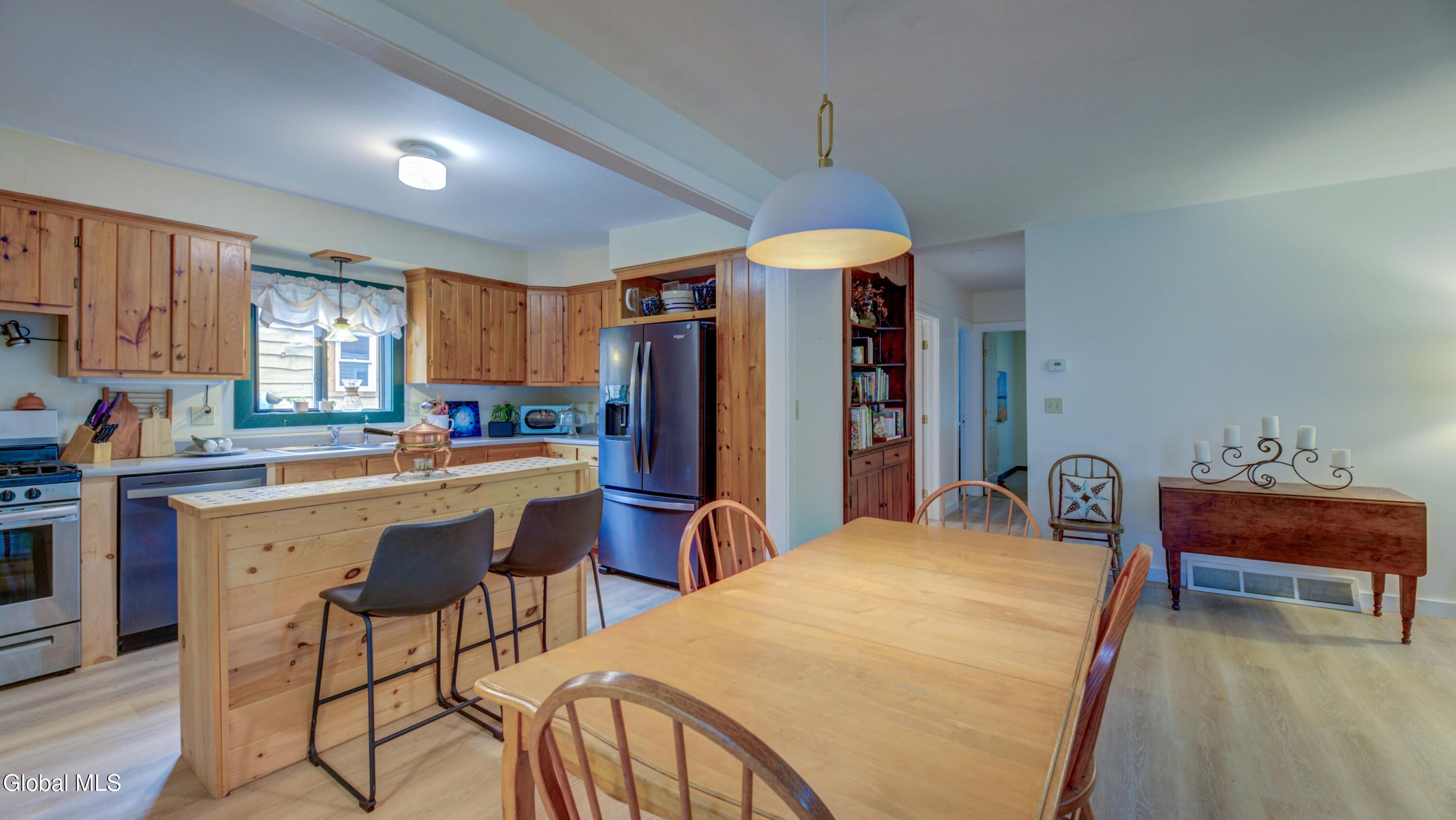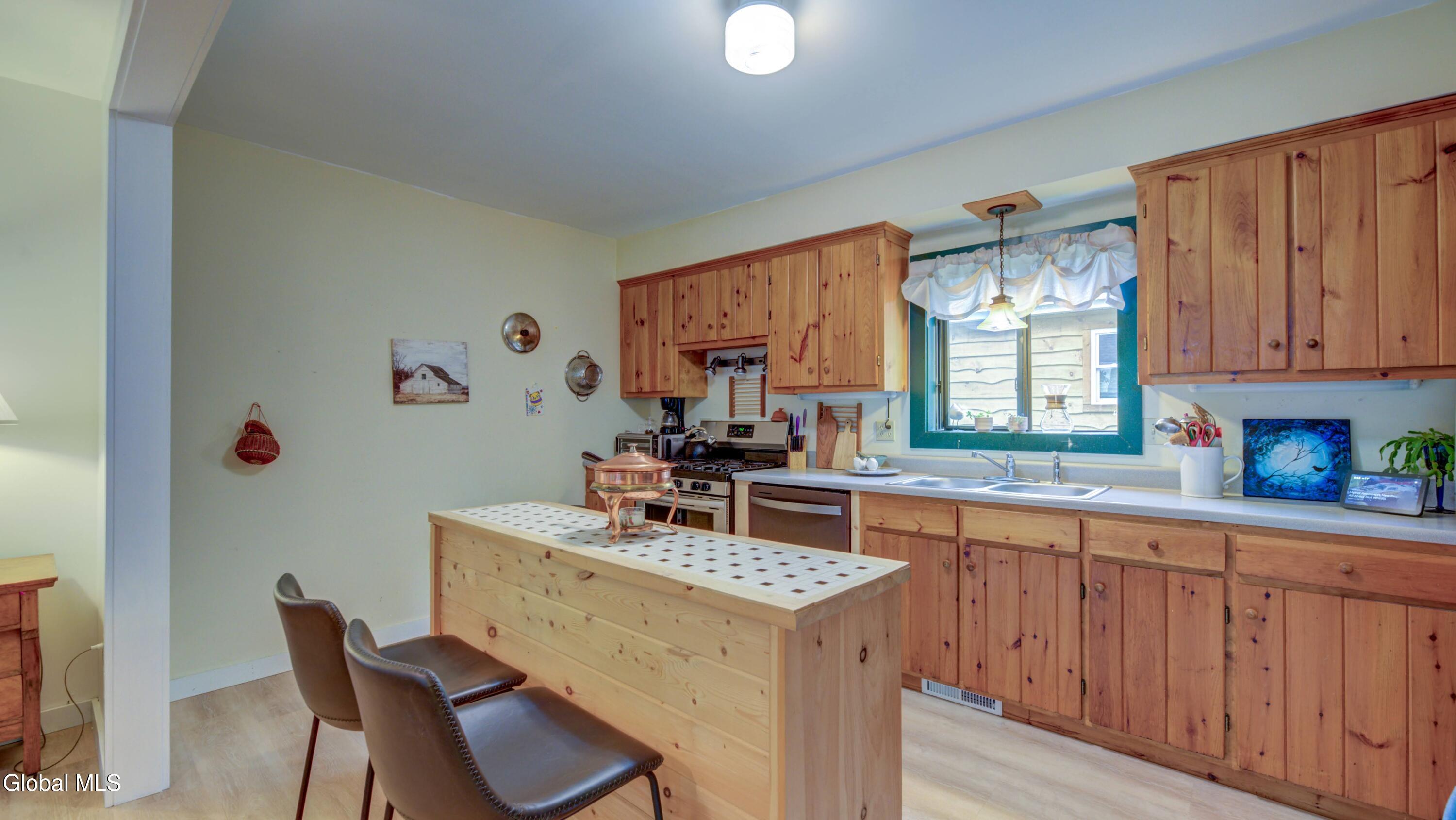 BACK ON MARKET DUE TO BUYER FINANCING ISSUES This well maintained 3 bed, 1 bath home with deeded access to Lake Algonquin is nestled in the scenic Adirondack town of Wells, NY. This property is just steps away from year-round recreational opportunities. During summer take an easy walk to the public sandy beach. In winter months, enjoy Oak Mountain (15 min), Gore Mountain (30 min) or access hundreds of miles of groomed snowmobile trails. Inside, find an inviting great room with a stone fireplace and Jotul wood stove. The kitchen has wood cabinetry and new appliances. New vinyl plank flooring ties the rooms together. The bathroom is renovated and is bursting with spa like style and contains a new washer & dryer. The two out buildings have underground electric & can be used for storage or a workshop. Portable generator will convey.