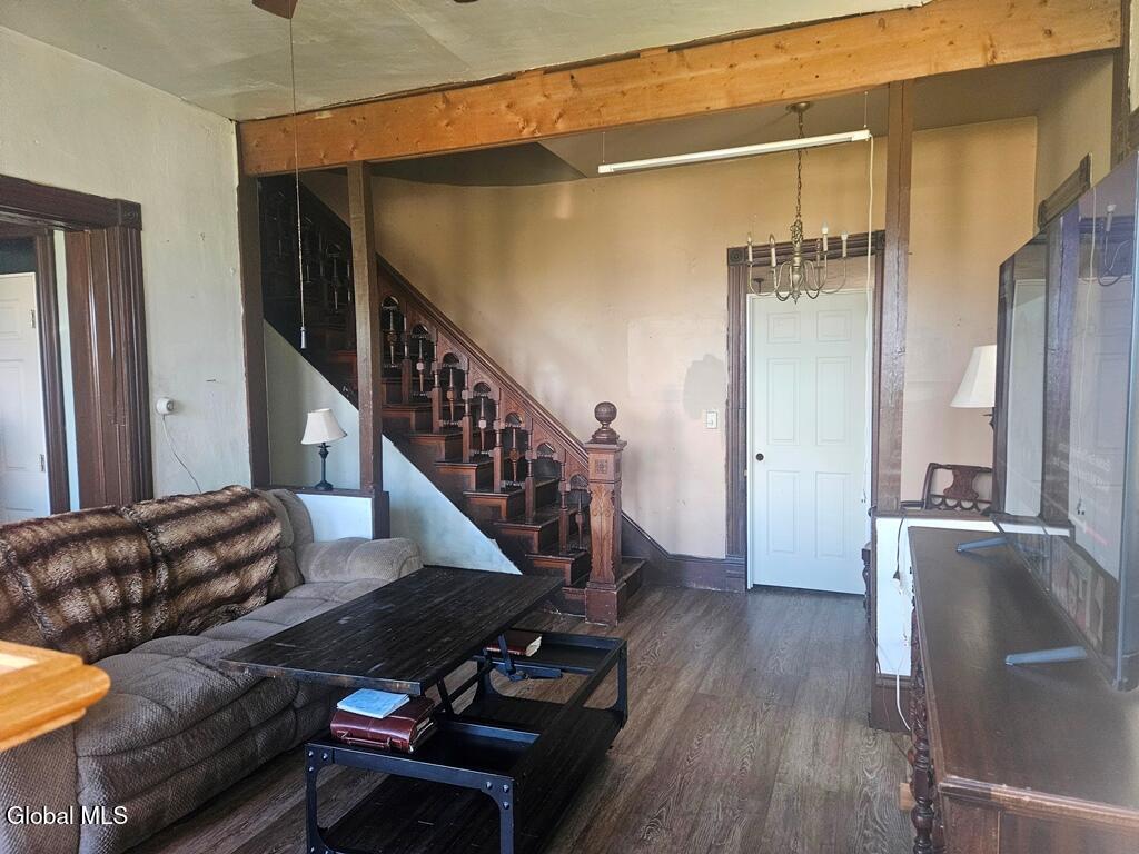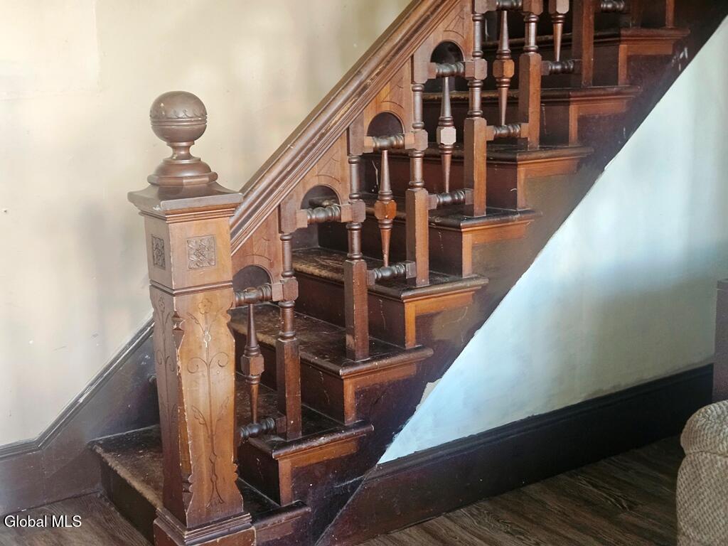 Grace and beauty of yesteryear ready to be brought back to its former glory. Beautiful staircase, and much of the old trim remains. Spacious rooms, bow window, very large bedroom on the first floor. Most mechanicals were recently updated. Add finishing touches to your taste.