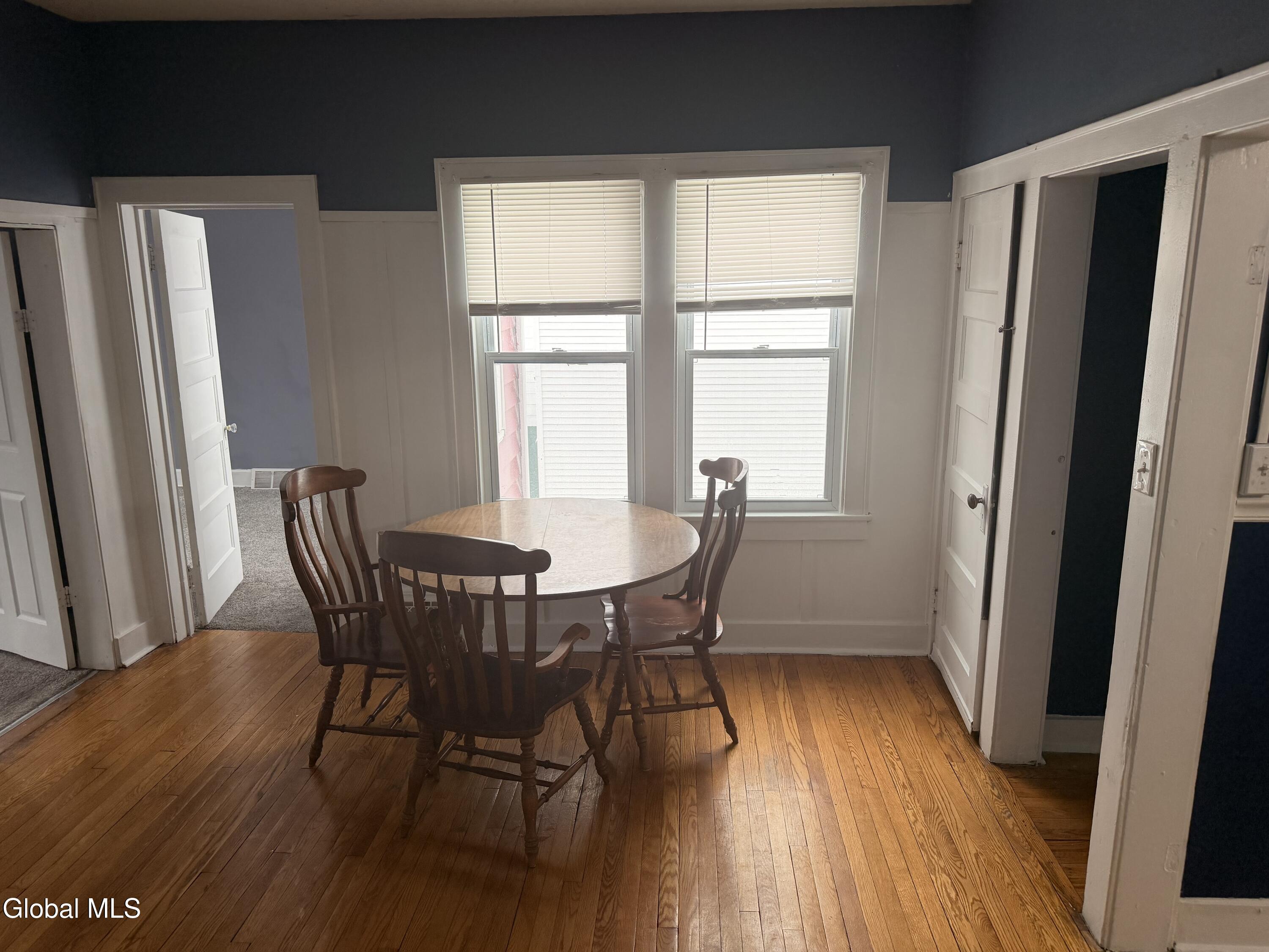 Located on a quiet one-way street two minutes to highway, this home features a main floor with 1-2 bedrooms and a full bath, along with original hardwood floors. The top floor offers two bedrooms, a walk-in closet, and a renovated bathroom. The big dry basement includes laundry and plenty of storage with access to garage and outside. With a large enclosed front porch, a fenced backyard, and off-street parking for two. Gas hot air heat with a programmable thermostat, 5 year old roof, A spacious back deck is perfect for BBQs and offers great views of the Albany fireworks. Just waiting for your personal touches!