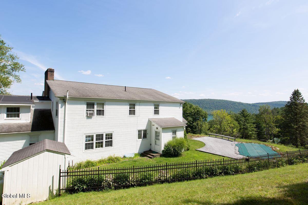 With elevated lake views and a quiet cul-de-sac setting, this 4,200 sq. ft. home offers privacy just 10 minutes from Cooperstown. Set on 1.79 acres, it features a dramatic two-story entry, cathedral ceilings, wood-paneled den with fireplace, vintage metal kitchen cabinets, sun-filled Florida room, and first-floor bedroom. Enjoy an in-ground pool, fenced yard, and deeded Otsego Lake access. A walk-out basement includes a rec room, workshop, laundry, and second garage. Flexible bonus room upstairs. Close to museums, golf, Glimmerglass Festival, and more.