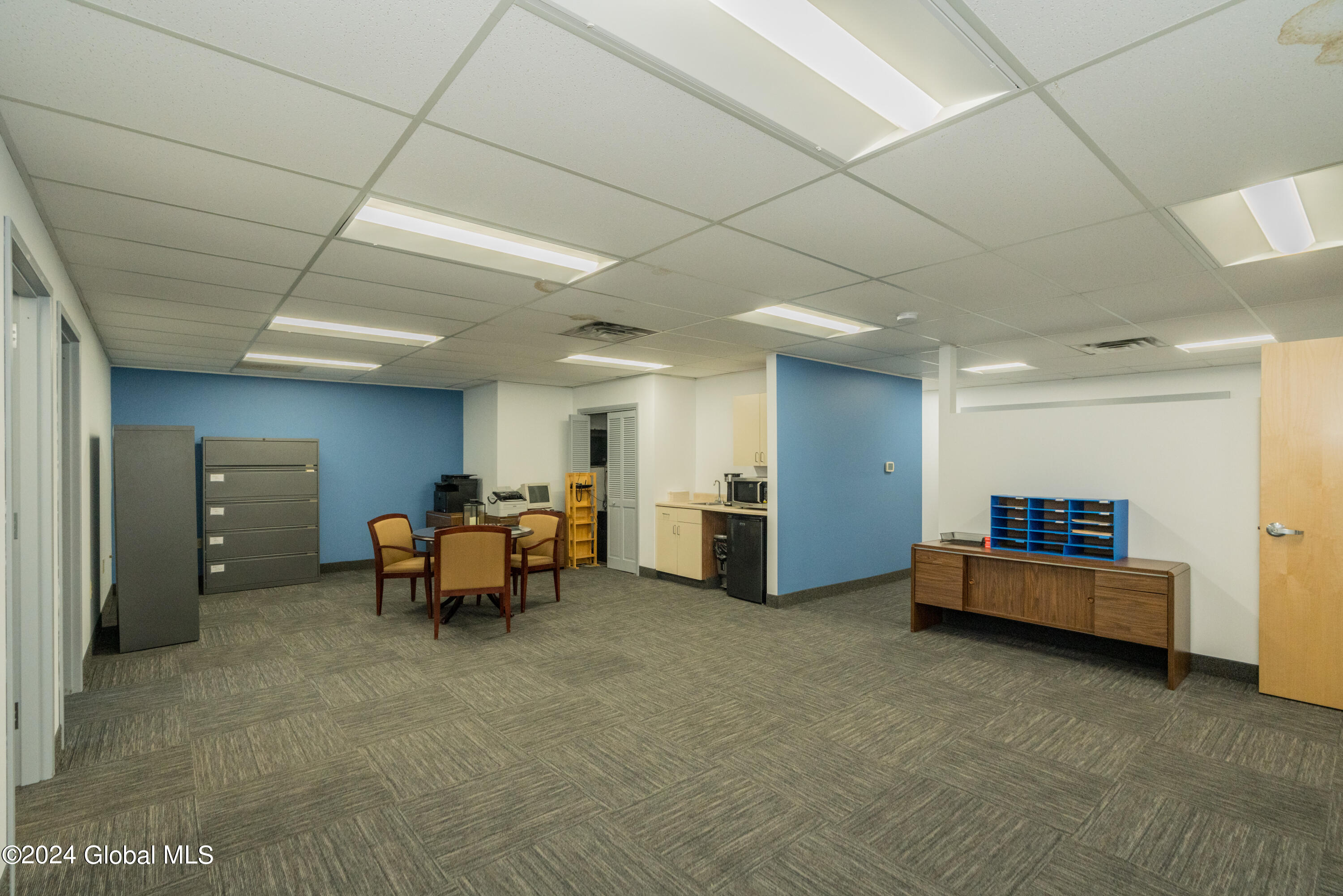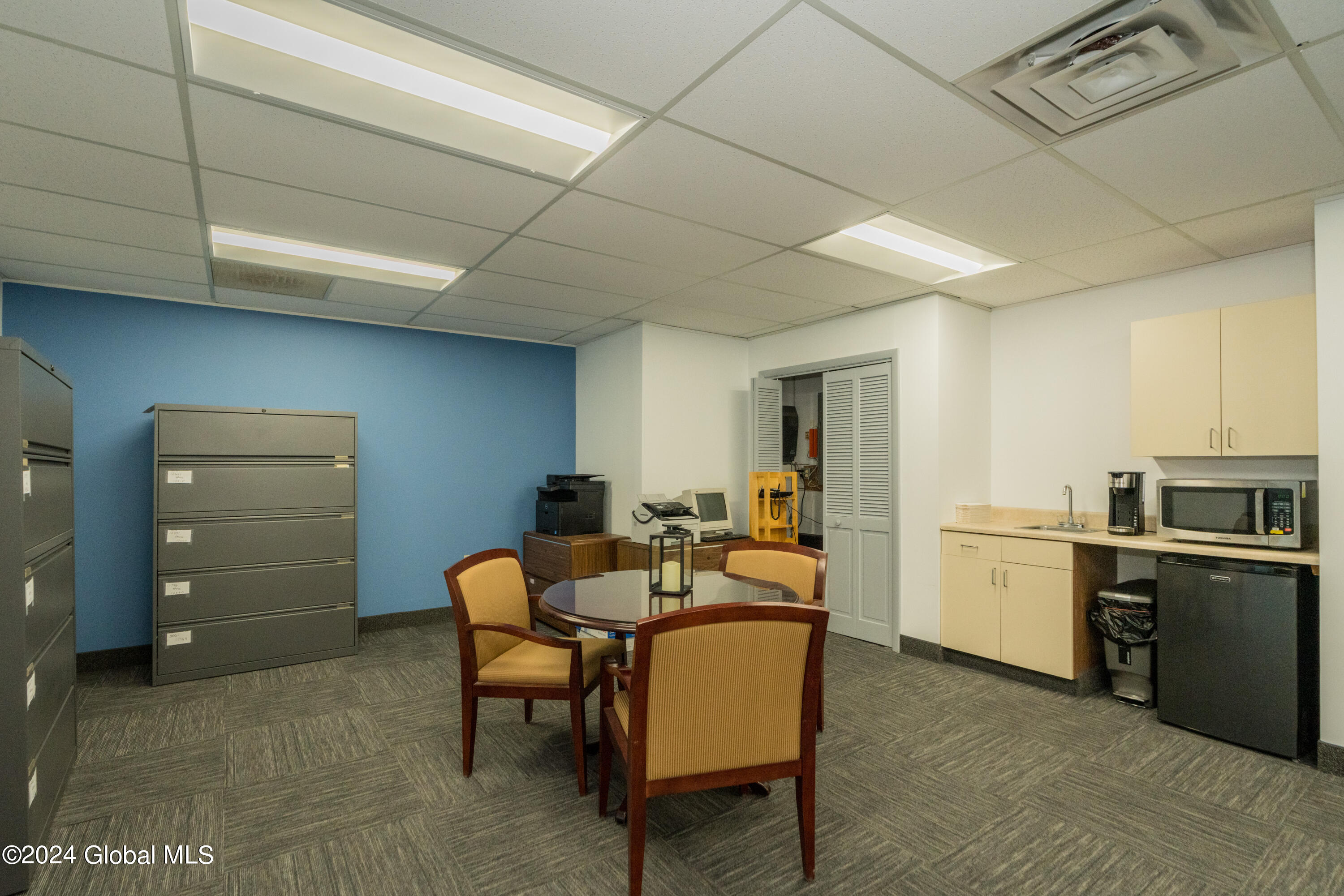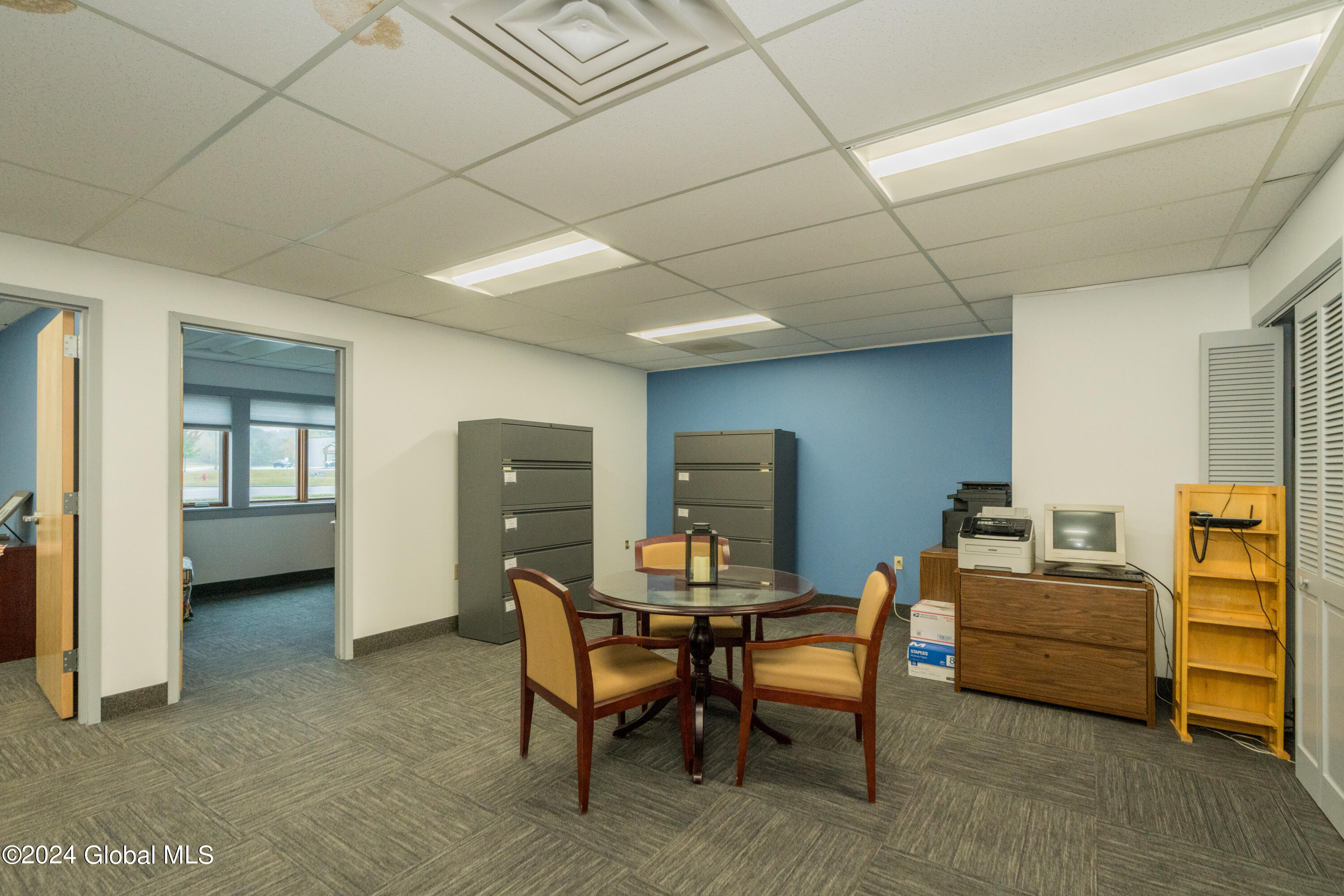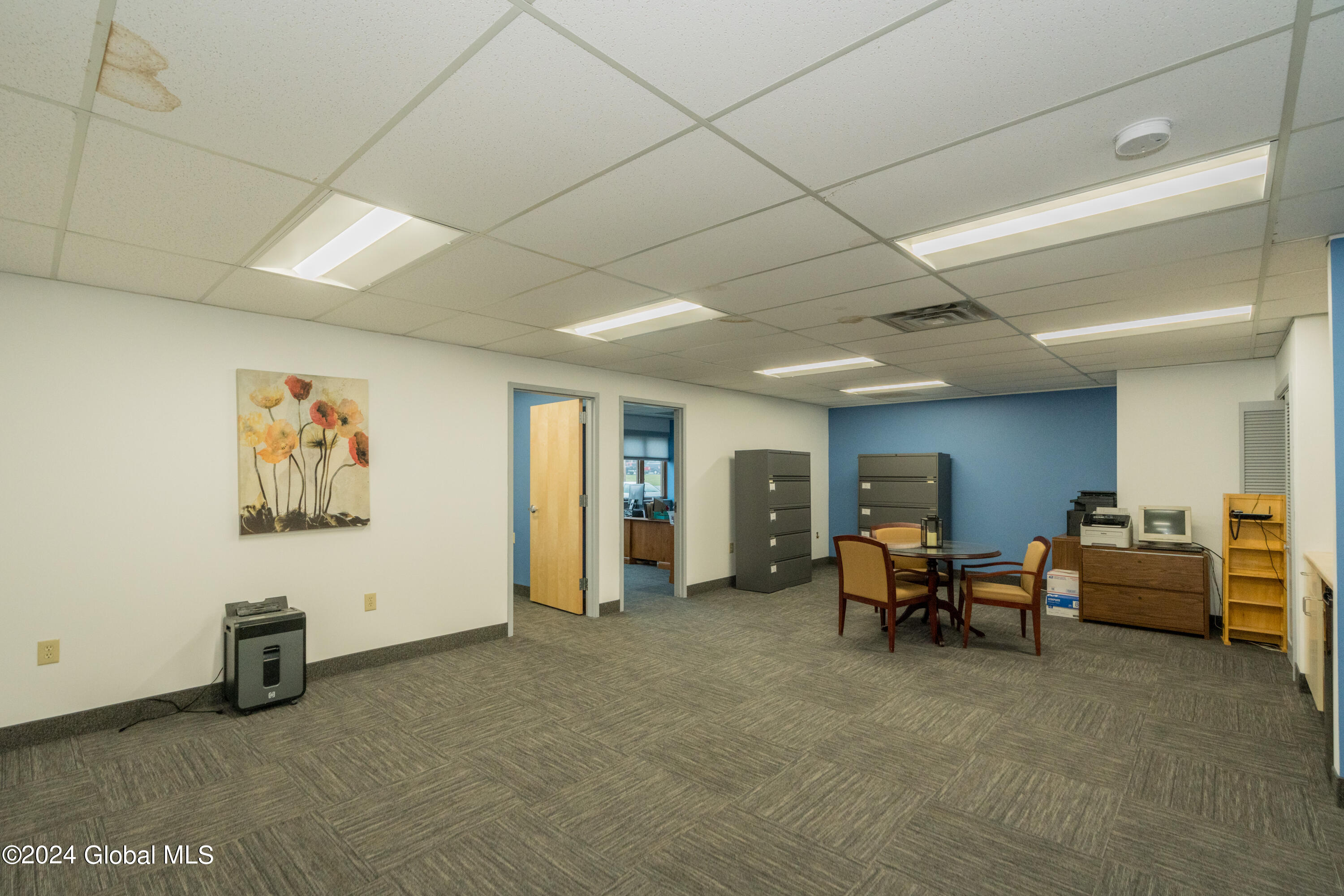 Spacious, well laid out professional office space in quiet complex. Currently fit up with 4 offices, reception area, large common area, 2 restrooms and kitchenette. Private entrance with waiting area and plenty of parking. Ideal for office, medical and spa services.