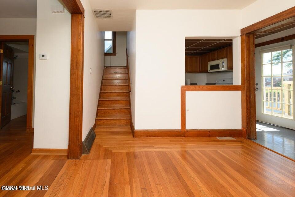 Currently used as a rental property and leased until Sept 30, 2026. Strong rental history, near bus line, highly visible location for home, or business with ample newly paved parking. A perfect investment property, centrally located near shopping, businesses, banks, conveniences restaurants. This solid home features gorgeous redone hardwood floors, a full bath on each floor, spacious rooms, a cozy dining rm with gas stove and spacious partially fenced yard. Guest house in yard is being offered ''as is''. Tenants require 24 hours notice for showings. Buyers can close now, but cannot occupy till 10/1/26.