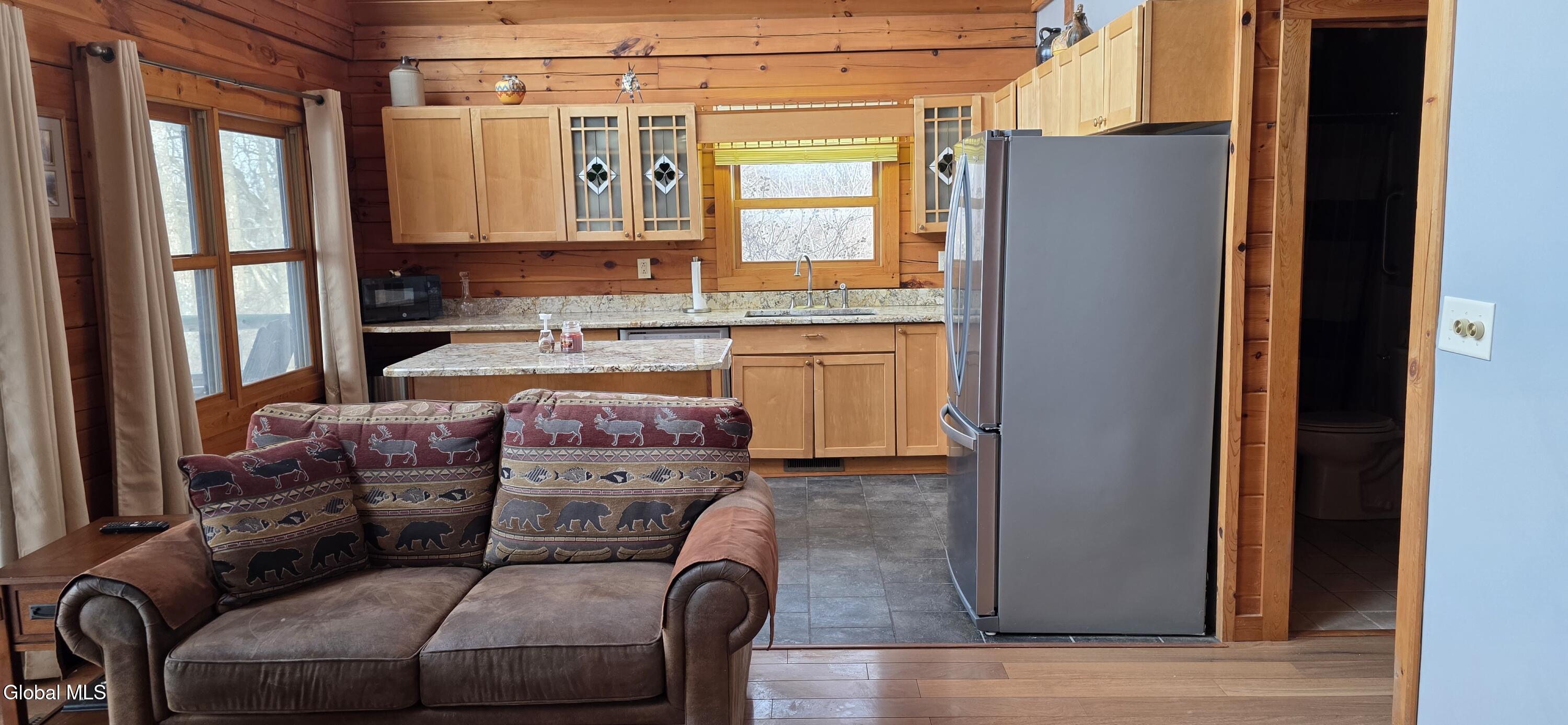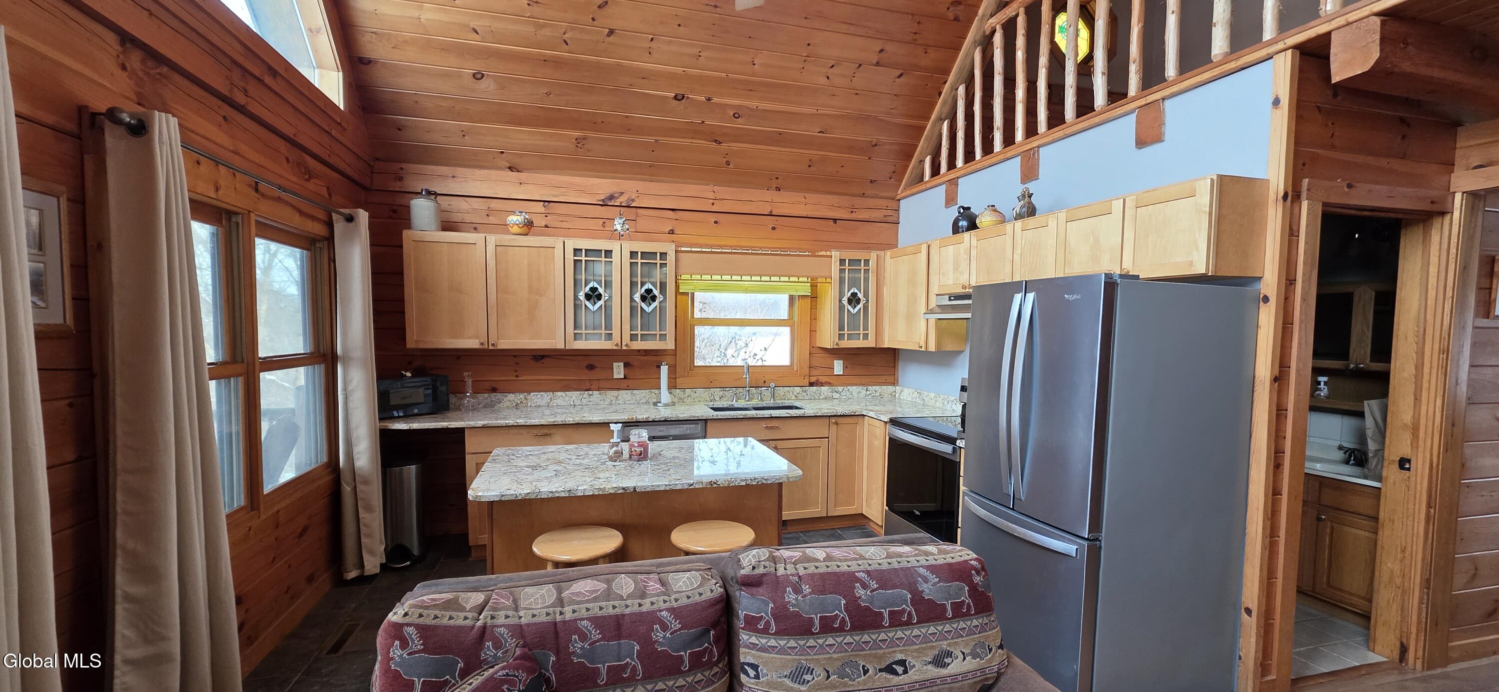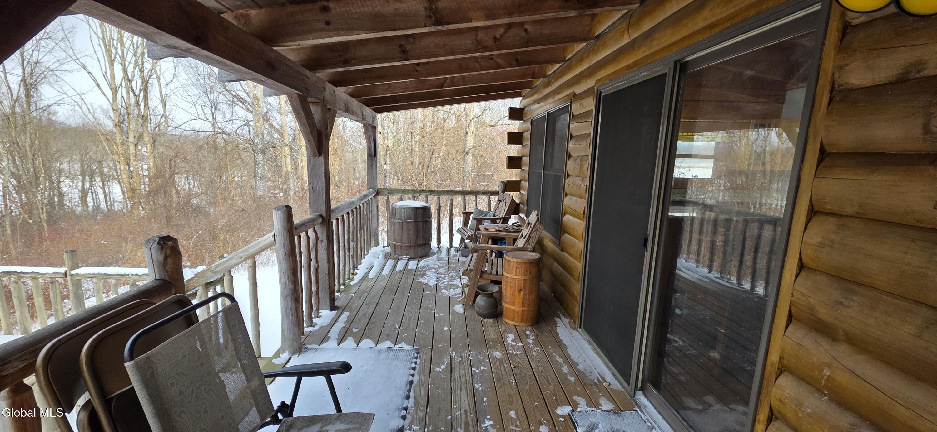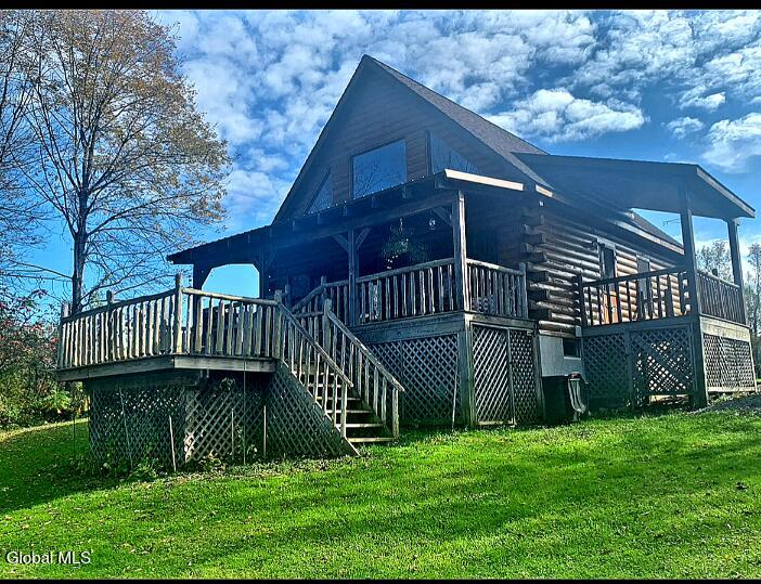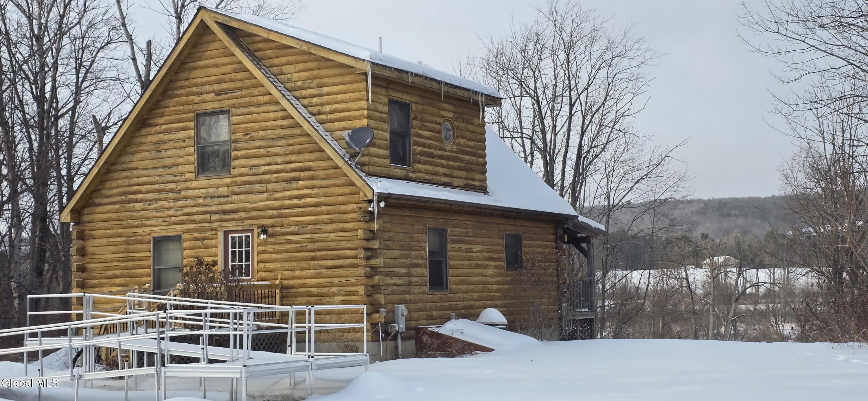 Escape to the tranquility of your own private retreat with this modern log cabin. Nestled on 8.3 private countryside acres, on the banks of the Schoharie Creek. Perfect for year-round living, a weekend getaway of even an money-making AirB&B! This custom home is perched hillside, with a rear porch and deck overlooking the Schoharie creek and beyond. Built in 2004, features include 2-3 bedrooms, 2 full baths, cathedral ceilings, open floor plan, full basement w/Bilco doors, well thought out kitchen layout w/large island, granite countertops, stainless steel appliances & maple kitchen cabinets (three w/stained glass fronts w/clover inserts). Upstairs bedroom w/loft area overlooking the living space, second bath w/standup shower and bidet, open staircase with natural wood railings, hardwood floors and a stained glass window w/Celtic Cross. Property may be sold with or without furnishings.