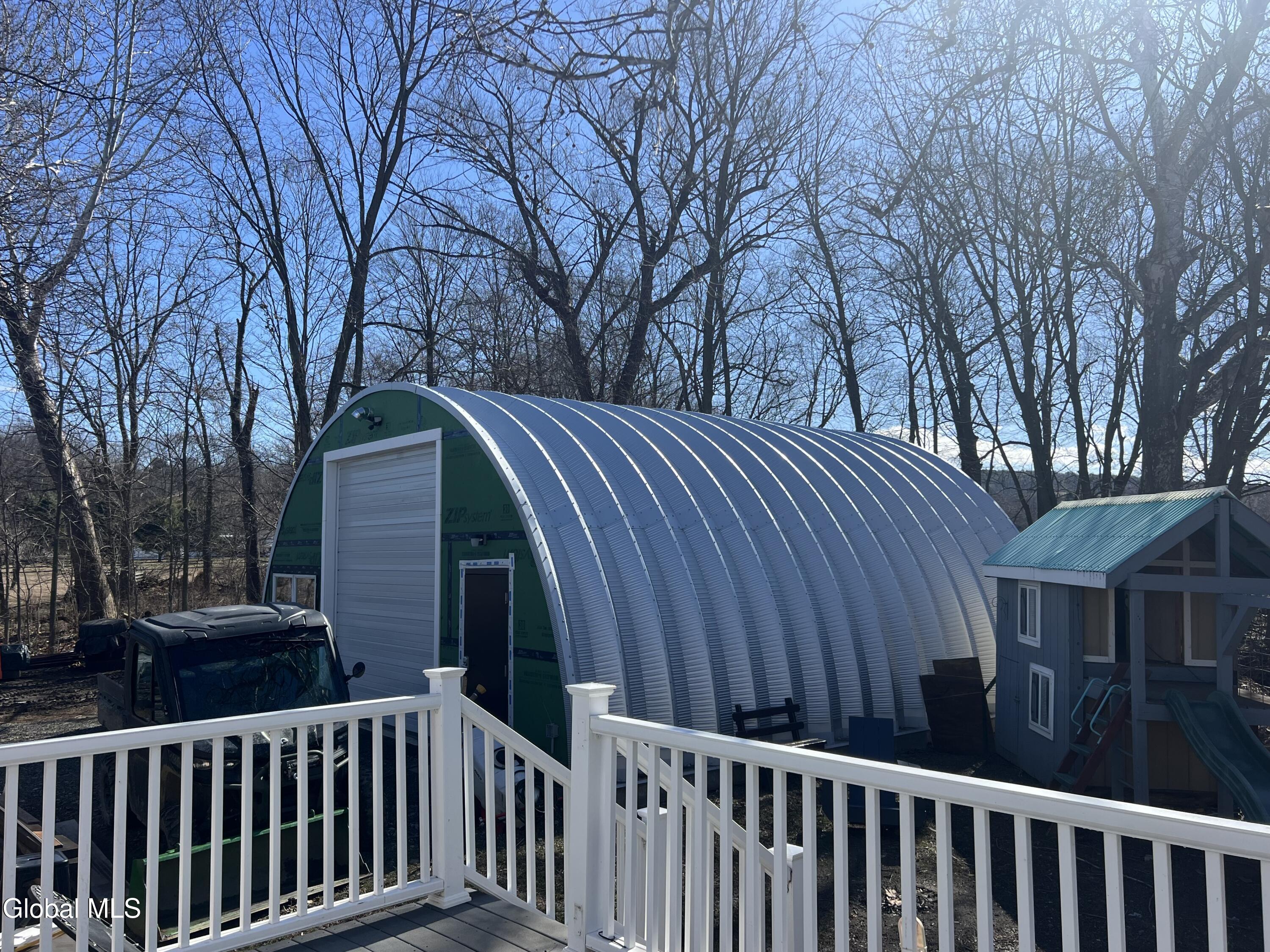 Wonderful Claverack ranch style country home sitting on 1 acre with meandering stream throughout the property. Updated eat-in kitchen with commercial Viking range, stainless appliances and French door to large Trex deck. Living room with beamed ceiling, primary bedroom with 1/2 bath. Porch has been used as 3rd bedroom. Furnace is 4 years old, windows replaced and roof is 10 years old. Outside is a 30x30 Quonset hut with 12 foot door, concrete floor, propane heat and 100 amp electric. Also on property is a grandfathered mobil home, currently used for storage but with a little TLC could be a great guest or in-law area. Mobil home can be replaced with a new same size home. Separate electric, well/septic shared with main property. Taconic schools and close to Hudson.