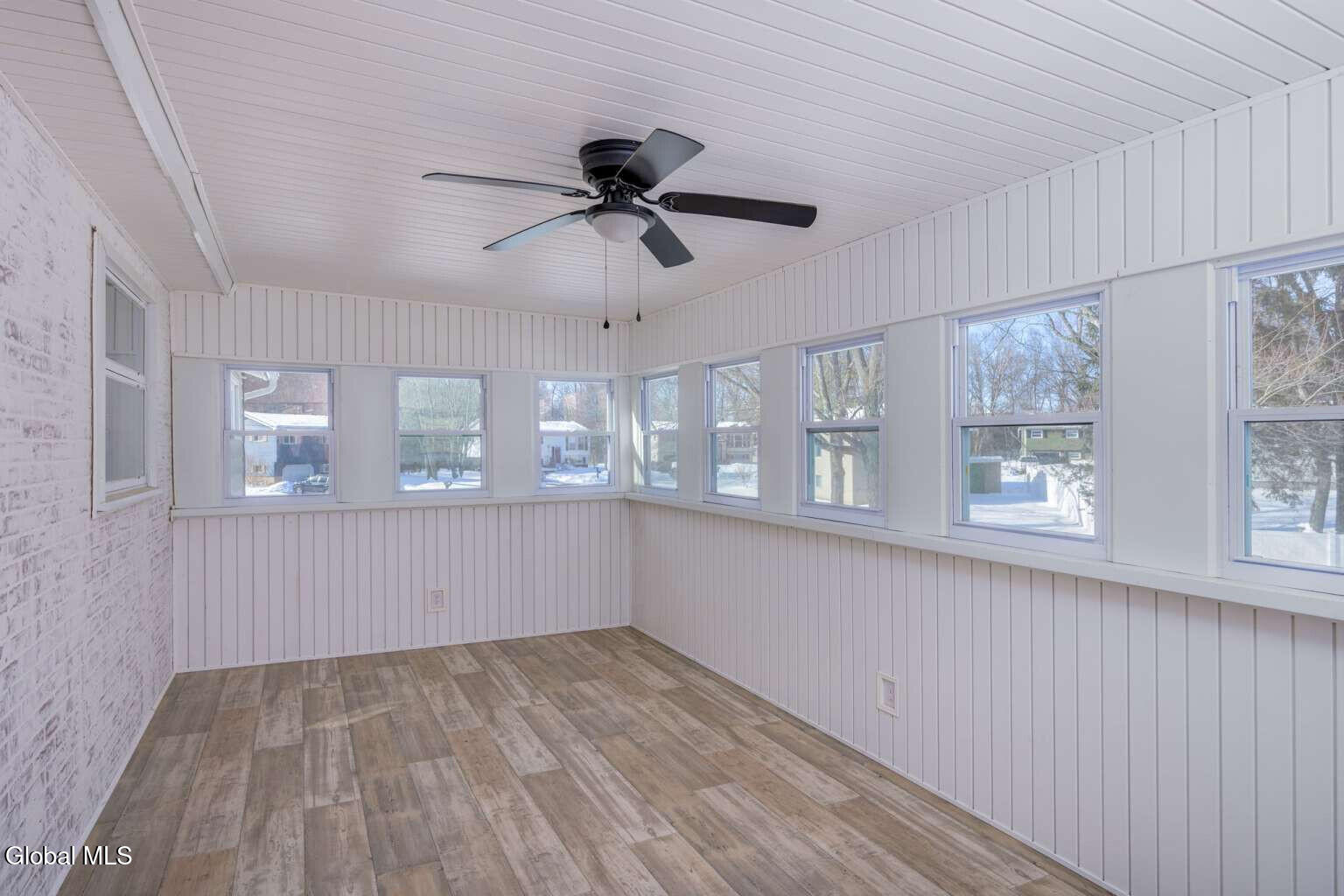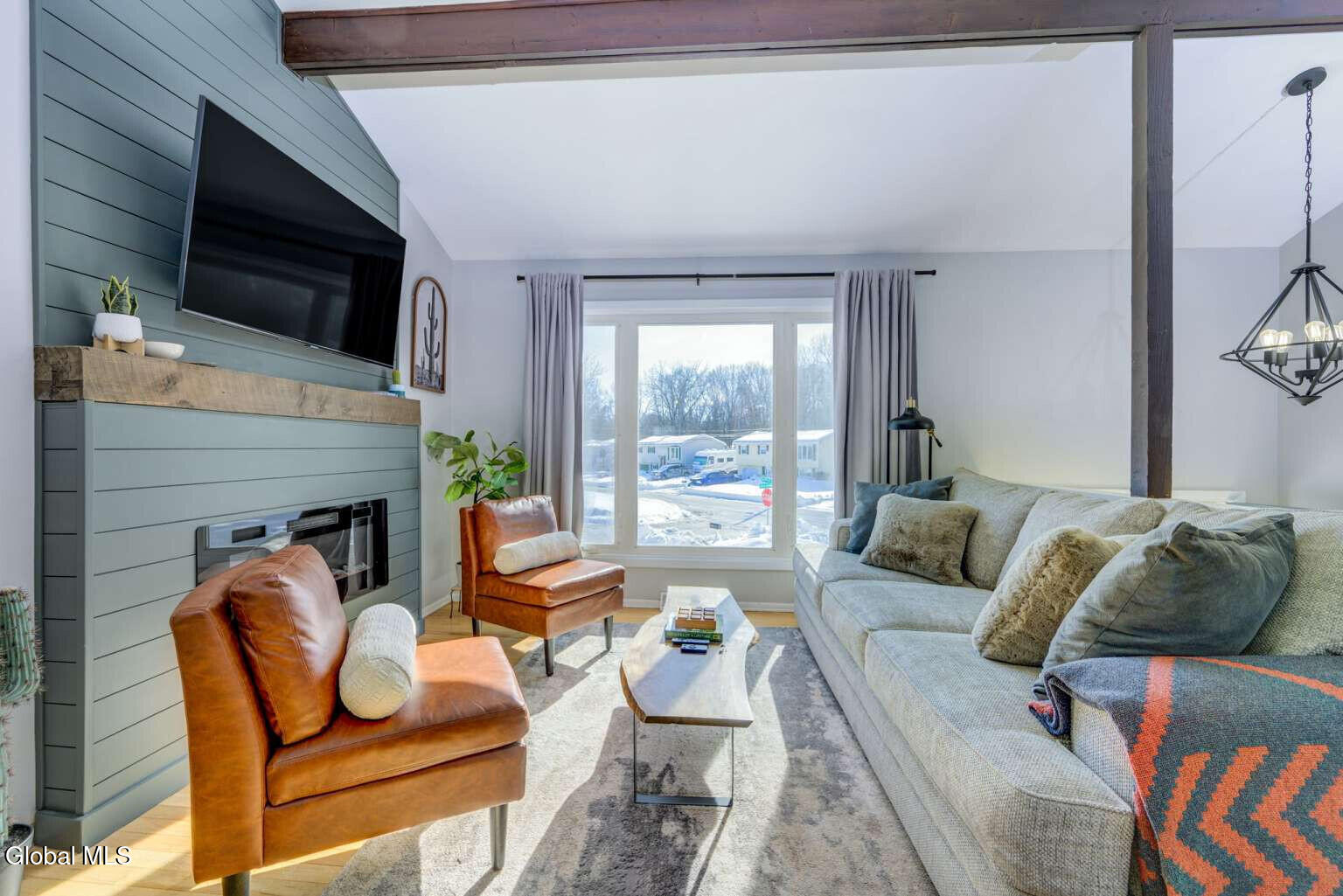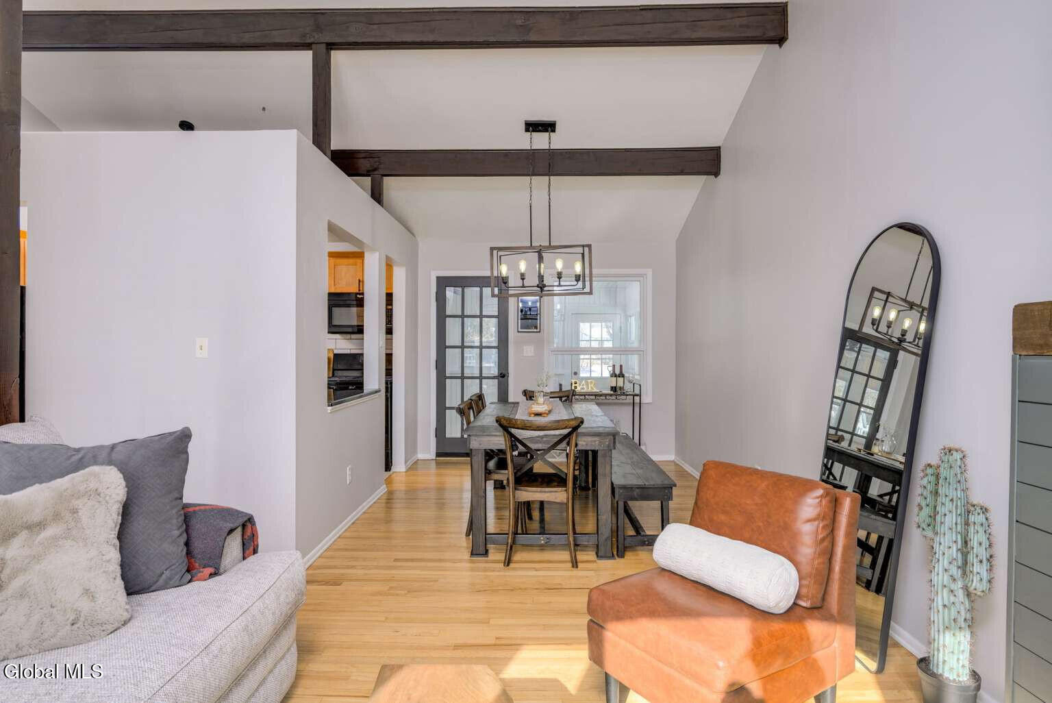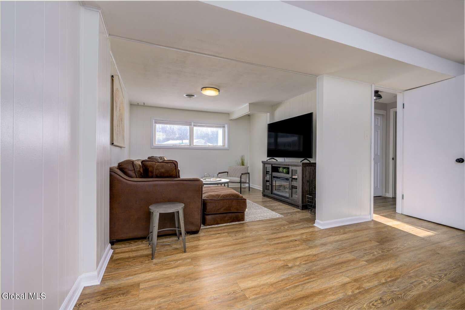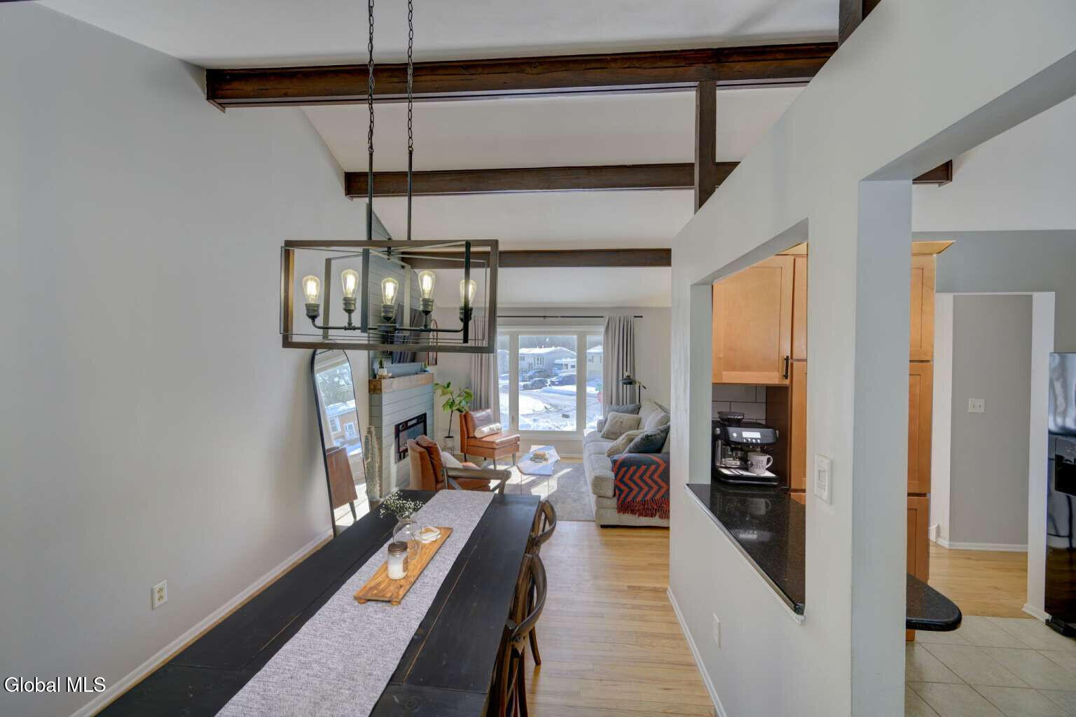 Welcome to this beautifully maintained 3-bedroom, 2-bath, 1604 SF home in the desirable Village of Colonie! The main level features three bedrooms, an updated full bath, and a bright living room, dining room, and kitchen with hardwood floors throughout. The living room showcases vaulted ceilings with wood beams, abundant natural light, and an electric fireplace accented by a barnwood mantel. The kitchen offers shaker cabinets, tile backsplash, and quartz countertops. A French door off the dining room leads to a fully renovated three-season room overlooking the fenced backyard. The lower level provides additional flexible living space with newer LVP flooring and a full bath. Some recent updates include a new energy-efficient furnace (2025), energy-efficient central air conditioning system (2023), Trex front porch (2023), seamless gutters (2022), and a newer Samsung washer/dryer. Outside, enjoy a patio, firepit, shed, and landscaped yard. Located in a quiet neighborhood just minutes from major shopping centers and highways. LOW taxes and free Village services, including trash and yard waste removal. Move-in ready and waiting for its next owner to make it home!