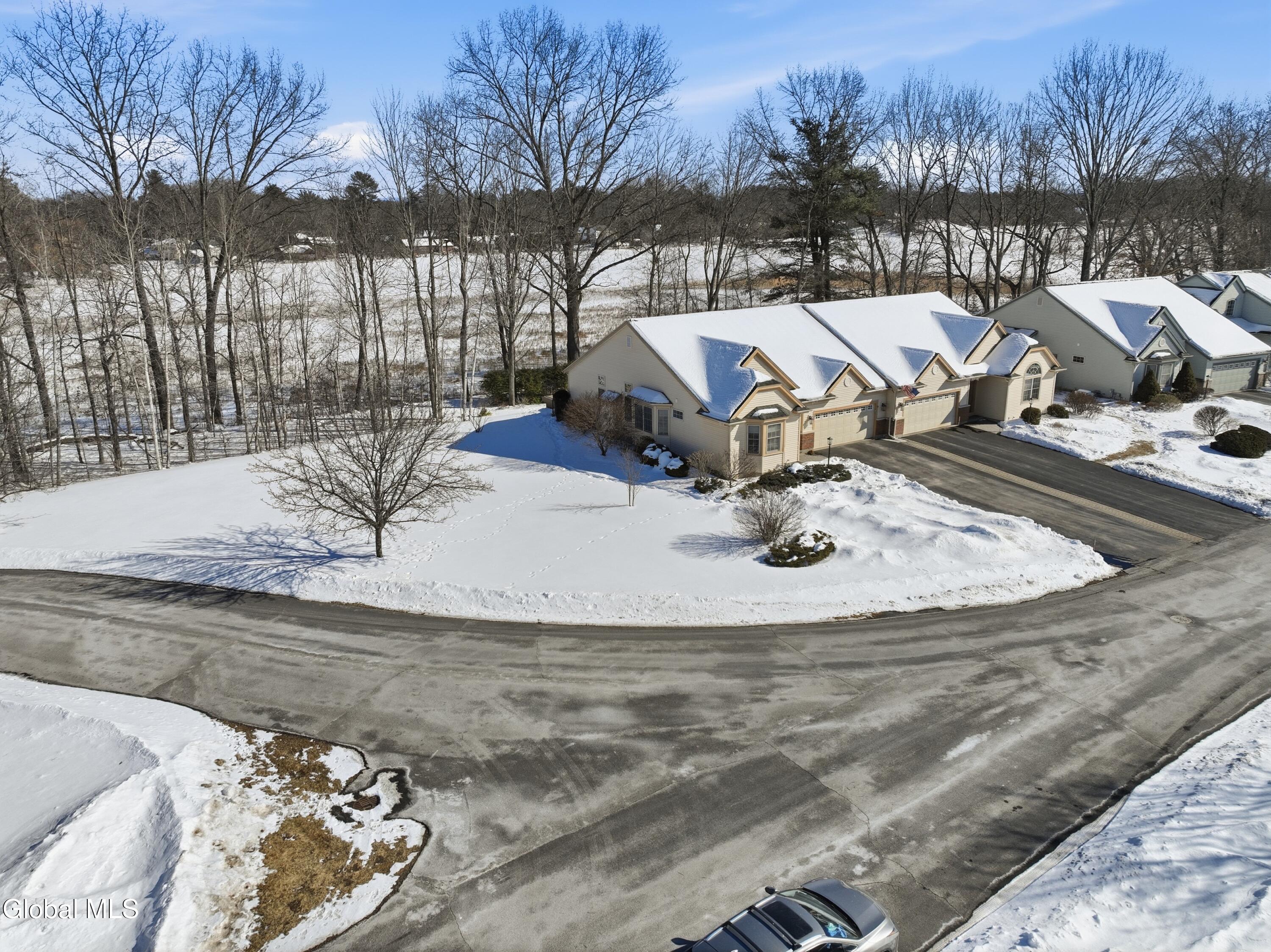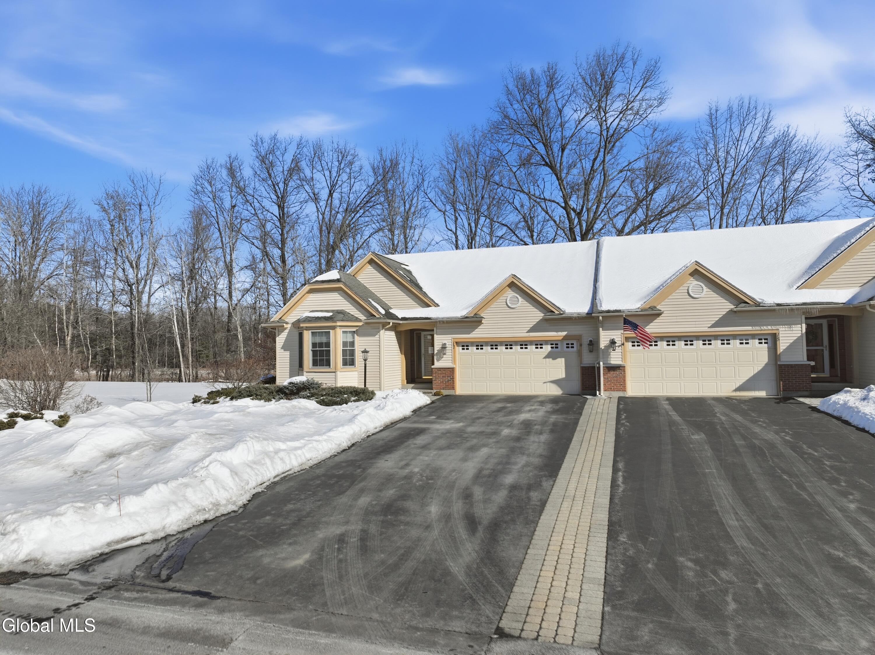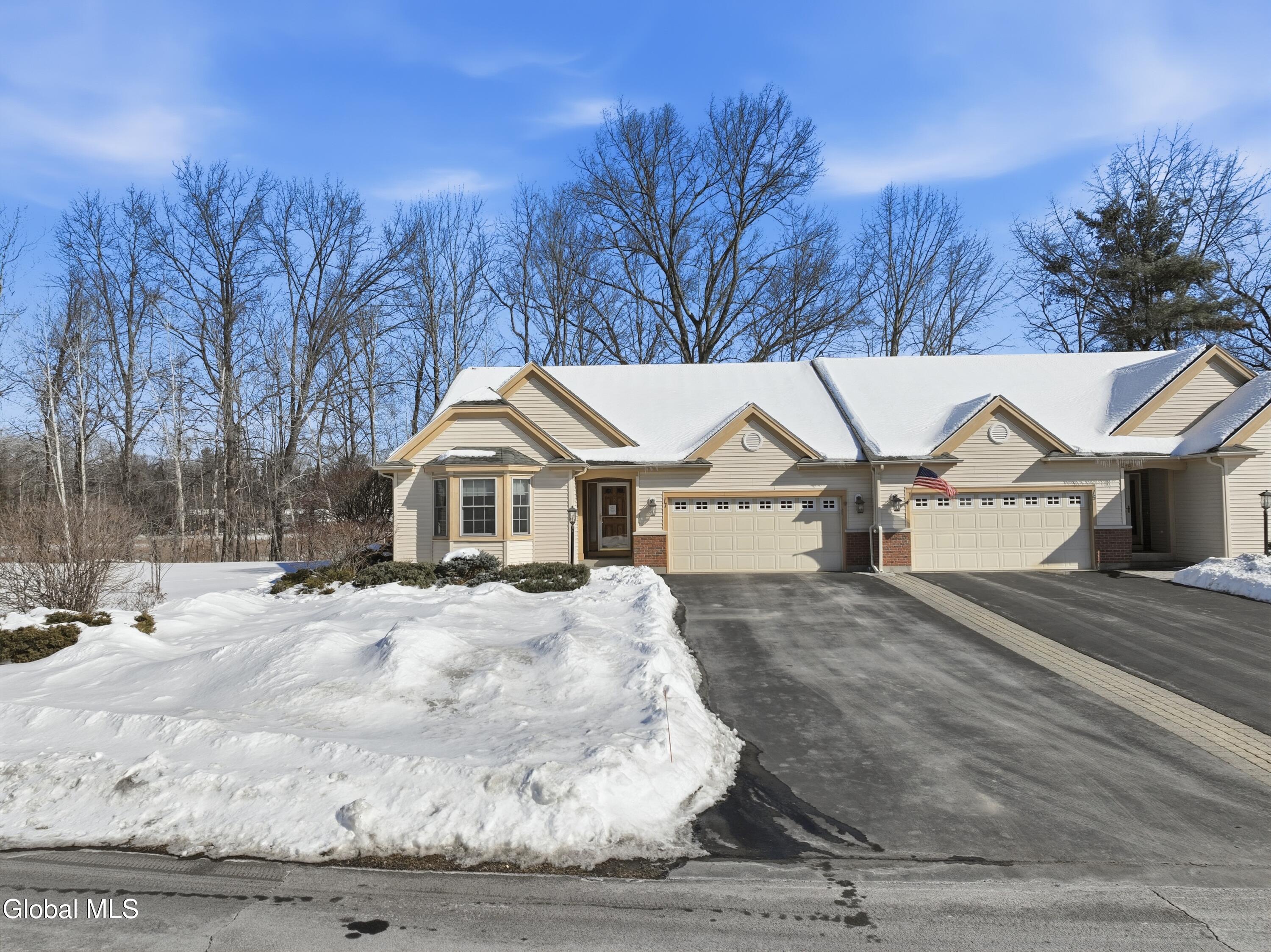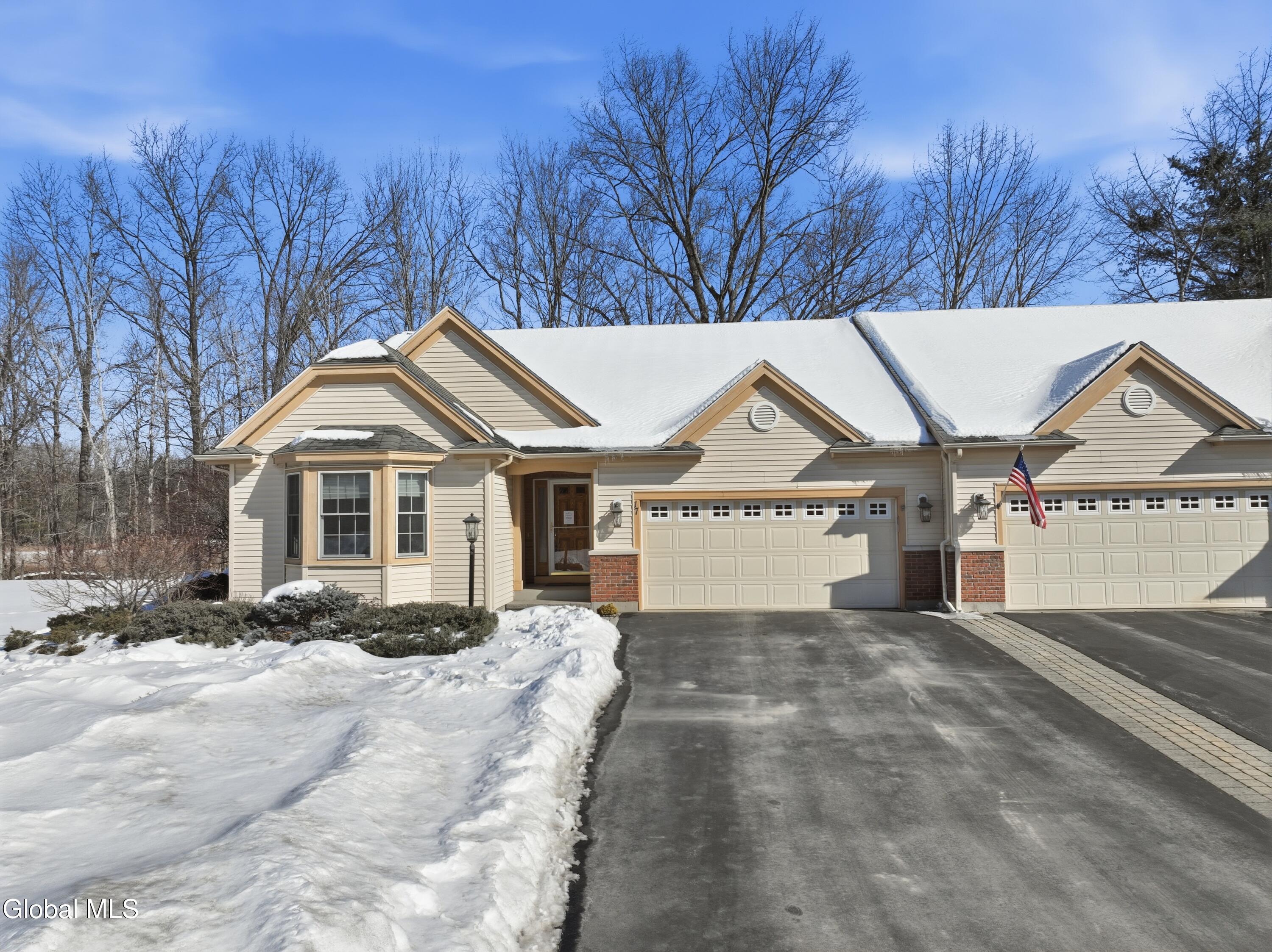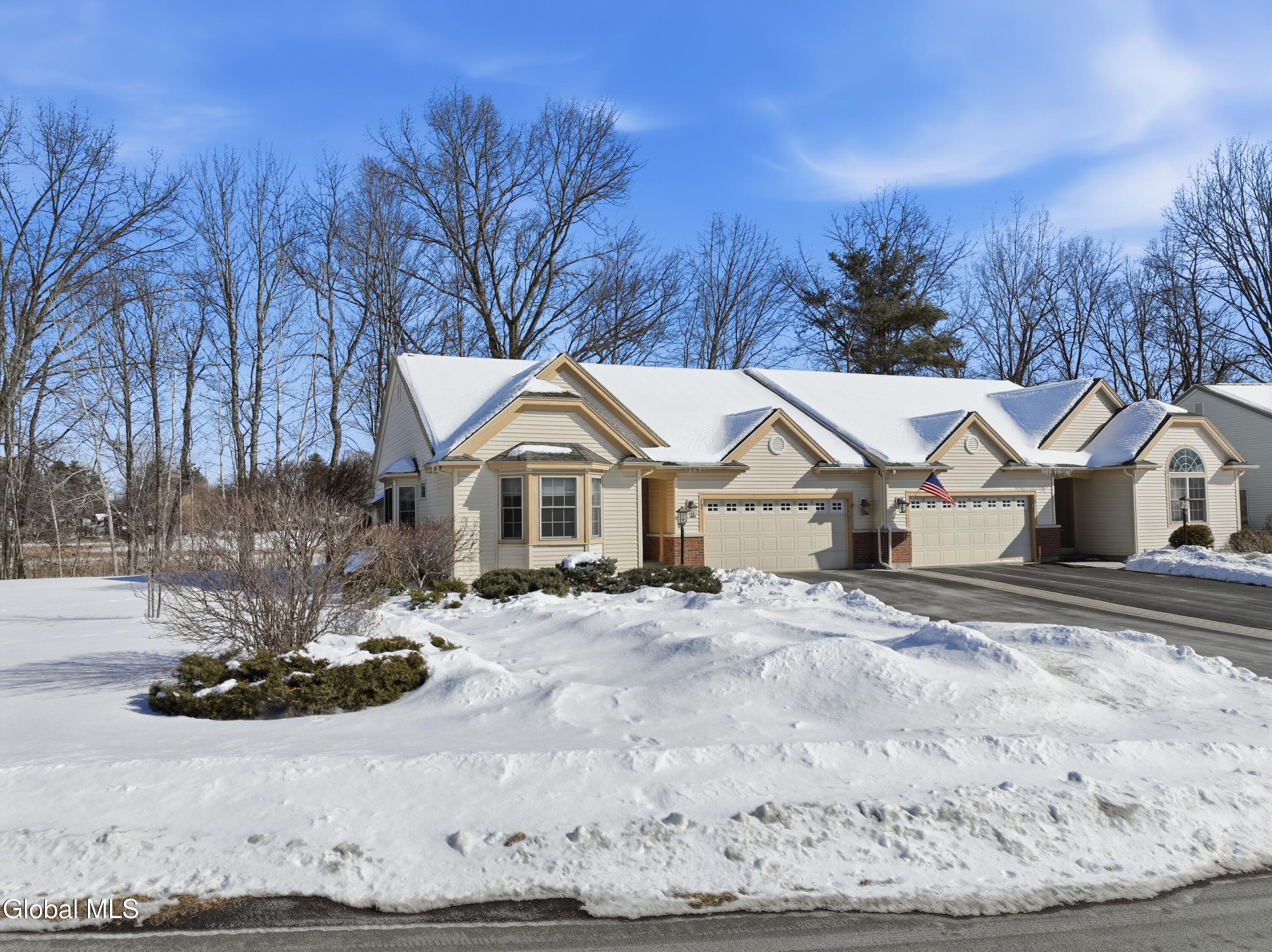 Welcome to 17 Camden Circle in Delmar, located in the highly sought-after Bethlehem School District. This 3-bedroom, 2-bath twin home offers 1,714 sq ft of true one-level living with a desirable split-bedroom layout. Hardwood floors, vaulted ceilings in the living room and second bedroom, and a gas fireplace enhance the open living, dining, and kitchen area. The private primary suite is set apart from two additional bedrooms and full bath. First-floor laundry, full basement, two-car garage, and composite deck overlooking open green space and a large side yard (w/ multi zone in ground sprinkler system) complete this maintenance-free home in a convenient Delmar location.