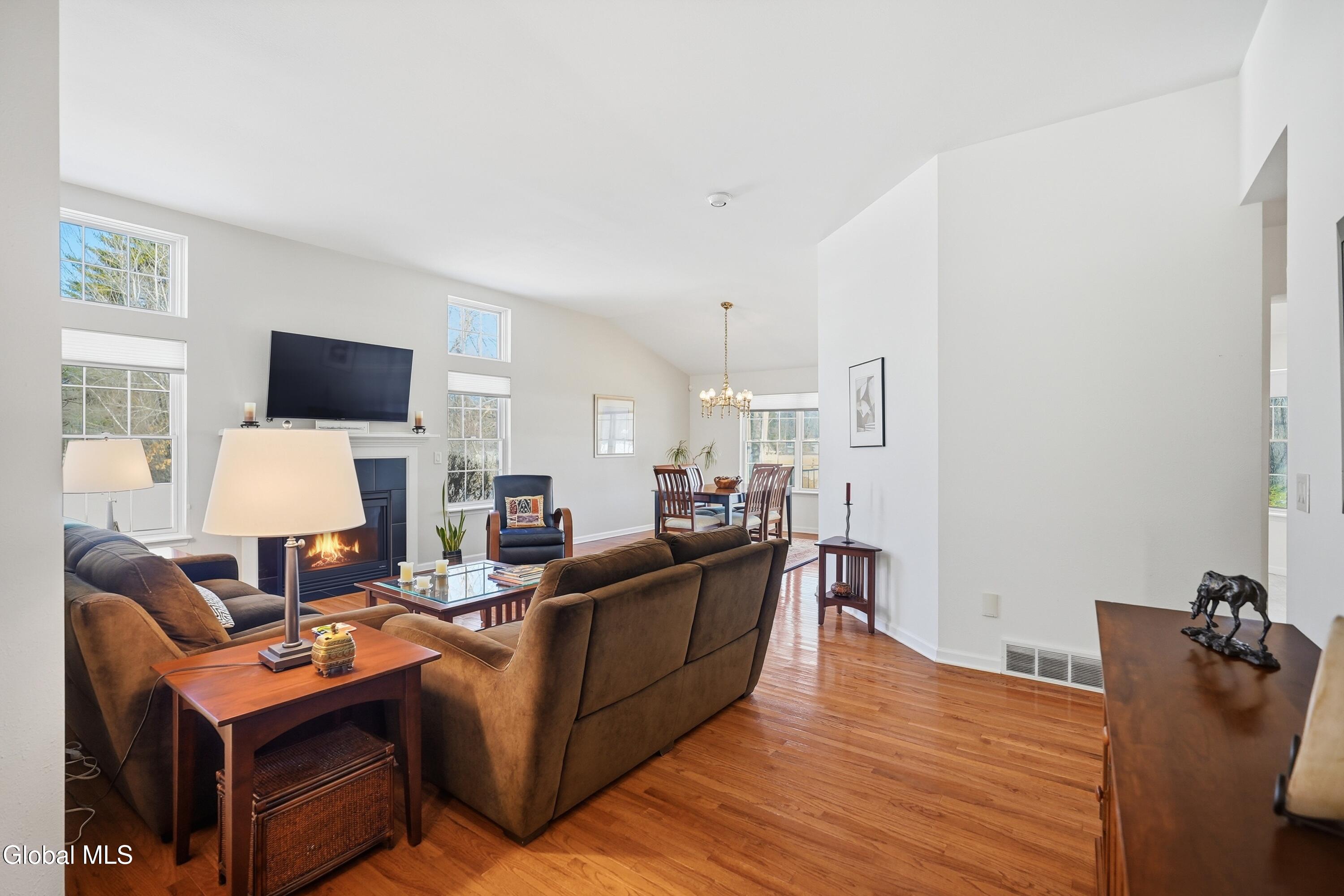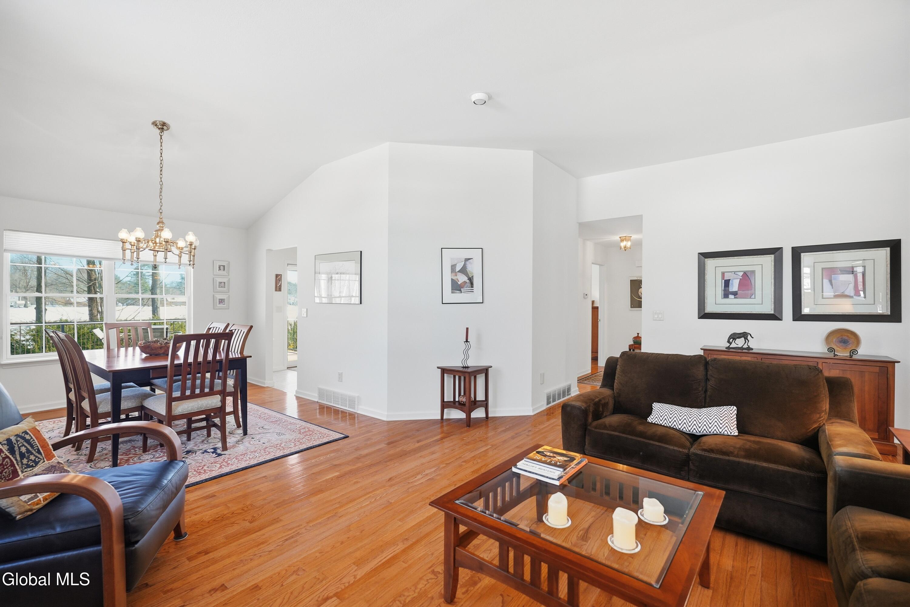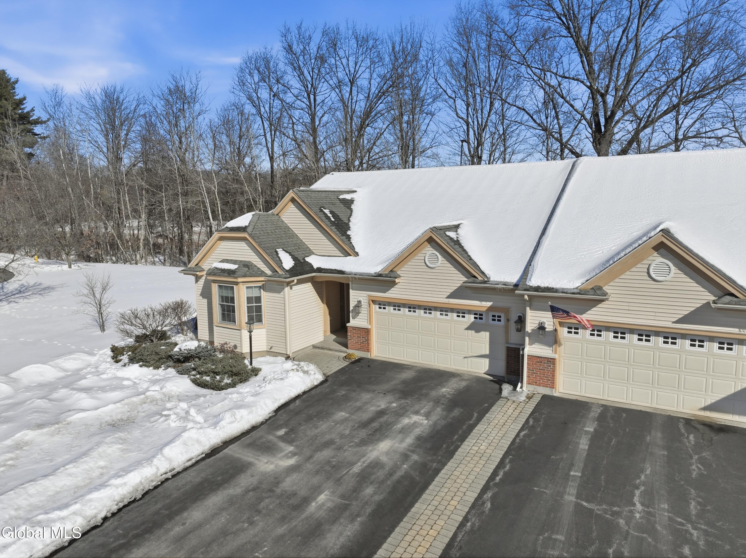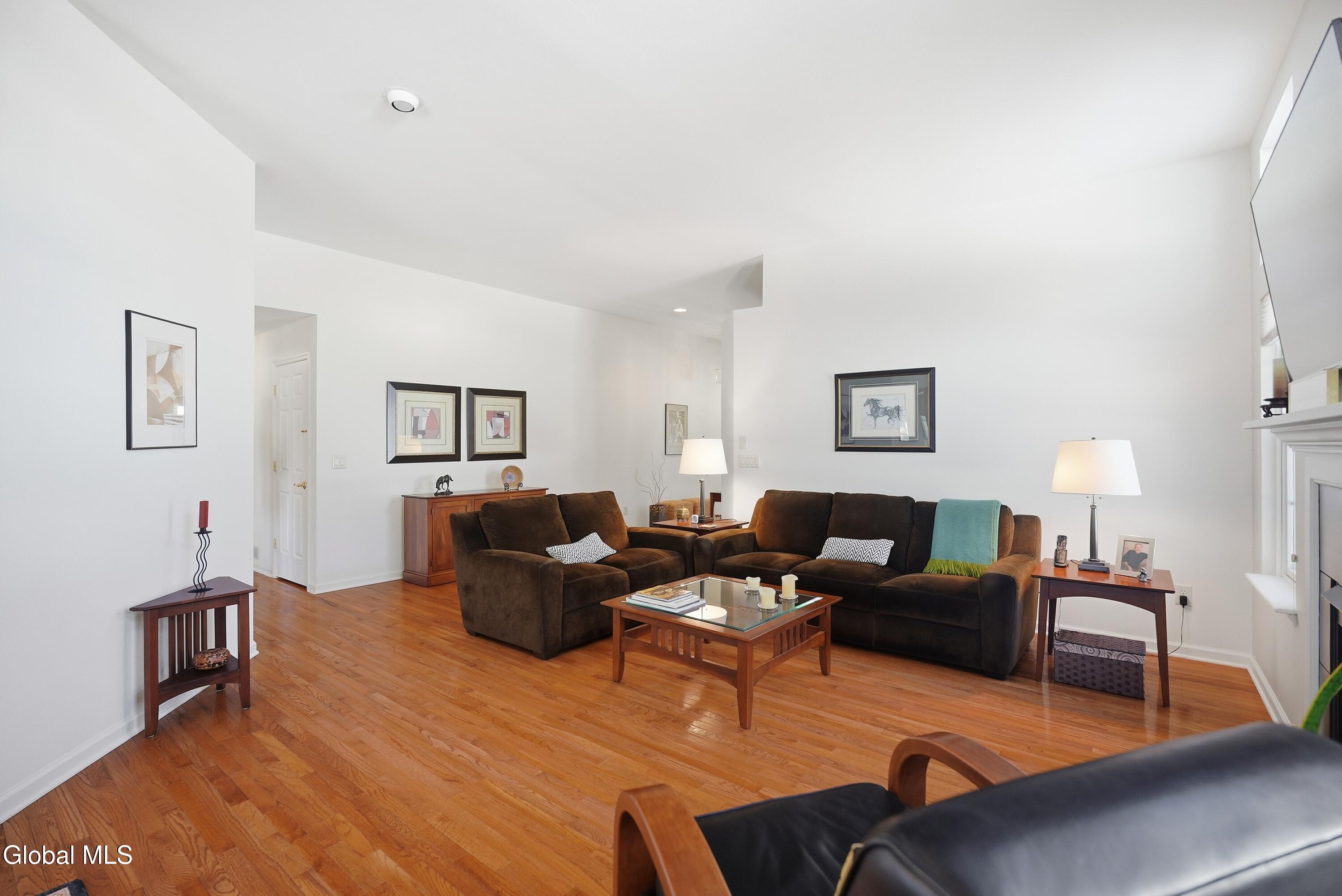 Welcome to 17 Camden Circle in Delmar, located in the highly sought-after Bethlehem School District. This 3-bedroom, 2-bath twin home offers 1,714 sq ft of true one-level living with a desirable split-bedroom layout. Hardwood floors, vaulted ceilings in the living room and second bedroom, and a gas fireplace enhance the open living, dining, and kitchen area. The private primary suite is set apart from two additional bedrooms and full bath. First-floor laundry, full basement, two-car garage, and composite deck overlooking open green space and a large side yard (w/ multi zone in ground sprinkler system) complete this maintenance-free home in a convenient Delmar location.