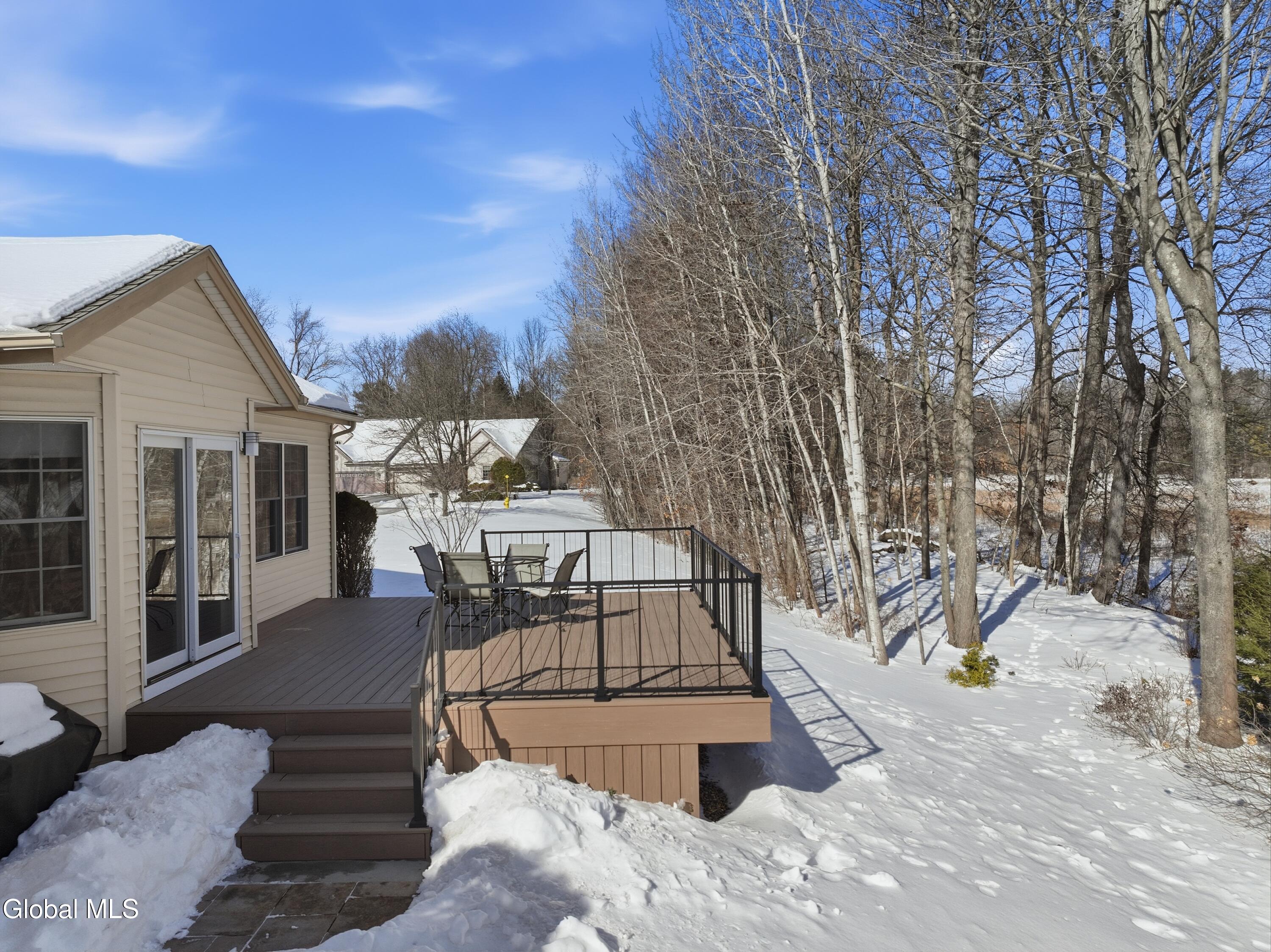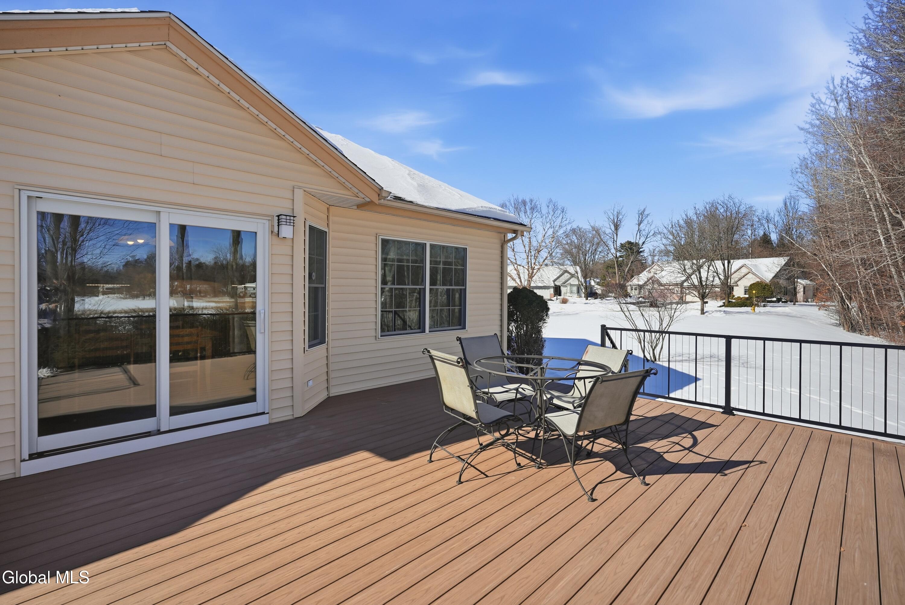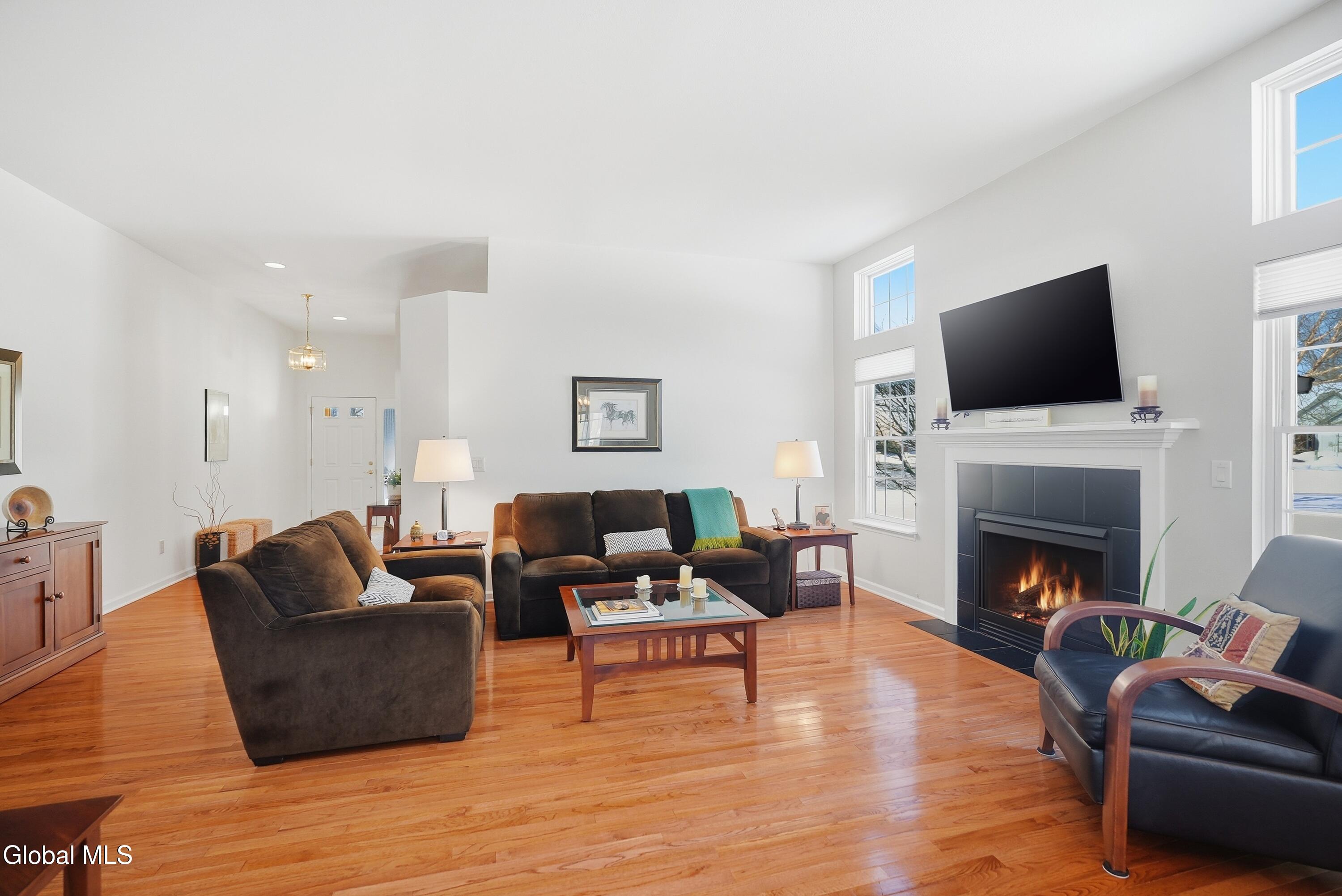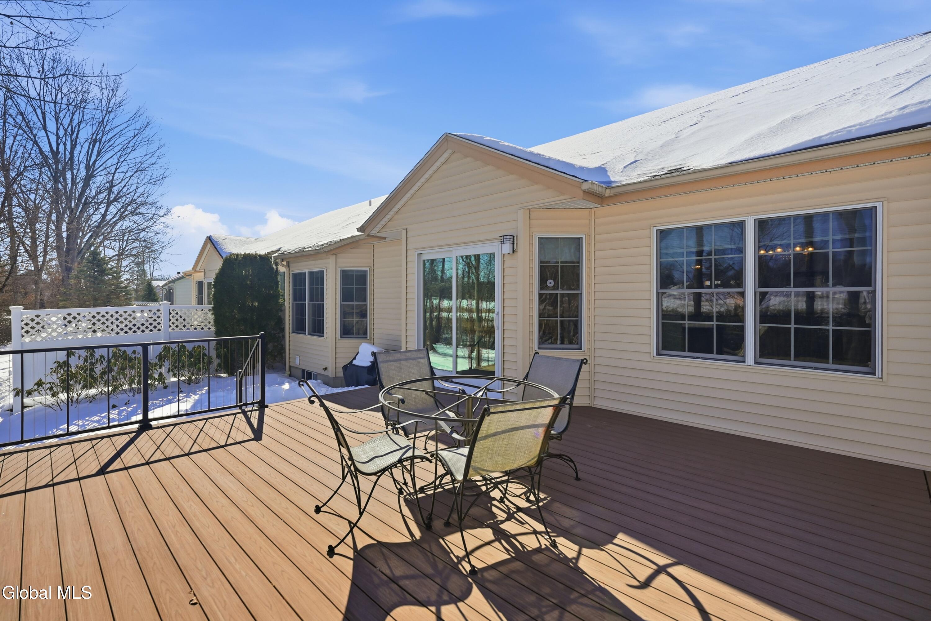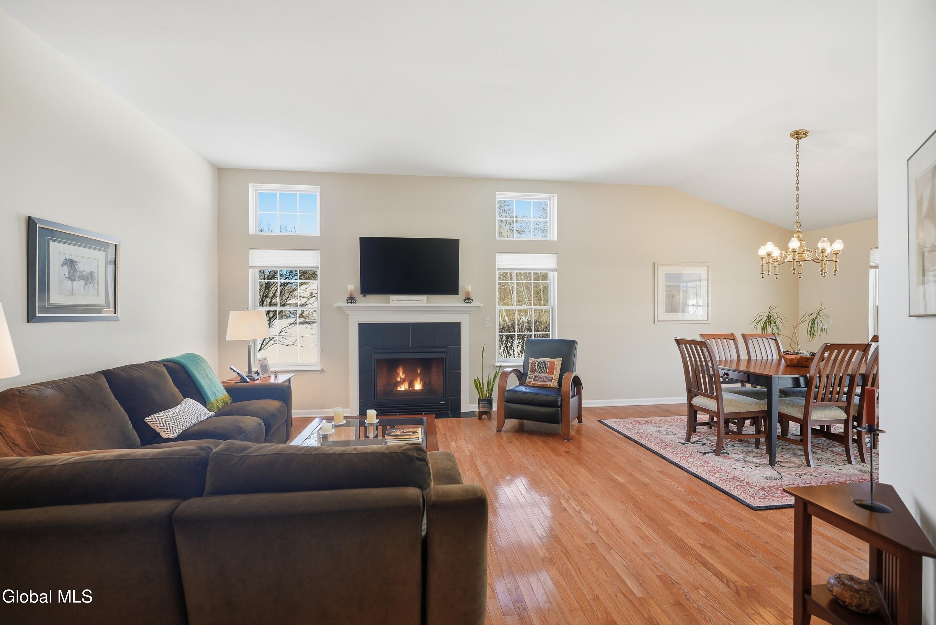 Welcome to 17 Camden Circle in Delmar, located in the highly sought-after Bethlehem School District. This 3-bedroom, 2-bath twin home offers 1,714 sq ft of true one-level living with a desirable split-bedroom layout. Hardwood floors, vaulted ceilings in the living room and second bedroom, and a gas fireplace enhance the open living, dining, and kitchen area. The private primary suite is set apart from two additional bedrooms and full bath. First-floor laundry, full basement, two-car garage, and composite deck overlooking open green space and a large side yard (w/ multi zone in ground sprinkler system) complete this maintenance-free home in a convenient Delmar location.