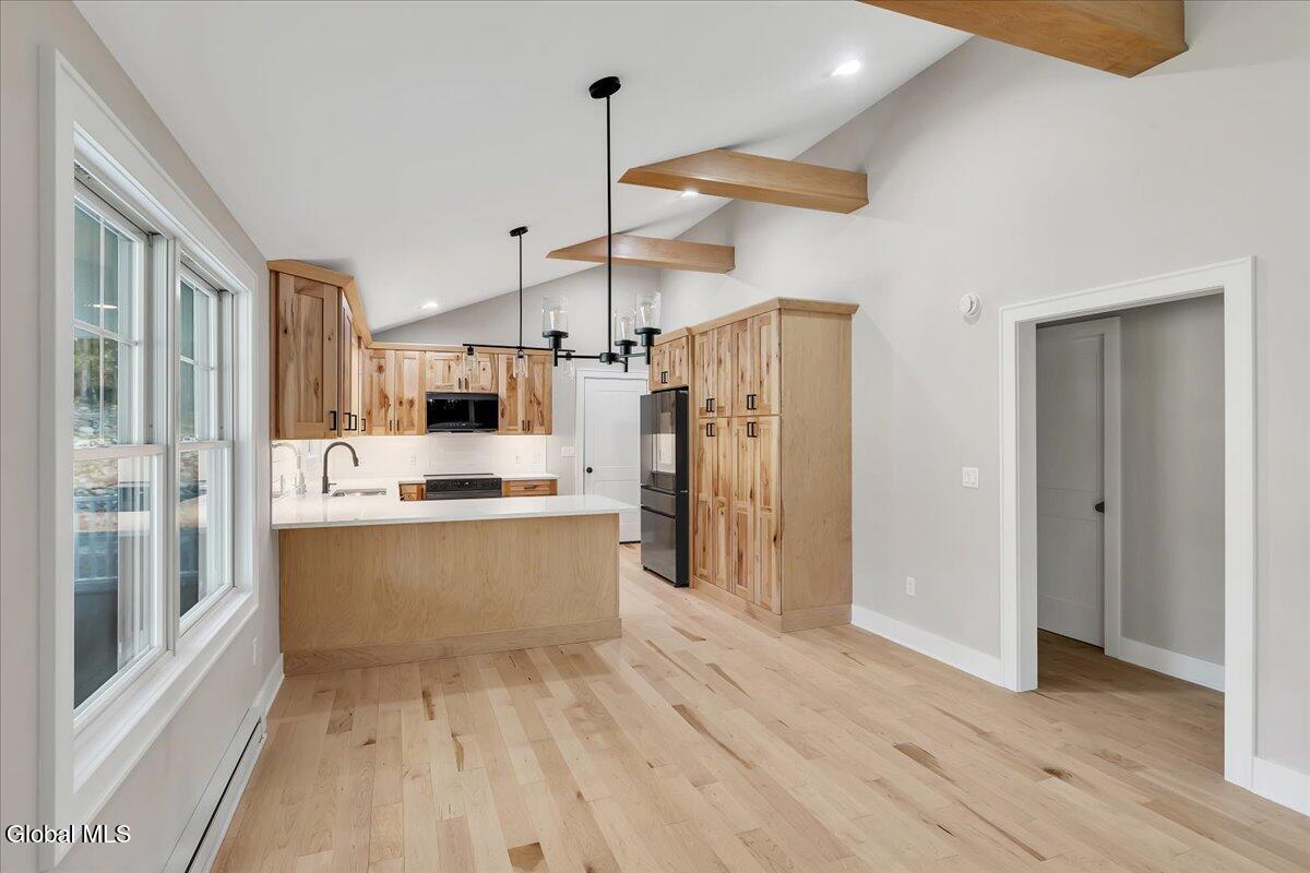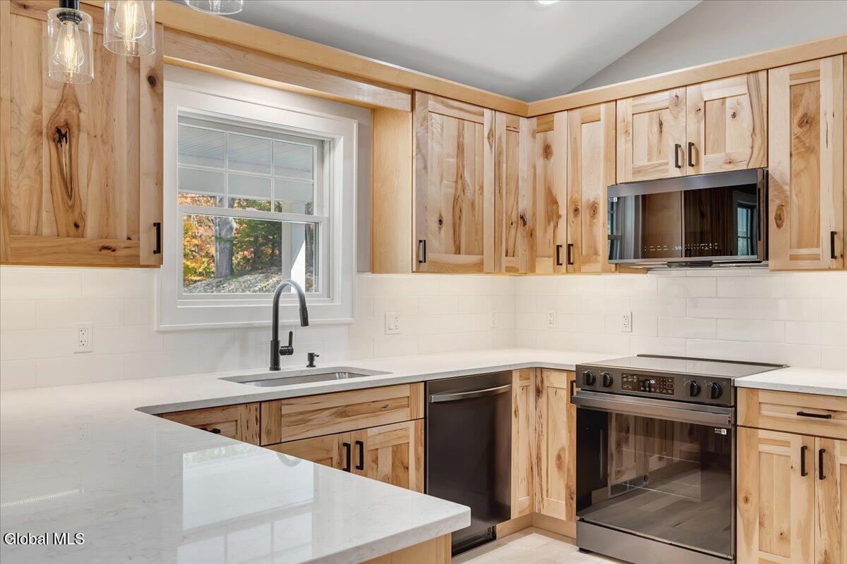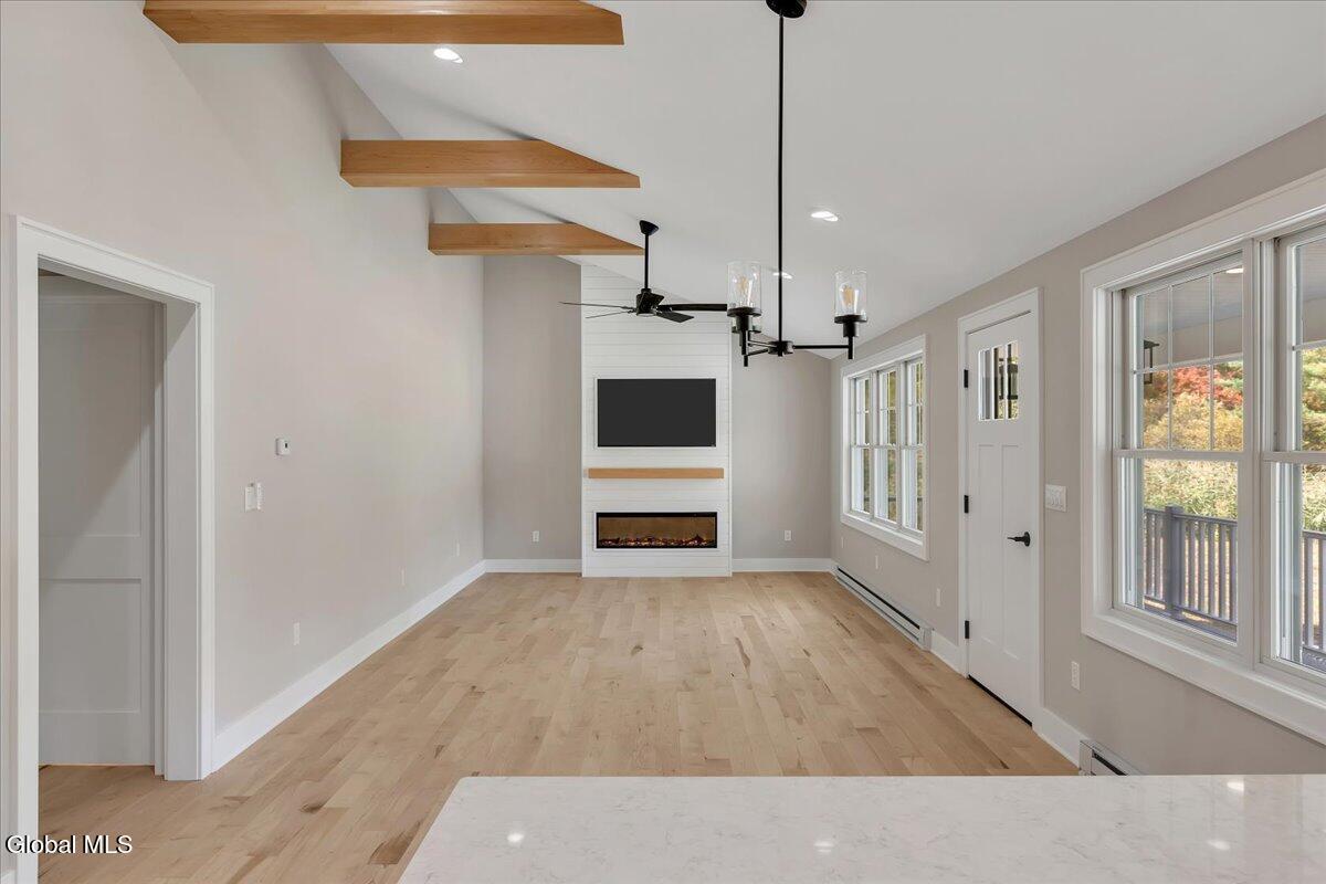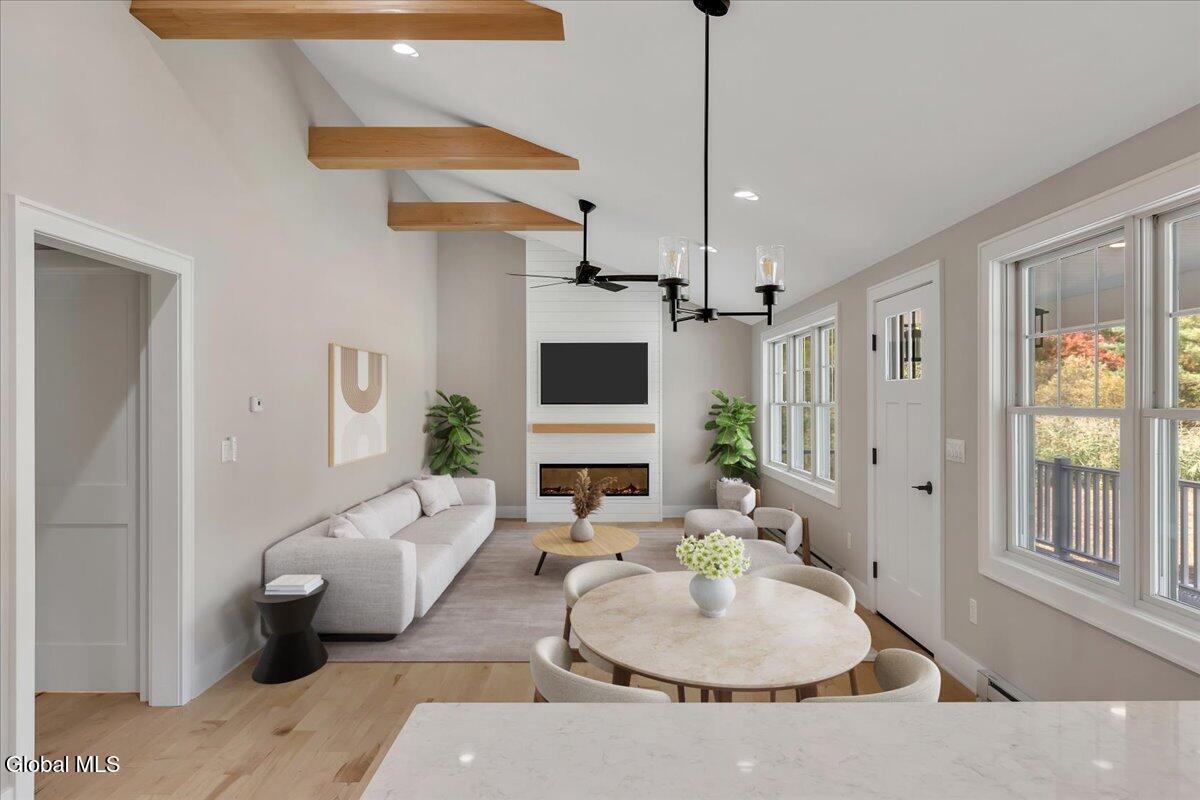 Gorgeous, custom built home set back on 1.81 picturesque acres in Averill Park Schools. Turnkey, quality craftsmanship, without the wait. Over 2,000 finished SF. Thoughtfully redesigned featuring ALL NEW: drywall, spray foam insulation, HVAC, water heater, plumbing, all mechanicals, floors, energy efficient windows + doors, roof, custom gutters, porch, whole house propane generator, durable composite trim + siding; the list goes on! NEW 24 x 26 drive-through garage features coachman doors & large pantry. Flexible floor plan offers 3 beds, plus 3.5 baths. Stunning, professionally designed kitchen offers storage galore, maple hardwood cabinetry w/ all the bells & whistles, quartz countertops & smart refrigerator hub that allows you to control your compatible smart devices. 1st floor is outfitted w/ luxurious & durable Mirage maple hardwood flooring & custom hardwood maple beams, complimented by vaulted ceilings. Built-in floor to ceiling entertainment center includes installed TV/fireplace. Finished lower-level features, 1.5 baths, 1 bed/walk-out suite to spacious backyard, walk-in closet, flexible family room, add'l washer & dryer hook-up. Relax on the large covered trex front porch. Outdoor slab w/electric offers endless opportunities: detached garage, shed, basketball court, patio, etc. Conveniently and centrally located to Albany and MA. Less than 20 min to Rt. 4/ (Exit 8, I-90) & Jiminy Peak! Some photos virtually staged
