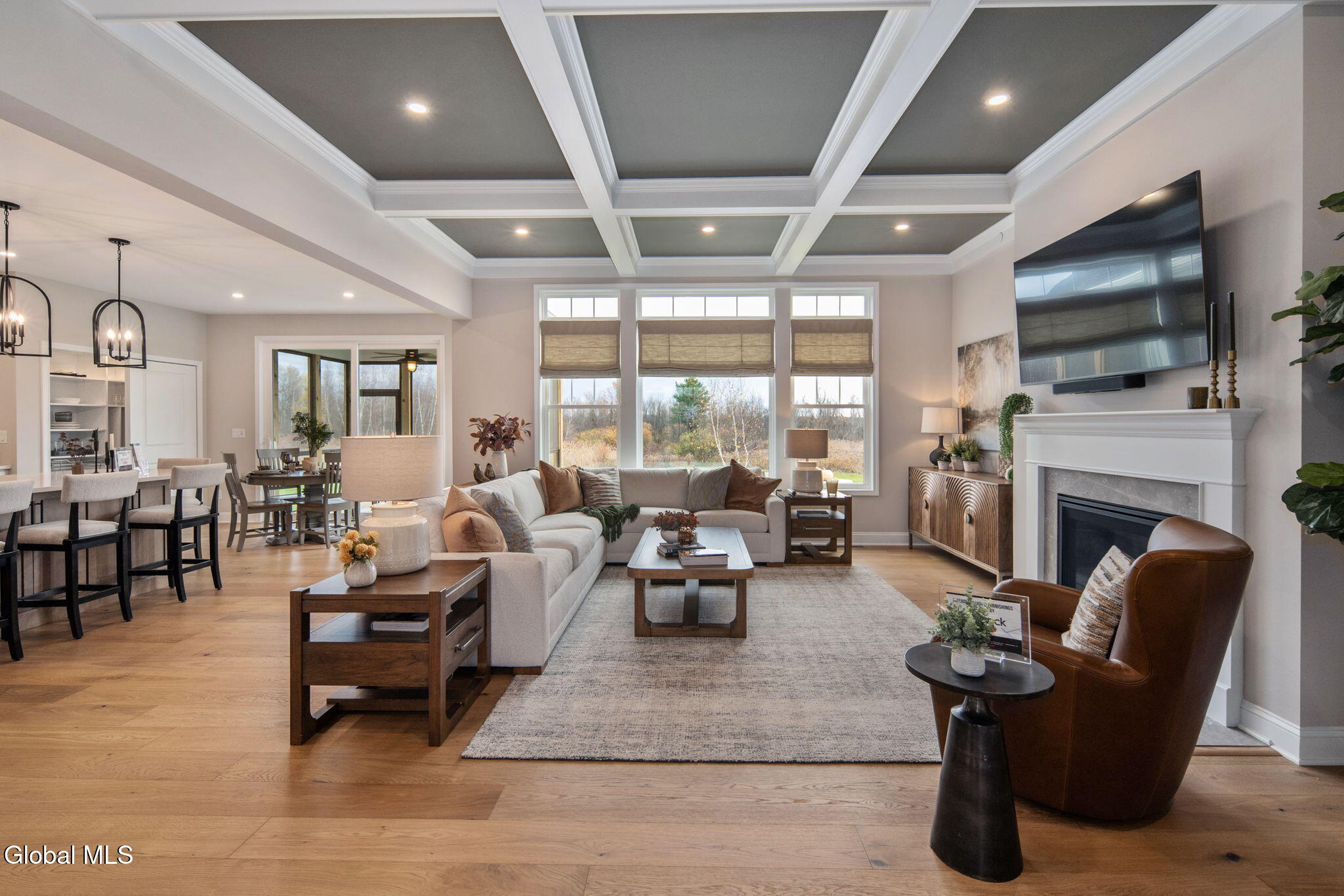 Award Winning 2025 Showcase of Homes by Belmonte Builders, is now available for quick move in! Situated on a large 1.57 acre lot. This Ranch impresses the moment you enter the foyer with a beautiful tray ceiling opening to 10' ceilings in the Great Room and Primary Bedroom. The Great Room also features a coffered ceiling and a gas burning fireplace. The Kitchen has room for everything with a large working island, walk-in pantry, and large nook. The kitchen features 42'' inch cabinets, Quartz countertops, upgraded appliance package including a gas slide in range, and refrigerator. A beautiful screened porch beyond the dining area extends the entertaining possibilities outdoors. The Primary Bath features a freestanding soaking tub. Complete with an in-home fire suppression system, and a professionally designed landscape package including paver patio, this home has it all!