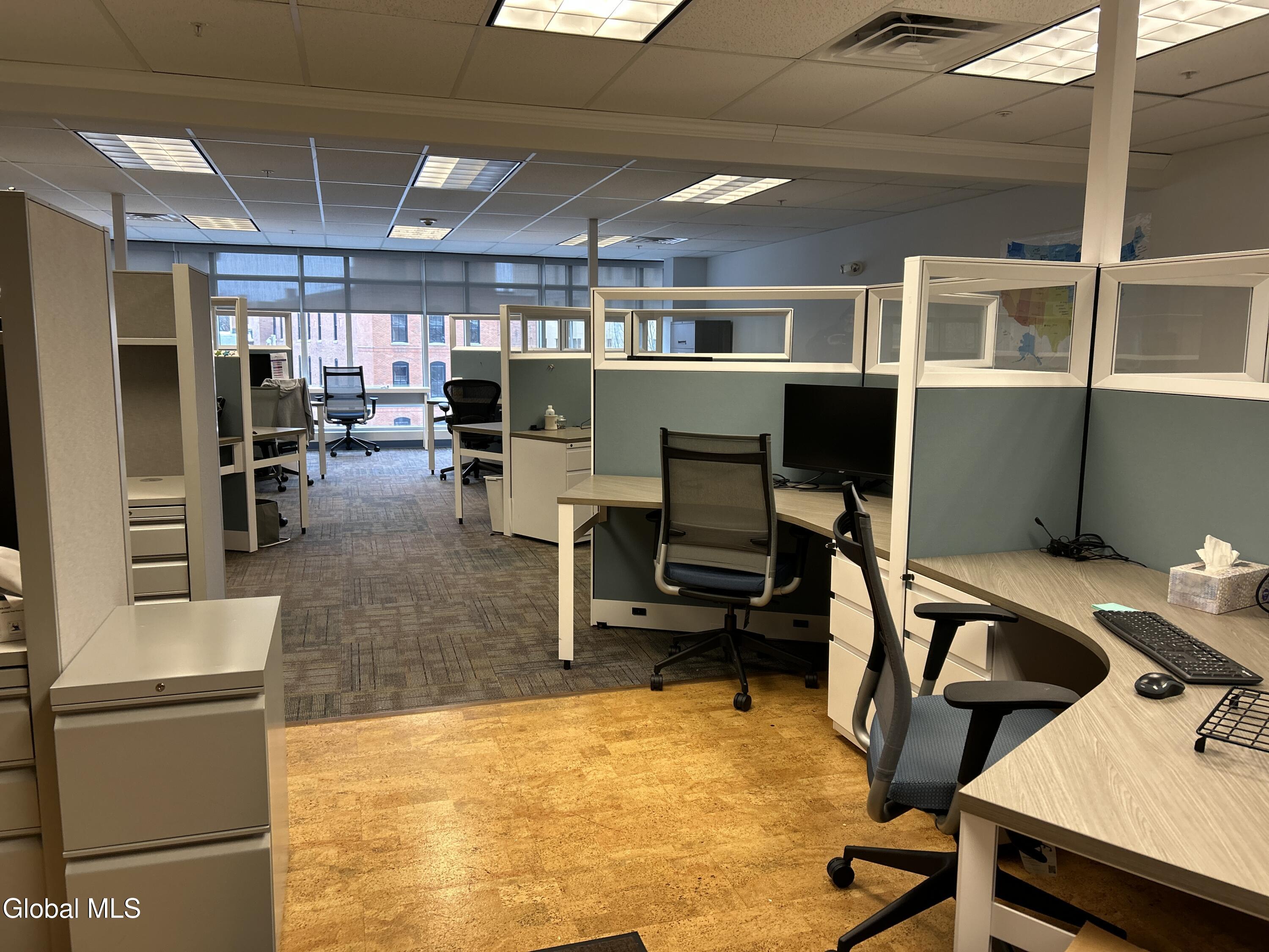 Discover a bright, contemporary office suite offering approximately 2,740 square feet of professional workspace in the highly sought-after Lofts at 18 Division Street. This well-appointed suite features three private executive offices, an inviting reception area, a modern kitchenette, and a spacious open-concept workspace that comfortably accommodates up to 18 administrative stations. Expansive windows flood the suite with natural light throughout the day, creating an energizing and productive environment. Optional furnishings are available, providing a truly turnkey, plug-and-play opportunity for your business.