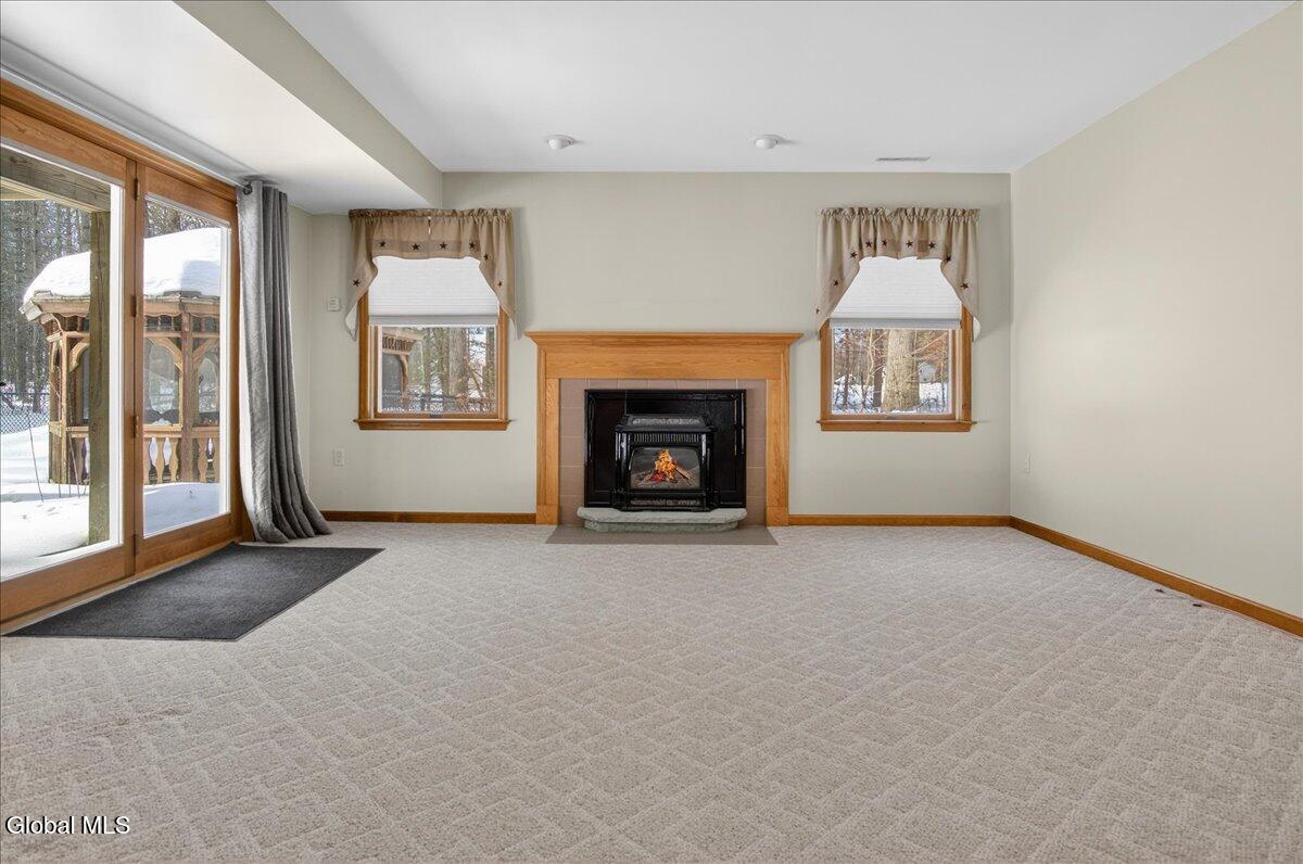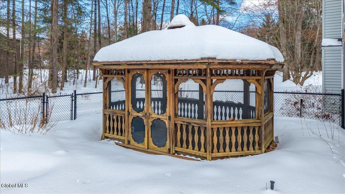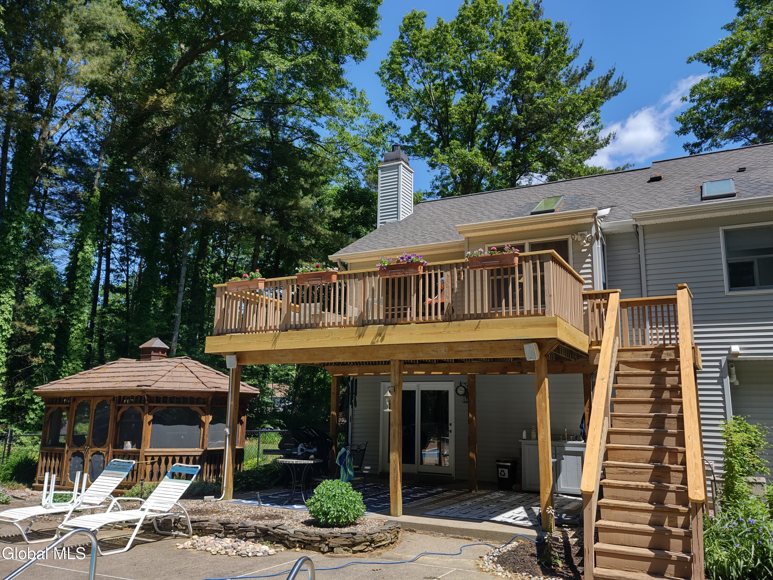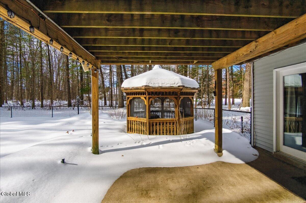 Nestled on a private .92-acre lot just minutes from beautiful Saratoga Lake, this exceptional home offers the perfect blend of comfort, and lifestyle. Designed to be the ultimate destination for family and friends, the backyard is an entertainer's dream featuring a fenced inground heated pool with a new pump, cover and sand filter, a newer smokeless fire pit surrounded by a custom paver patio, and a newly redone back deck. Just outside the gazebo, a tranquil waterfall feature lets you relax while listening to the gentle trickling of water. The spacious gazebo with electricity creates a peaceful sanctuary for reading, watching TV, or simply unwinding, making this outdoor oasis as functional as it is serene. A newly professionally designed front walkway and steps welcome you into a bright, open floor plan highlighted by cathedral ceilings and skylights that fill the home with natural light. Two gas fireplaces set the tone for warm, cozy evenings, while the primary bedroom and spa-like bath provide a true retreat at day's end. This home offers the perfect balance of easy living and everyday comfort in a setting you'll love to call home. New driveway 10/25! Bonus: Home Warranty and Money Back Guarantee included.