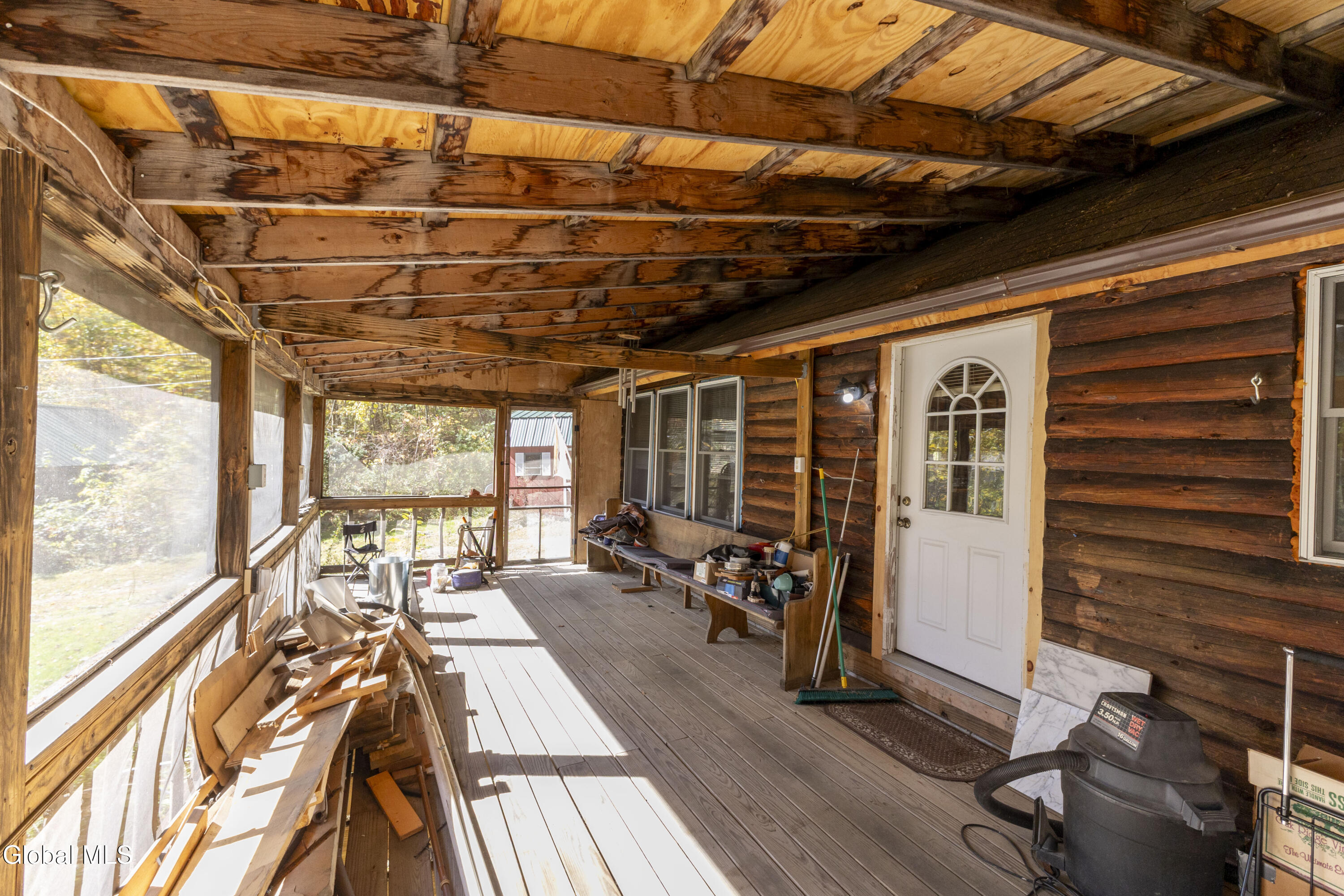 Enjoy the serenity of this 3 bedroom cozy log home tucked away in the woods. The inside was designed to continue the Adirondack style with spiral stairs to the loft area, wood floors, vaulted ceilings and many wood accents throughout. There is an oversized screened porch and a deck which are great for entertaining or just enjoying the fresh air. Located only an hour from VT skiing, the Lake George region and historic Saratoga Springs, you are never far from the action. This property would make a great second home or year round residence. The primary bedroom could either be on the first floor or the second with a half bath. There is a large shed and a separate workshop building with power and storage. The home is just outside the Village of Granville between Rutland and Glens Falls. Recent updates include new metal roof, new Navien system for both heat and hot water.