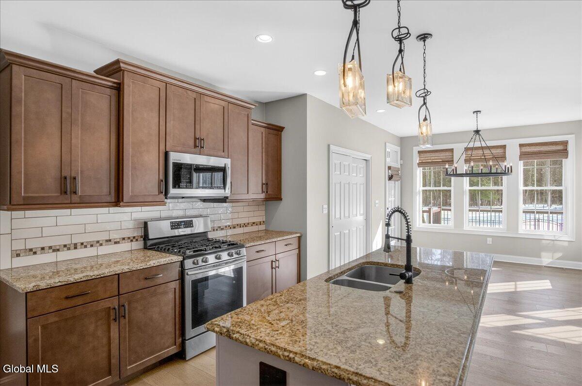 Welcome to Berkeley Way in Sonoma Grove, where quality craftsmanship meets effortless living. Built in 2018 by Belmonte Builders, this Craftsman style ranch offers the perfect blend of thoughtful design and modern comfort. With four bedrooms and two full baths, the home is laid out for easy one-level living, while the finished lower level provides valuable bonus space ideal for a media room, home office, gym, or guest retreat. The open living spaces are warm and inviting, designed for both everyday living and entertaining. Lovingly maintained since day one, this eight-year-young home offers the peace of mind that comes with newer construction, where the age and condition of major systems, utilities, and appliances are rarely a concern. Step outside and you'll find a backyard designed to be enjoyed in every season. A screened-in porch and Trex deck create seamless indoor-outdoor flow, while the two year old fiberglass in-ground pool transforms the space into a relaxing summer oasis. Sonoma Grove also offers the convenience of virtually maintenance-free living. The HOA handles lawn mowing, snow removal, and seasonal sprinkler services. Located just minutes from shopping, dining, and vibrant downtown Saratoga Springs, you'll experience all the perks of Saratoga living while benefiting from Wilton taxes. This is a rare opportunity to own a meticulously cared for home in one of the area's most desirable communities.