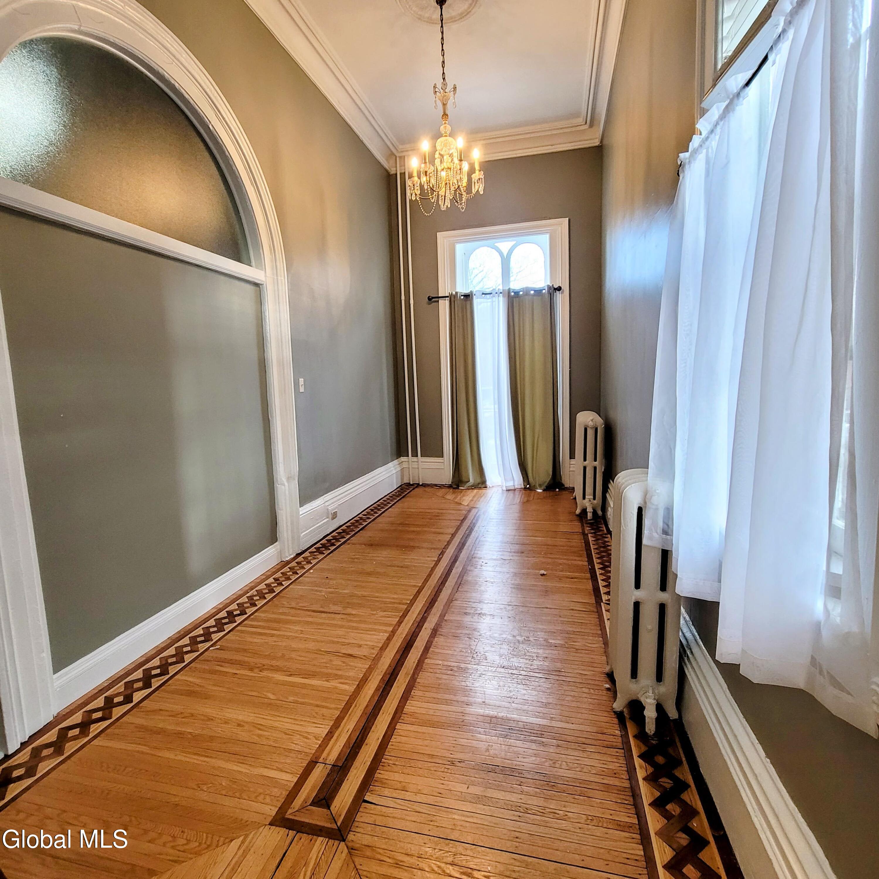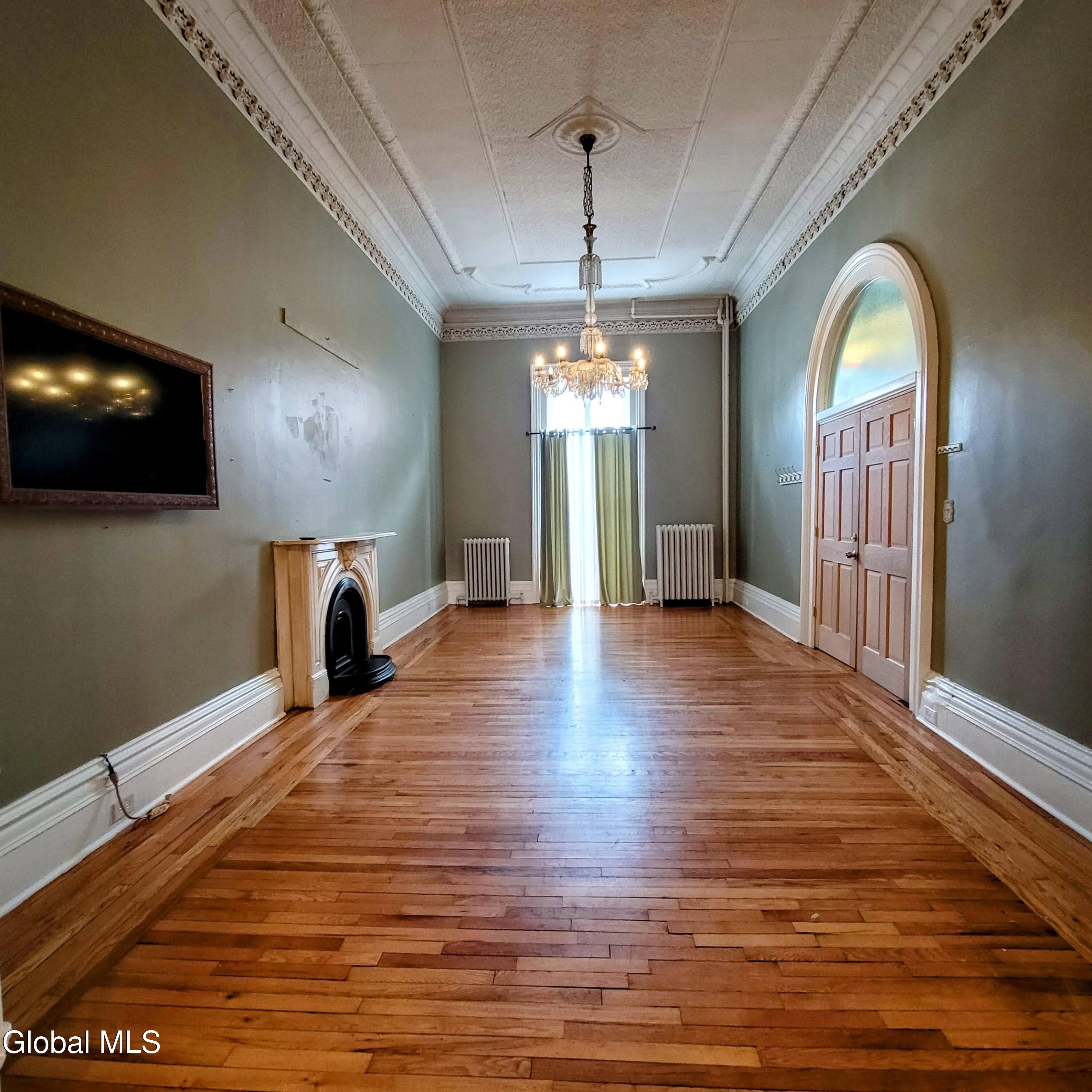 Enjoy timeless charm in this 1 bed, 2 full bath, stunning Victorian brownstone, overlooking private Washington Park, in historic downtown Troy. Inside, you'll find rich architectural details including original hardwood floors, wide open living space, hand-crafted plaster moldings, and dramatic 14 foot tin-pressed ceilings. The finished basement also includes a large den with a closet and a washer and dryer. Step outside to a beautifully landscaped yard that will be blooming with perennials after winter, unwind on the spacious deck and enjoy the benefit of off street parking and private entry, making this a truly special place to live. Utilities are included.