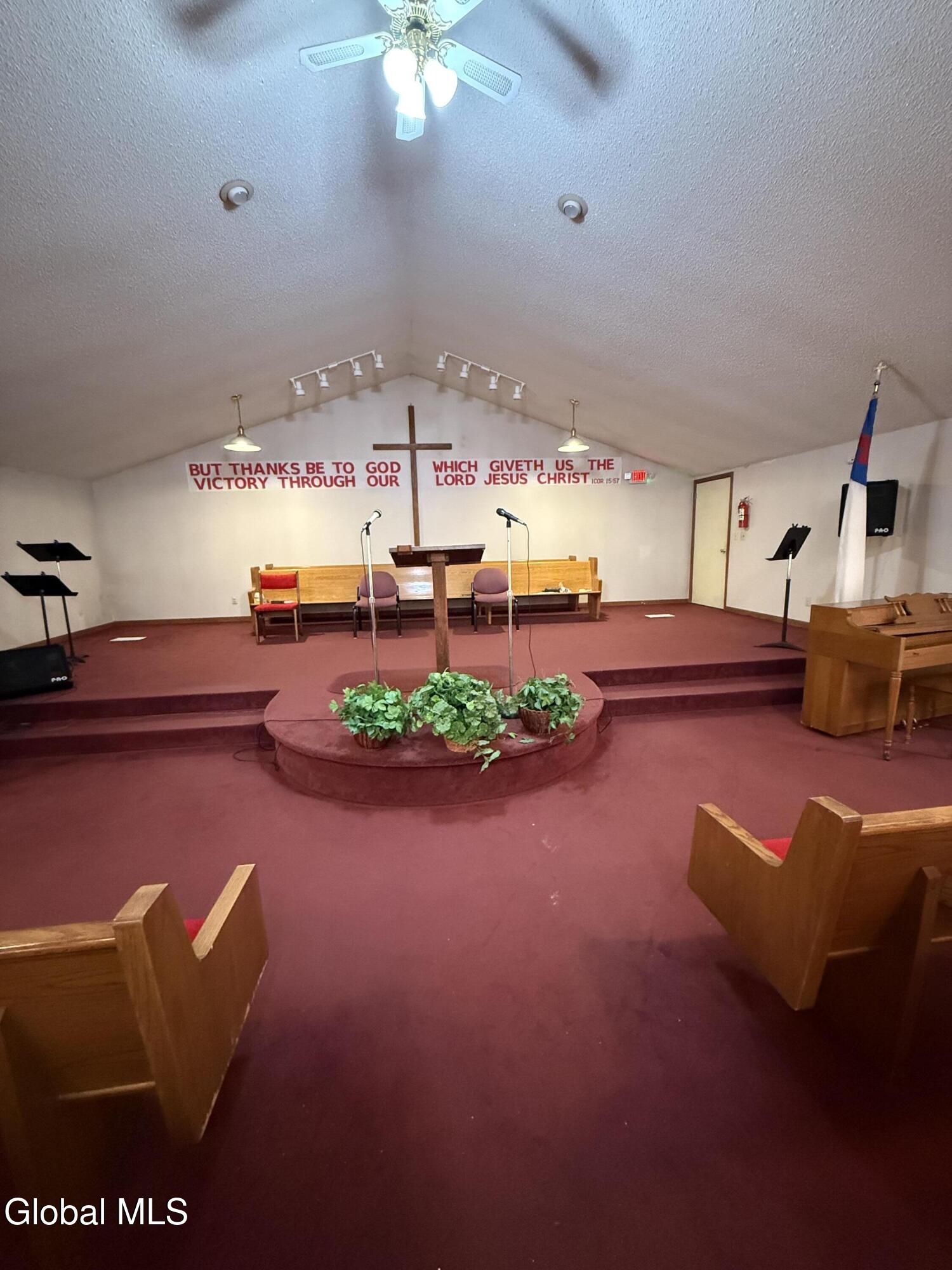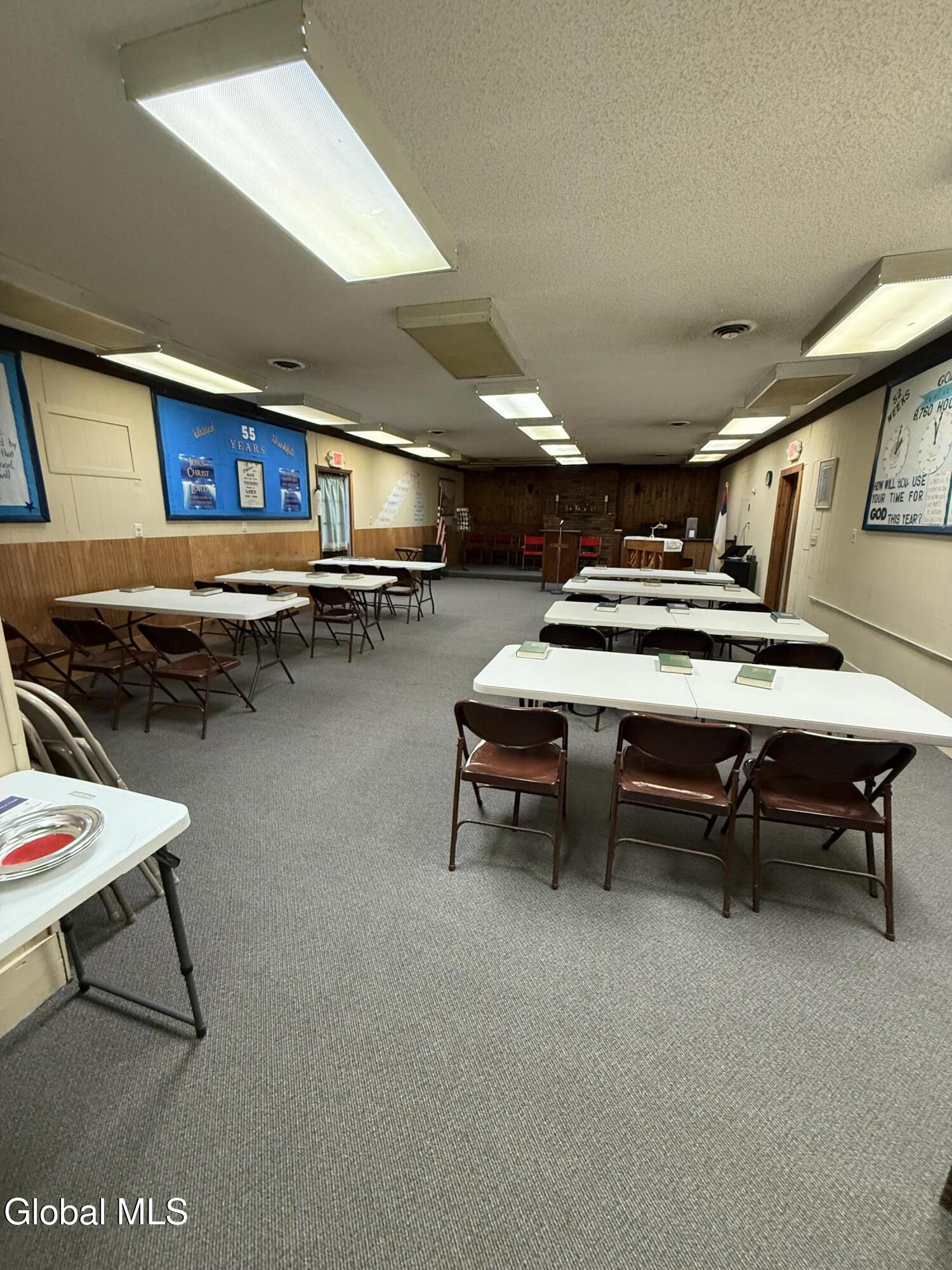 Long established church building with attached office space, learning center and 3- BR apartment. Square foot space totals 6646. Located in center of town adjacent to firehouse and elementary school. While used as a church, the facility could easily be converted to office or retail with storage or apartments. Other uses possible with variance and Planning Board approval.