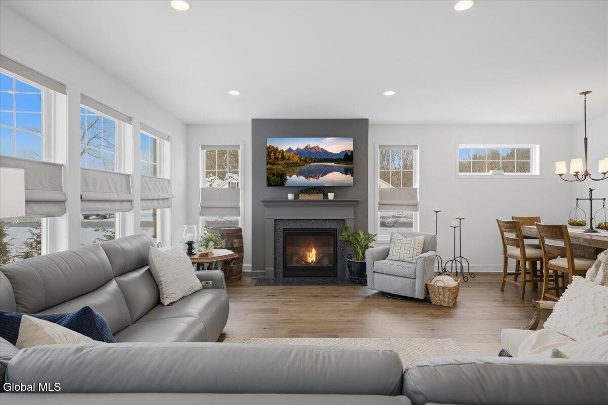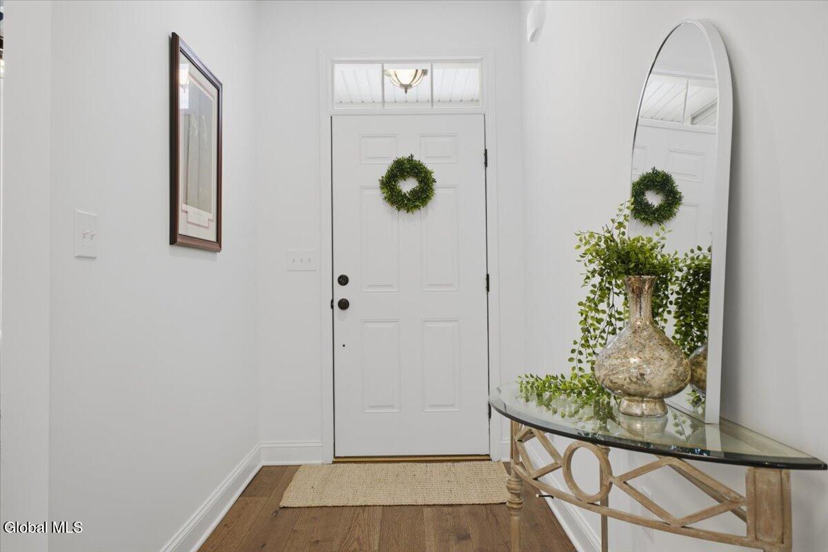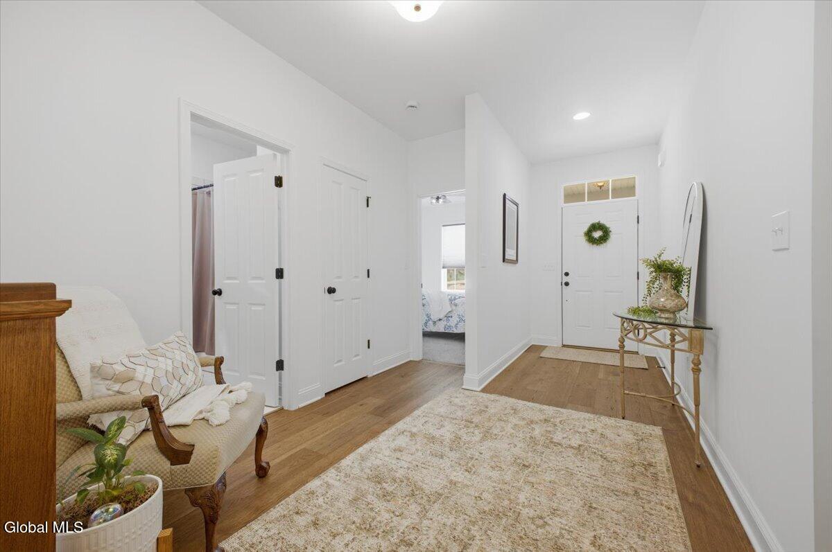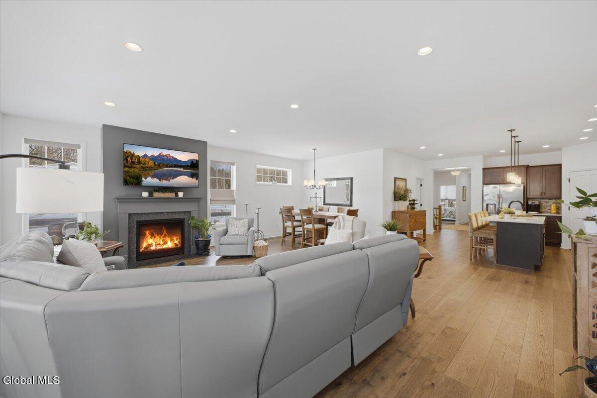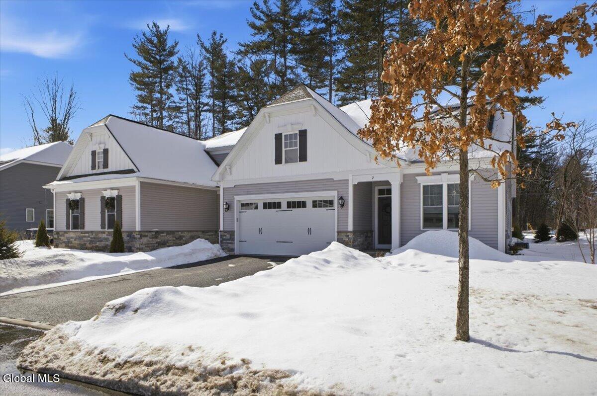 OPEN HOUSES CANCELLED OFFER ACCEPTED Don't miss this exceptional opportunity to own a nearly new, 3-year-old carriage/ranch home in the highly desirable Regatta View neighborhood. Built by award-winning Belmonte Builders, this impeccably maintained home features modern finishes and upgrades throughout, As you enter, you'll immediately notice the beautiful wide-plank hardwood floors leading into an expansive, sun-drenched open floor plan. The heart of the home is the roomy kitchen, thoughtfully designed for both daily life and hosting. It features solid surface countertops, stainless appliances, tile backsplash, gas range, and a wealth of cabinet storage, complemented by a walk-in pantry. The large center island with plenty of seating flows seamlessly into a separate dining area and a bright living space anchored by a cozy gas fireplace. For maximum privacy, this home features a smart split-bedroom layout. Two guest bedrooms are located at the opposite end of the house from the sun-filled primary suite. This retreat features a vaulted ceiling, a spacious walk-in closet, and an upgraded bath with a custom tile shower and dual vanities. Step outside to your gorgeous new hardscape patio--an ideal spot for morning coffee, summer BBQs, and entertaining. The Regatta View Lifestyle: Living here means exclusive community access to the waterfront on Fish Creek, leading directly to Saratoga Lake. Enjoy the community beach, boat slips, and convenient kayak storage racks. It is a front-row seat to watch the Skidmore rowing team and annual Regattas right from this sought-after enclave. Unbeatable Location: Perfect for commuters, just minutes to I-87 (35 mins to ALB Airport). Moments from Saratoga National, Saratoga Race Course, SPAC, and historic downtown for dining and shopping. Schedule your private showing today!