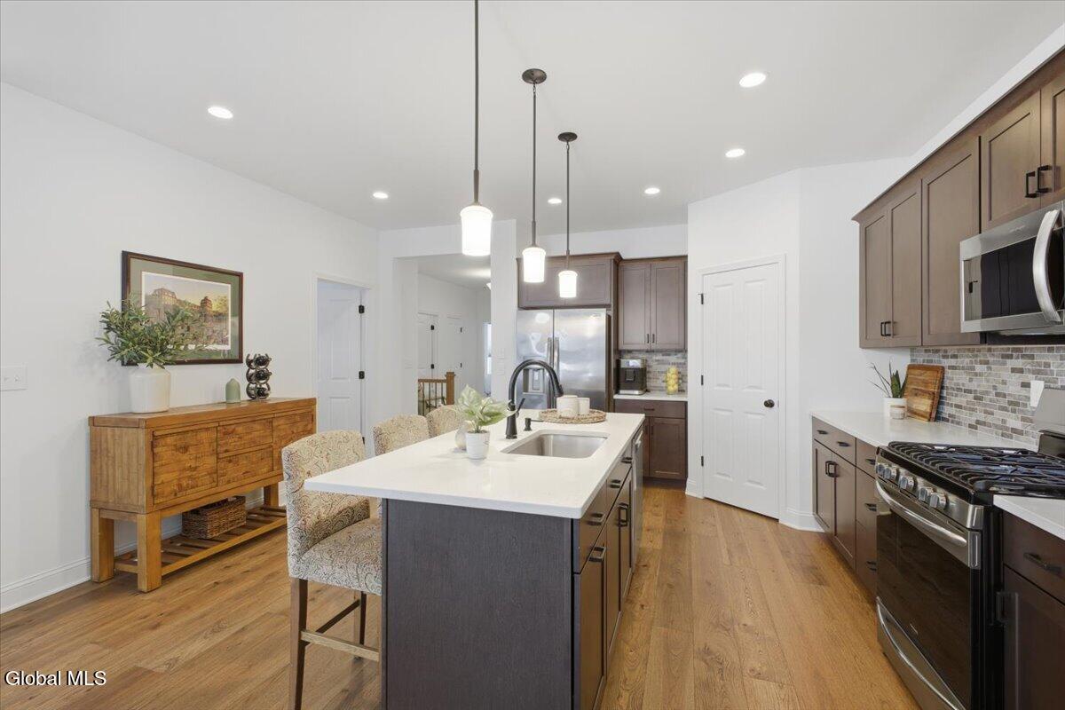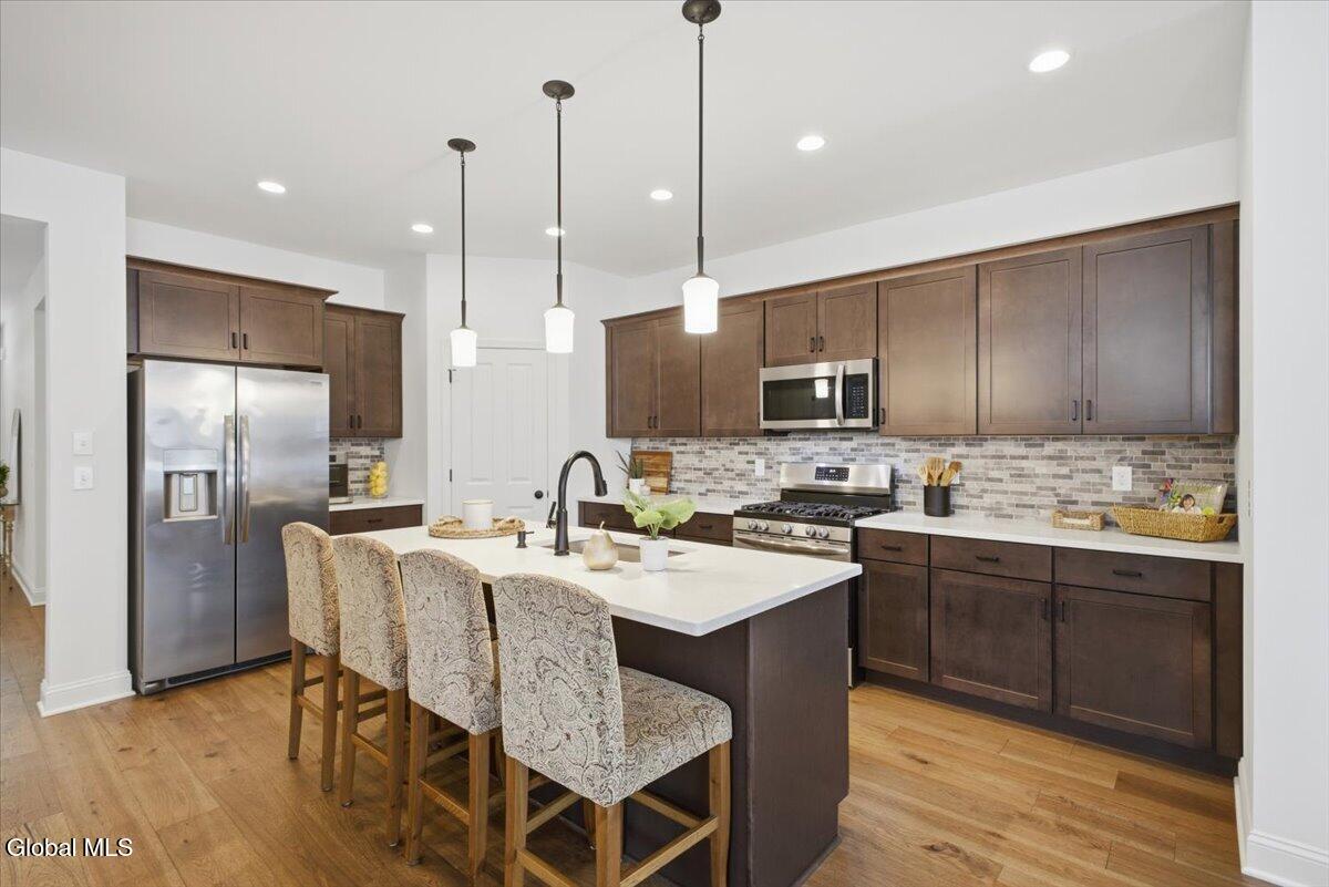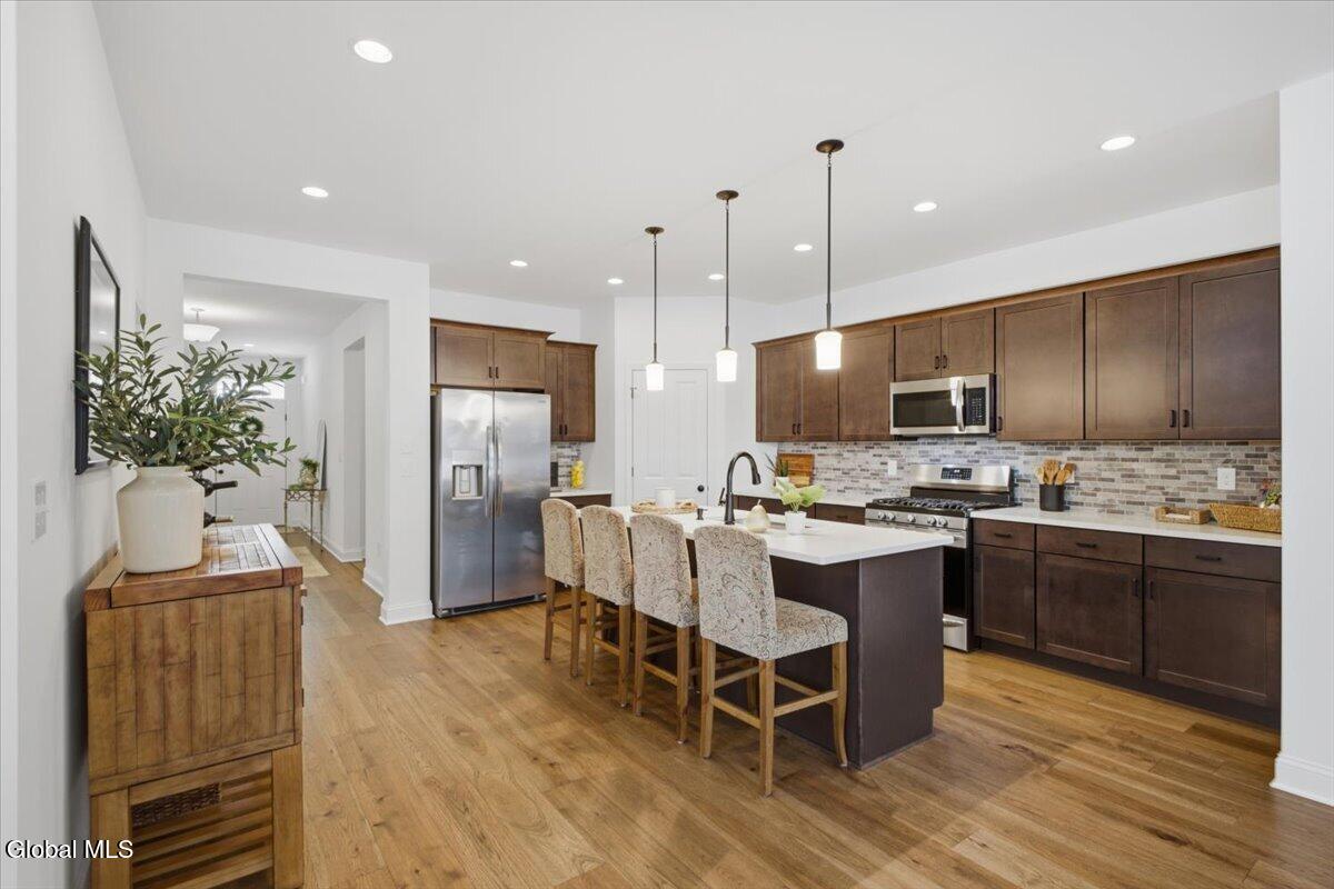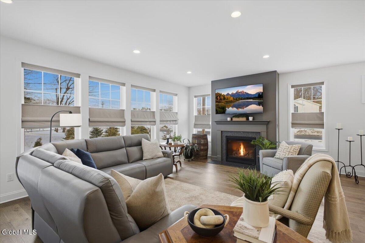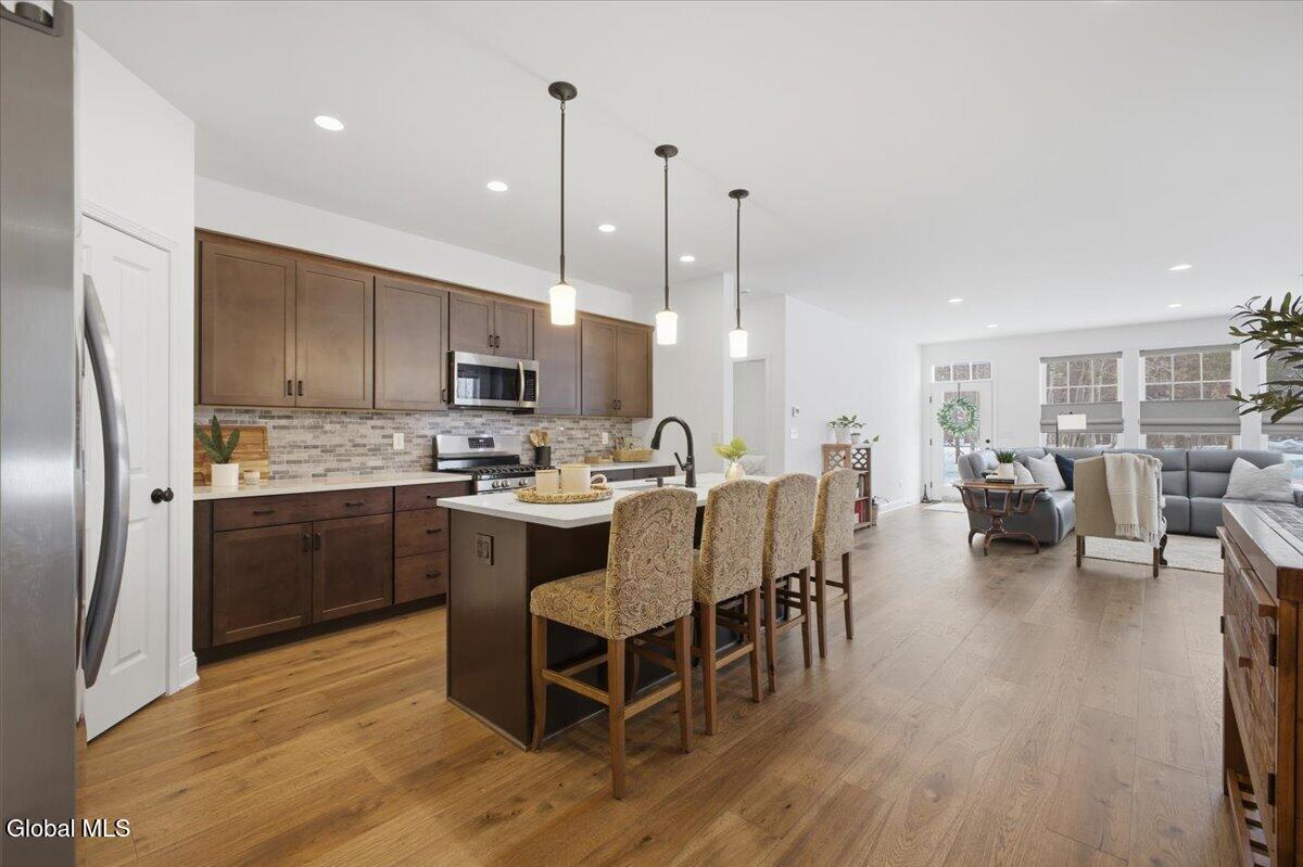 OPEN HOUSES CANCELLED OFFER ACCEPTED Don't miss this exceptional opportunity to own a nearly new, 3-year-old carriage/ranch home in the highly desirable Regatta View neighborhood. Built by award-winning Belmonte Builders, this impeccably maintained home features modern finishes and upgrades throughout, As you enter, you'll immediately notice the beautiful wide-plank hardwood floors leading into an expansive, sun-drenched open floor plan. The heart of the home is the roomy kitchen, thoughtfully designed for both daily life and hosting. It features solid surface countertops, stainless appliances, tile backsplash, gas range, and a wealth of cabinet storage, complemented by a walk-in pantry. The large center island with plenty of seating flows seamlessly into a separate dining area and a bright living space anchored by a cozy gas fireplace. For maximum privacy, this home features a smart split-bedroom layout. Two guest bedrooms are located at the opposite end of the house from the sun-filled primary suite. This retreat features a vaulted ceiling, a spacious walk-in closet, and an upgraded bath with a custom tile shower and dual vanities. Step outside to your gorgeous new hardscape patio--an ideal spot for morning coffee, summer BBQs, and entertaining. The Regatta View Lifestyle: Living here means exclusive community access to the waterfront on Fish Creek, leading directly to Saratoga Lake. Enjoy the community beach, boat slips, and convenient kayak storage racks. It is a front-row seat to watch the Skidmore rowing team and annual Regattas right from this sought-after enclave. Unbeatable Location: Perfect for commuters, just minutes to I-87 (35 mins to ALB Airport). Moments from Saratoga National, Saratoga Race Course, SPAC, and historic downtown for dining and shopping. Schedule your private showing today!