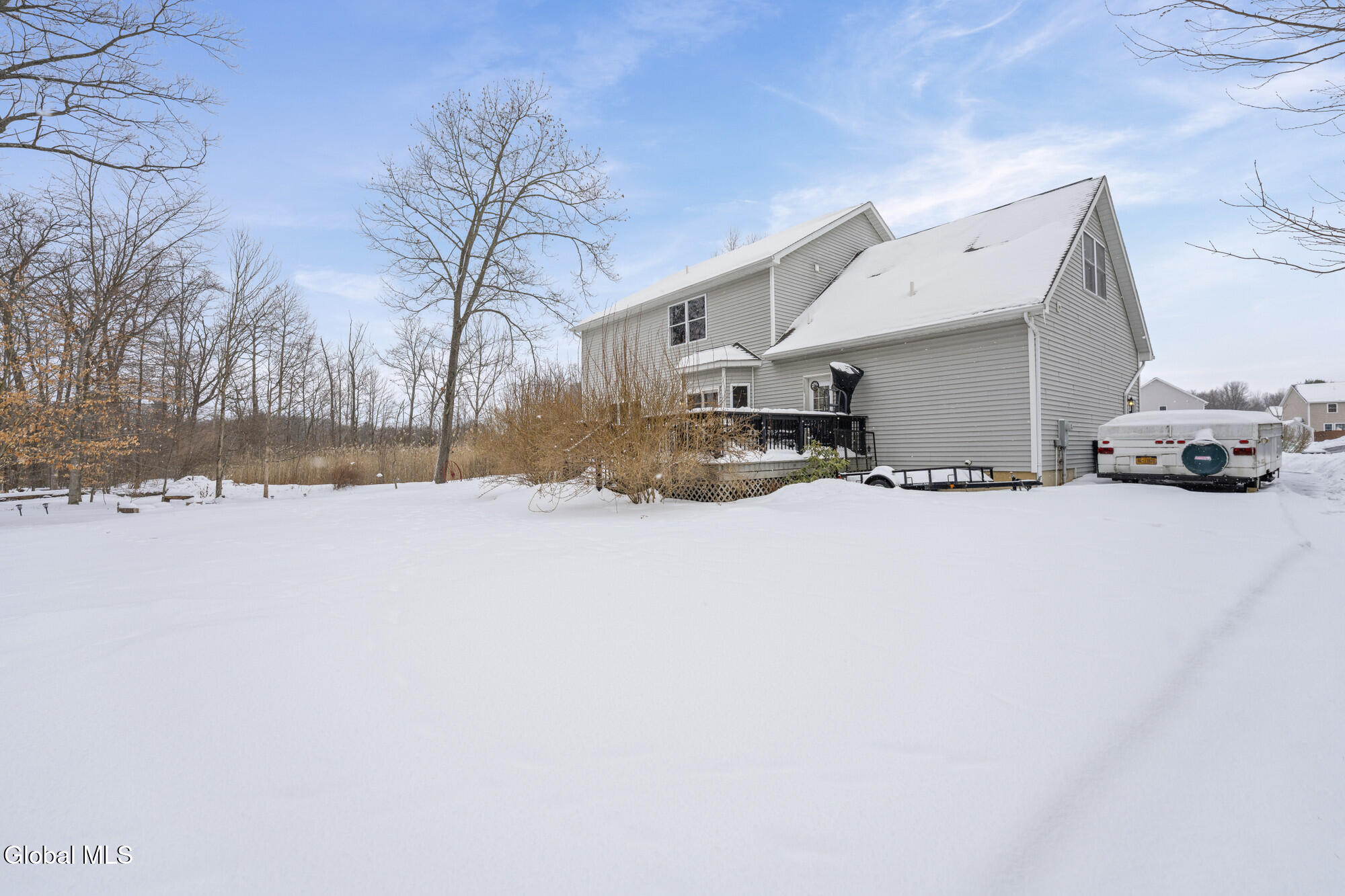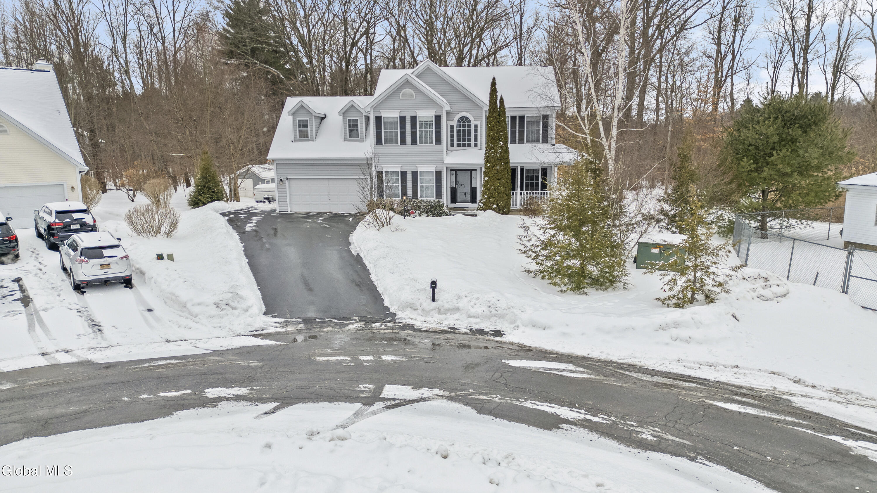 Welcome to 2 Goldfield Ln located in the highly sought after Settlers Hill development in Rexford. The one owner home is tucked nicely on the quiet cul de sac and backs up to forever wild land. Upon entering you are greeted by the soaring 2 story foyer flanked by formal living room with gas fireplace, open to the family room, and the formal dining room. The modern kitchen opens to the large family room and has seperate eating area along with counter seating, slider to large rear deck. Tons of counter space, pantry and work station. First floor laundry room with additional access to rear deck, powder bath and 2 car garage access. Huge primary bedroom with updated primary bath, custom walk in shower and large walk in closet. Three additional good sized bedrooms and a full bath. There is finished space in basement which can be used for rec room, home office etc. Beautiful grounds with plenty of level yard space. Large 12 x 20 shed for all your yard equiptment and toys! Easy access to major highways and shopping from the home. Shenendehowa central school district. The taxes shown are with no exemptions.