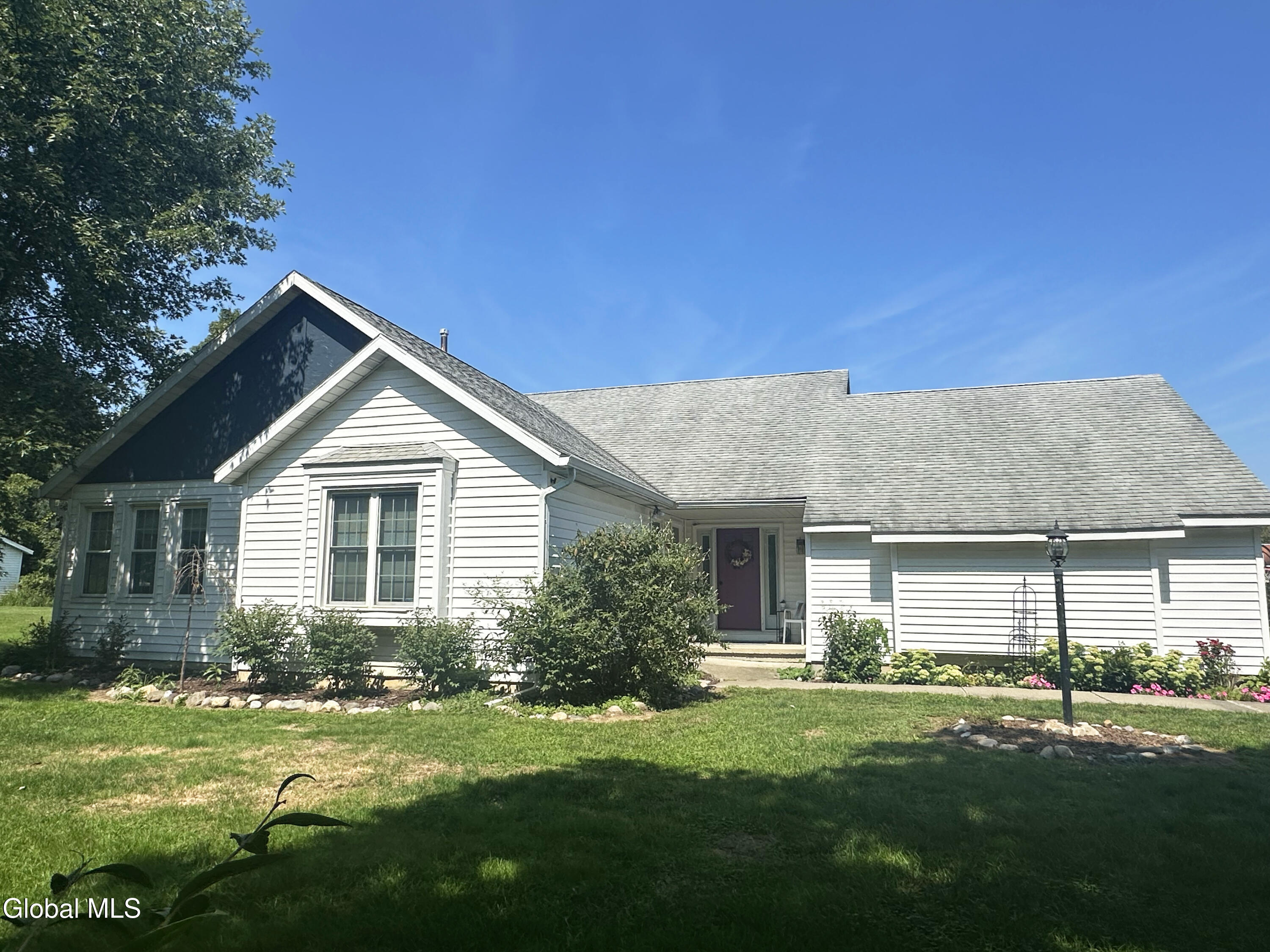 Welcome to easy, one-level living in the desirable August Gate neighborhood within the award winning East Greenbush Schools! This beautifully maintained corner-lot home offers a thoughtful layout designed for both comfort and convenience. The spacious kitchen opens seamlessly to the dining area, creating an ideal space for everyday living and entertaining. The living room features cathedral ceilings and a fireplace, providing a bright and inviting atmosphere. Enjoy additional relaxation space in the three-season room, or step outside to the patio with a retractable awning. The home offers three bedrooms, two full bathrooms, and first-floor laundry.The basement offers flexible lower-level bonus space, providing valuable additional sqft, with plumbing already in place for the addition of a half bath. Tastefully decorated and truly move-in ready, this home is minutes from Albany, Regeneron, shopping, and the YMCA, with quick access to I-90 and Route 787. A must-see opportunity. awaiting its new owner!
