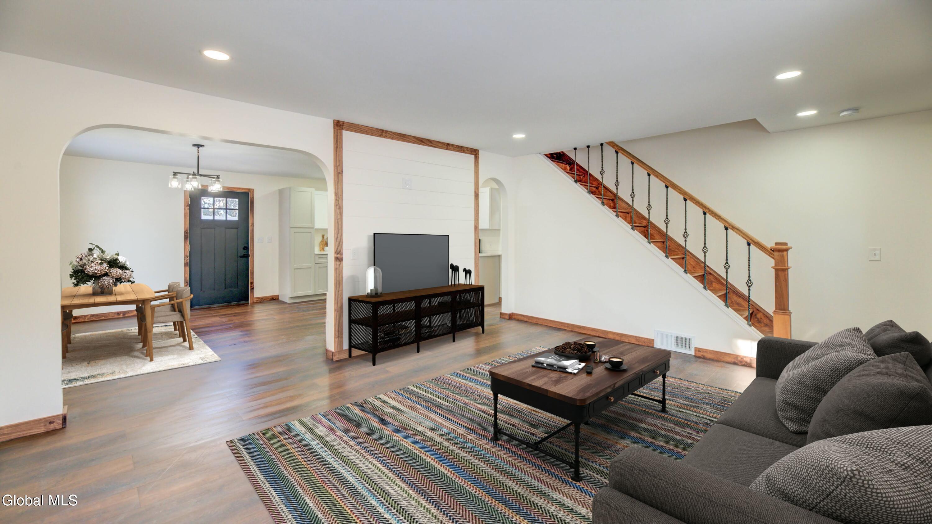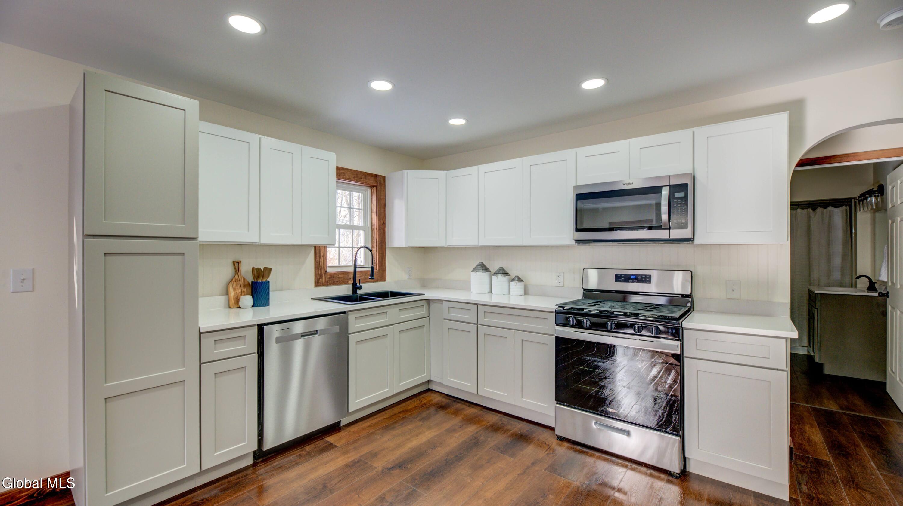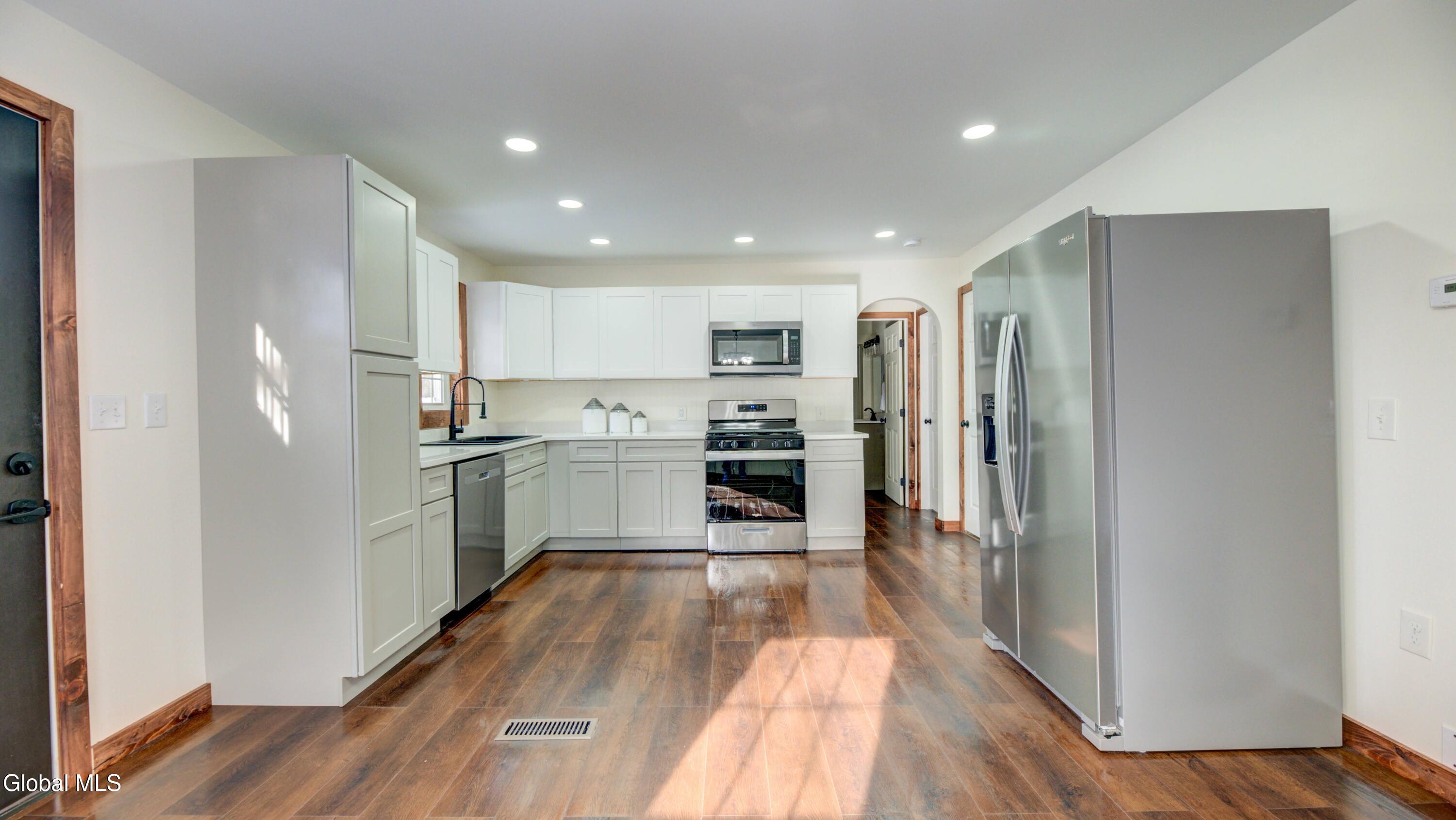 Welcome to 20 Spring Street, ideally located in the Village of Broadalbin. Enjoy the convenience of walking to local cafés, a pizza shop, and market, all while being just minutes from the Great Sacandaga Lake and only 20 minutes to Saratoga Springs. This home has been fully renovated and features a brand new kitchen with quartz countertops and stainless steel appliances, an updated bathroom with a walk-in shower, luxury vinyl plank flooring throughout, a new furnace, hot water tank, and a new front deck. Step outside to a spacious rear deck, perfect for entertaining and relaxing. The large, dry basement offers excellent potential for additional finished living space.