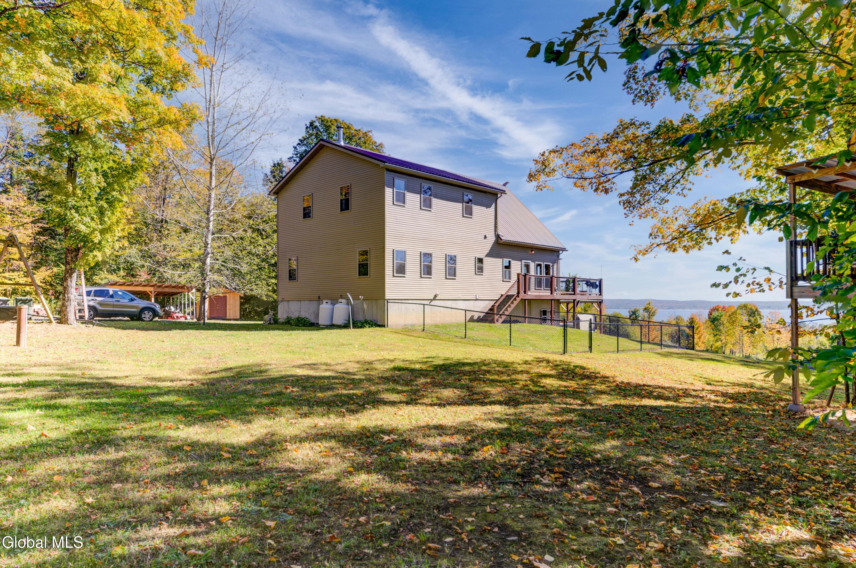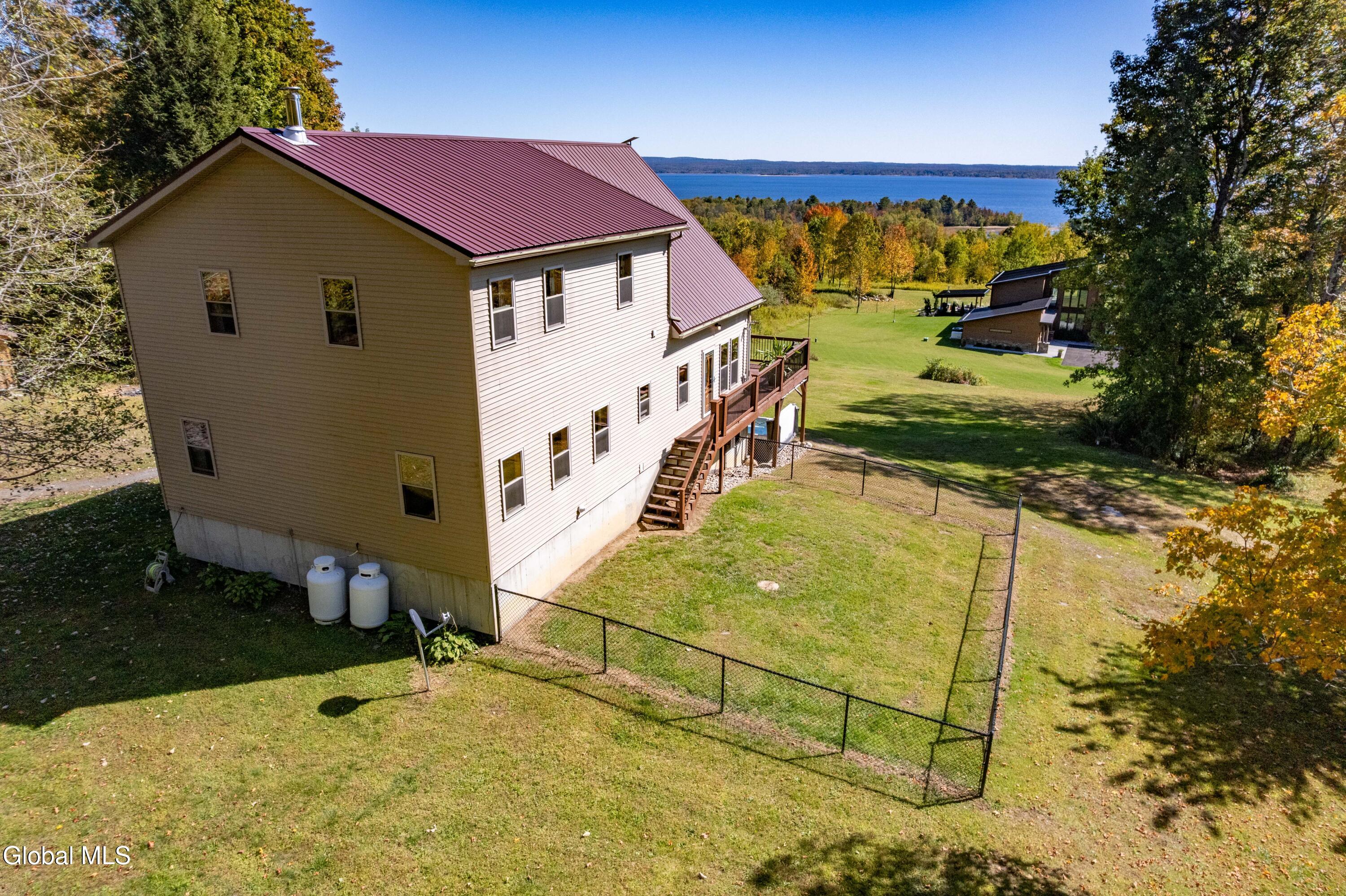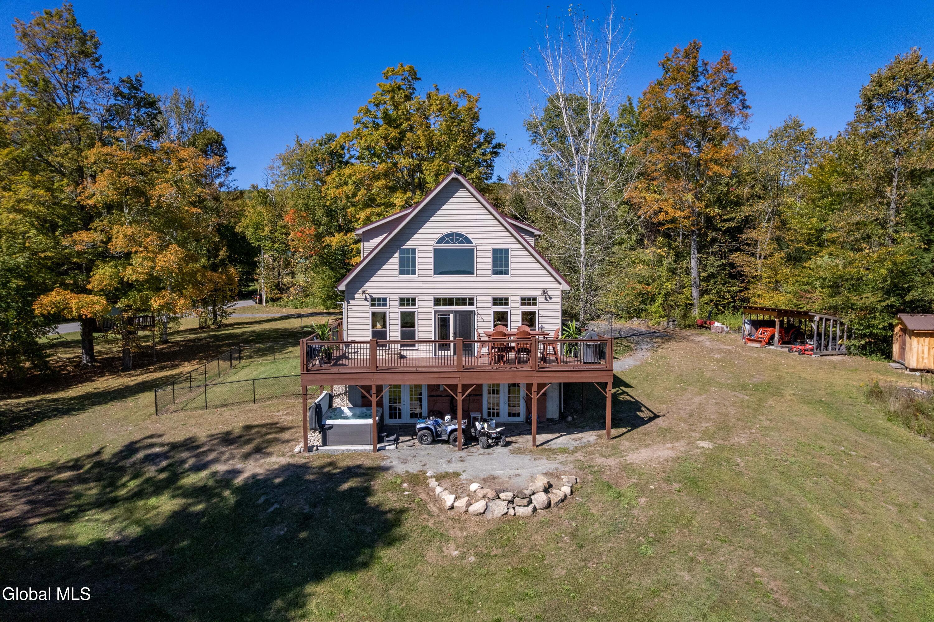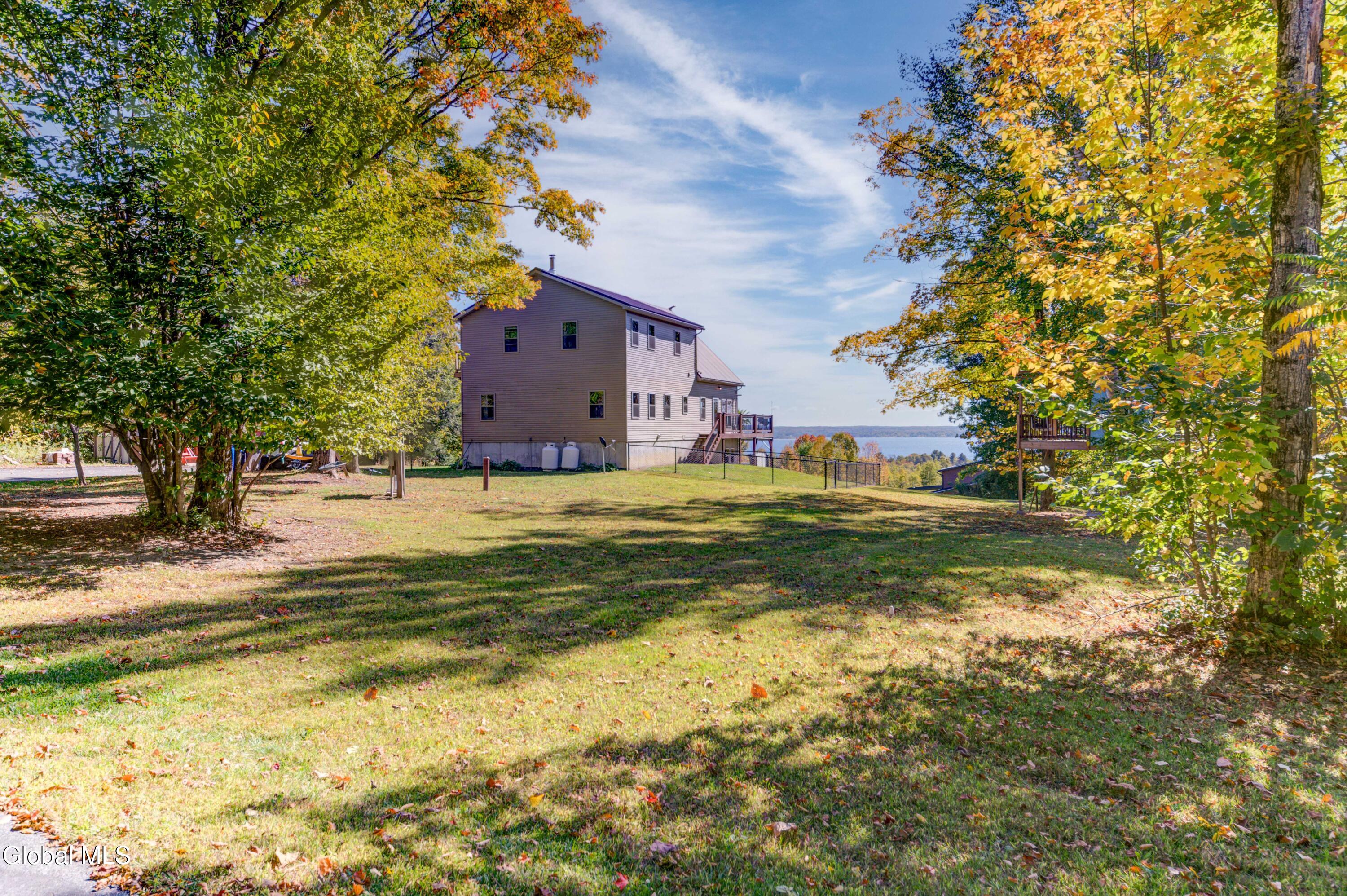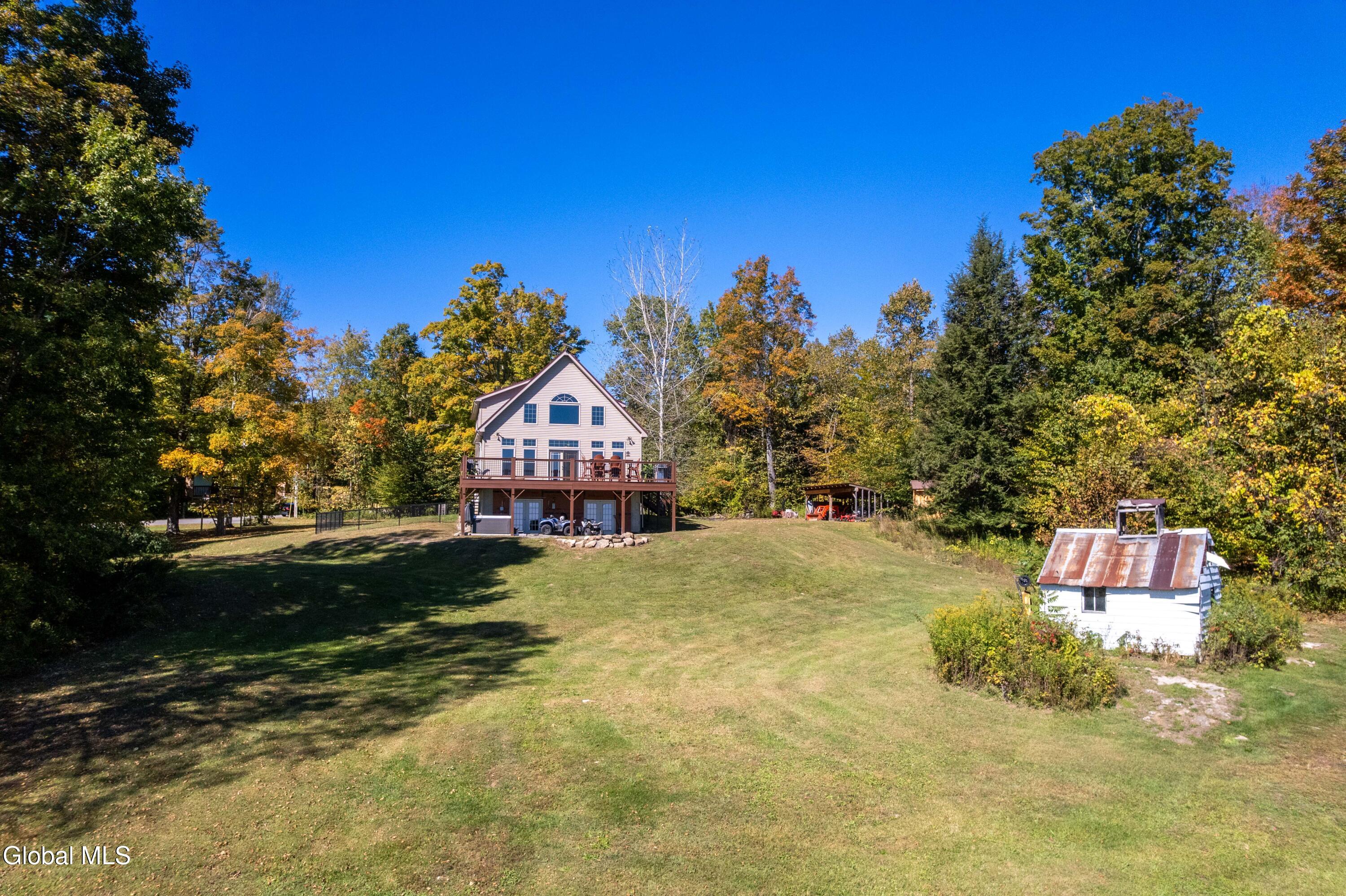 Stunning Lake & Mountain Views! Perched high on a ledge overlooking the Great Sacandaga Lake, this custom Chalet-style home sits on over 10 acres with a 10' beach permit a short drive away for lake access. Tucked away on a private dead-end road in the Mayfield School District, this 4-bedroom, 3-bath home offers the perfect blend of seclusion and convenience. Inside, the soaring vaulted ceilings and wall of windows in the Great Room showcase breathtaking lake and mountain views. The gourmet kitchen features custom hand-crafted cabinetry, granite countertops, and a spacious breakfast bar—a perfect gathering place for family and friends. A full walkout lower level provides additional living space potential, ready for your finishing touches. Step outside to the expansive wraparound deck, the ideal place to entertain or simply relax surrounded by nature. Unwind on the covered patio in the newer hot tub—perfect for soaking in the peaceful setting after a long day. A true Adirondack retreat with endless possibilities!