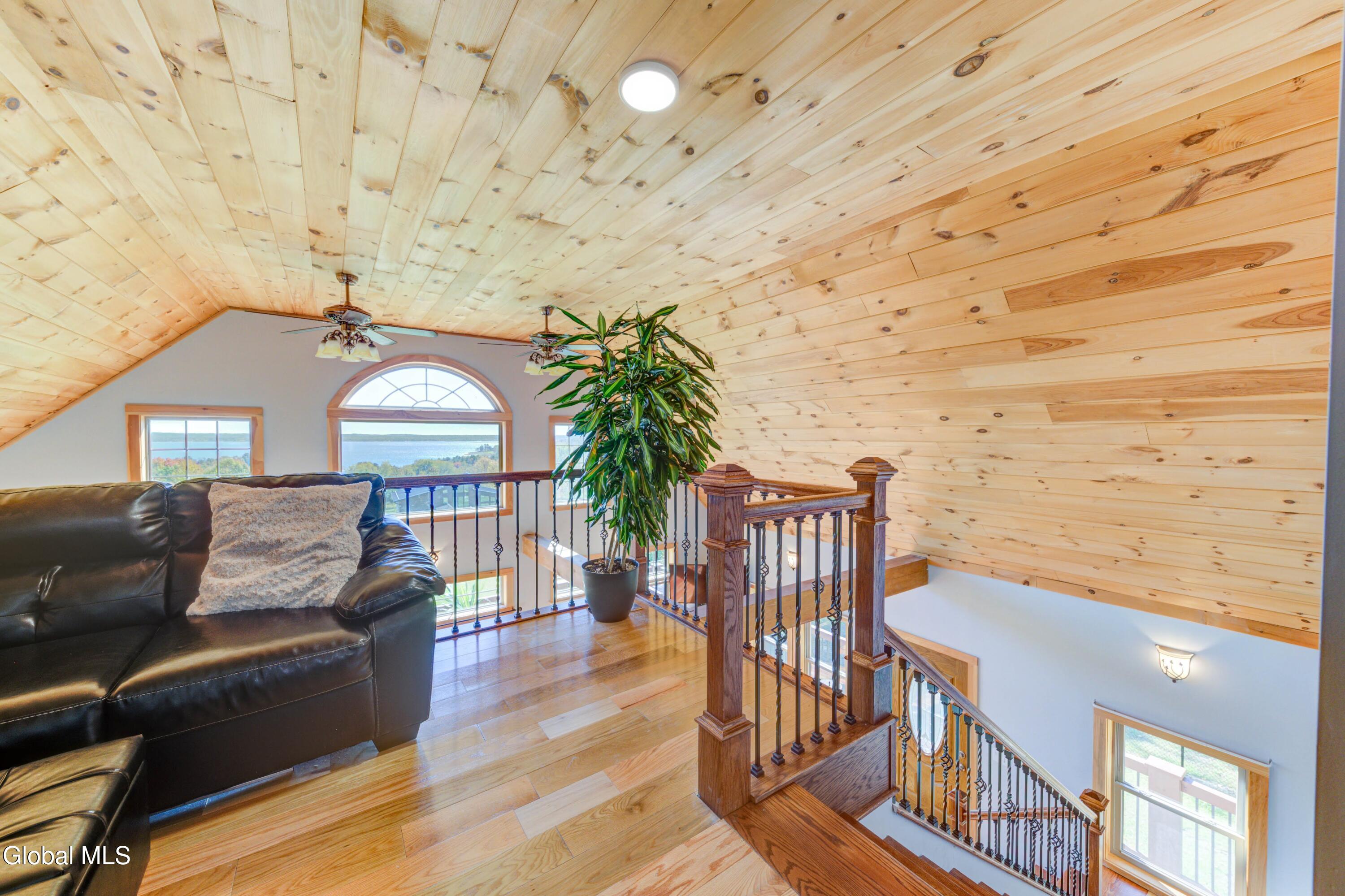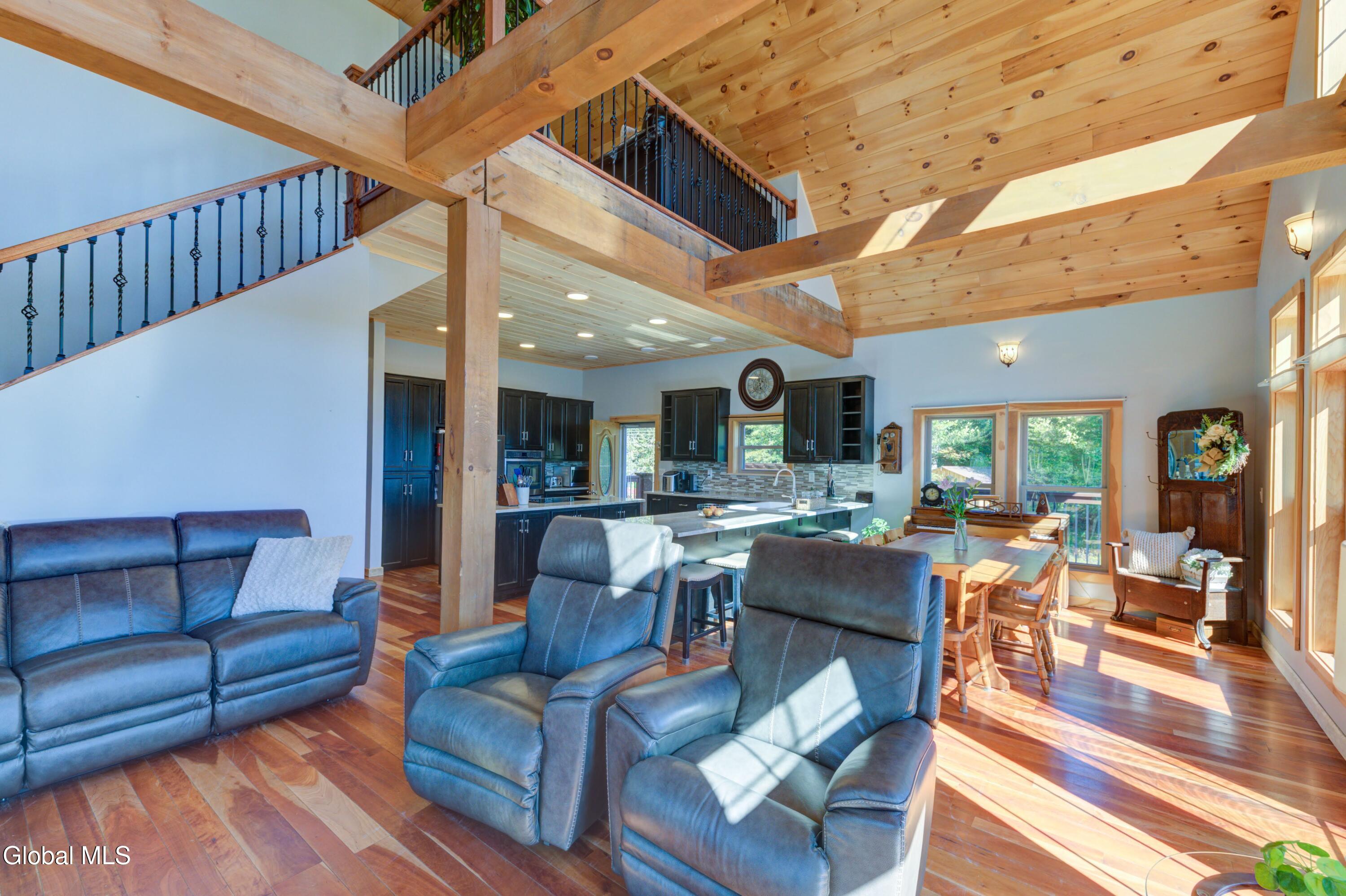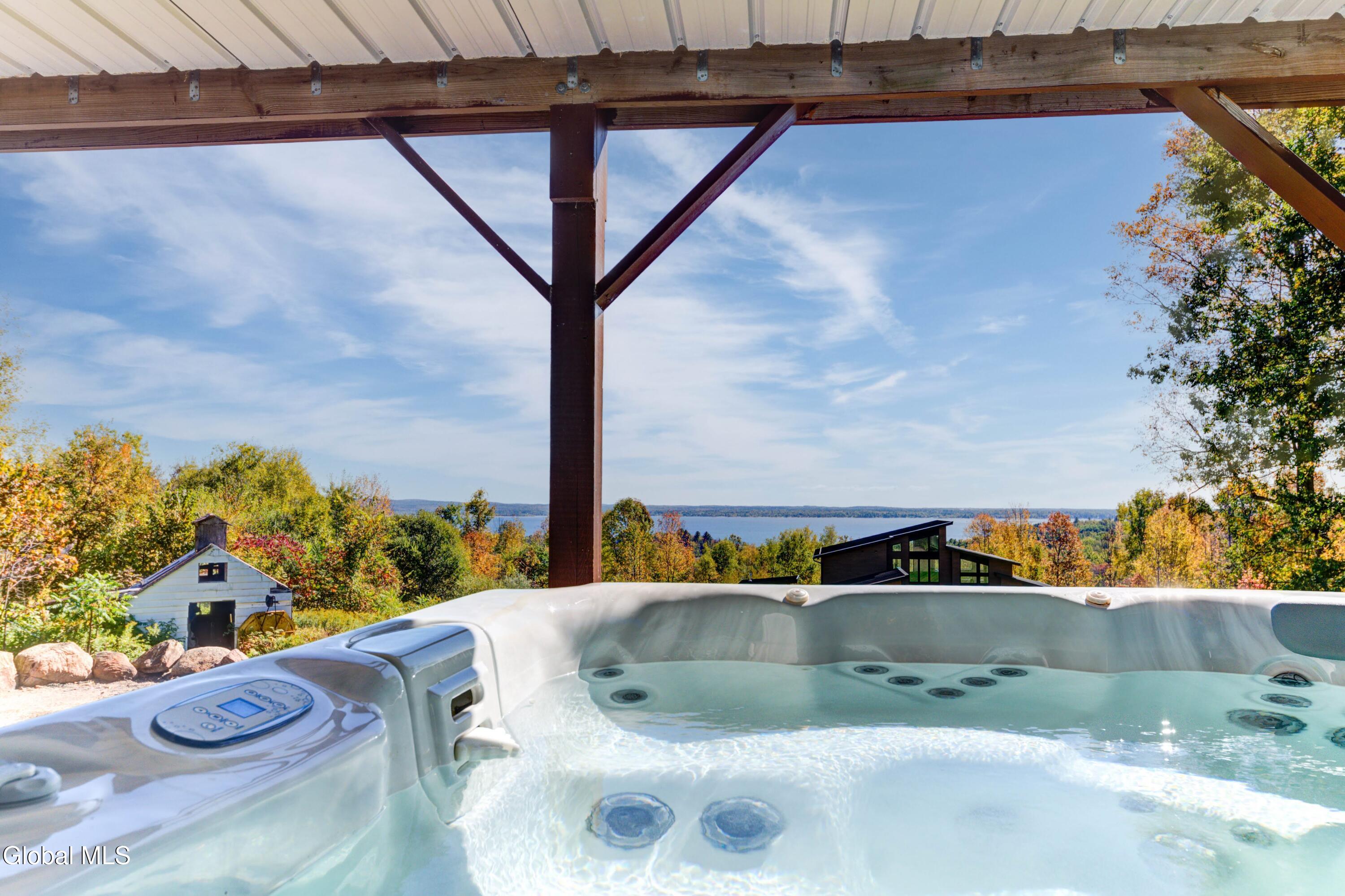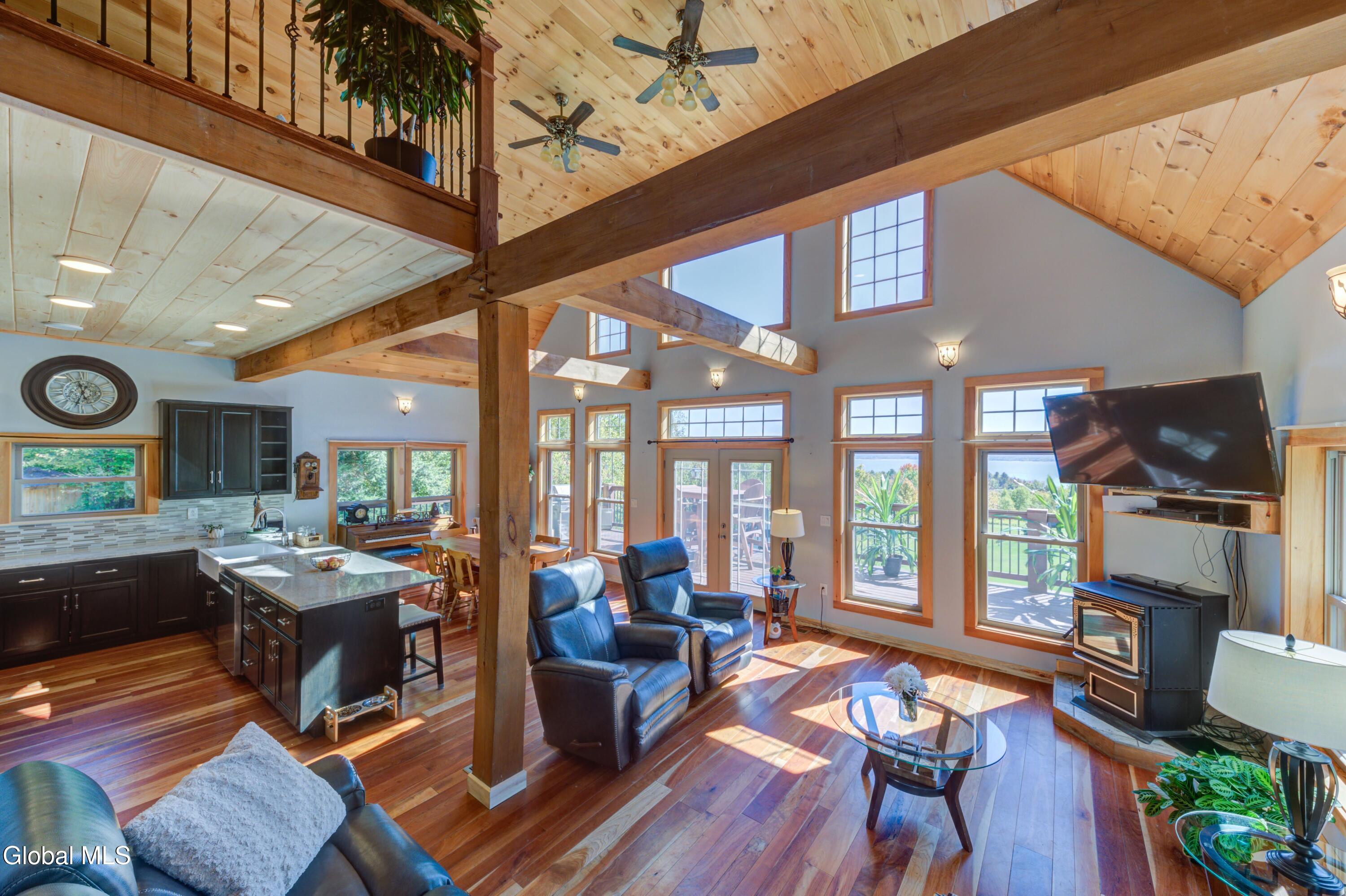 Stunning Lake & Mountain Views! Perched high on a ledge overlooking the Great Sacandaga Lake, this custom Chalet-style home sits on over 10 acres with a 10' beach permit a short drive away for lake access. Tucked away on a private dead-end road in the Mayfield School District, this 4-bedroom, 3-bath home offers the perfect blend of seclusion and convenience. Inside, the soaring vaulted ceilings and wall of windows in the Great Room showcase breathtaking lake and mountain views. The gourmet kitchen features custom hand-crafted cabinetry, granite countertops, and a spacious breakfast bar—a perfect gathering place for family and friends. A full walkout lower level provides additional living space potential, ready for your finishing touches. Step outside to the expansive wraparound deck, the ideal place to entertain or simply relax surrounded by nature. Unwind on the covered patio in the newer hot tub—perfect for soaking in the peaceful setting after a long day. A true Adirondack retreat with endless possibilities!