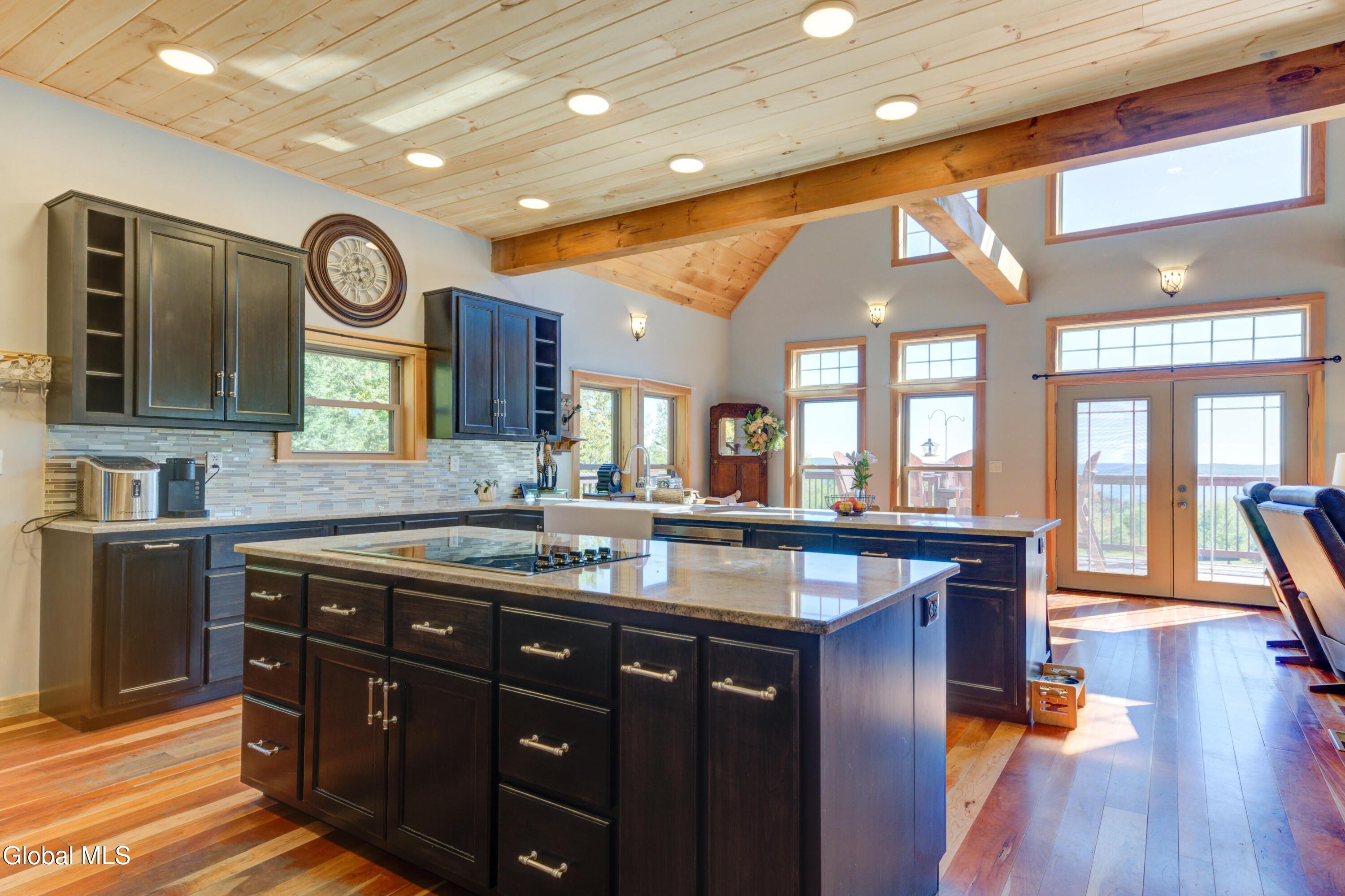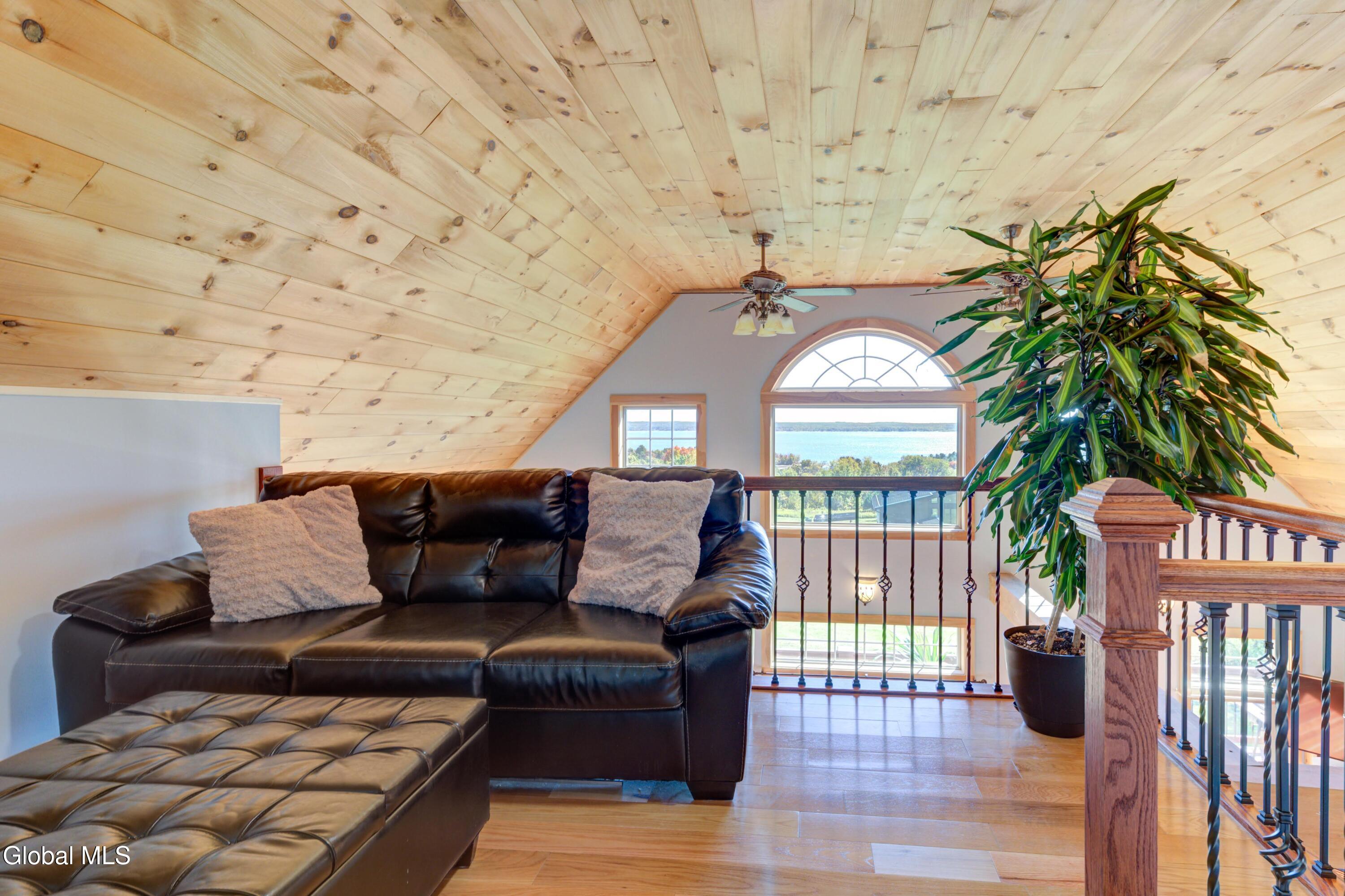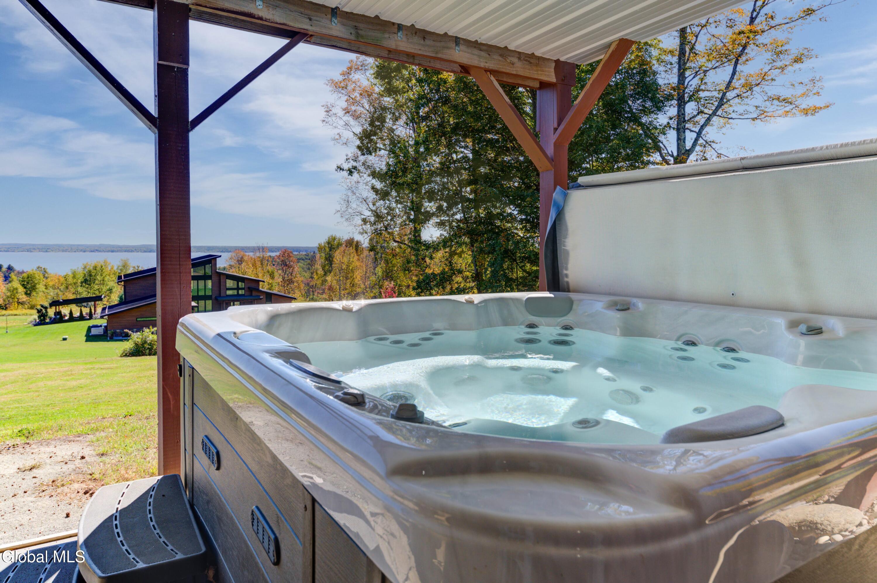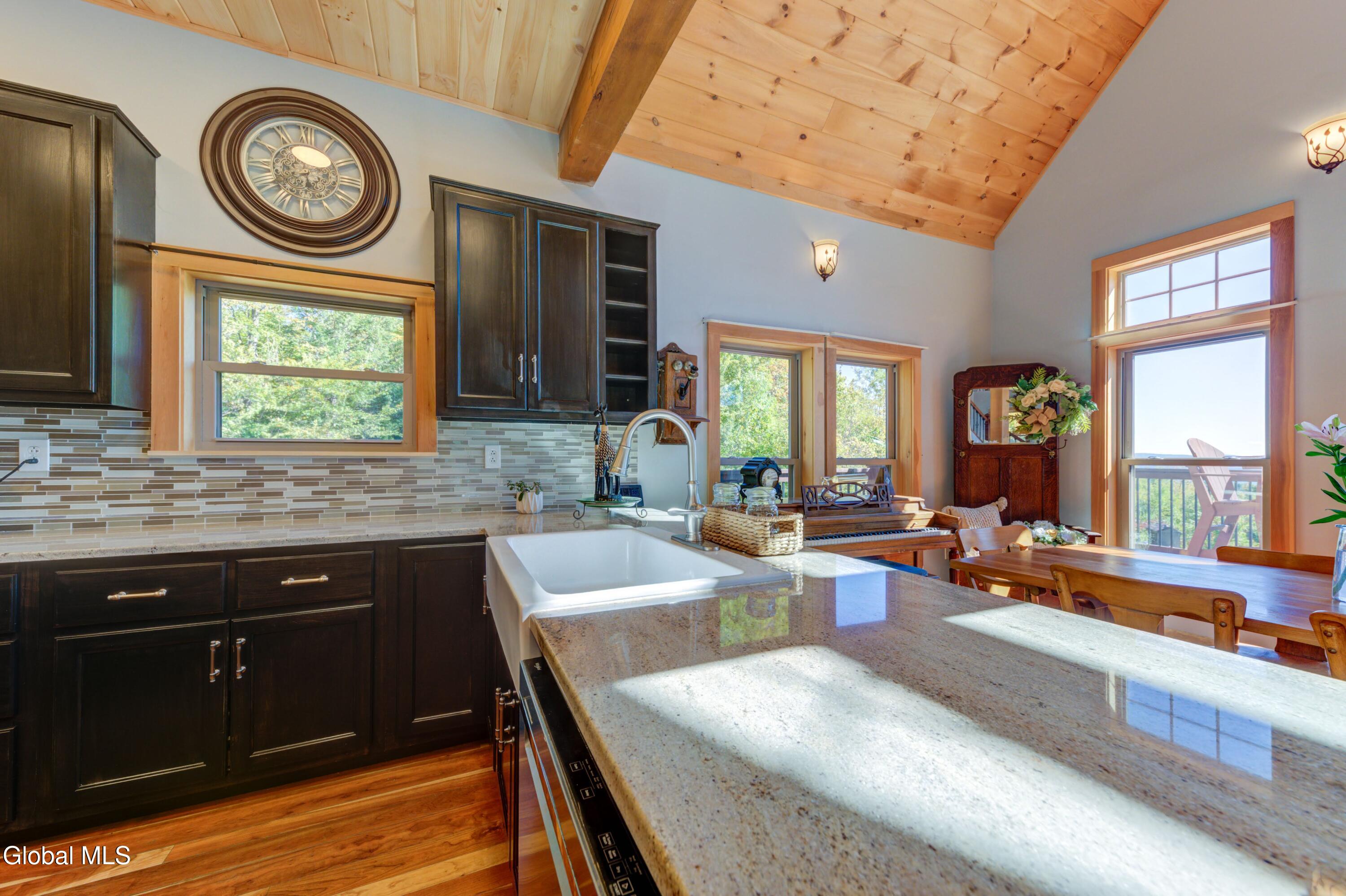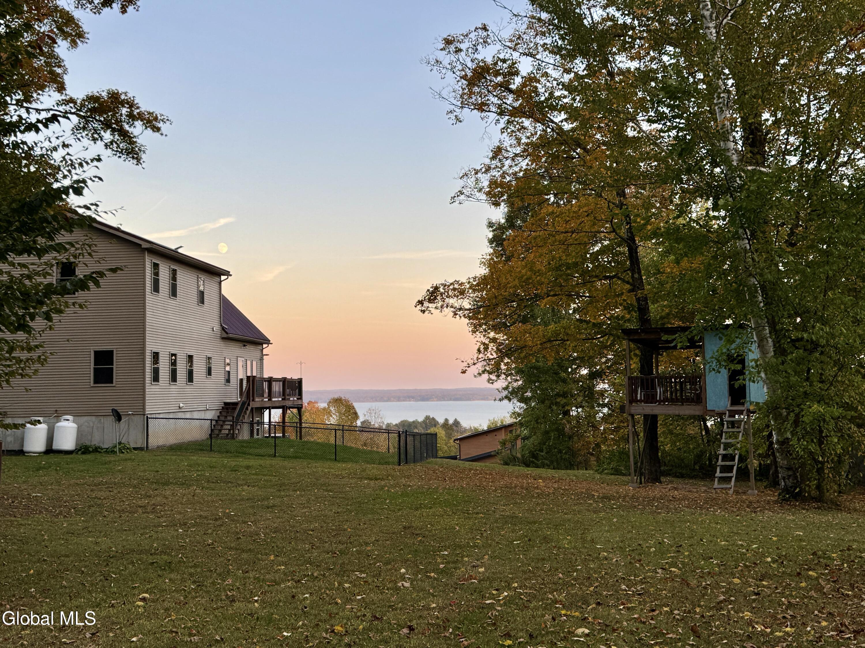 Stunning Lake & Mountain Views! Perched high on a ledge overlooking the Great Sacandaga Lake, this custom Chalet-style home sits on over 10 acres with a 10' beach permit a short drive away for lake access. Tucked away on a private dead-end road in the Mayfield School District, this 4-bedroom, 3-bath home offers the perfect blend of seclusion and convenience. Inside, the soaring vaulted ceilings and wall of windows in the Great Room showcase breathtaking lake and mountain views. The gourmet kitchen features custom hand-crafted cabinetry, granite countertops, and a spacious breakfast bar—a perfect gathering place for family and friends. A full walkout lower level provides additional living space potential, ready for your finishing touches. Step outside to the expansive wraparound deck, the ideal place to entertain or simply relax surrounded by nature. Unwind on the covered patio in the newer hot tub—perfect for soaking in the peaceful setting after a long day. A true Adirondack retreat with endless possibilities!