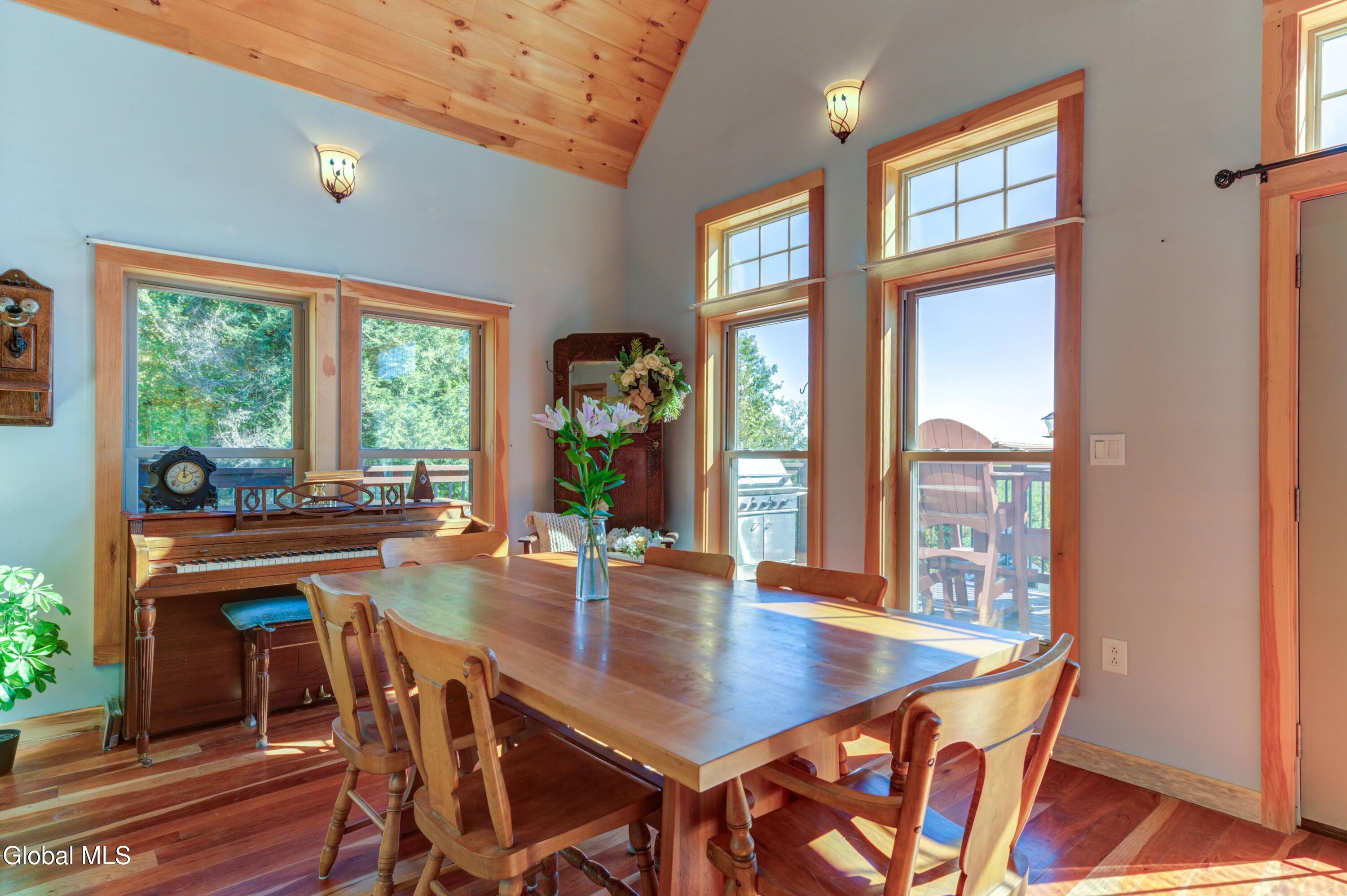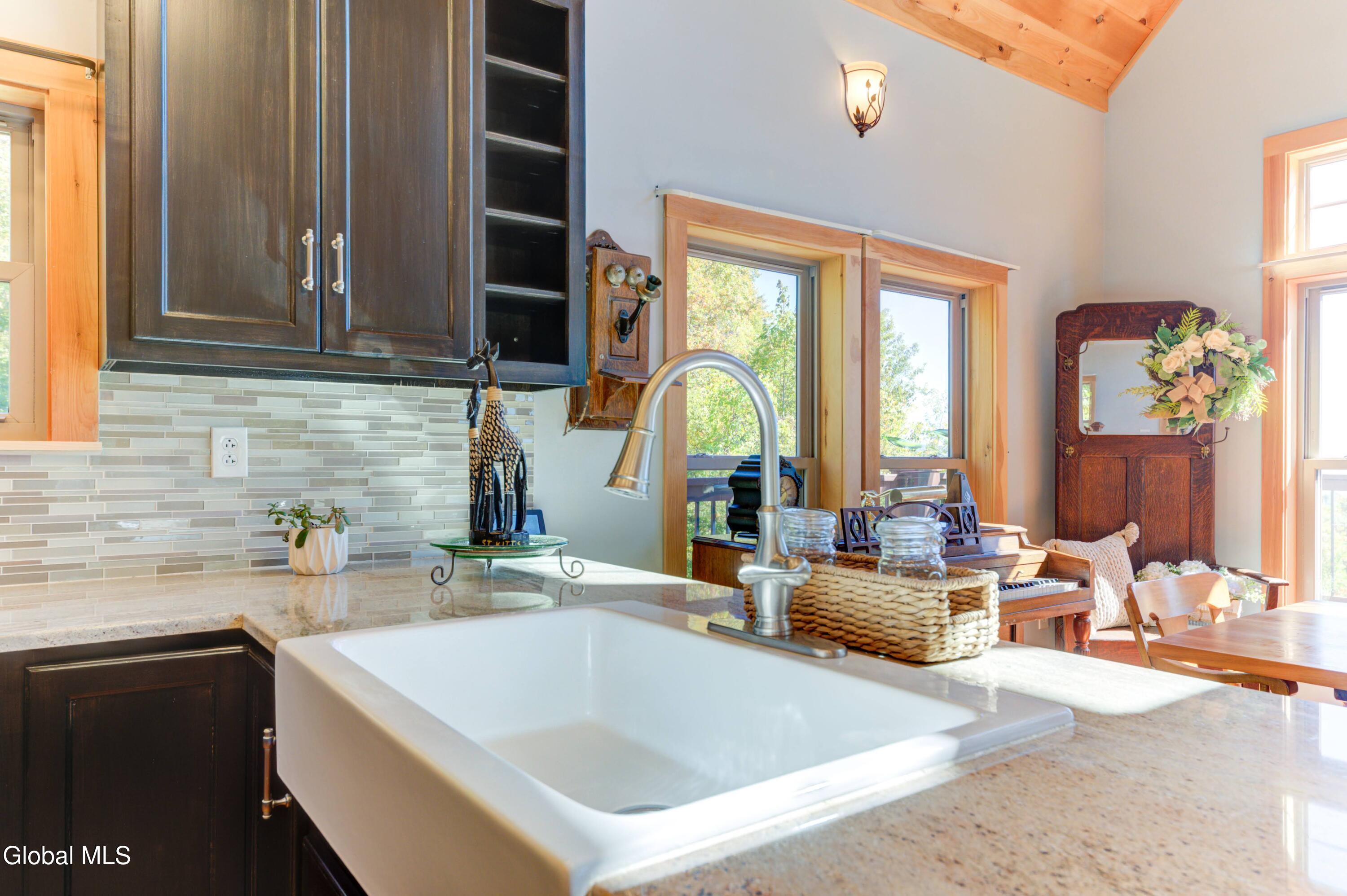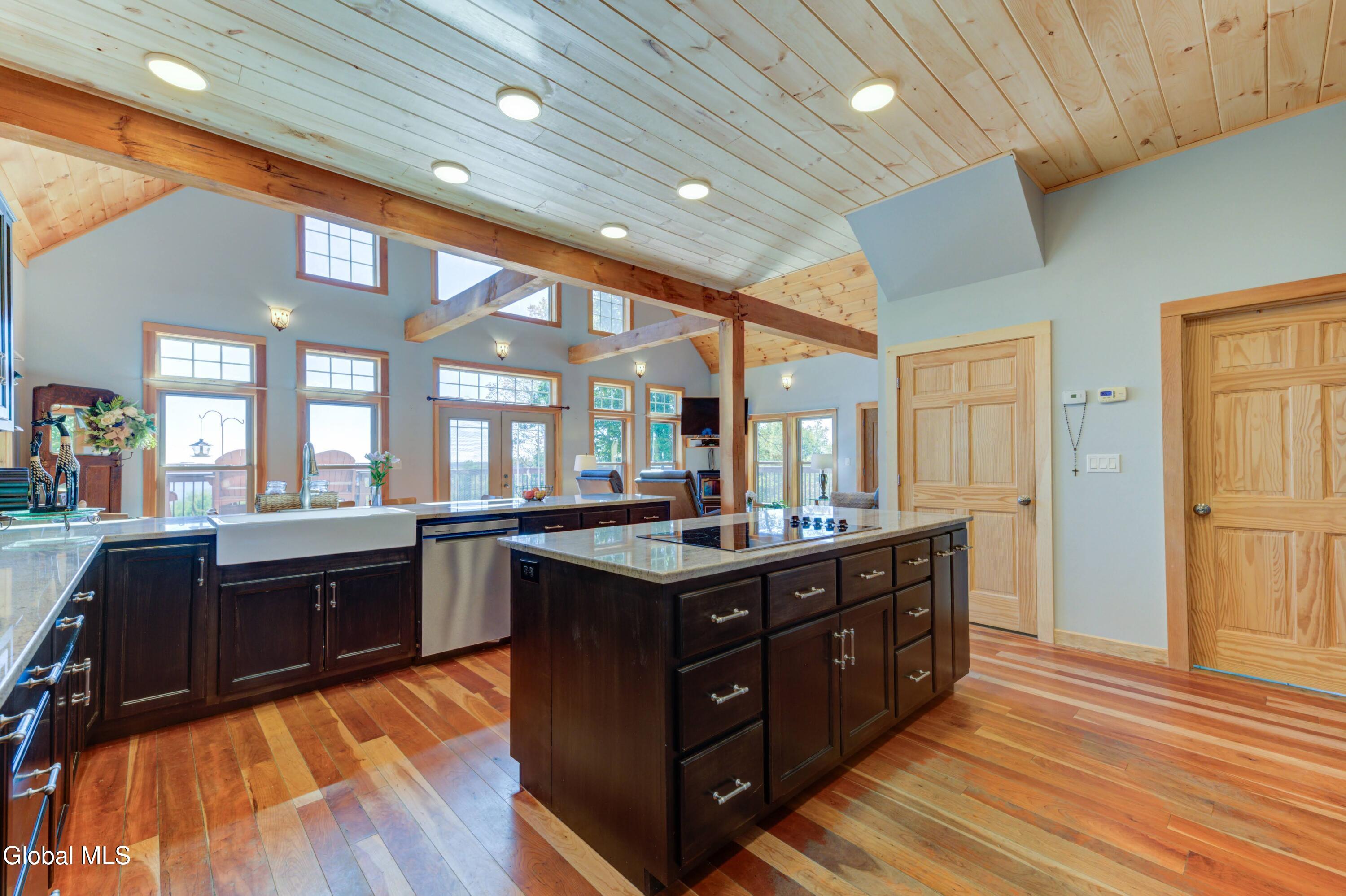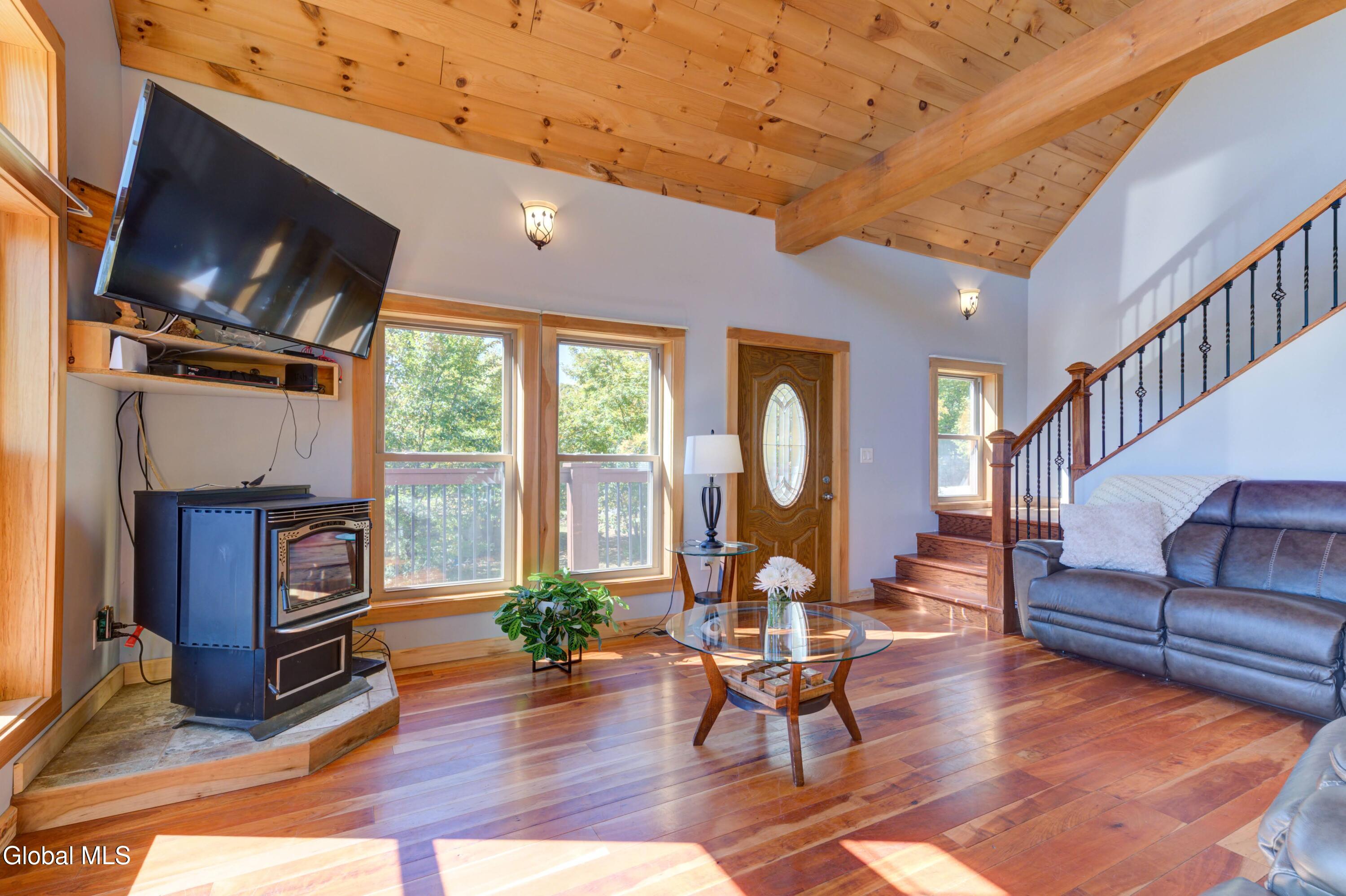 Stunning Lake & Mountain Views! Perched high on a ledge overlooking the Great Sacandaga Lake, this custom Chalet-style home sits on over 10 acres with a 10' beach permit a short drive away for lake access. Tucked away on a private dead-end road in the Mayfield School District, this 4-bedroom, 3-bath home offers the perfect blend of seclusion and convenience. Inside, the soaring vaulted ceilings and wall of windows in the Great Room showcase breathtaking lake and mountain views. The gourmet kitchen features custom hand-crafted cabinetry, granite countertops, and a spacious breakfast bar—a perfect gathering place for family and friends. A full walkout lower level provides additional living space potential, ready for your finishing touches. Step outside to the expansive wraparound deck, the ideal place to entertain or simply relax surrounded by nature. Unwind on the covered patio in the newer hot tub—perfect for soaking in the peaceful setting after a long day. A true Adirondack retreat with endless possibilities!