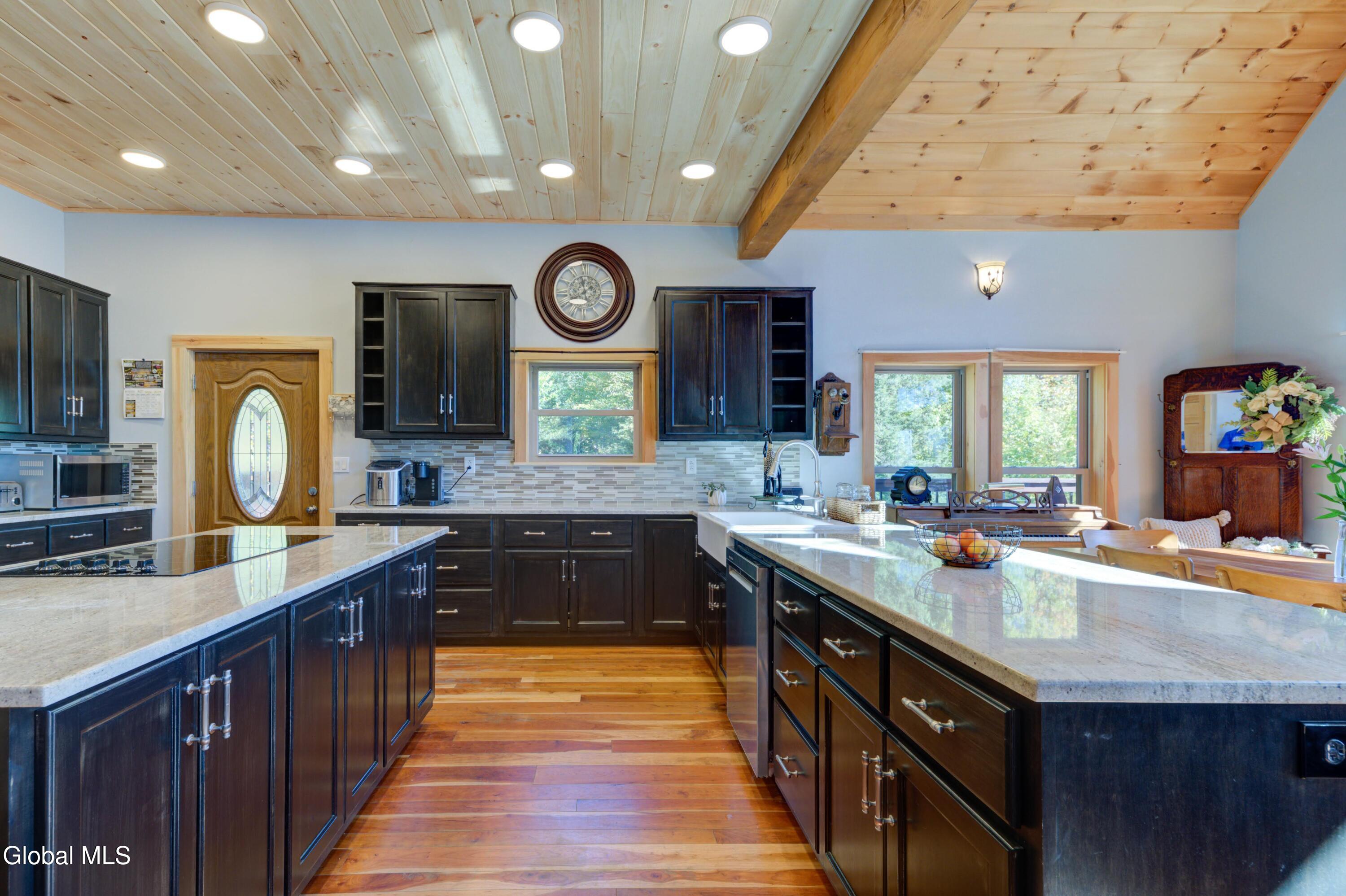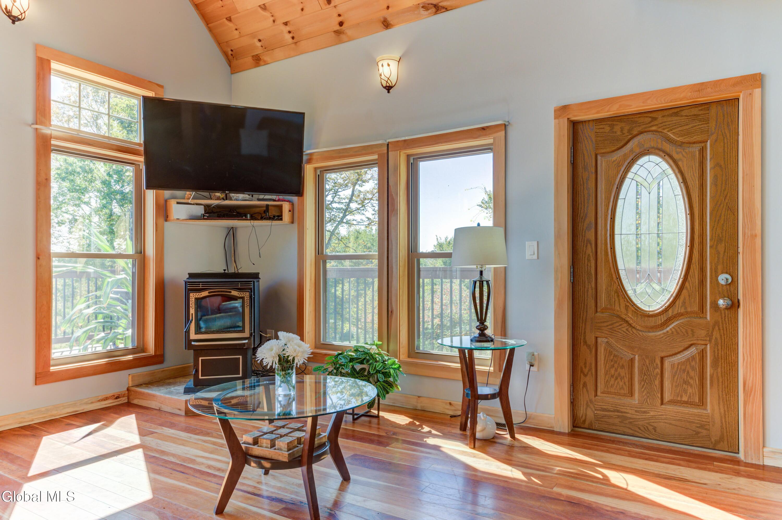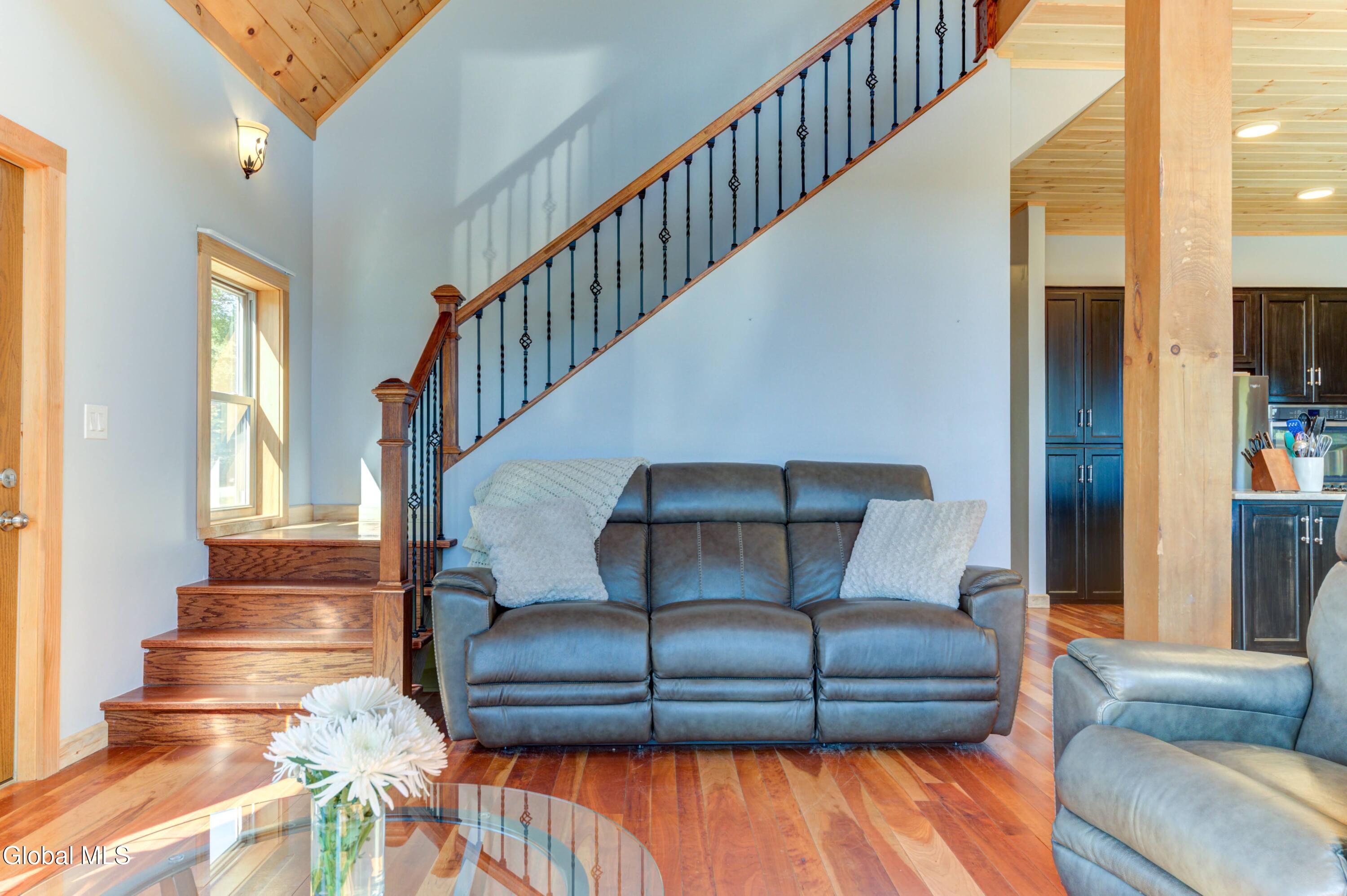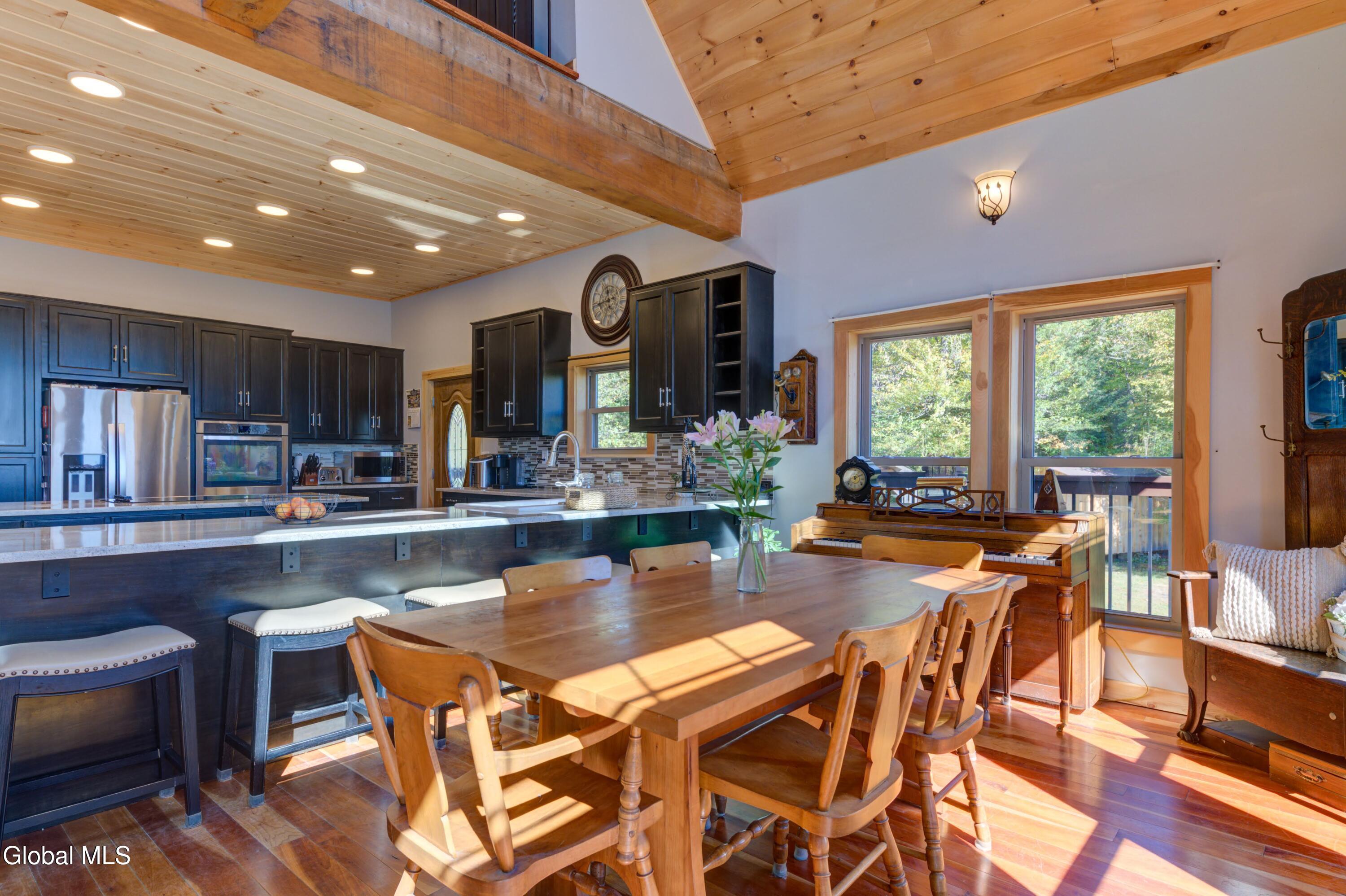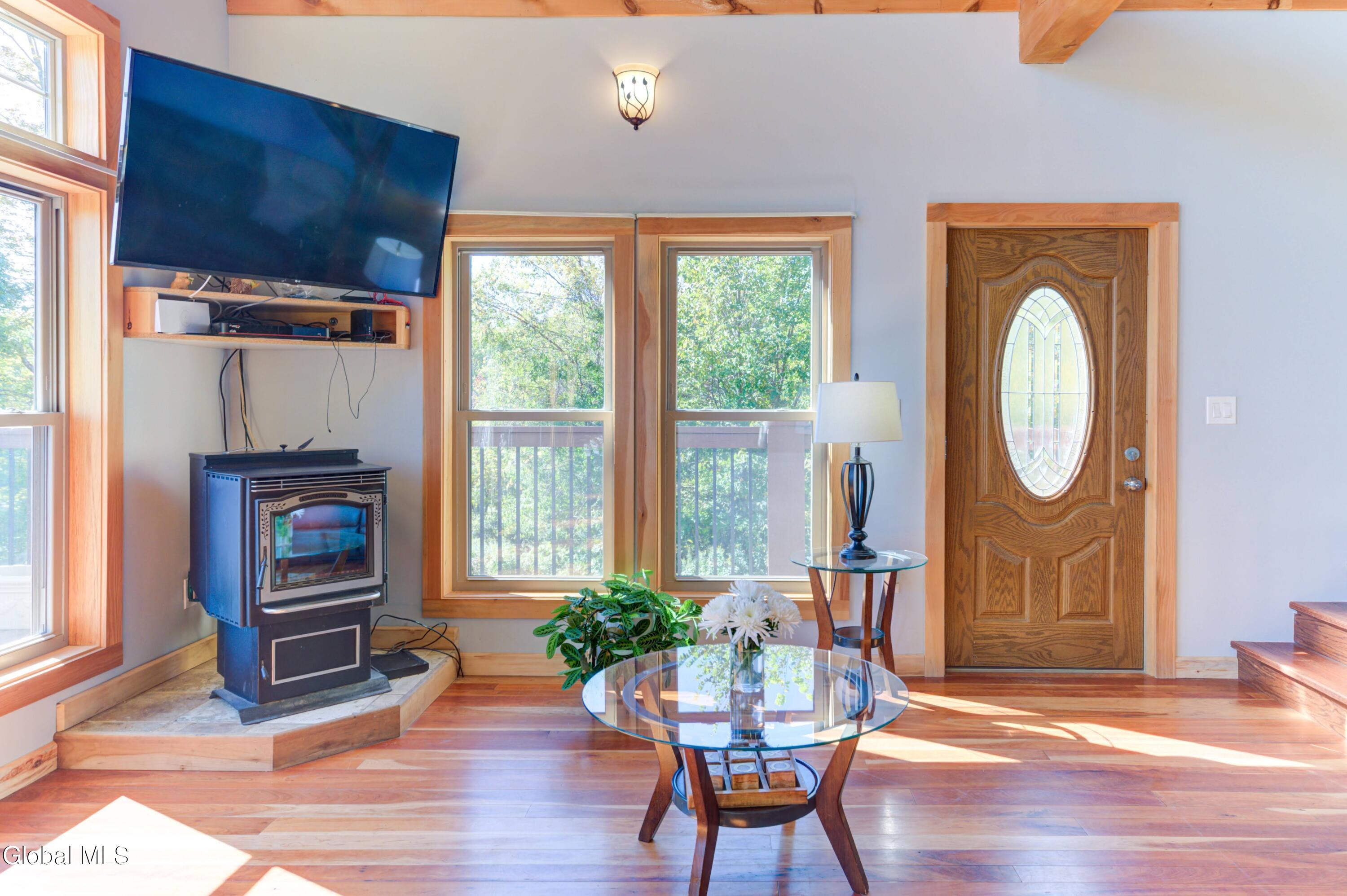 Stunning Lake & Mountain Views! Perched high on a ledge overlooking the Great Sacandaga Lake, this custom Chalet-style home sits on over 10 acres with a 10' beach permit a short drive away for lake access. Tucked away on a private dead-end road in the Mayfield School District, this 4-bedroom, 3-bath home offers the perfect blend of seclusion and convenience. Inside, the soaring vaulted ceilings and wall of windows in the Great Room showcase breathtaking lake and mountain views. The gourmet kitchen features custom hand-crafted cabinetry, granite countertops, and a spacious breakfast bar—a perfect gathering place for family and friends. A full walkout lower level provides additional living space potential, ready for your finishing touches. Step outside to the expansive wraparound deck, the ideal place to entertain or simply relax surrounded by nature. Unwind on the covered patio in the newer hot tub—perfect for soaking in the peaceful setting after a long day. A true Adirondack retreat with endless possibilities!