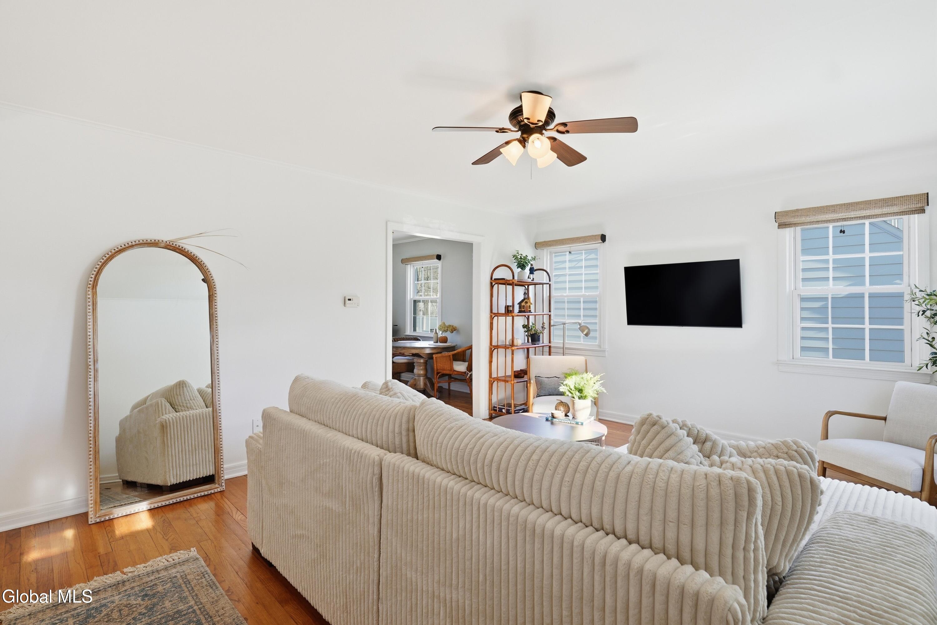 3BR 2 full bath Cape Cod, that is completely move in ready and located a few blocks from Niskayuna HS! 1st Flr features a formal Liv Rm, Din Rm (w/ built in corner cabinetry) and Kitchen as well as 2BRs and a full bath. 2nd Flr Suite has a large BR, lots of storage space and another full bath! This property features hardwood Floors, ceiling fans, vinyl windows, modern lighting blue stone front entry steps and a concrete driveway. Out side is neat and easy to maintain w/ a two-tier deck over looking the fenced yard, a one car detached garage and an additional storage shed.
