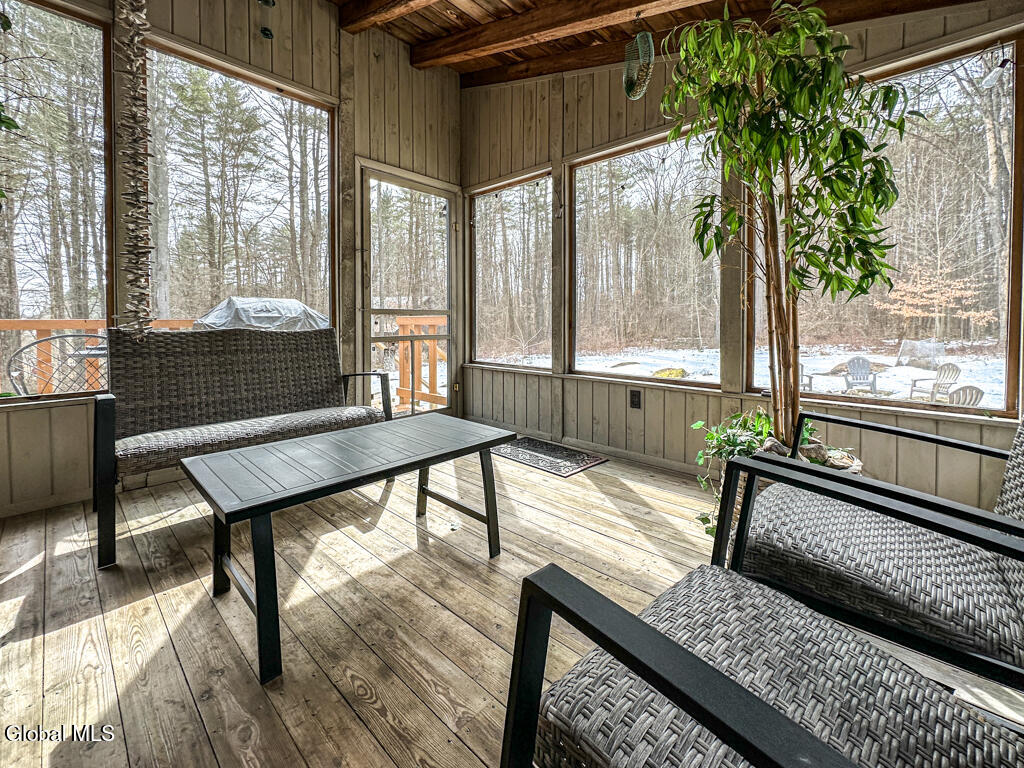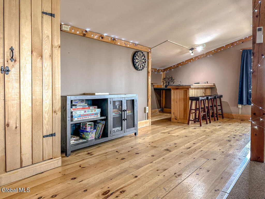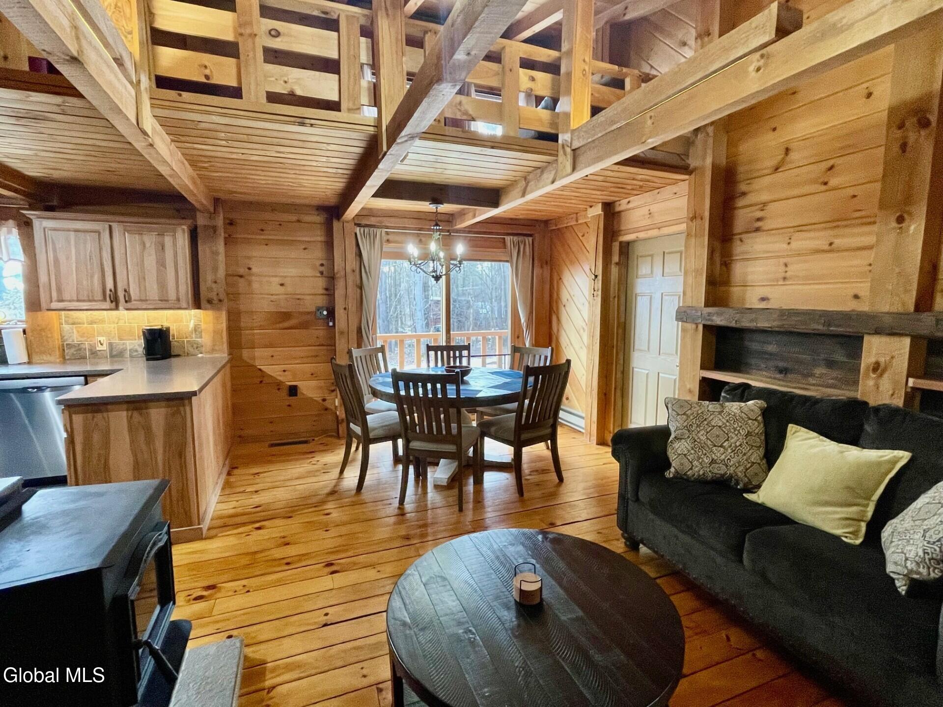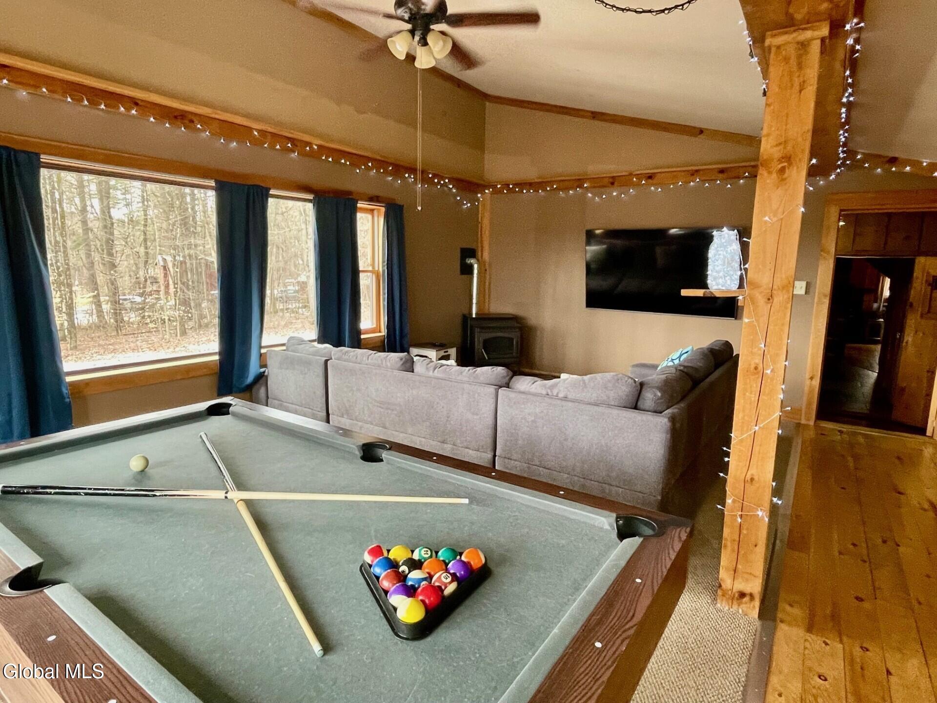 Welcome to 21 Tripoli Road! Let's review all of the amazing accolades this property has to offer. Seller has some STR History.The exterior siding of this Contemporary Bi-level has been recently stained.The interior has an Adirondack/Cabin/Chalet flair and vibe that fits the area perfectly. This home sits on over 4.4 private acres and has woodland and meadow views. The yard is partially fenced for your furry friends and has raised beds for gardening of veggies or cut flowers for interior decor. Outside living is extremely inviting with an enclosed screened in porch and exterior fire pit area. Inside, you will find over 2000 square feet of the warmth of wood. Exposed beams, rustic sawn rafters, ADK stick design; and built-ins enhance the overall experience. The main floor is very open and enjoys an abundance of natural light. The kitchen has been updated in the recent past and has stainless steel appliances. There is an expansive room over the garage that currently acts as an off the chart game room with wet bar, Audio and Video Entertainment, billiard room, and storage. The forced hot air HVAC system, hot water tank, and water treatment system are all newer. For fall and winter nights, there are two pellet stoves to aid in creating ambiance and warmth. The basement has had some updating and finished space for additional living space. This property is ideally and centrally located. 10 minutes to Lake George docks and marinas, 20 minutes to Vermont, 2 minutes to Lake Hadlock. Both of these lakes are known for excellent boating and fishing. NY and VT skiing is all close by including West Mountain which is only 20 minutes away and has night skiing. If you like hiking and snowmobiling, your have picked the ideal location. Washington County snowmobile trails are extremely close by and the 46 high peaks of the Adirondack Mountains are at your door step! Give 21 Tripoli a peek; we think you will find it a tremendous value and investment. All furnishings are negotiable.