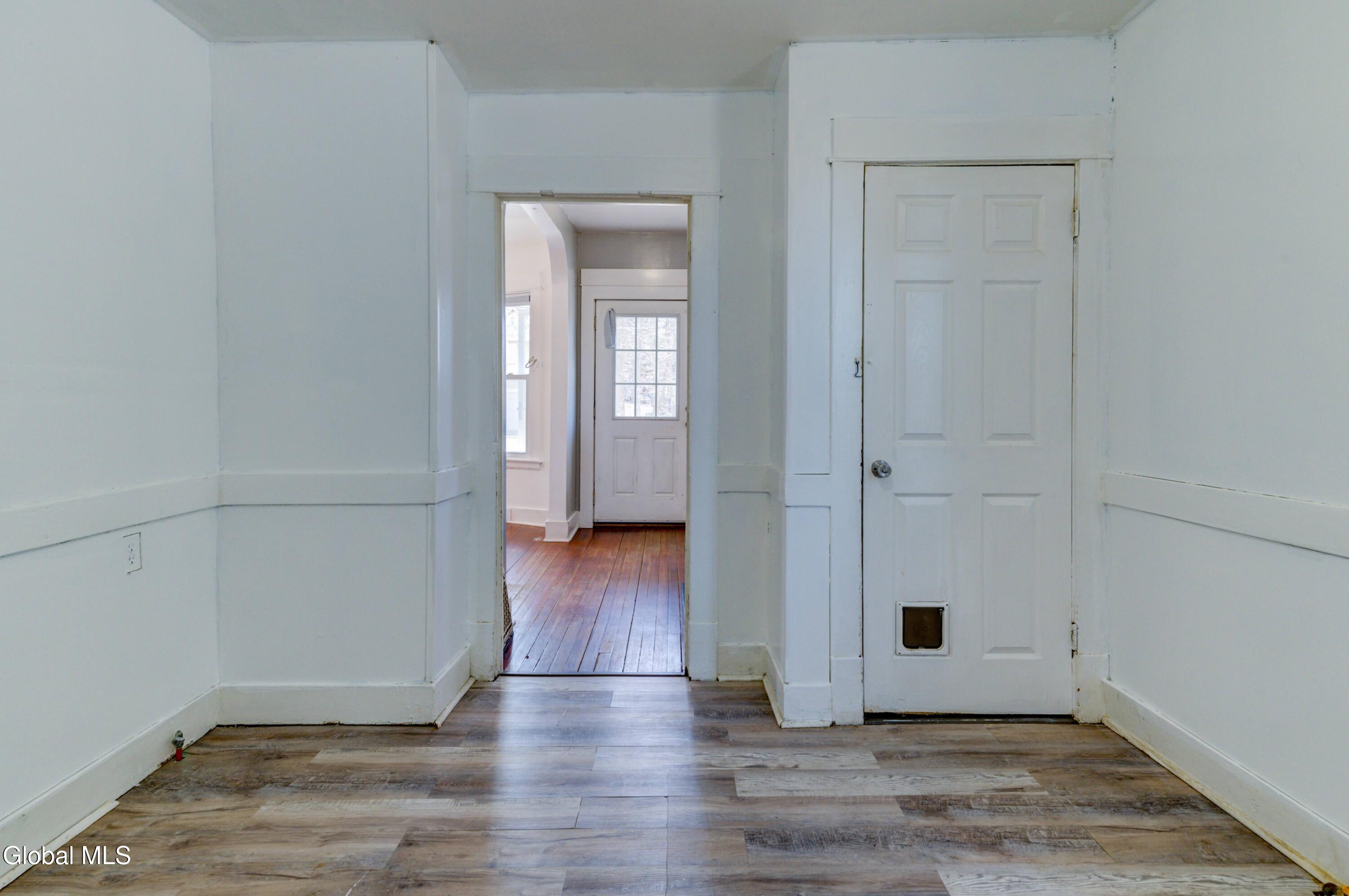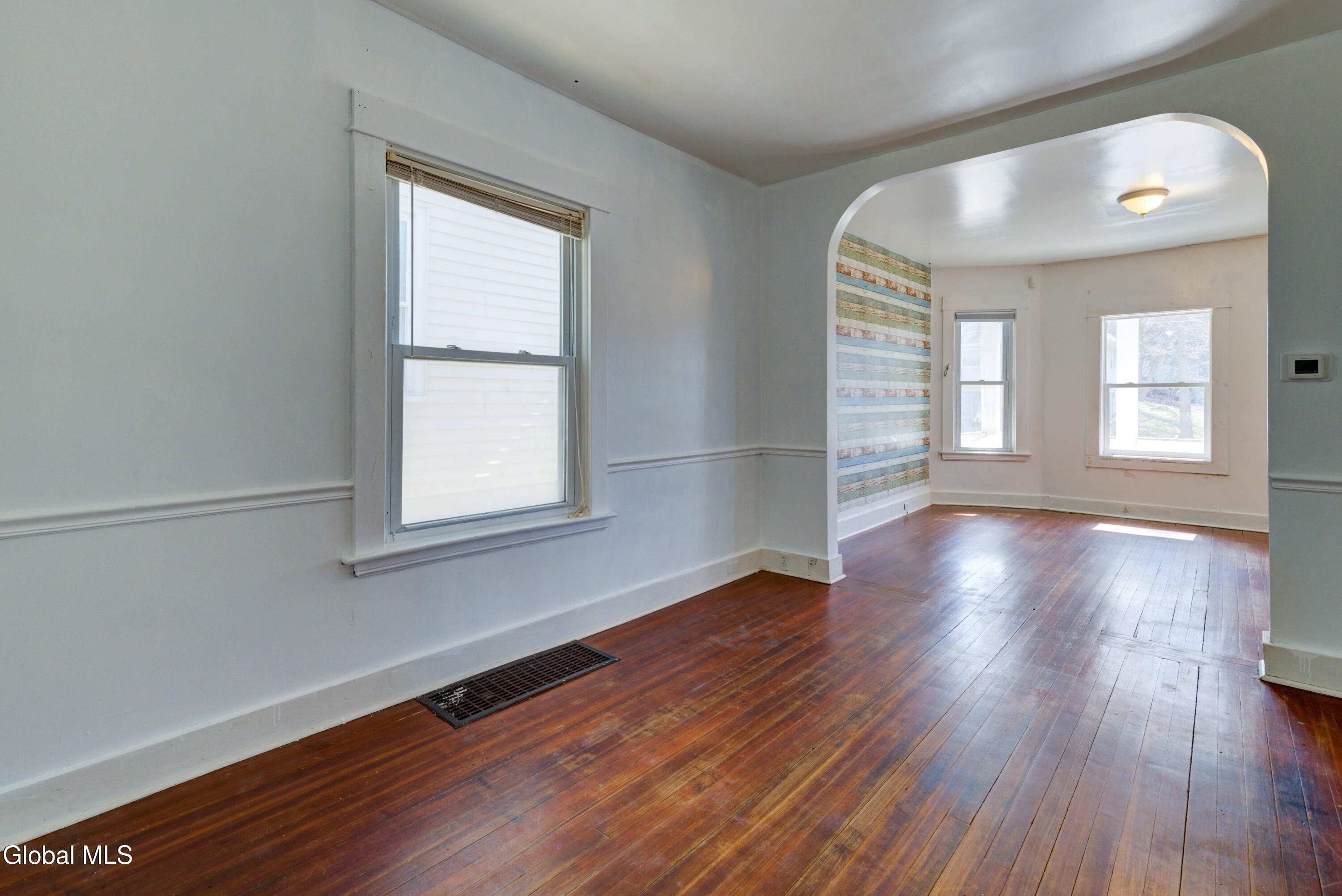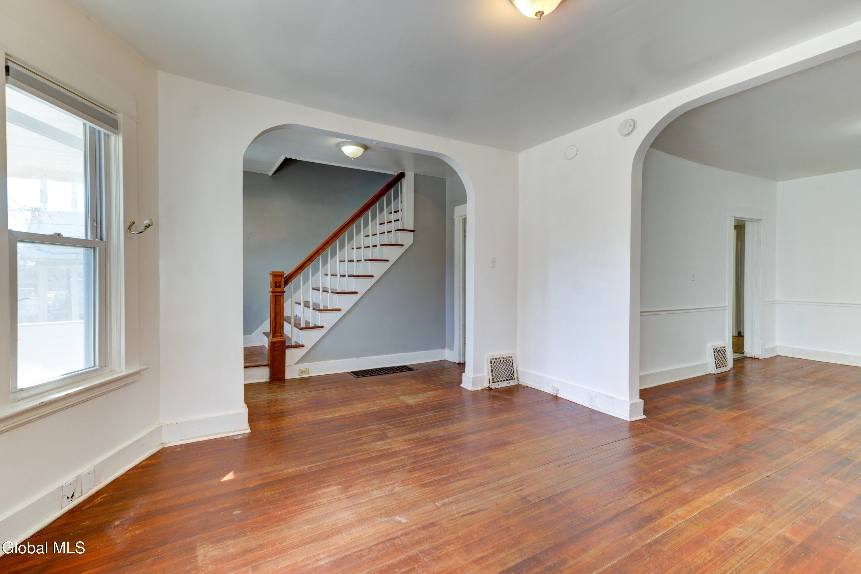Welcome to this charming 3-bedroom, 1.5-bathroom Colonial located in the heart of Schenectady. This 1,220-square-foot home offers a classic layout with original hardwood floors .Plenty of potential for homeowners or investors alike. The main level features a functional floor plan, while the second floor houses three well-proportioned bedrooms. Situated on a manageable back yard the property includes a massive detached garage with space for up to 2 vehicles, a rare find for this neighborhood. The exterior boasts a traditional porch perfect for enjoying the local atmosphere, and the home is ideally located within walking distance to the park, local amenities, and public transportation. Ready for its next chapter, this property is a must-see; schedule your tour today to explore the possibilities.