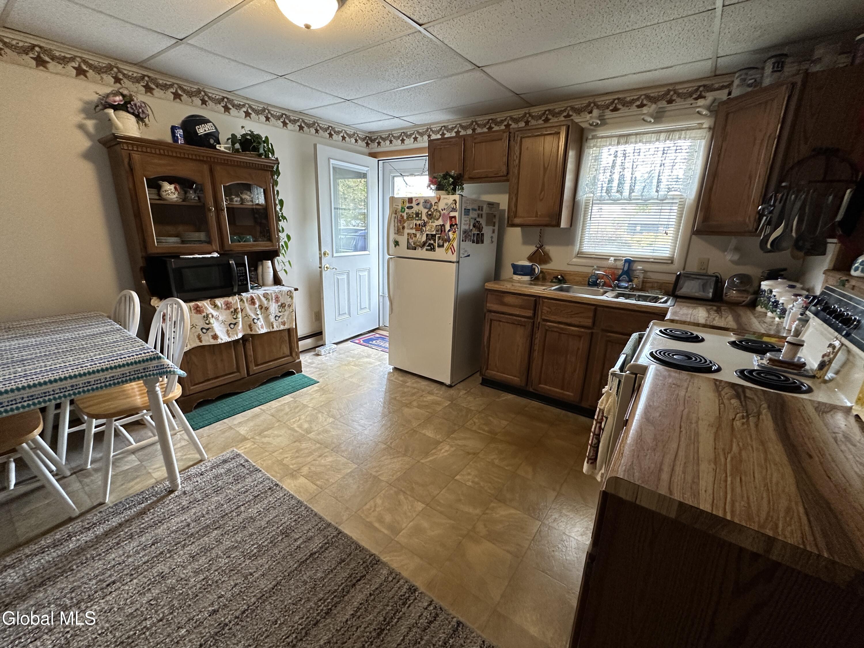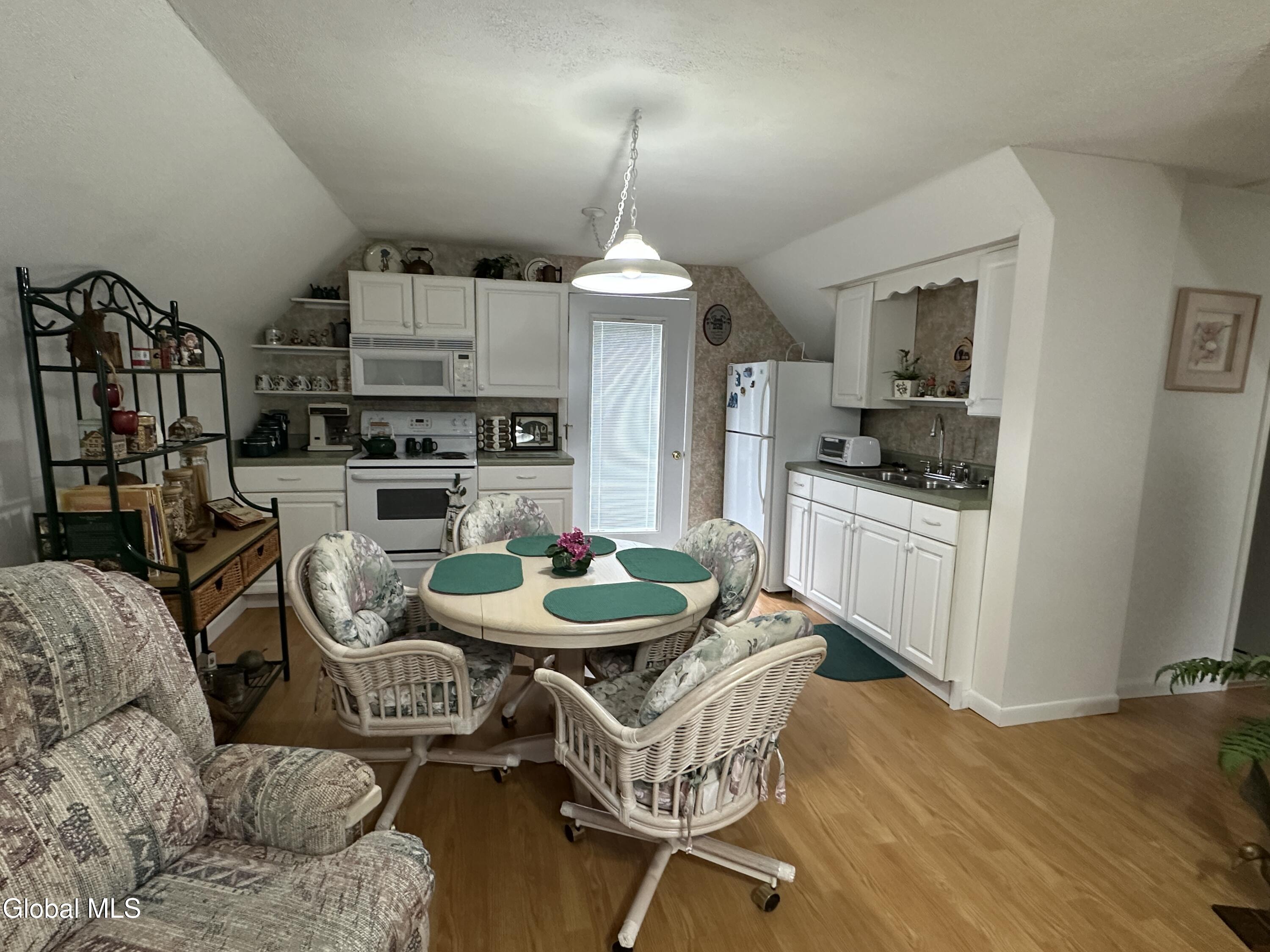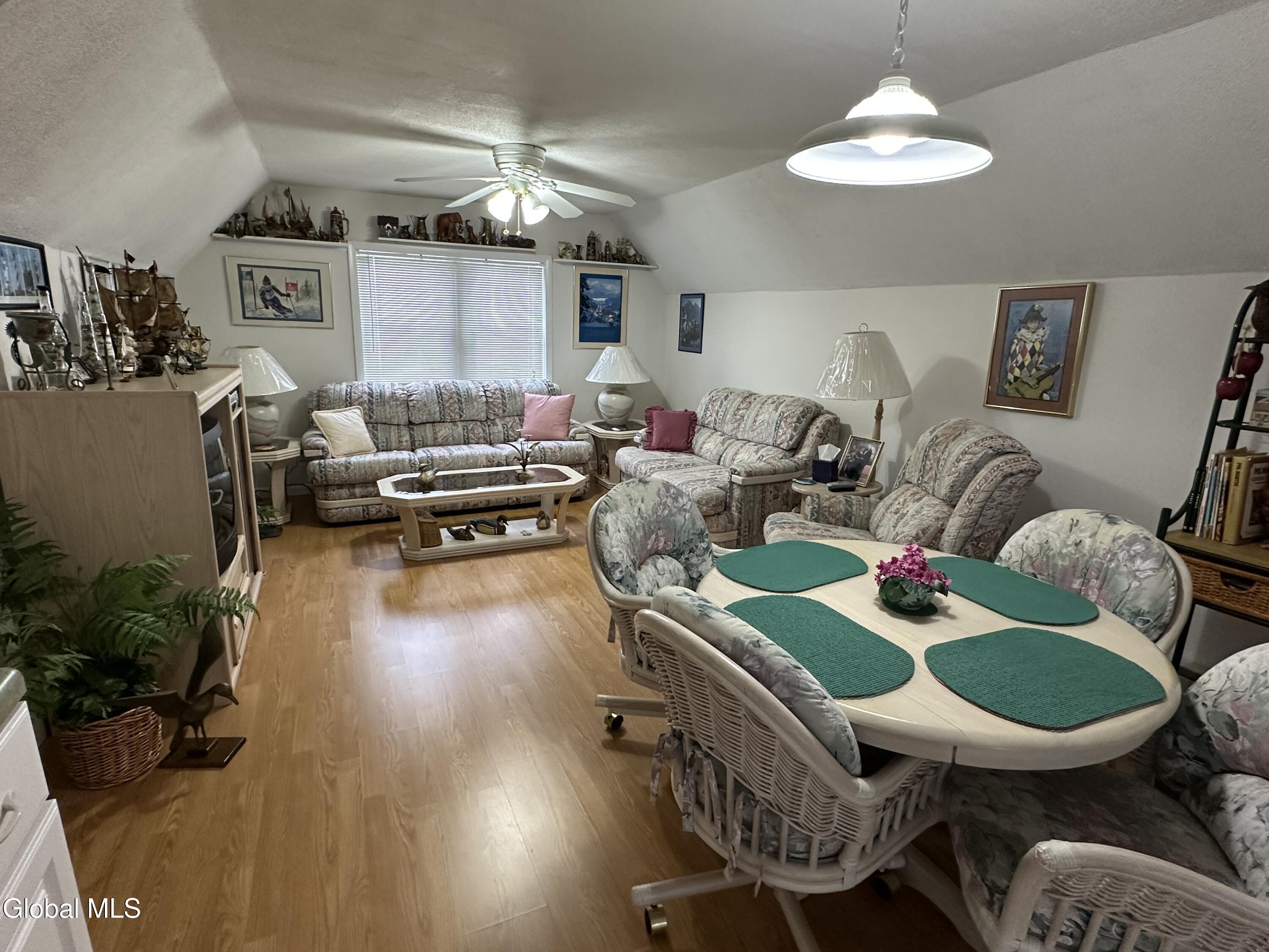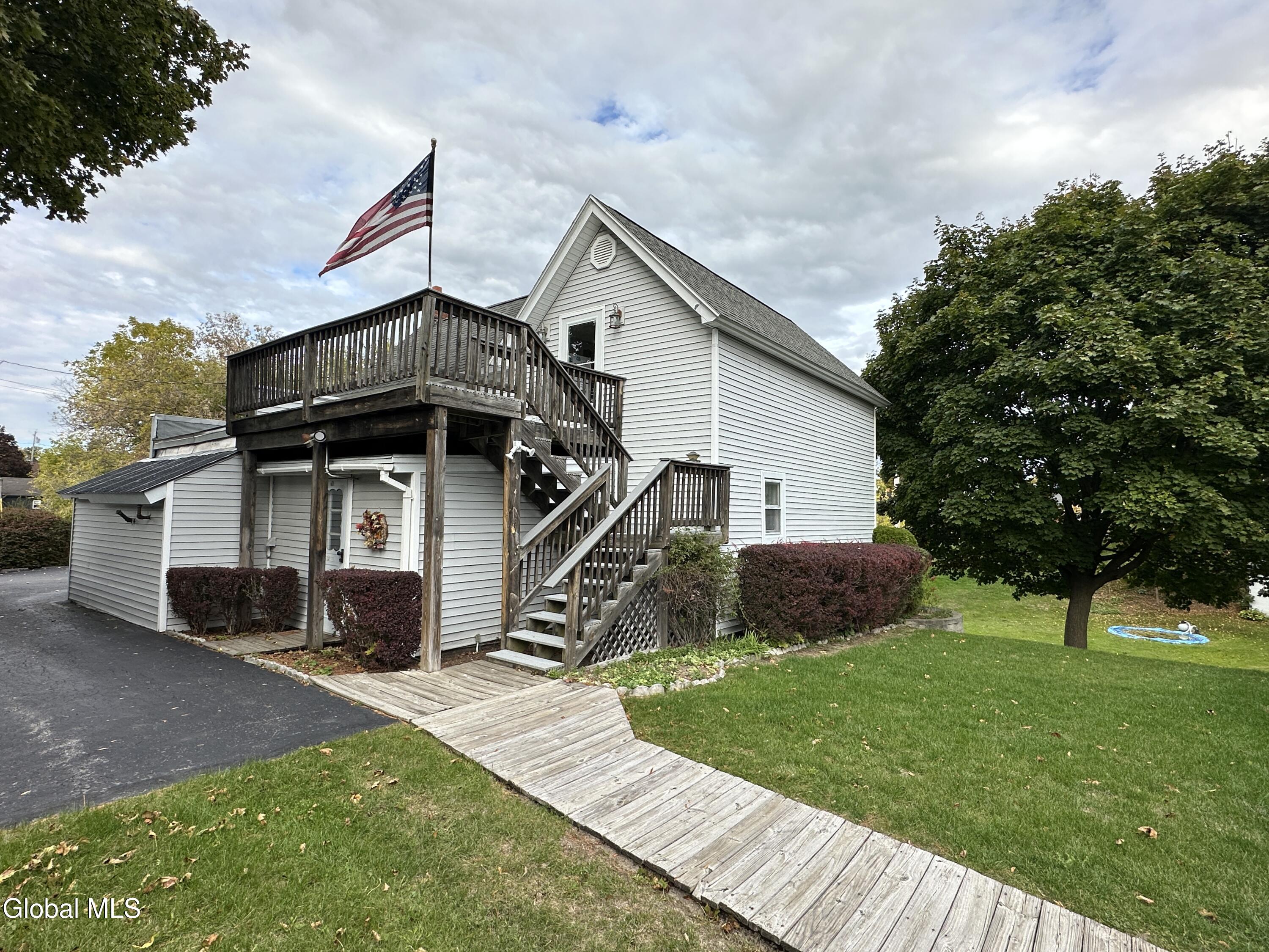This charming village home has been meticulously maintained and includes a fantastic bonus accessory dwelling unit or in-law apartment. The main level features a roomy eat-in kitchen with a pantry, a comfortable living room, a laundry closet, two bedrooms, full bath, and an enclosed front porch. Upstairs, you'll find an inviting open-concept layout with a kitchen, dining area, and living room, along with a spacious bedroom, full bathroom and a deck. Each unit has its own heat and electric. The property boasts great curb appeal and a paved driveway and is conveniently located near town amenities. This is an ideal opportunity for multigenerational living or living in one unit while renting out the other, all with low maintenance needs.