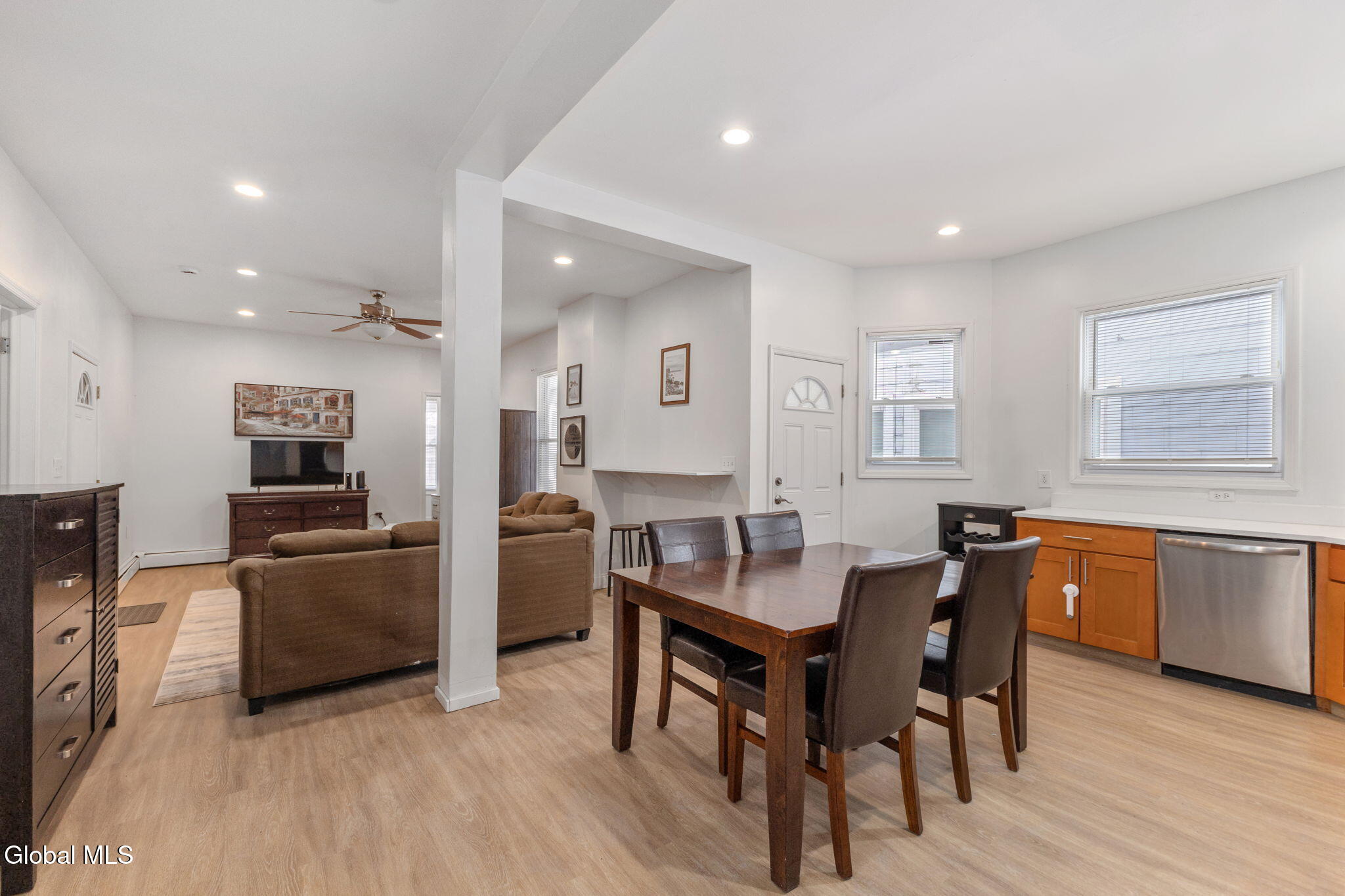 Spacious 1st-floor apartment available in Troy offering 1,770 sq ft of living space. This well-maintained unit features 4 bedrooms and 2 full bathrooms, all conveniently located on one level. Ideal for shared living, with an effective cost of approximately $700 per bedroom. The apartment includes a formal dining room, large living room, and a functional kitchen equipped with dishwasher, oven, range, refrigerator, and in-unit washer/dryer. Natural gas baseboard/hot water heating and 200+ amp electric service. Separate utilities for electric and gas. Owner pays water, snow removal, cable TV, and additional items. Tenant responsible for electricity, gas, and heat. Lease term is 12 months with a security deposit equal to one month's rent. Conveniently located within the Troy School District with easy access to local amenities, shopping, and major roadways.