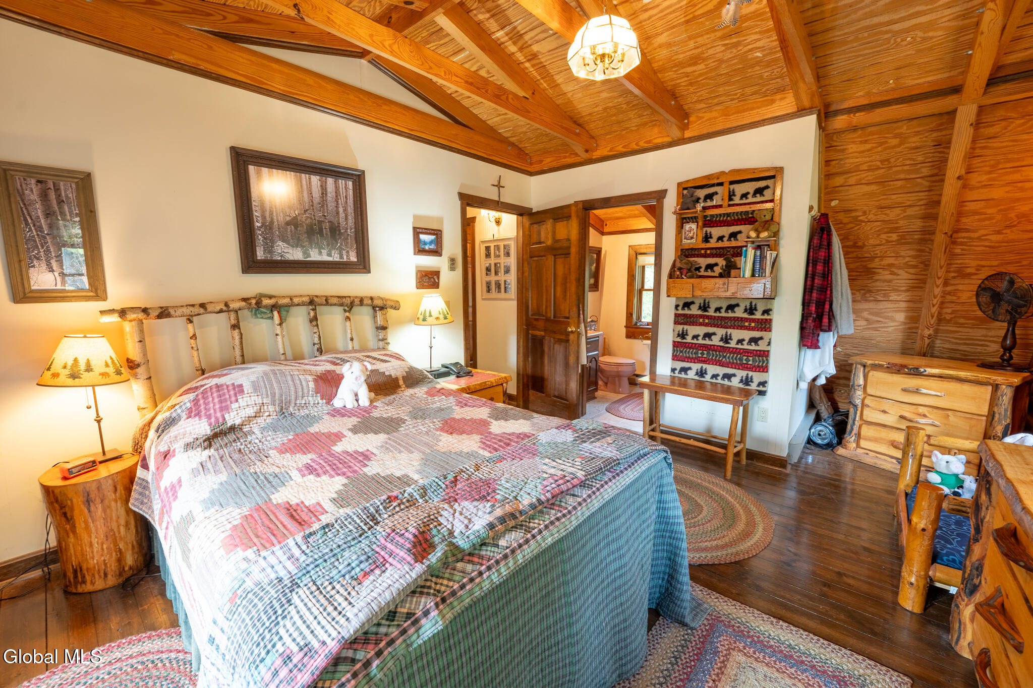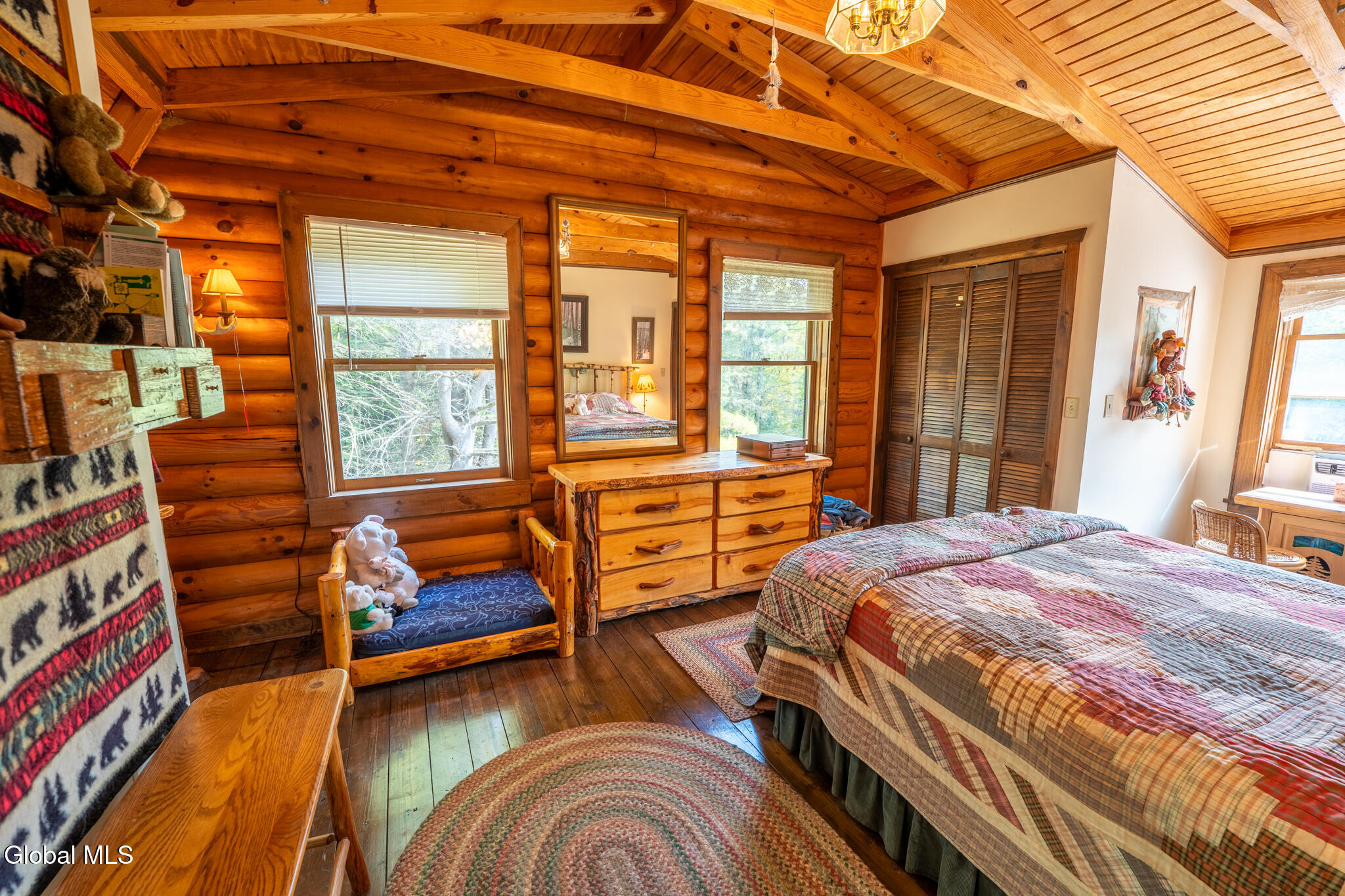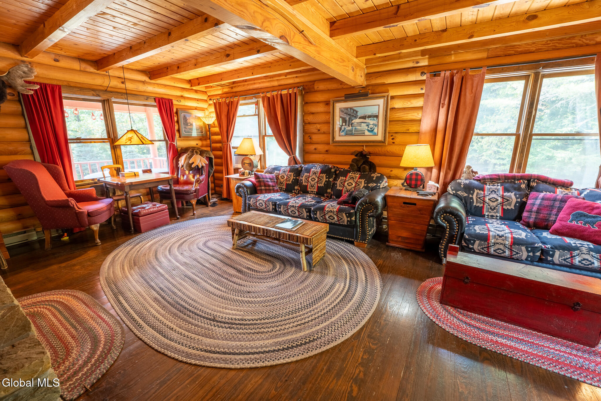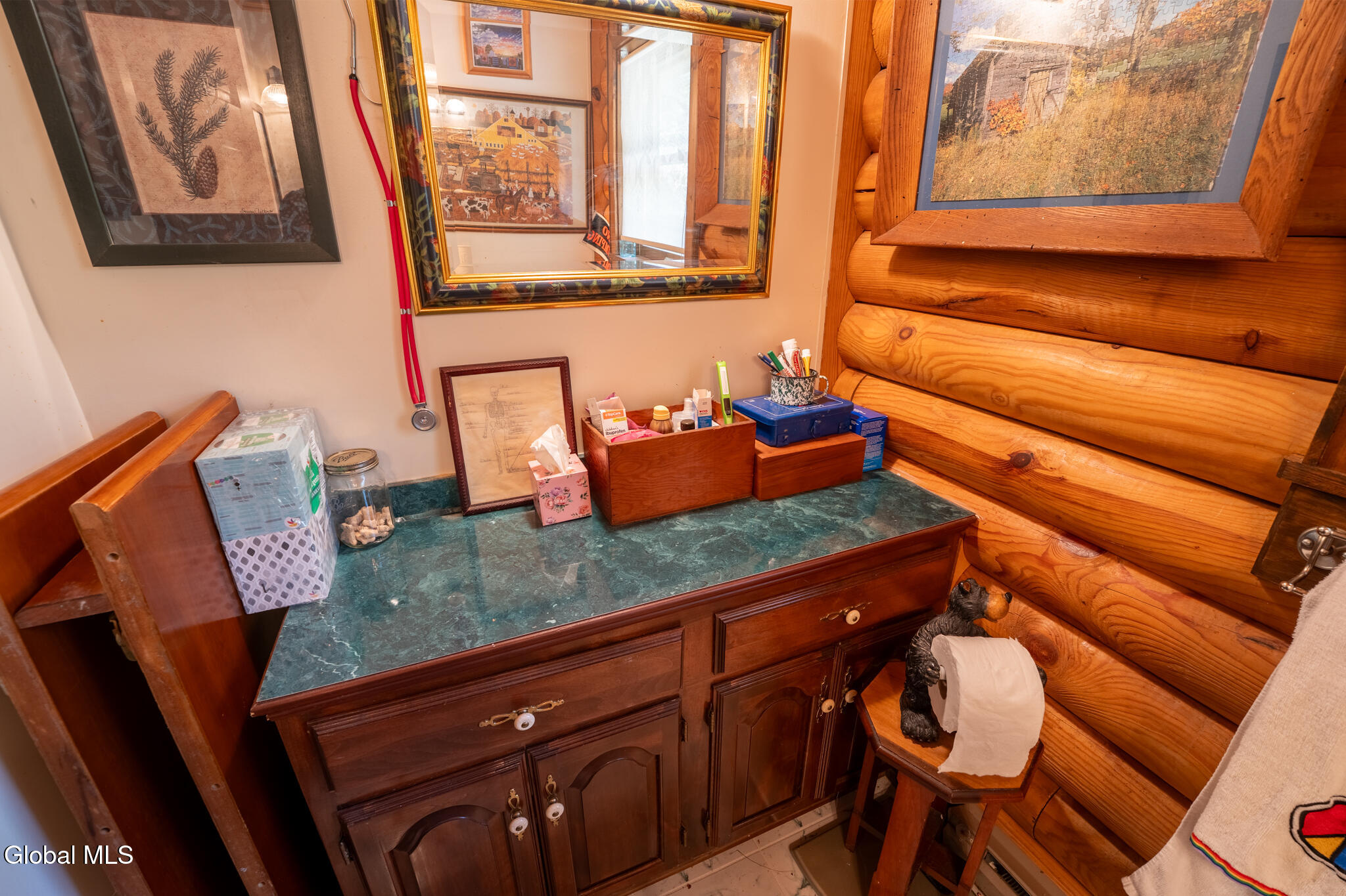 HIGHEST AND BEST OFFERS BY 5PM SATURDAY 10/11 Set on 43 acres, this beautiful year-round log home features rich wood details throughout. Large living room with wood burning stone fireplace and accompanying stone wood bin. Open floor plan for kitchen & dining gives great space for preparing meals and visiting with family and friends at the same time. Centrally located front door opens to a full front porch with a hot tub, and a stone patio just off the porch featuring a stone BBQ! Three bedrooms and two full baths upstairs (plus a half bath downstairs). Private bath for the primary bedroom. Vaulted wood ceilings in all 3 bedrooms. This home sits back from the road with plenty of privacy and 43 acres to explore, including 2 ponds. One car garage under the house plus a shed and small carport as well. In addition to the garage, the basement offers lots of room for storage and a wood stove! EV charging station too! If you're ready to leave the hustle behind and live life with more space and less noise, this one's worth a look. Home is being sold Furnished with a few exclusions for personal items.