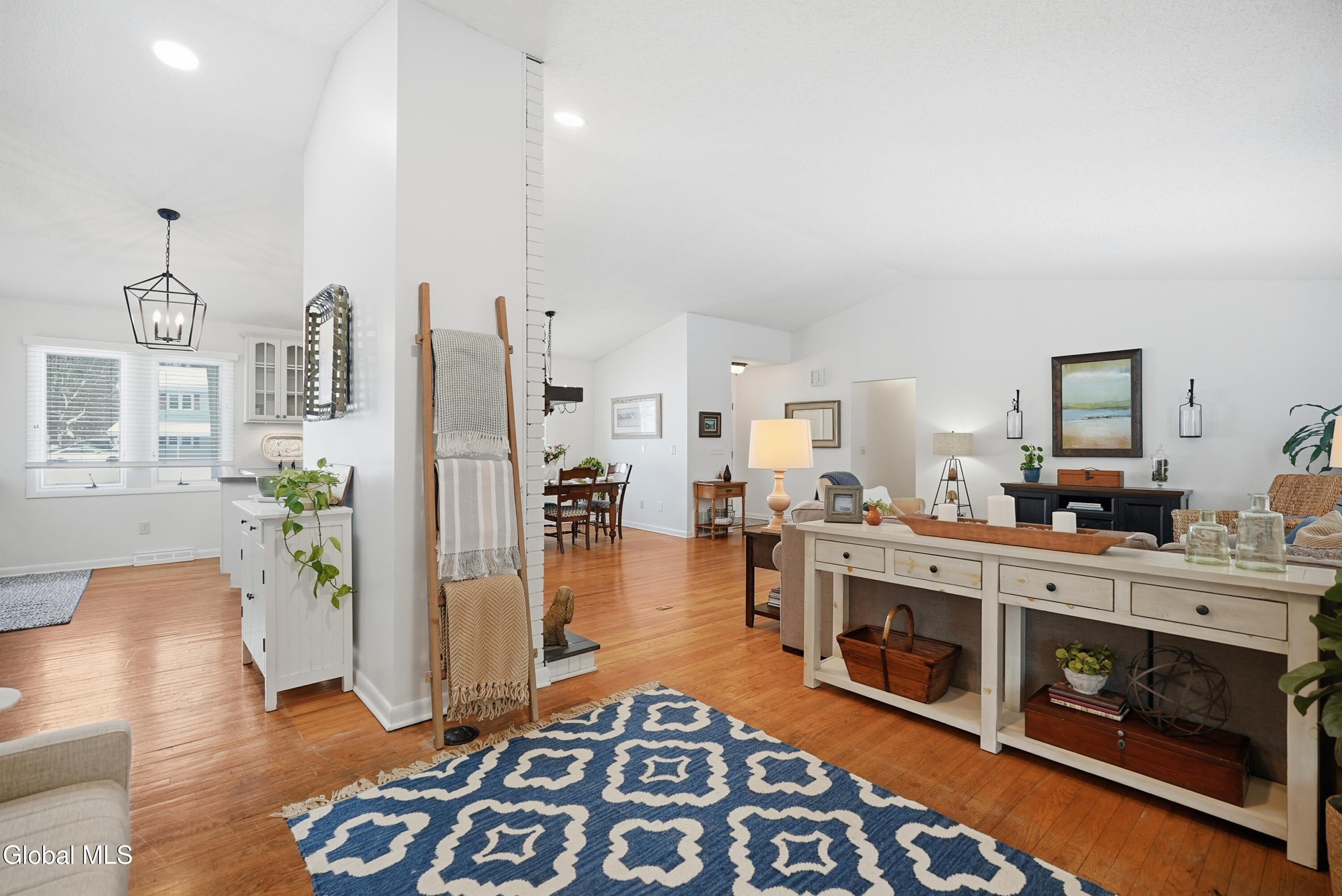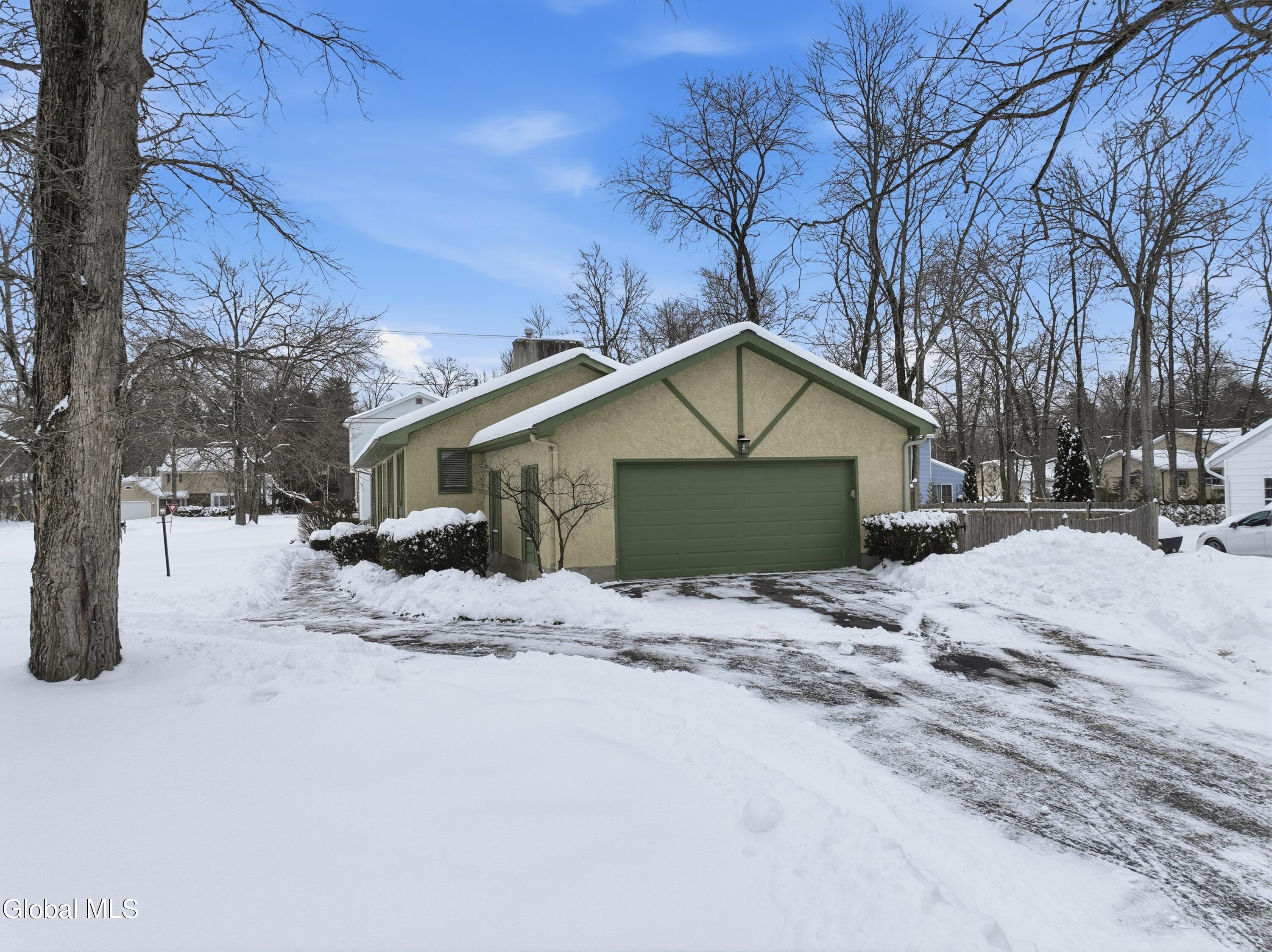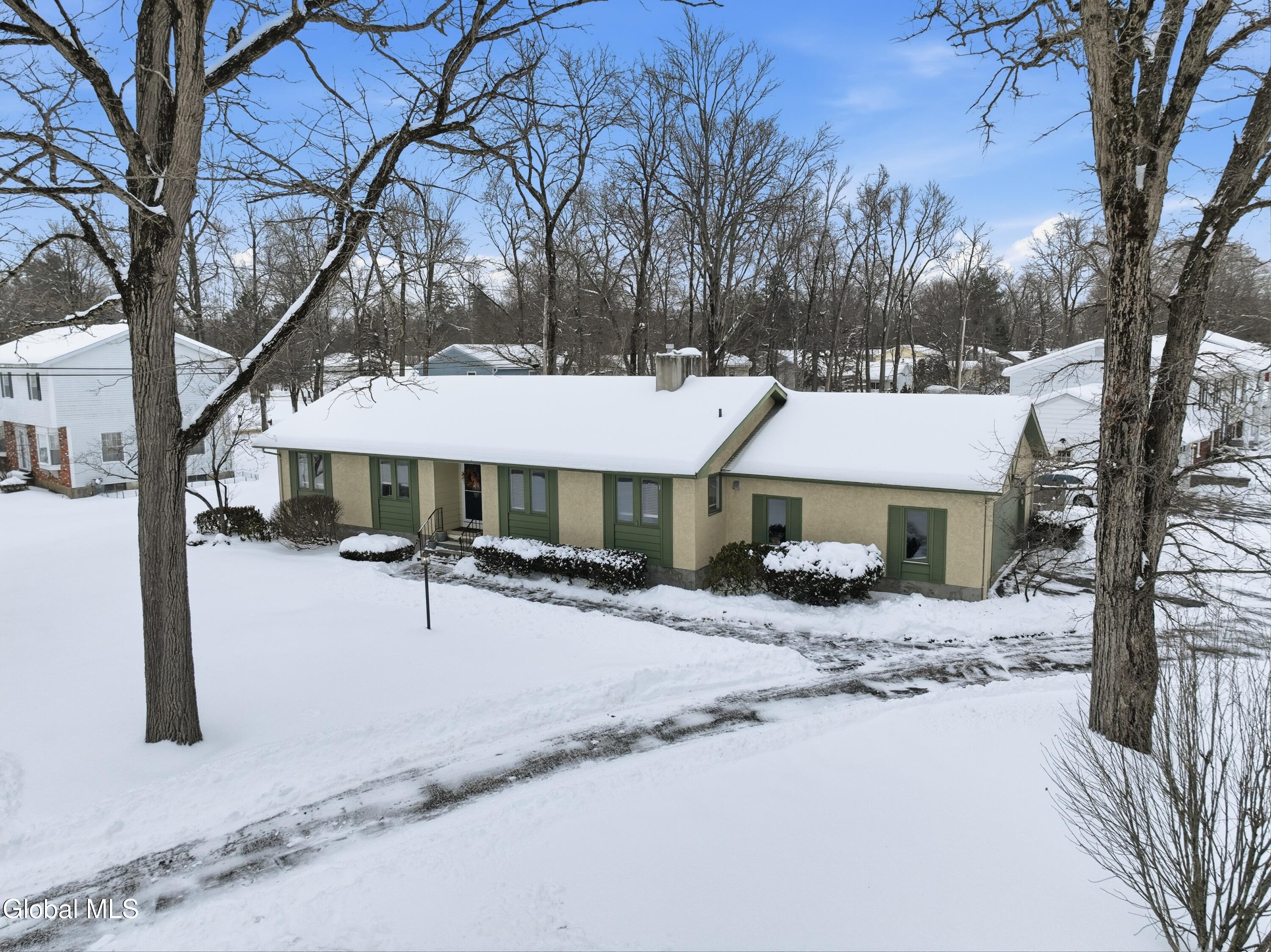 Welcome to 2448 Westminster Way in Niskayuna, located in the South Colonie School District. This well-maintained 3-bedroom, 2-bath ranch offers just under 1,500 sq ft of comfortable living space and is set on a corner lot in a mature neighborhood. Built in 1972 w/ great bones, this home features a modern open-concept layout that feels far ahead of its time. The updated kitchen and dining area flow into an oversized living room highlighted by vaulted ceilings and a center wood-burning fireplace. Hardwood floors run throughout much of the home, and the stucco front and two-car side-load garage add strong curb appeal. Enjoy year-round living in the heated sunroom, which opens to a Trex deck and fully fenced yard. The home also offers a full basement and laundry hookups on both the first floor and basement, providing excellent flexibility for one-floor living. A great opportunity for those looking to downsize without the cost of new construction, while still enjoying space, functionality, and location. Convenient to shopping, dining, and major routes.