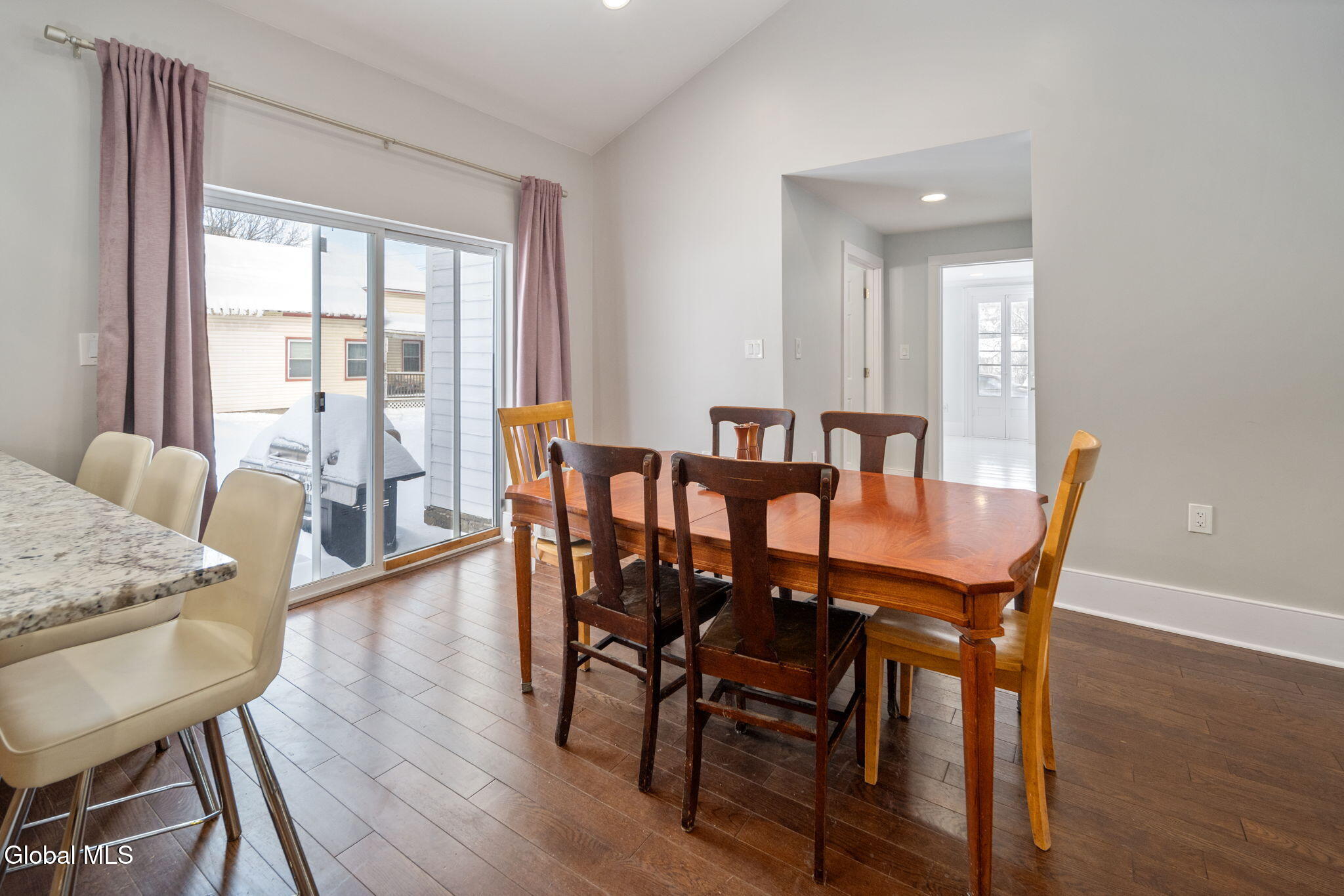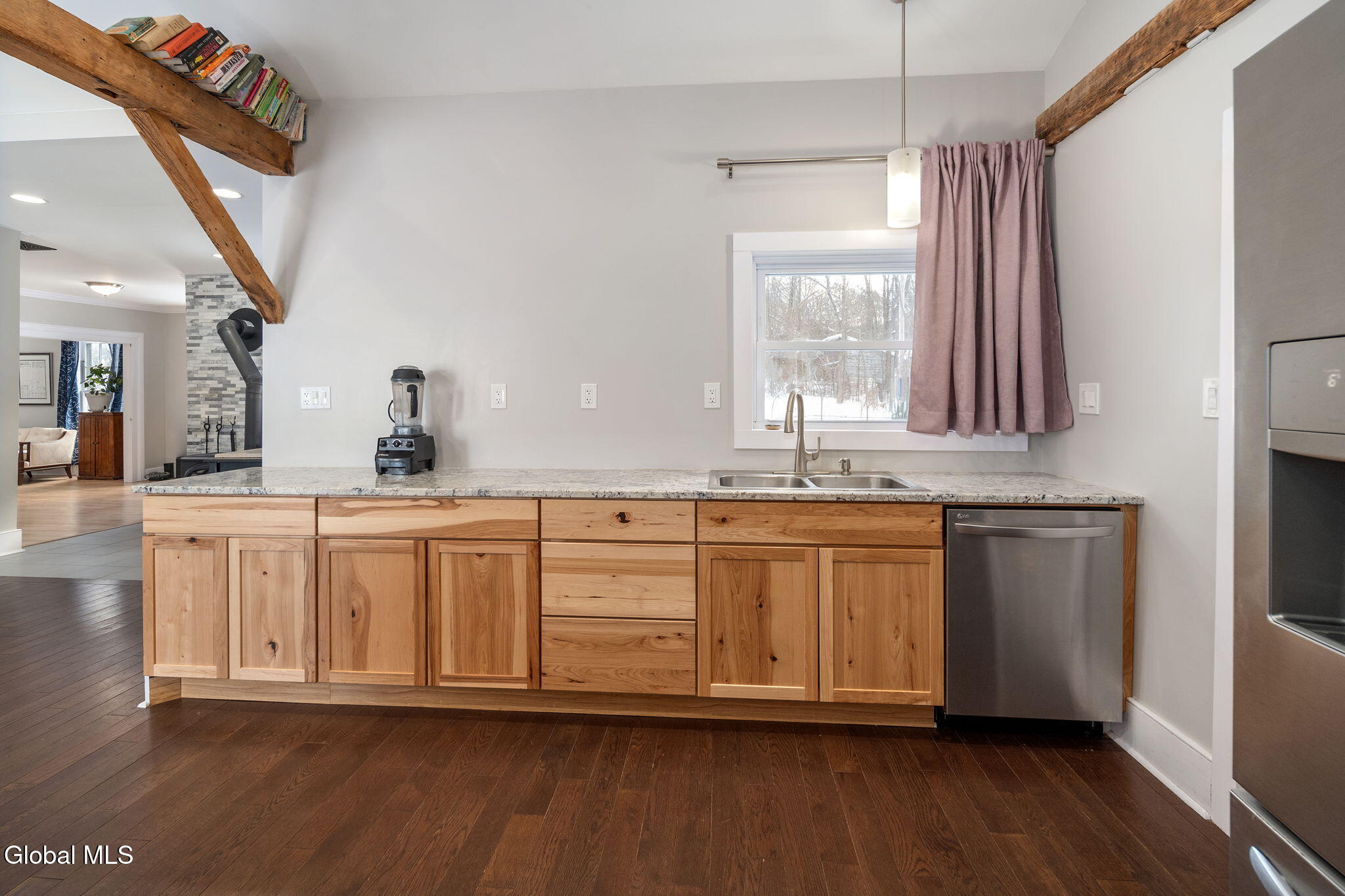 Charming Farmhouse Colonial with Modern Updates & Flexible Mixed-Use Space. This colonial blends the warmth and character of yesteryear with thoughtful modern updates throughout. The spacious, updated kitchen features vaulted ceilings, granite countertops, a breakfast counter, exposed beam, and an inviting dining area, perfect for everyday living and entertaining. Just off the kitchen is a convenient woodshed, ideal for easy access during the colder months to stay warm and cozy with two wood stoves. The main heat source is forced air oil heat, supplemented by baseboard electric heat. A formal living room adds classic appeal, while the remodeled full bathroom offers a relaxing soaking tub. A separate laundry area and both interior and exterior access to the basement provide added convenience. The mixed-use portion of the property includes a studio with blown-in insulation, wood stove, and electric heat, along with a private entrance and dedicated parking. Previously used as a seamstress business, this versatile space can also serve as a first-floor bedroom, home office, or creative studio. Upstairs, you'll find three additional bedrooms and a second updated full bathroom. Wide plank floors and recessed lighting enhance the home's character, while major upgrades include 200-amp electric service, new PVC and PEX plumbing throughout, and R-20 insulation in the ceilings, offering comfort, efficiency, and peace of mind. Set on a spacious lot, the property also features a detached two car garage and plenty of room to enjoy outdoor living. Conveniently located less than a mile away from I88 for easy commute to Albany, Oneonta and Cooperstown areas, this home offers a rare combination of timeless charm, modern functionality, and flexible living or work-from-home potential. Municipal water and sewer.