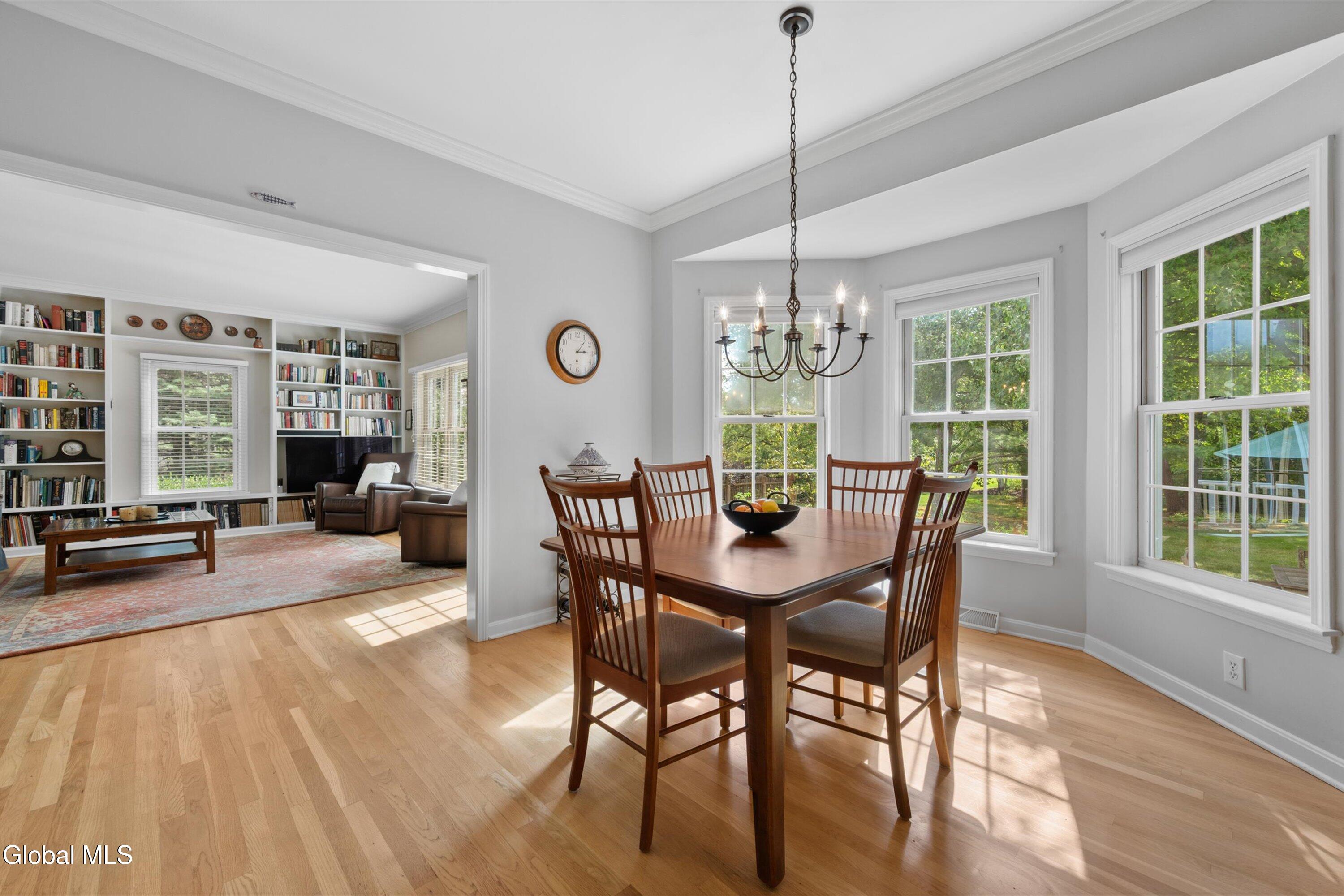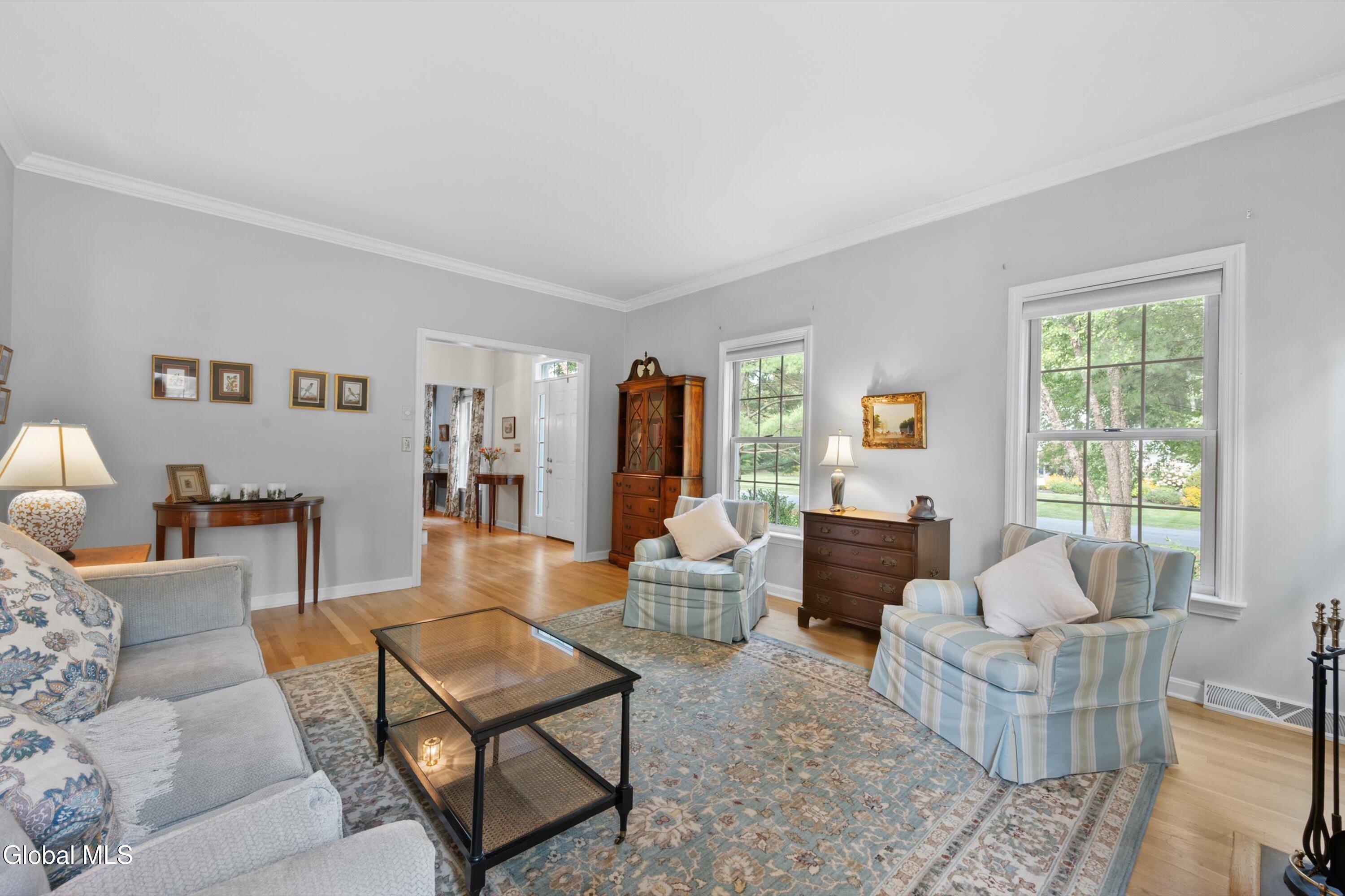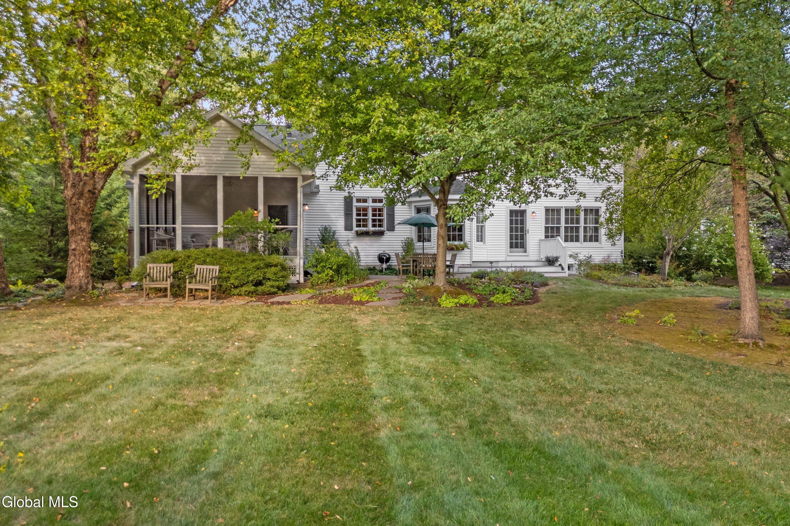 Gracious & spacious living abounds in this meticulously maintained 5 bed, 2.5 bath colonial on a secluded lot in Bethlehem's desirable Country Meadows community. Gleaming hardwood floors greet you at the door and the perfect flowing layout awaits discovery. Whip up delicious meals in the ample cherry kitchen with granite counters, pantry & island. Gather in the elegant dining room with feature fireplace, or host guests in the formal living room. Curl up with your favorite book in the inviting family room with one wall of built in bookshelves and another wall of windows that floods the room with natural light. 1st floor provides in-law potential with a generously sized bedroom near a half bath that could easily be expanded. Spend lazy mornings in your spacious primary bedroom with walk-in closet, and stylish remodeled bathroom featuring custom tiled shower & quartz double vanity. Retreat from the world on your private screened-in porch with rich mahogany floors. Or, have lunch alfresco on the bluestone patio in the dappled shade of the trees that surround the property. Make your home gym or play room in the partially finished basement with a separate area for storage. Handy 1st floor laundry. Roof 2yrs, Water heater 2yrs, Furnace 5yrs. Award winning Bethlehem Schools. Just minutes to Rt9, I87 & I787.
