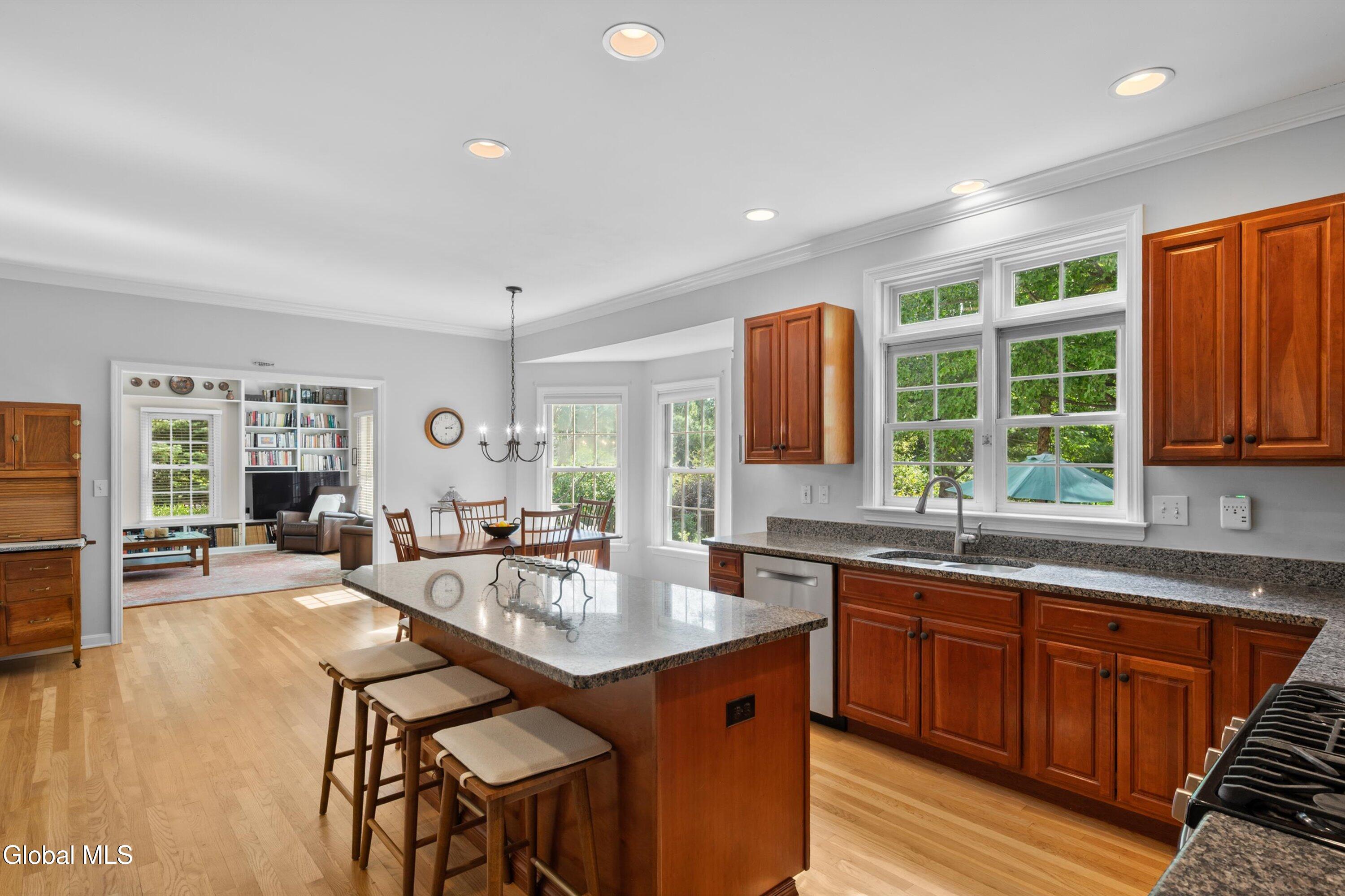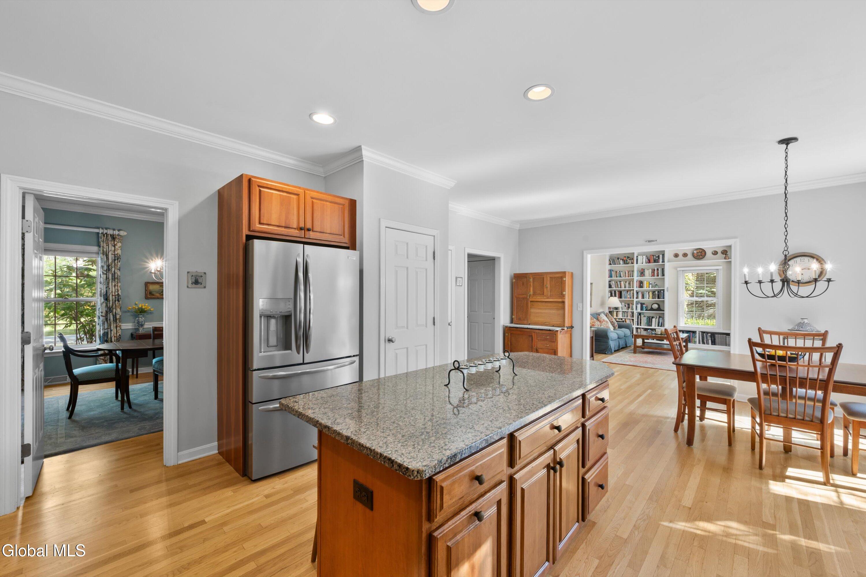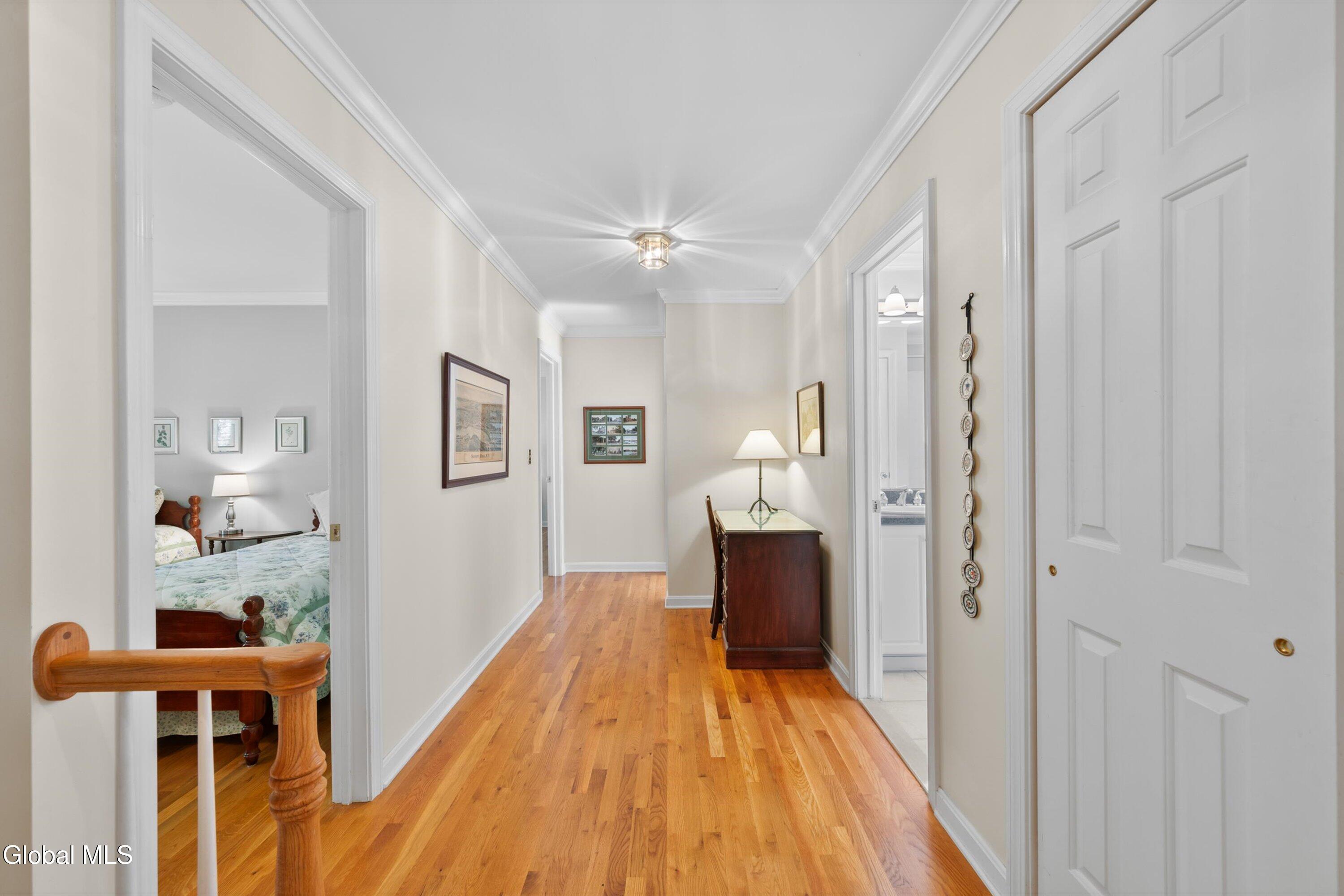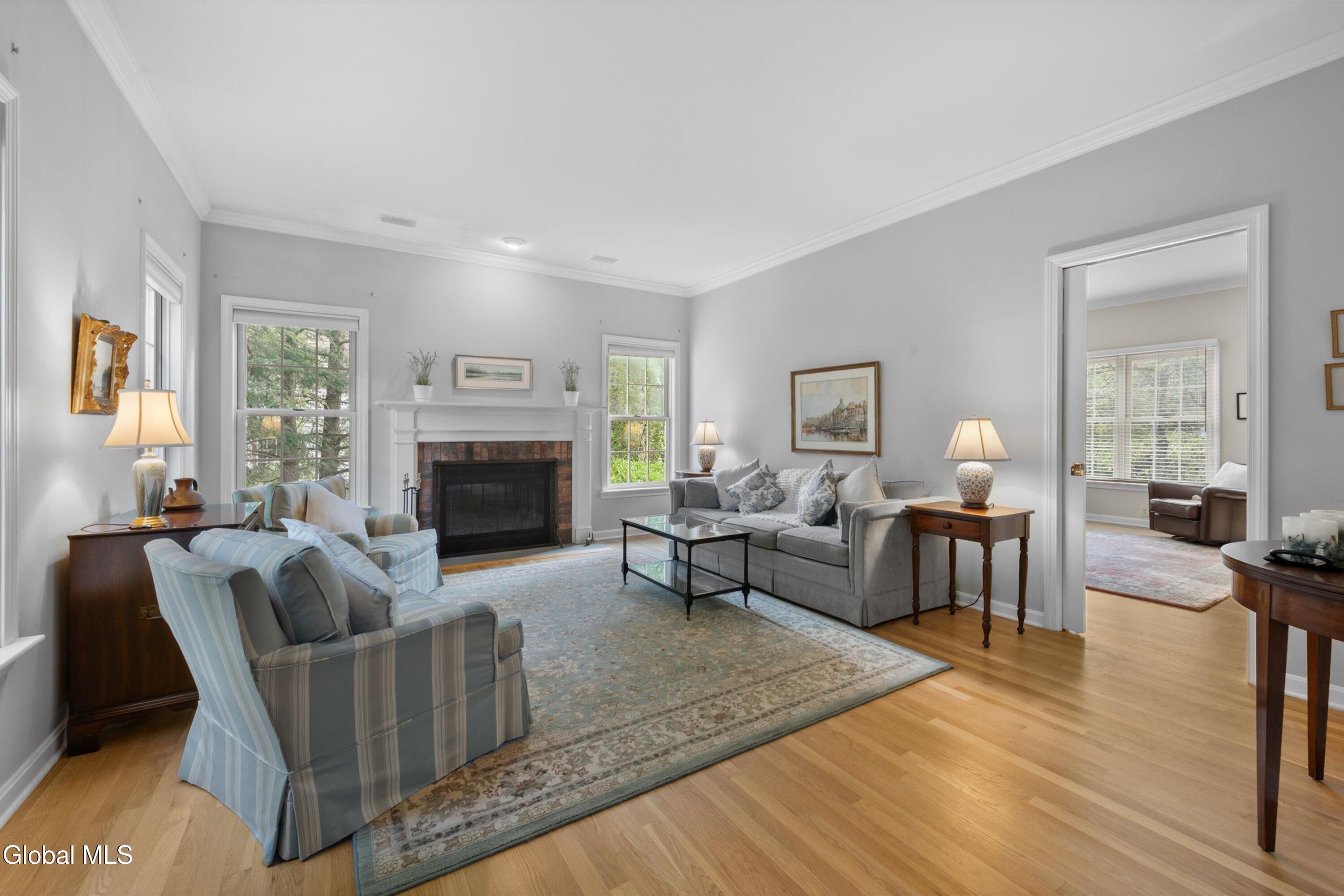 Gracious & spacious living abounds in this meticulously maintained 5 bed, 2.5 bath colonial on a secluded lot in Bethlehem's desirable Country Meadows community. Gleaming hardwood floors greet you at the door and the perfect flowing layout awaits discovery. Whip up delicious meals in the ample cherry kitchen with granite counters, pantry & island. Gather in the elegant dining room with feature fireplace, or host guests in the formal living room. Curl up with your favorite book in the inviting family room with one wall of built in bookshelves and another wall of windows that floods the room with natural light. 1st floor provides in-law potential with a generously sized bedroom near a half bath that could easily be expanded. Spend lazy mornings in your spacious primary bedroom with walk-in closet, and stylish remodeled bathroom featuring custom tiled shower & quartz double vanity. Retreat from the world on your private screened-in porch with rich mahogany floors. Or, have lunch alfresco on the bluestone patio in the dappled shade of the trees that surround the property. Make your home gym or play room in the partially finished basement with a separate area for storage. Handy 1st floor laundry. Roof 2yrs, Water heater 2yrs, Furnace 5yrs. Award winning Bethlehem Schools. Just minutes to Rt9, I87 & I787.