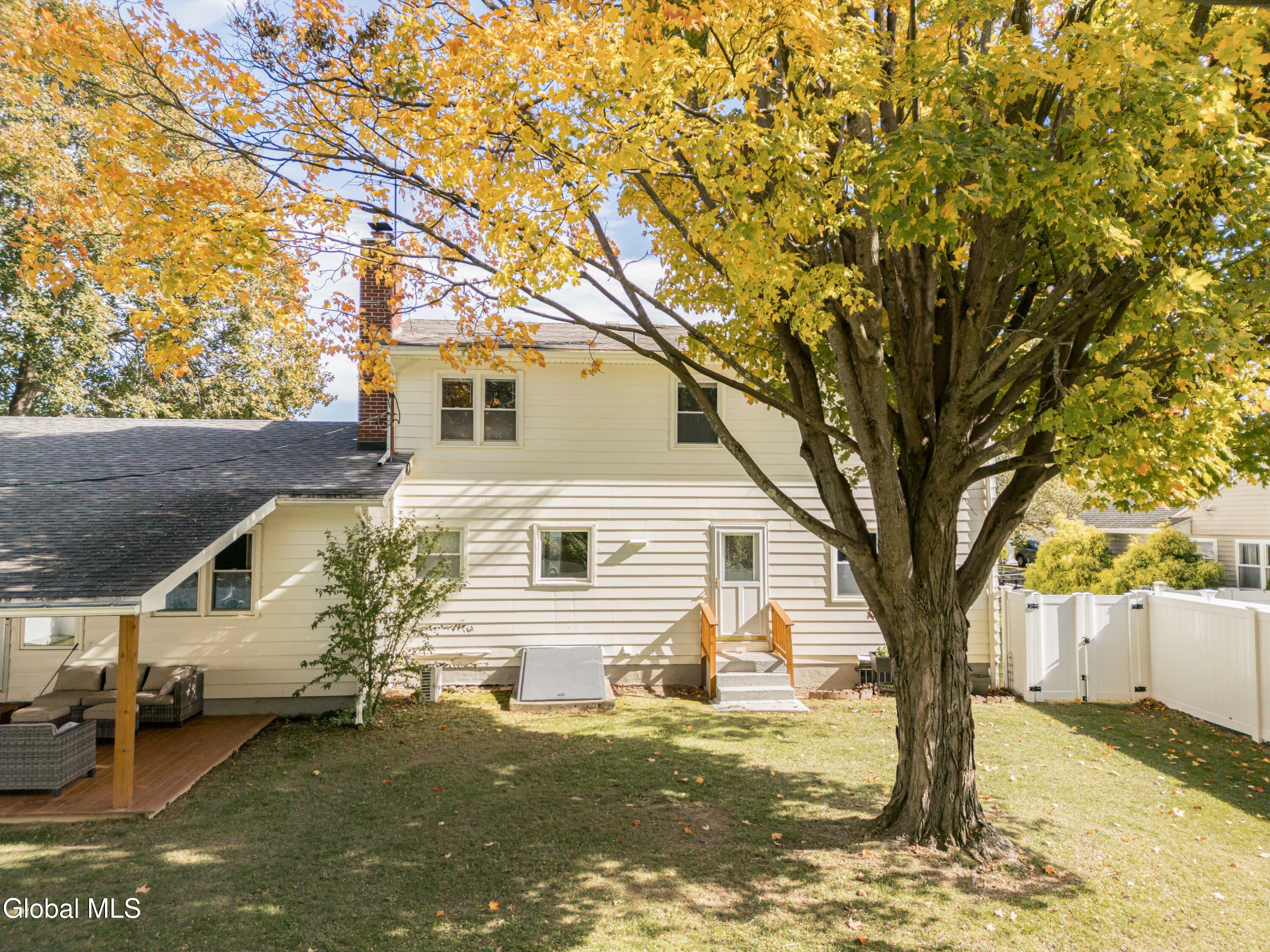 Welcome to Sycamore House, a classic 1964 mid-century home tucked on a quiet dead-end street just minutes from downtown Hudson. With a generous backyard shaded by a giant sycamore tree, and over 3,311 square feet of living space, this well-kept contemporary home offers room to gather, spread out, and make it your own. Five bedrooms and three full baths provide flexibility for family, guests, or home offices. The cozy library, centered around a wood-burning fireplace, is an inviting spot to read or spend quiet evenings. Throughout the home, refinished wood floors, fresh paint, and new light fixtures add warmth and a sense of care. The kitchen and bathrooms have been thoughtfully updated with new tile and fixtures, and a brand-new heating system with dual-zone Nest thermostats keeps things comfortable in every season. A semi-finished lower level includes a convenient laundry room and plenty of storage space. Out back, a large fenced yard framed by a mature sycamore tree offers privacy and space for gardening, play, or weekend barbecues. A new covered deck creates a shaded place to relax. The two-car garage adds plenty of space for storage, a home gym, or creative projects, with additional room for parking in the driveway. Located within walking distance of Oakdale Lake, the Greenport Conservation Area, tennis courts, and the local running track, this home blends quiet neighborhood living with close proximity to Hudson's renowned shops, restaurants, and galleries. This is a well-situated and comfortable place to call home. Square footage includes semi-finished lower level.