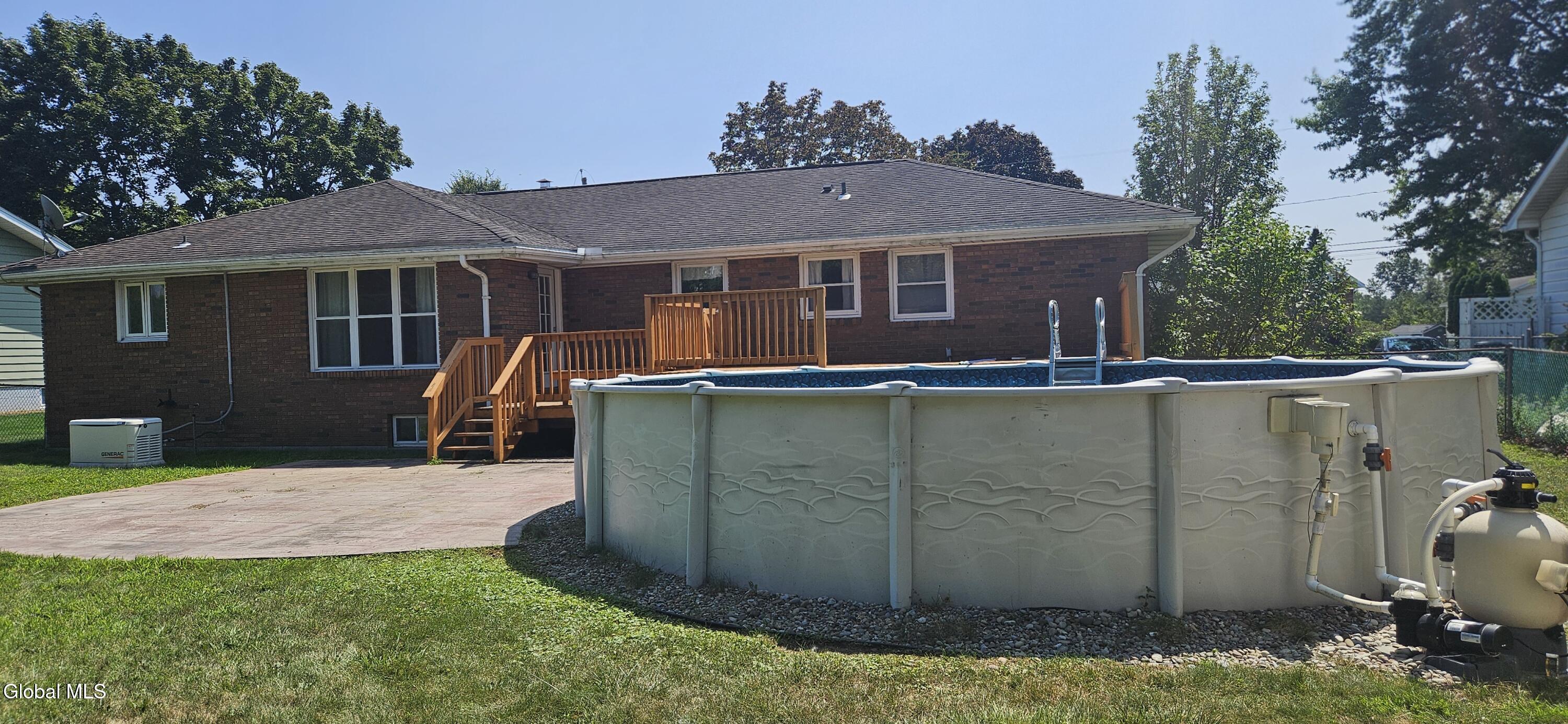 Are you looking for a sprawlng ranch style home with a great Latham location? Look no further! Situated just seconds to I-87, Shopping, Dining, Schools & minutes to Albany Int'l Airport, I90 Crossgates! This solid Brick ranch style home offers 3+ Bedrooms w/a 1st floor primary Bedroom w/en-suite, oversized walk in closet, a total of 2 full and a 1/2 bath, formal oversized living rm w/wood burning fireplace, a formal dining room, a large eat-in kitchen (fully applianced) with tons of cabinet & storage space & tiled flooring. Updates include: a newer gas Generac generator, newer furnace, central air conditioning, blown insulation, electric & gas water heater, wired for spectrum & verizon fios and a fresh coat of paint. The fenced in back yard features a large deck, a stamped concrete patio, refreshing above ground pool. All this home needs is you.