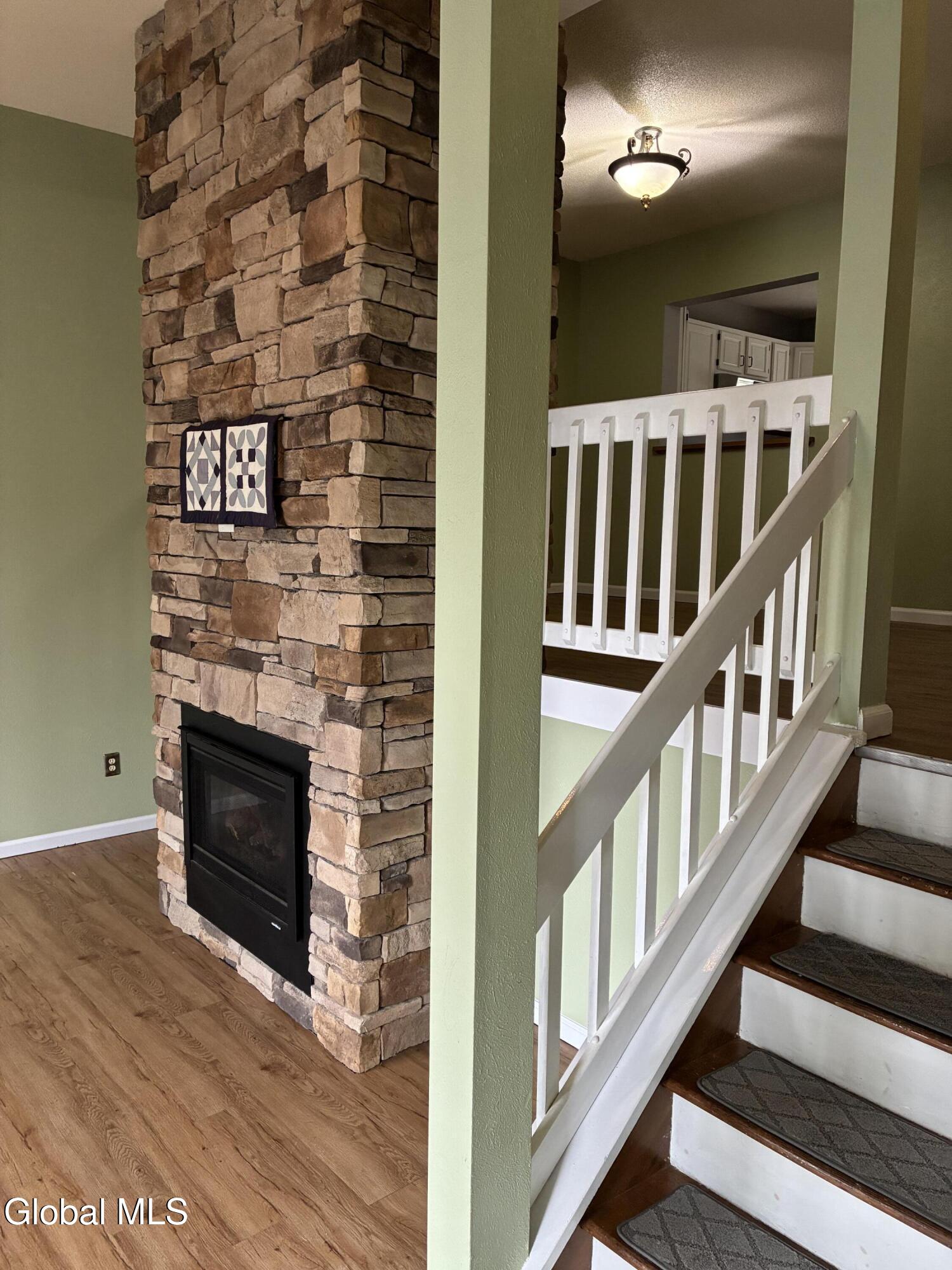 Life made simple in the Highpointe Community! Don't miss this well maintained townhome featuring 1st fl entertaining Cathedral Ceiling Living room w/gas fp featuring an awesome 18' stone chimney, partially finished basement off living room possibly used for entertainment/storage area. 2nd floor eat in kitchen, Corian counters, ss appliances, sliders out to private deck & pass thru to the formal dining rm. 3rd floor laundry w/2yr W.D., 2 large bedrooms & walk in closets. Detached garage & off street parking space.
