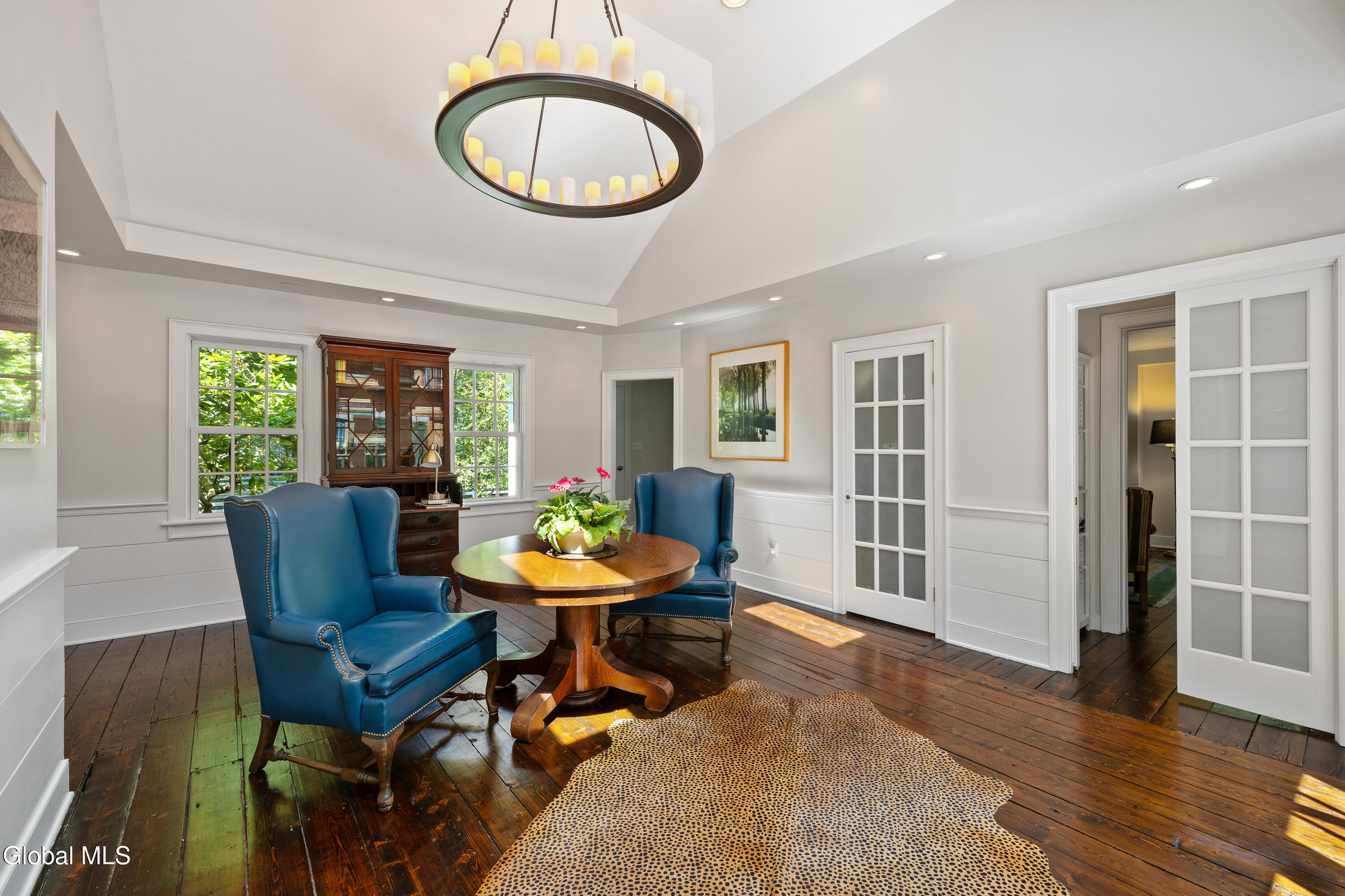 Historic Chatham Colonial Home in the heart of Chatham Center referred to as ''Horse Country'' is an equestrian/gentlemen's Dream, adjacent to the Old Chatham Hunt Club Trails. This 2068 sq ft House has: 2 beds, 2.5 baths, a fireplace, original hardwood floors, country kitchen, vaulted ceilings, a wet bar, BRAND NEW ROOF, outside courtyard all accompanied by perennial & vegetable gardens, grape vines, orchards and more, on 4.01 acres