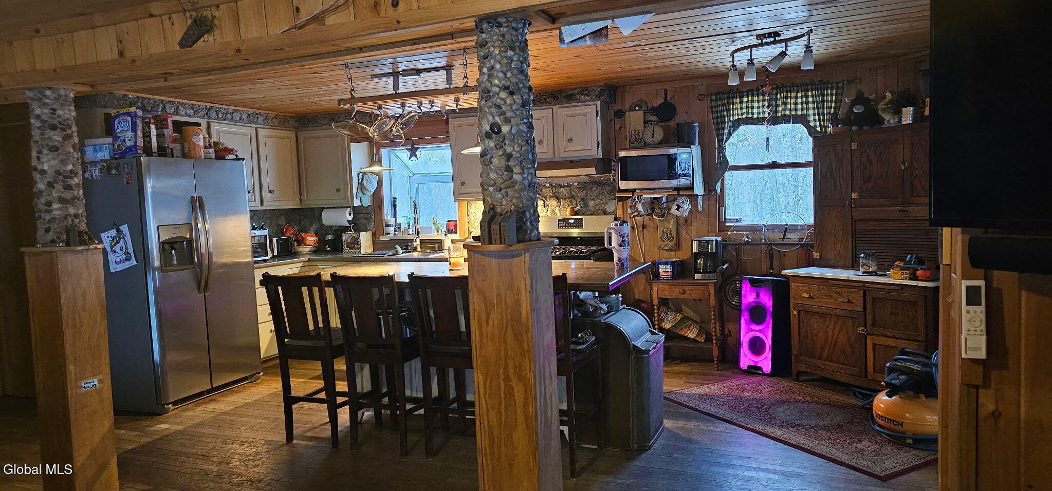 Nestled on 3.6 acres on a private quiet road, this charming 3 bedroom, 2 bath rustic retreat offers the perfect blend of country living and modern convenience. As the second-to-last home on the road, you'll enjoy exceptional privacy with virtually no traffic, all within the Chatham School District. Extensively updated in 2023, this home is truly move-in ready. Major improvements include a new roof on the main house, screened porch, and sheds; new mini-split systems; new hot water heater and pressure tank; and a brand-new garage. The master bedroom and office also feature new windows installed in 2023. A two-year-old Generac generator powers the entire property, providing peace of mind year-round. Inside, the home exudes warmth and character with tongue-and-groove pine ceilings throughout. Tongue-and-groove walls enhance the living room, dining room, hallway, and two upstairs bedrooms. Wood floors grace the upper level, while slate and tile flooring add durability and style downstairs. The thoughtful layout includes a dedicated office space, laundry/utility room, and convenient storage beneath the stairs. Outdoor living is just as inviting, with a screened-in porch and adjoining deck overlooking the peaceful property. A fenced dog area and automatic dog door make this home as functional as it is charming for pet owners. Multiple outbuildings and wood sheds provide abundant storage, while the detached four-bay garage offers ample space for boats, campers, equipment, or recreational vehicles. Perfectly positioned for both relaxation and adventure, this property is just 3 miles from the NYS Thruway and close to an array of year-round attractions: and surrounded by thousands of acres of state land with hiking and horseback riding trails, this home is an outdoor enthusiast's dream. Whether you're seeking a full-time residence or a private country getaway, this unique property delivers comfort, character, and convenience in an unbeatable location.