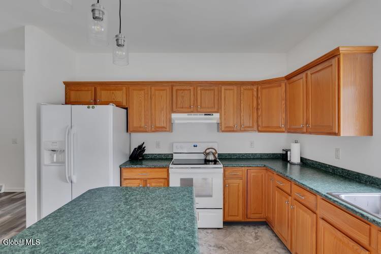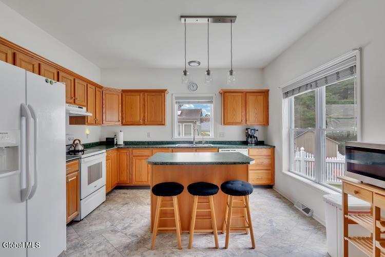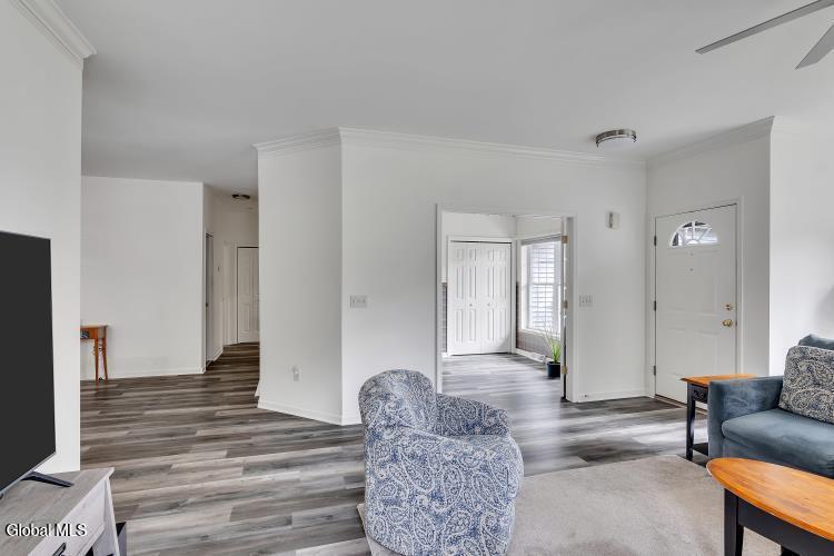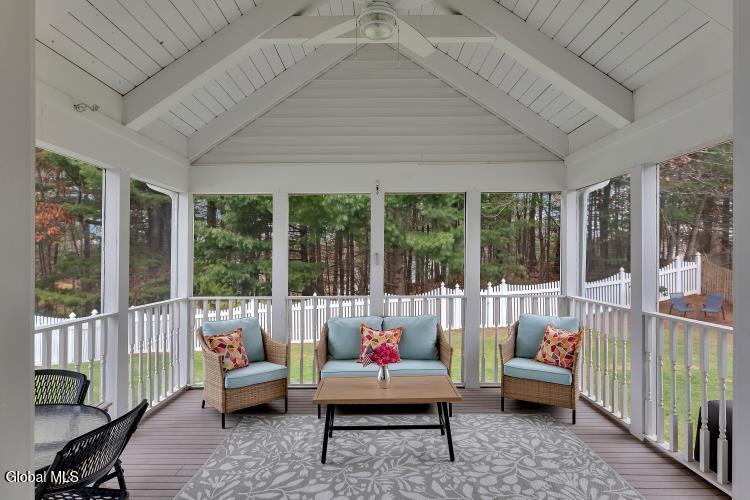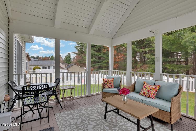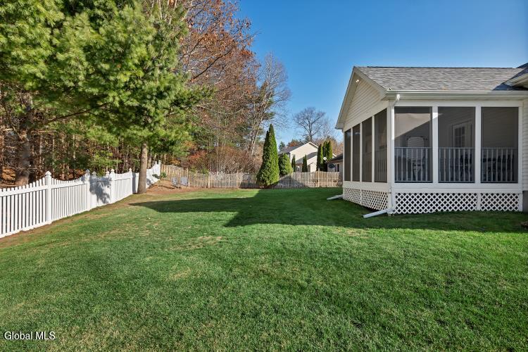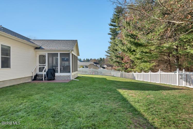 Welcome to Saratoga Glen an established, sought-after neighborhood just minutes from beautiful Saratoga Lake. This meticulously maintained ranch-style home offers the perfect blend of comfort, updates, and effortless single-floor living. Step inside to an inviting open floor plan enhanced by 9-foot ceilings and all-new luxury plank vinyl flooring. The spacious kitchen is ideal for cooking and entertaining, featuring a island, abundant cabinetry, and seamless flow to the dining and living areas. Custom pleated double-cell blinds throughout the home provide efficiency and elegant light control. The home offers 3 bedrooms,2 full baths, including a comfortable primary suite. Baths feature new Kohler toilets, and the home is further enriched with new Hunter ceiling fans in the primary bedroom, living room, and the gorgeous three-season enclosed sun porch. Major improvements bring peace of mind: new basement windows, new garage door openers, new exterior lighting, a newer roof, and double-hung insulated windows. Mechanical highlights include gas heat, central air, 200-amp service, a full spotless basement, and a complete water quality package with H2O water softener and reverse osmosis system. Outside, enjoy a nicely landscaped, fenced-in yard with a custom fabricated gate, an underground sprinkler system, and a driveway freshly seal-coated by Sealcoater.com. The three-season screened porch provides a beautiful space to relax and enjoy the surroundings. Convenient laundry room, excellent curb appeal, and an average electric/heat cost of just $225 per month make this home as practical as it is charming. Close to Stillwater Glen Hollow Park and all the recreation of Saratoga Lake, this property offers exceptional value in a quiet, well-established setting. Move-in ready and impeccably cared for — this Saratoga Glen home is truly a standout.