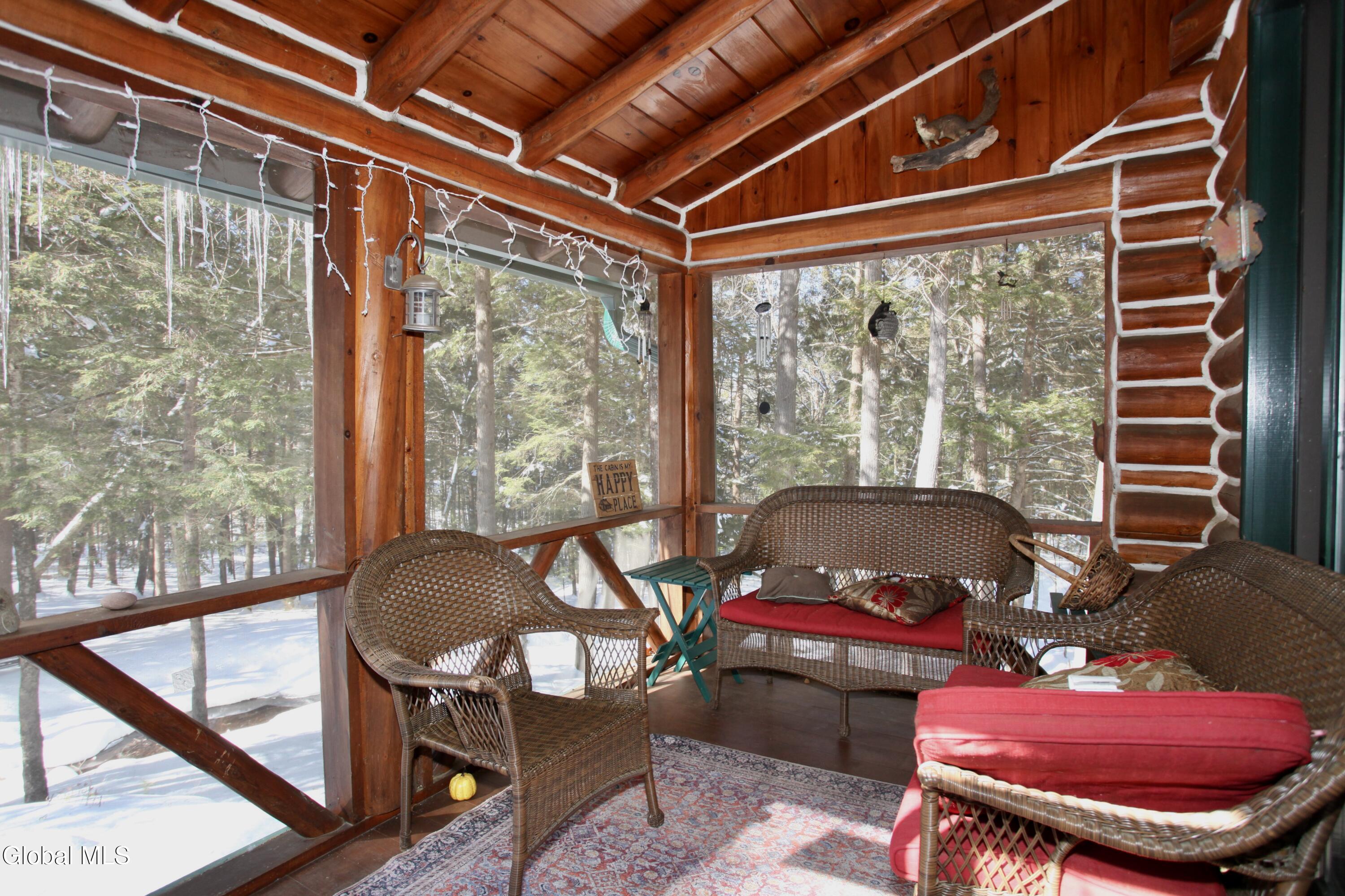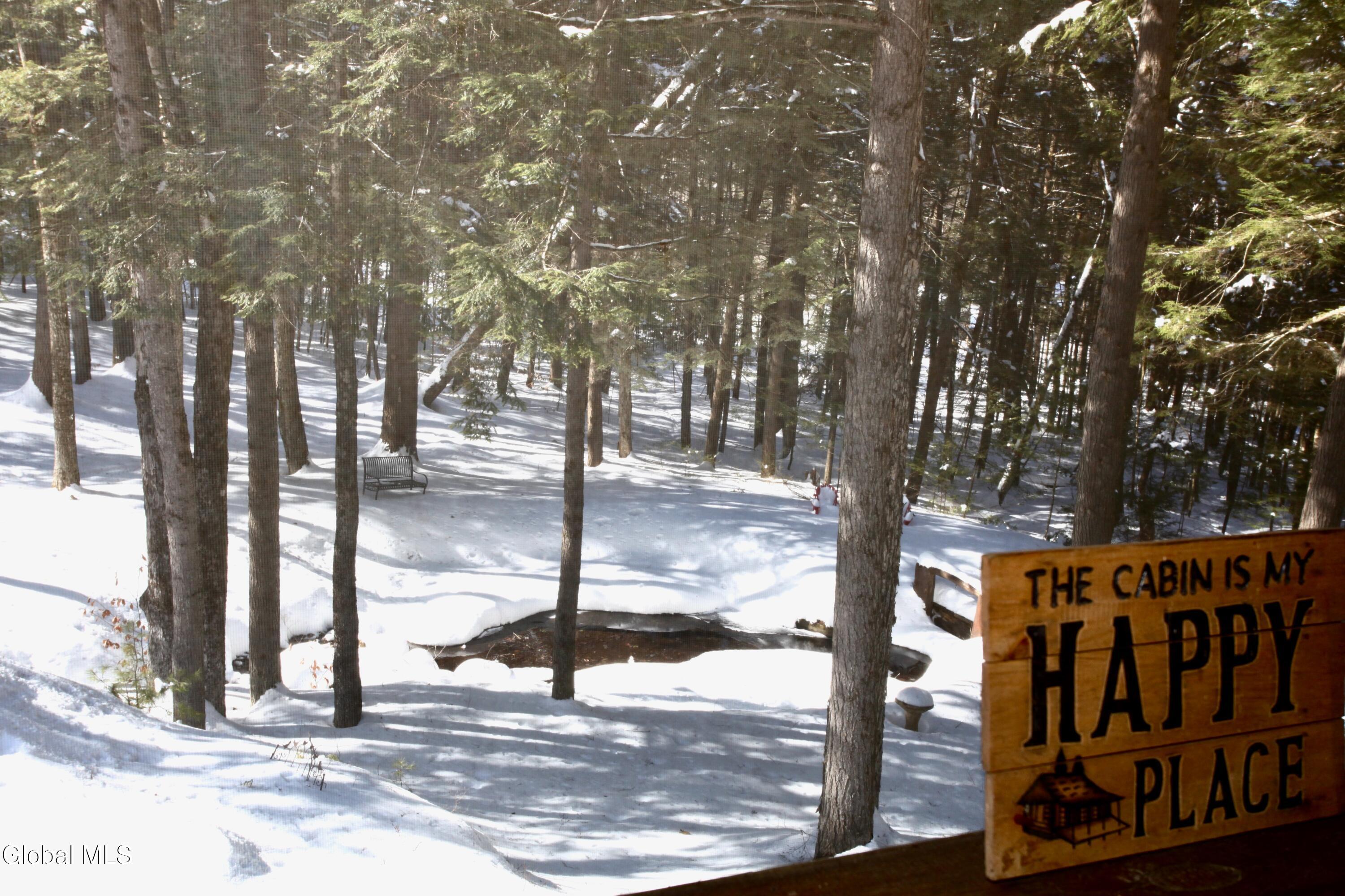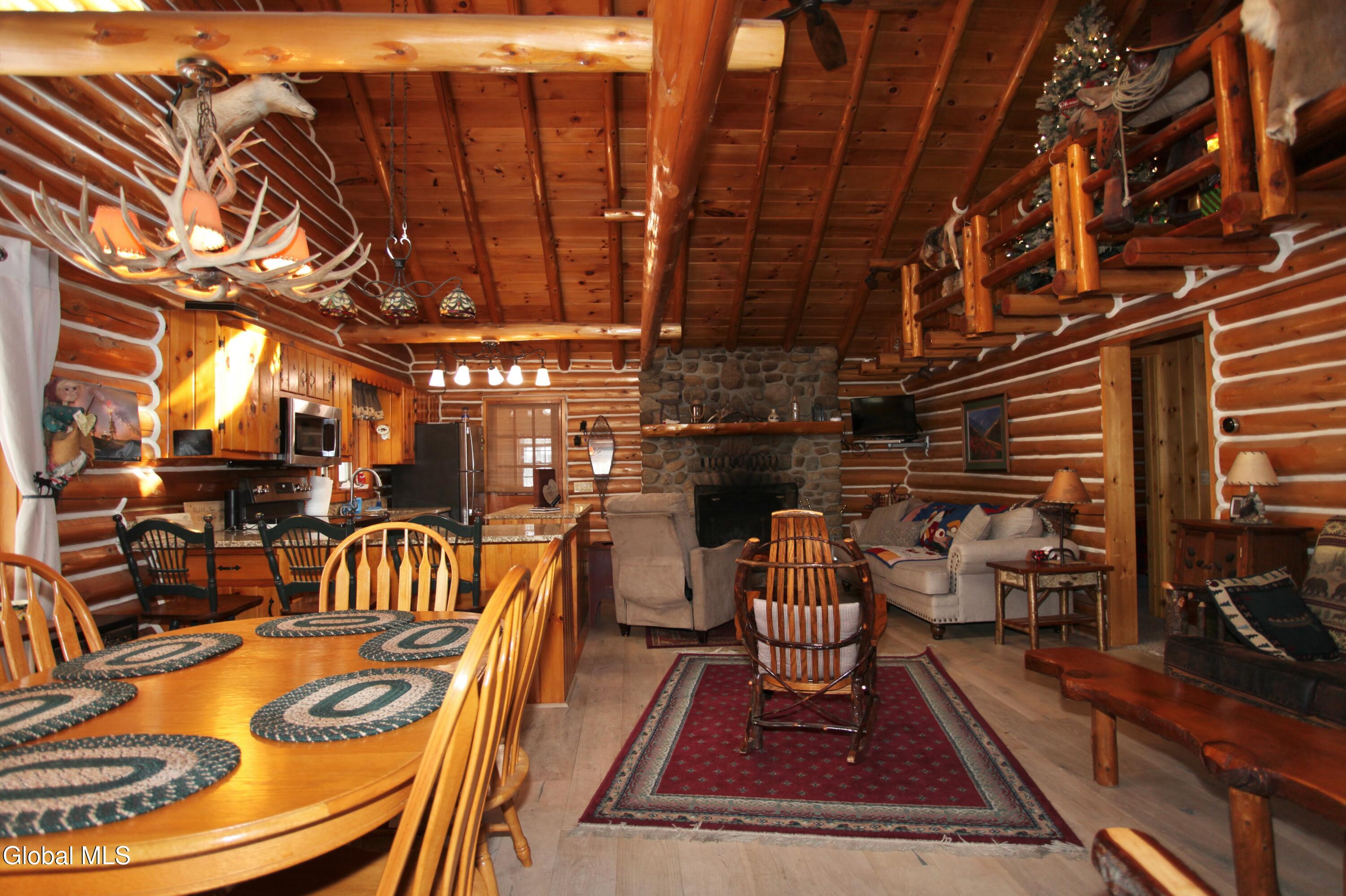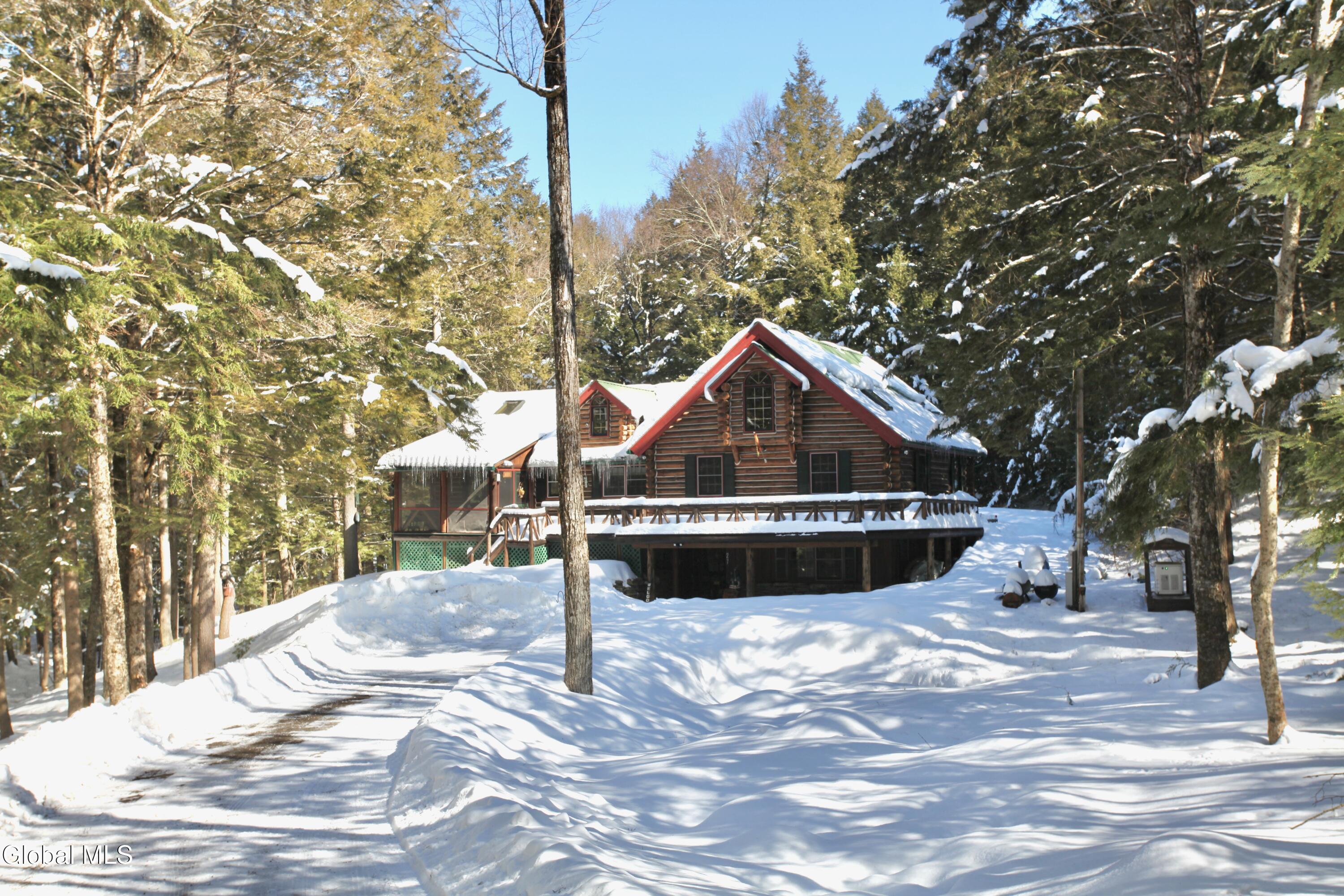 The Adirondack retreat buyers dream about -- a private log home set among the pines with a stone fireplace, woodland pond, and the soothing sound of a year-round brook. Hidden among the pines on 2.05 private wooded acres, this authentic Adirondack log home captures the essence of mountain living, where the sound of a babbling brook, the glow of a stone fireplace, and the quiet of the forest create a true escape from everyday life.This 4-bedroom, 2-bath retreat offers approximately 2,700 square feet of inviting living space, including a finished lower level ideal for guests and gatherings. The interior reflects timeless Adirondack character with warm natural wood finishes and a welcoming living area centered around a beautiful wood-burning stone fireplace. The layout is designed for comfort and connection, making it ideal for hosting family and friends in every season. Outdoor living is equally special. A screened porch and spacious deck overlook a peaceful woodland setting featuring a small private pond, gentle brook, and fire pit area, creating a setting that feels miles away from the pace of everyday life while offering exceptional privacy. Ownership includes access to the Northwoods Association's nearly 800 acres of recreational lands for hiking, biking, snowmobiling, hunting, cross-country skiing, and snowshoeing, along with deeded lake access to Forest Lake and Lake Allure for swimming and paddling. Ideally located near Lake George and Bolton Landing, Saratoga Springs, Gore Mountain, Lake Luzerne, Painted Pony Ranch & Rodeo, Tubby Tubes rafting on the Hudson River, and the Adirondack Park, this home offers outstanding four-season recreation. With recent Airbnb and VRBO rental history, this property offers excellent potential as a private retreat, second home, or income-producing investment.