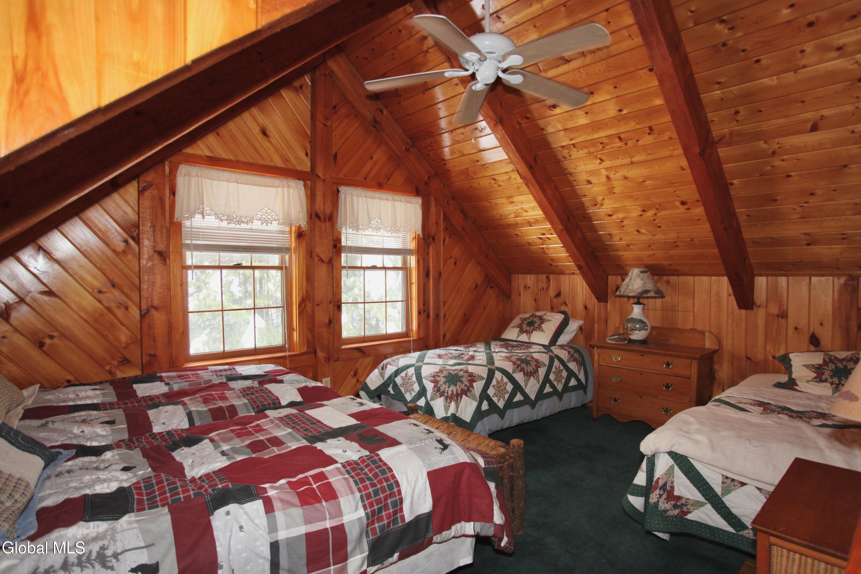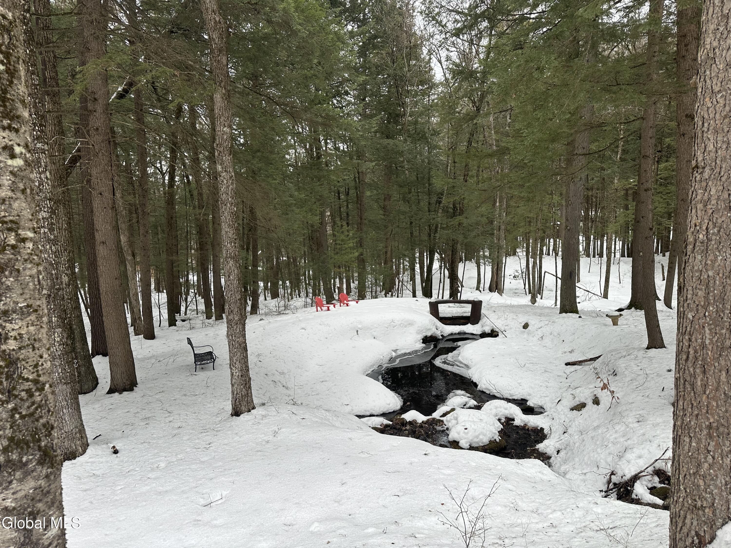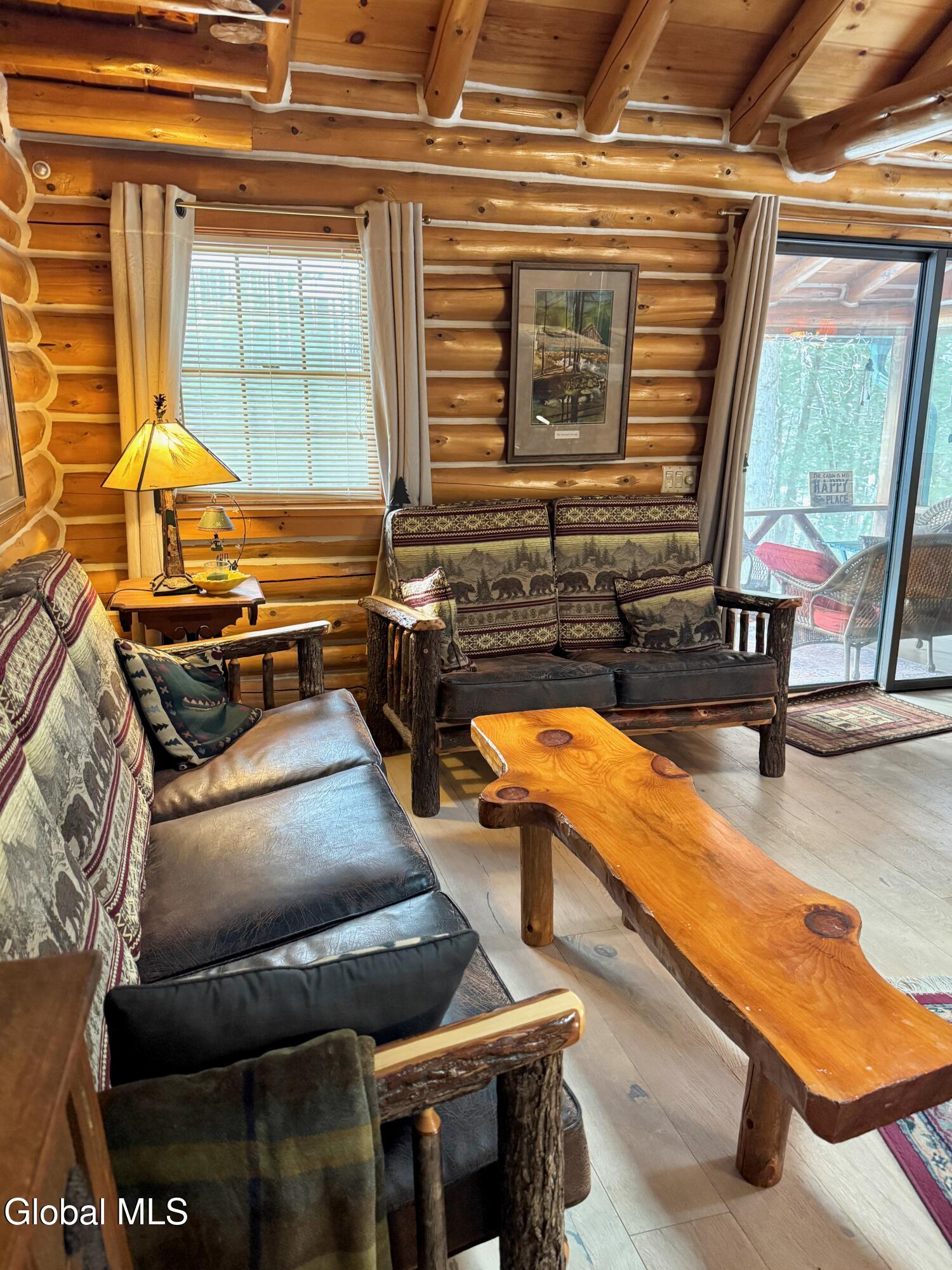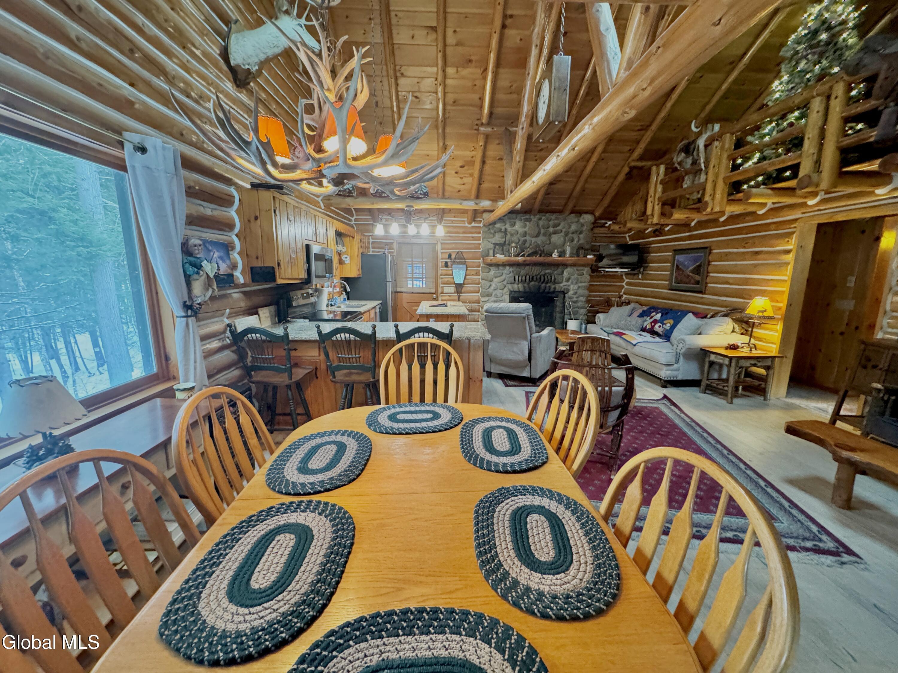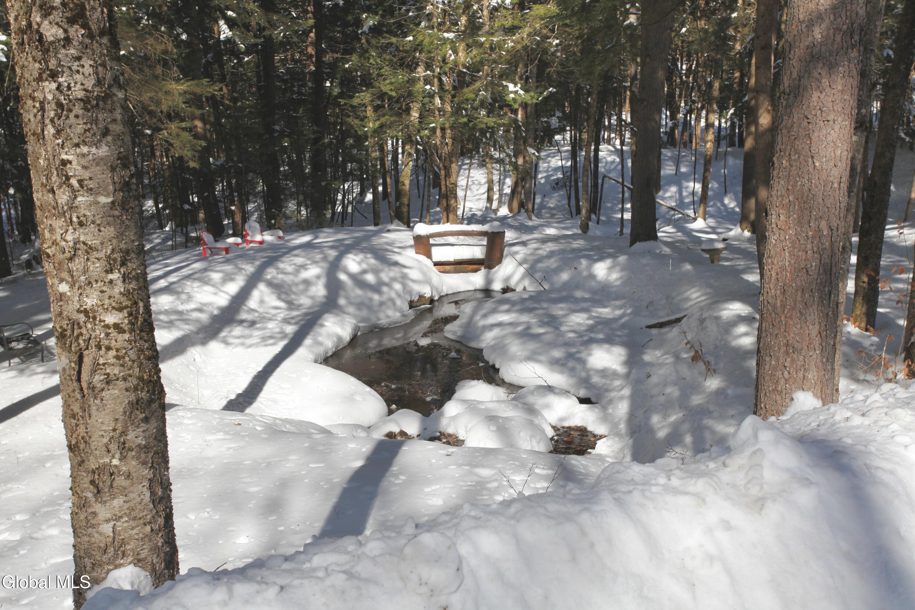 The Adirondack retreat buyers dream about -- a private log home set among the pines with a stone fireplace, woodland pond, and the soothing sound of a year-round brook. Hidden among the pines on 2.05 private wooded acres, this authentic Adirondack log home captures the essence of mountain living, where the sound of a babbling brook, the glow of a stone fireplace, and the quiet of the forest create a true escape from everyday life.This 4-bedroom, 2-bath retreat offers approximately 2,700 square feet of inviting living space, including a finished lower level ideal for guests and gatherings. The interior reflects timeless Adirondack character with warm natural wood finishes and a welcoming living area centered around a beautiful wood-burning stone fireplace. The layout is designed for comfort and connection, making it ideal for hosting family and friends in every season. Outdoor living is equally special. A screened porch and spacious deck overlook a peaceful woodland setting featuring a small private pond, gentle brook, and fire pit area, creating a setting that feels miles away from the pace of everyday life while offering exceptional privacy. Ownership includes access to the Northwoods Association's nearly 800 acres of recreational lands for hiking, biking, snowmobiling, hunting, cross-country skiing, and snowshoeing, along with deeded lake access to Forest Lake and Lake Allure for swimming and paddling. Ideally located near Lake George and Bolton Landing, Saratoga Springs, Gore Mountain, Lake Luzerne, Painted Pony Ranch & Rodeo, Tubby Tubes rafting on the Hudson River, and the Adirondack Park, this home offers outstanding four-season recreation. With recent Airbnb and VRBO rental history, this property offers excellent potential as a private retreat, second home, or income-producing investment.